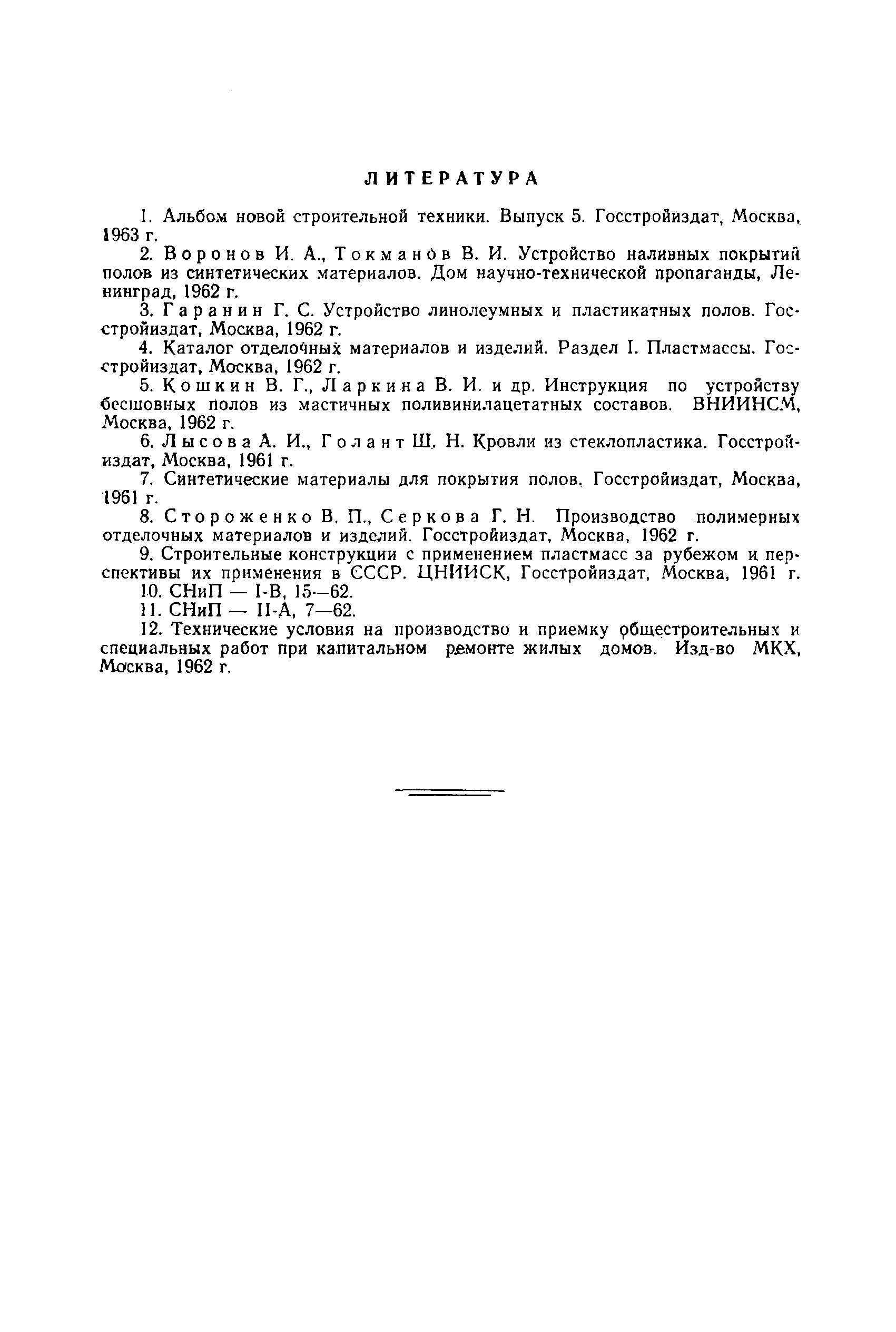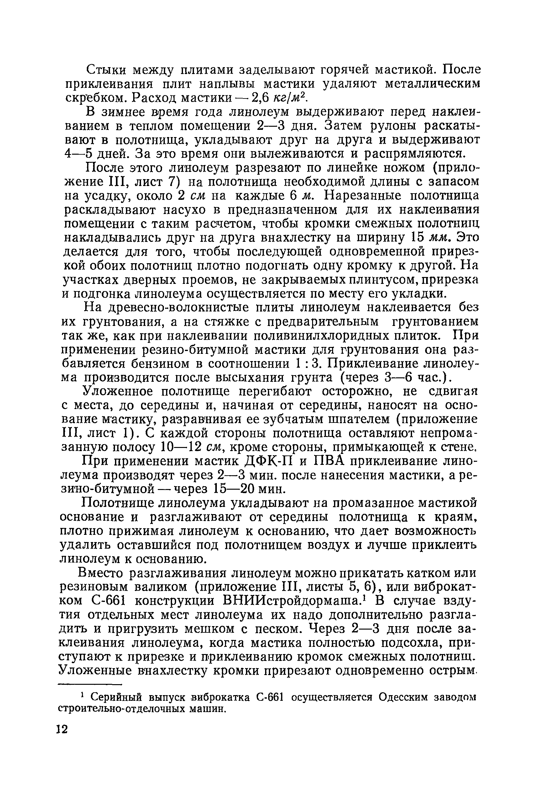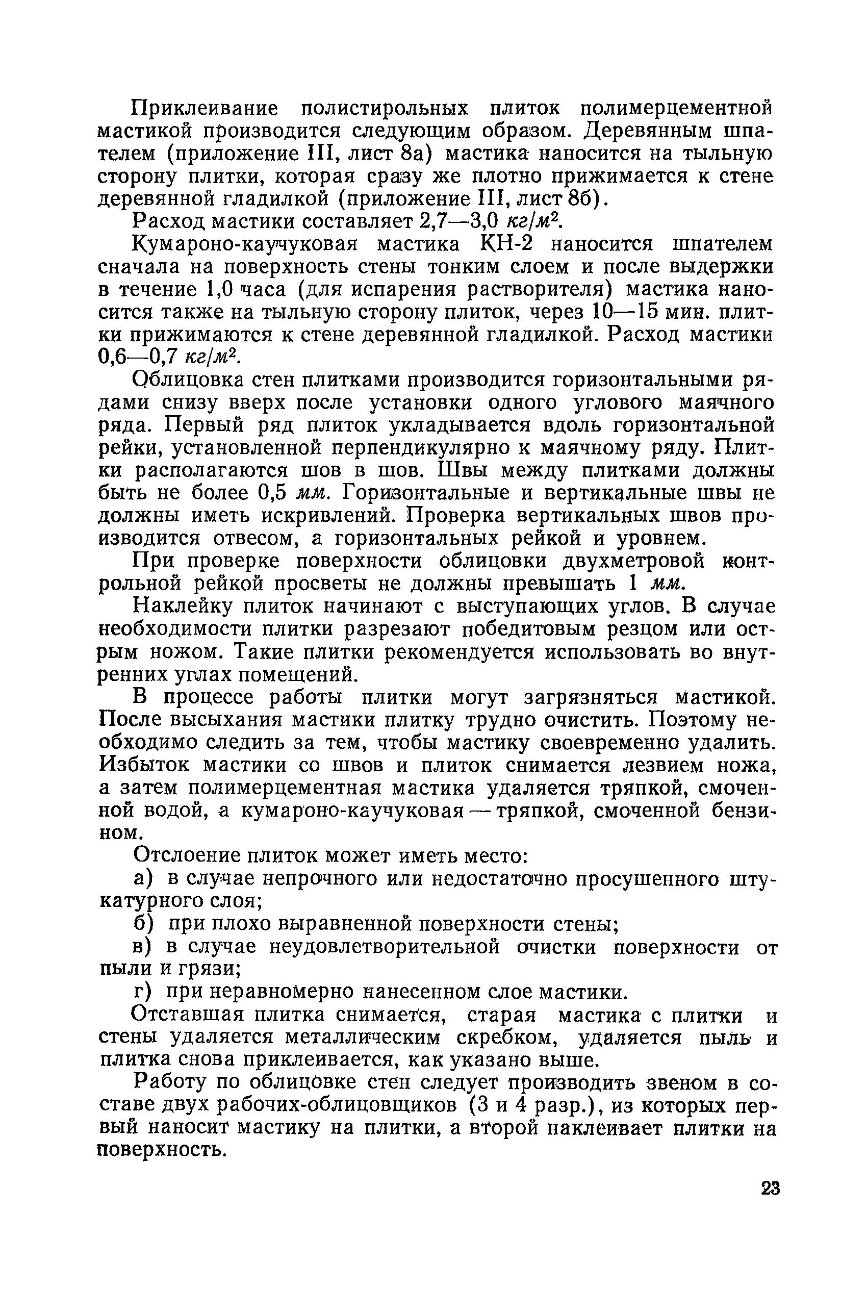 | Оглавление: | Введение 1. Устройство полов из синтетических материалов А. Применяемые материалы Б. Устройство стяжек В. Производство работ по наклеиванию синтетических материалов 1. Наклеивание поливинилхлоридных плиток 2. Наклеивание поливинилхлоридного линолеума 3. Наклеивание резинового линолеума Г. Устройство мастичных бесшовных полов 1. Приготовление мастики для бесшовных полов 2. Производство работ Д. Организация работ Е. Способы устранения дефектов синтетических полов Ж. Техника безопасности З. Уход за синтетическими полами II. Устройство древесно-стружечных перегородок III. Облицовка стен полистирольными плитками 1. Общие сведения 2. Производство работ по облицовке стен полистирольными плитками 3. Уход за полистирольными плитками IV. Наклеивание поливинилхлоридного плинтуса V. Крепление поливинилхлоридного поручня VI. Устройство кровель из стеклопластика 1. Общие сведения 2 Производство работ VII.Упаковка и хранение синтетических материалов Приложение 1. Сведения об изделиях из пластмасс и о клеящих мастиках . Приложение II. Нормы расхода синтетических материалов Приложение III. Чертежи приспособлений и инструментов, применяемых при работе с синтетическими материалами Литература |