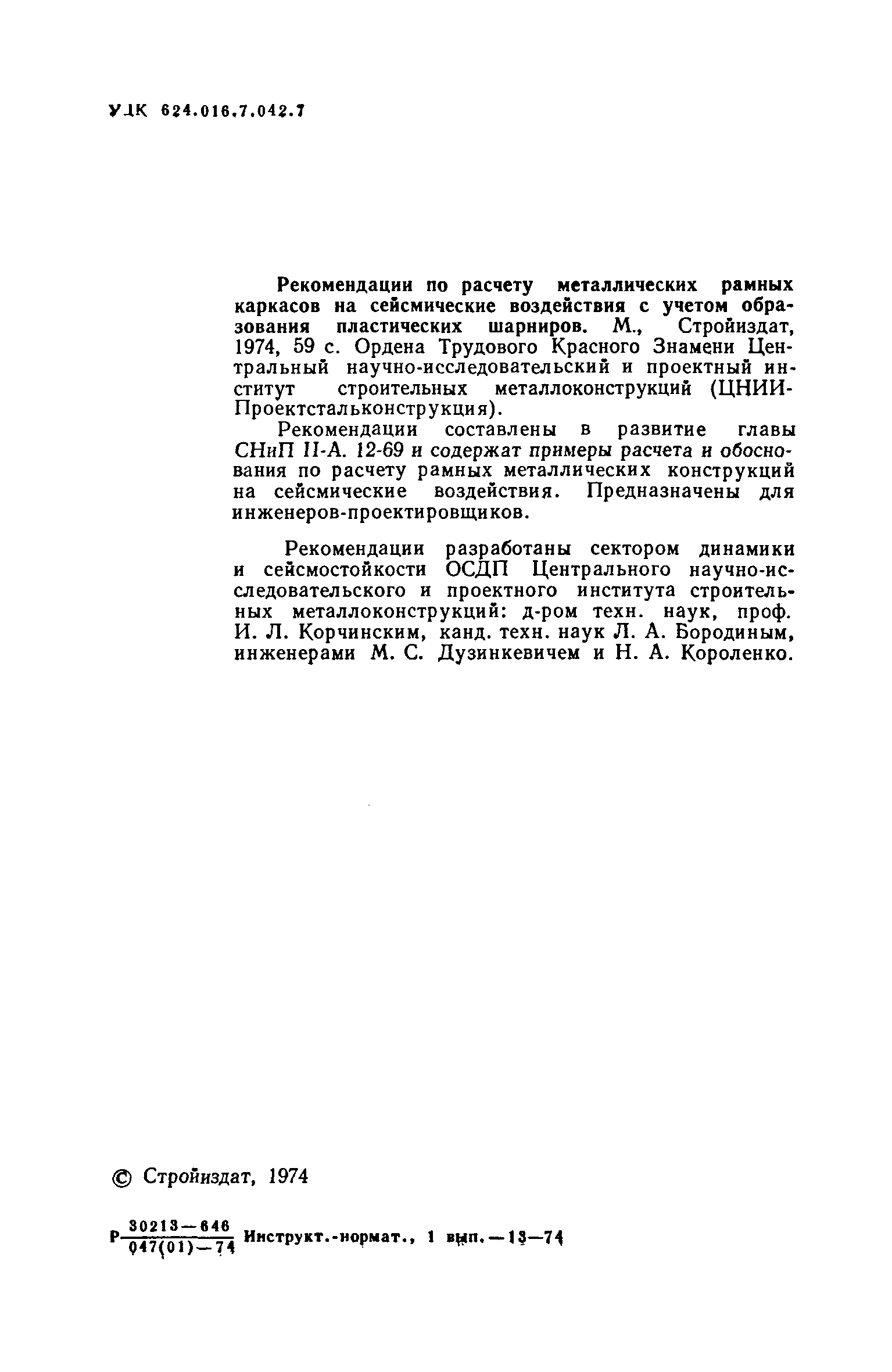 | Название рус.: | Рекомендации по расчету металлических рамных каркасов на сейсмические воздействия с учетом образования пластических шарниров |