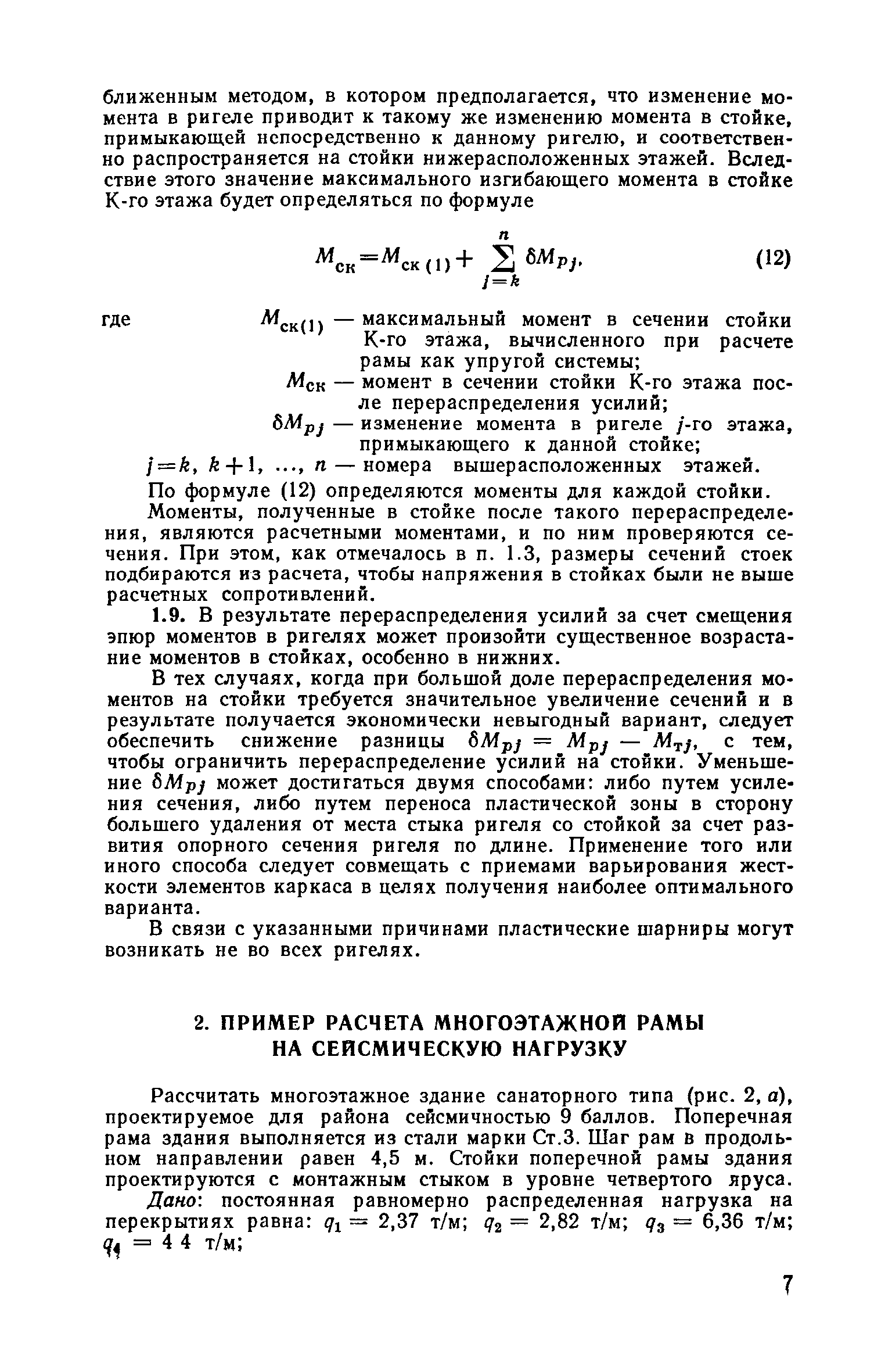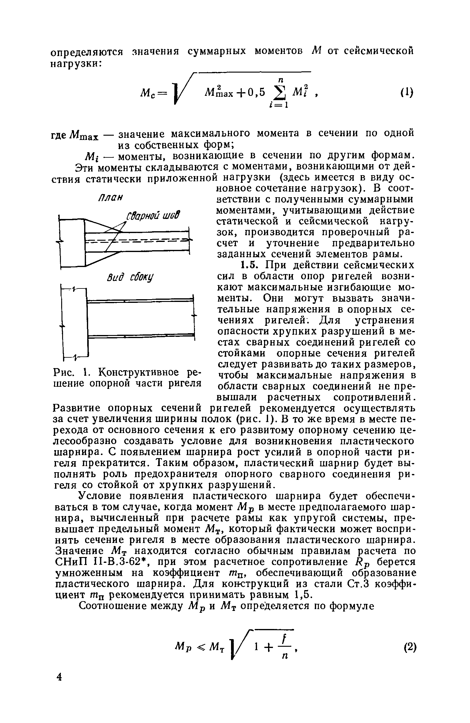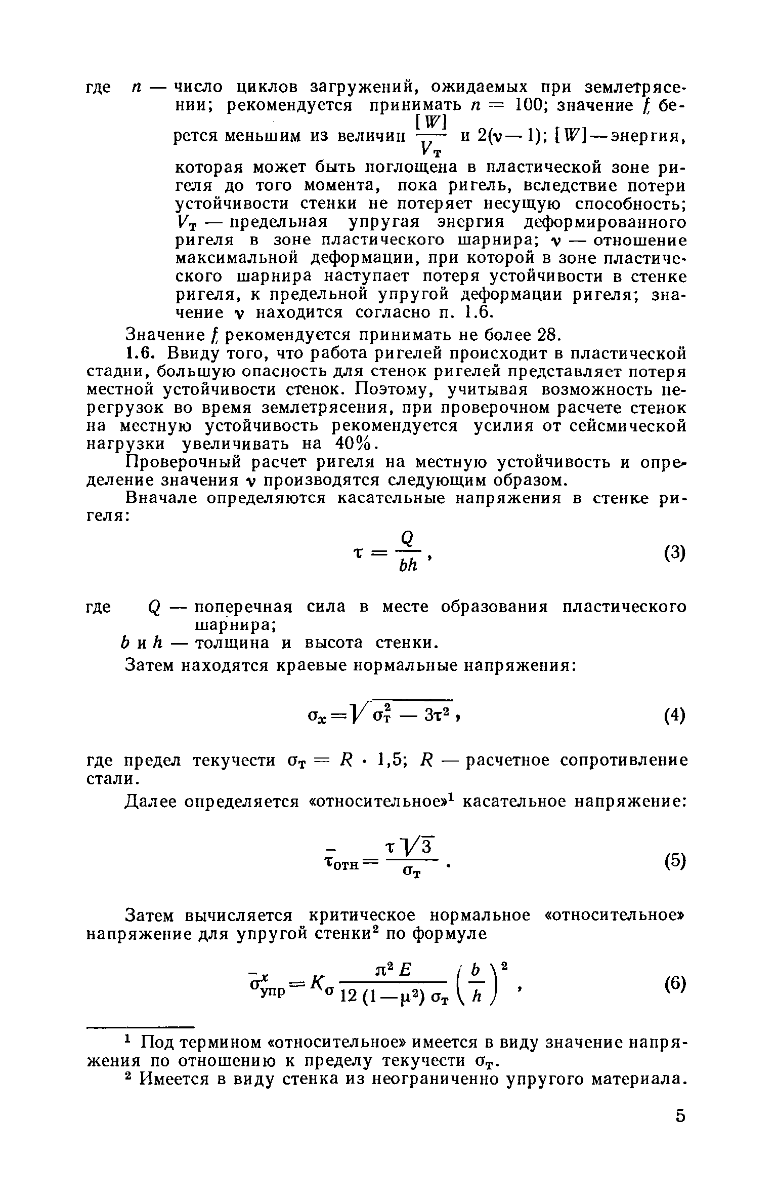 | Оглавление: | 1. Рекомендации по расчету 2. Пример расчета многоэтажной рамы на сейсмическую нагрузку 3. Обоснования к рекомендациям Общие положения Колебания упругопластических систем Экспериментальное исследование работы рамных узлов Выбор коэффициента m для расчета ригелей с учетом пластических шарниров Учет энергоемкости при подборе сечений ригелей рамных каркасов Проверочный расчет стенок ригелей на местную устойчивость Определение расчетных усилий в элементах рамного каркаса при учете влияния пластических деформаций Список литературы |