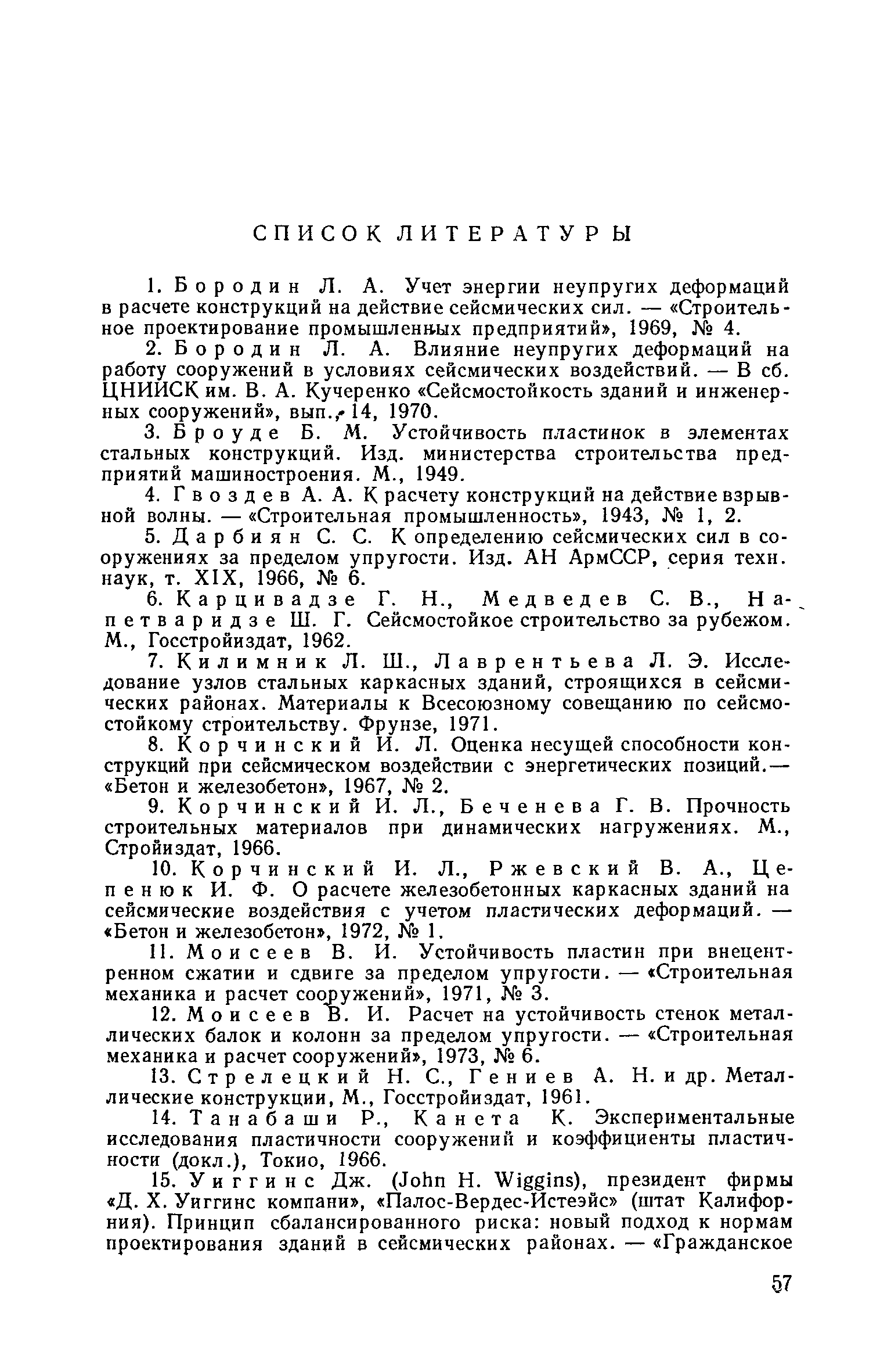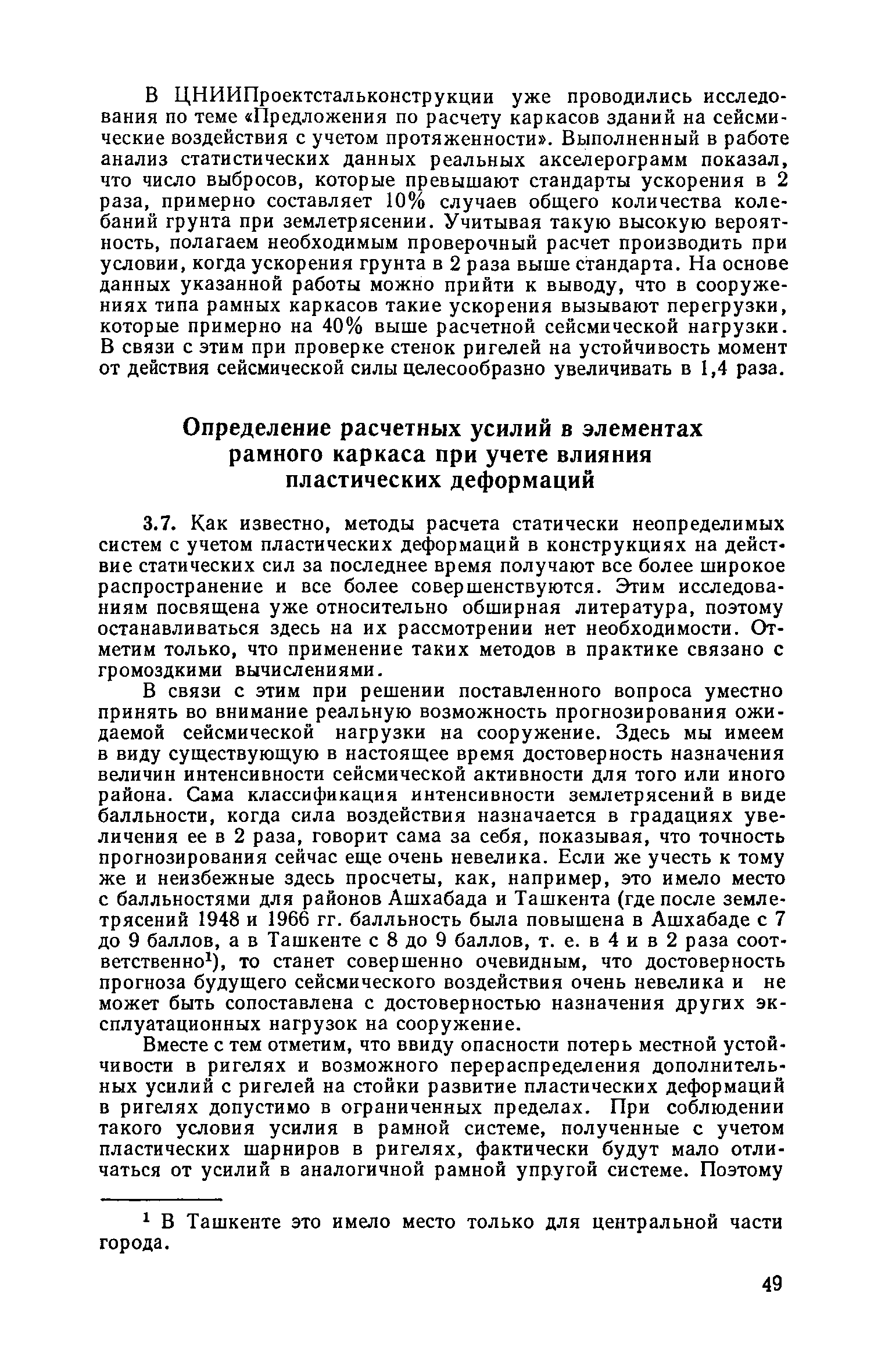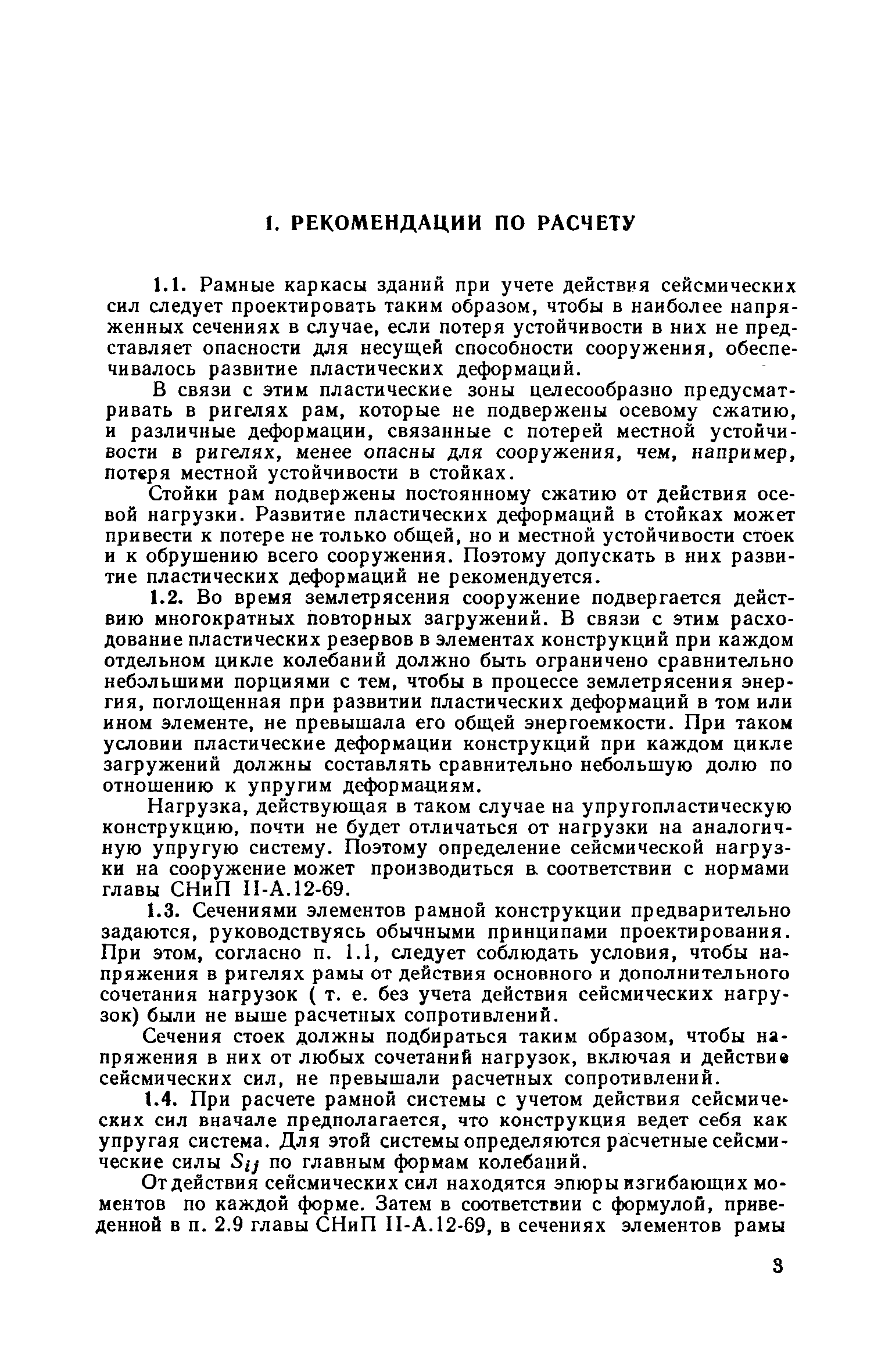 | Оглавление: | 1. Рекомендации по расчету 2. Пример расчета многоэтажной рамы на сейсмическую нагрузку 3. Обоснования к рекомендациям Общие положения Колебания упругопластических систем Экспериментальное исследование работы рамных узлов Выбор коэффициента m для расчета ригелей с учетом пластических шарниров Учет энергоемкости при подборе сечений ригелей рамных каркасов Проверочный расчет стенок ригелей на местную устойчивость Определение расчетных усилий в элементах рамного каркаса при учете влияния пластических деформаций Список литературы |