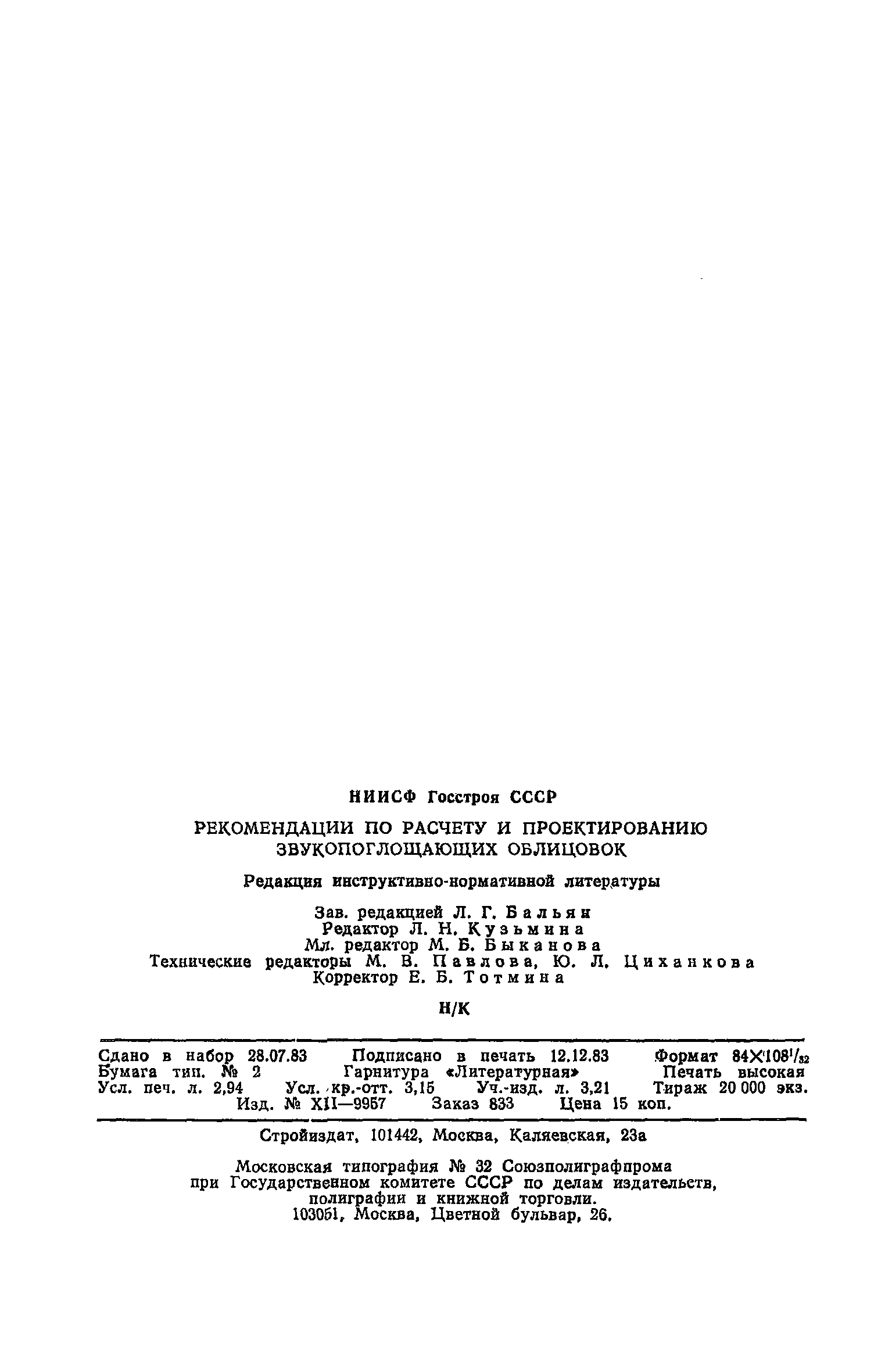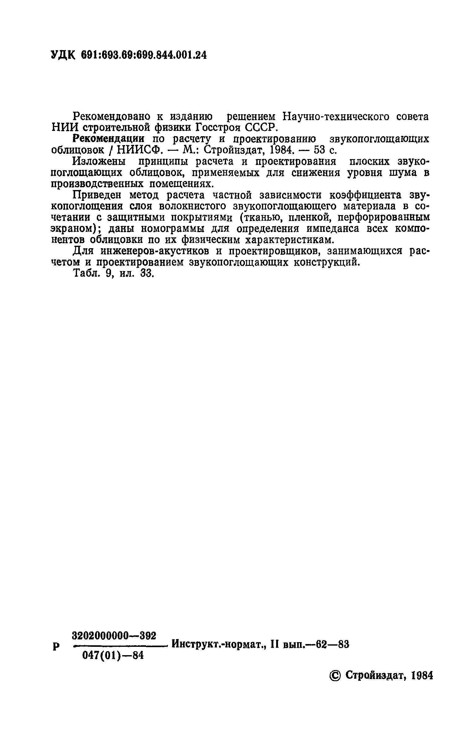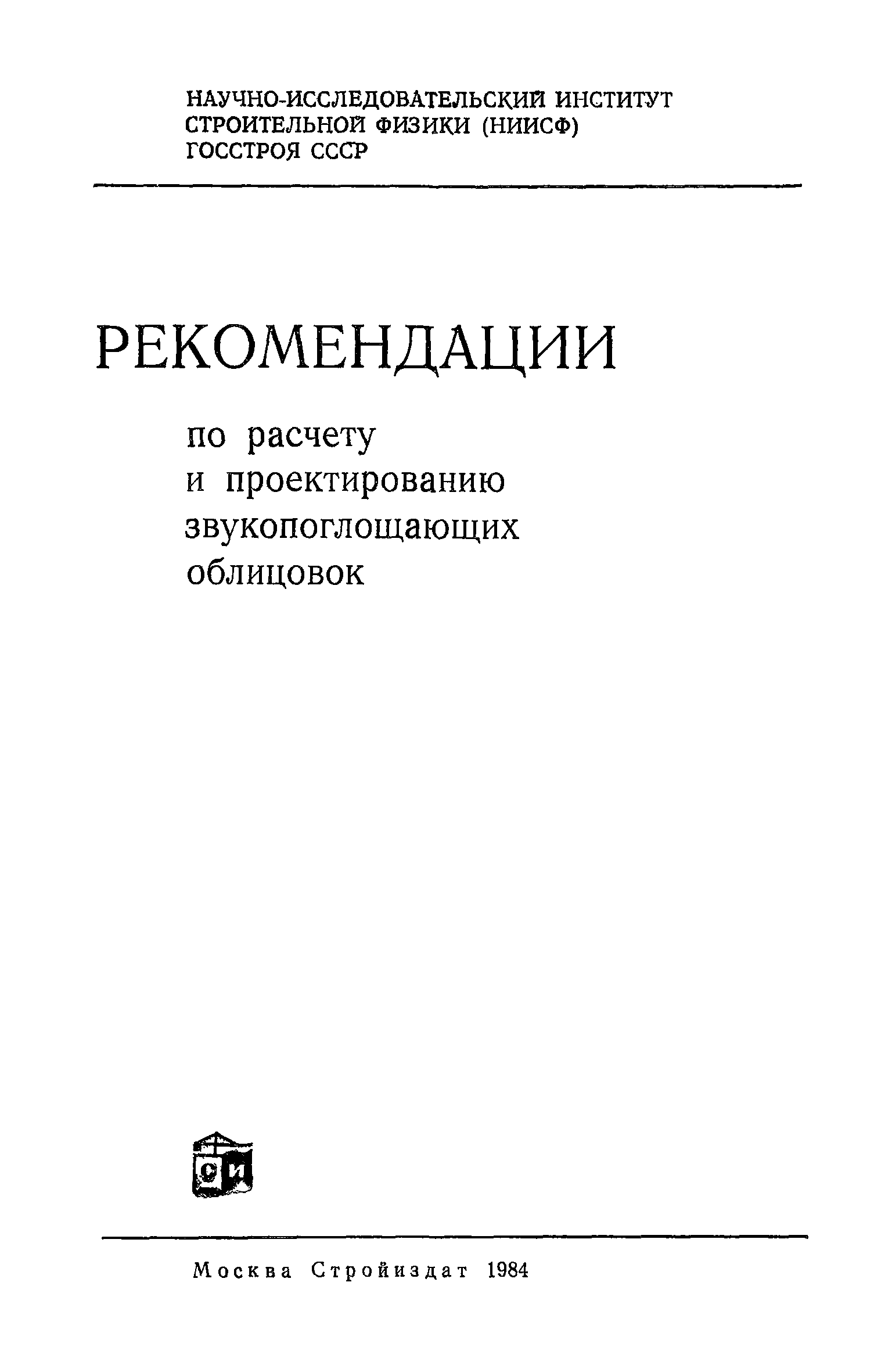| Название рус.: | Рекомендации по расчету и проектированию звукопоглощающих облицовок |