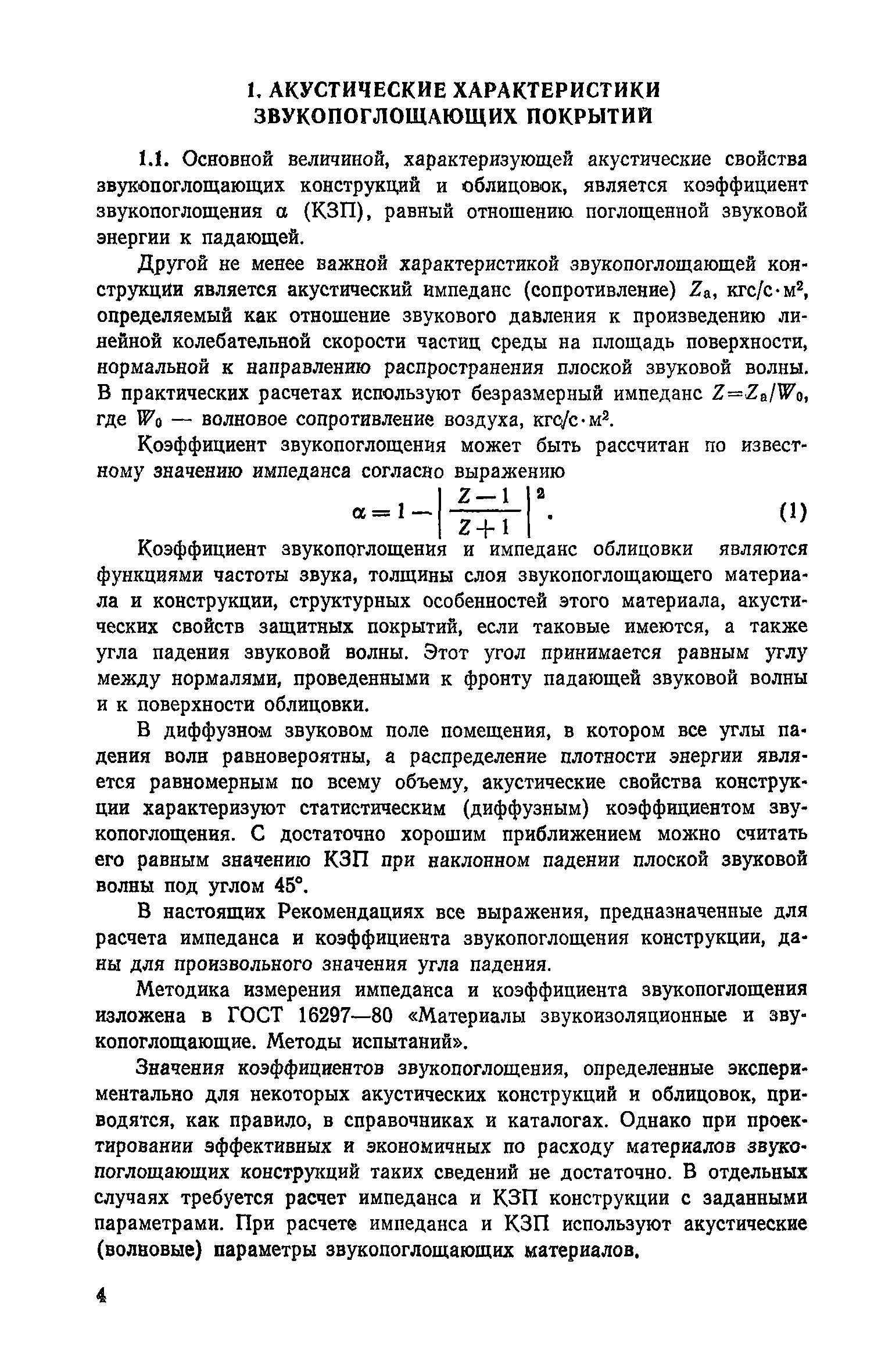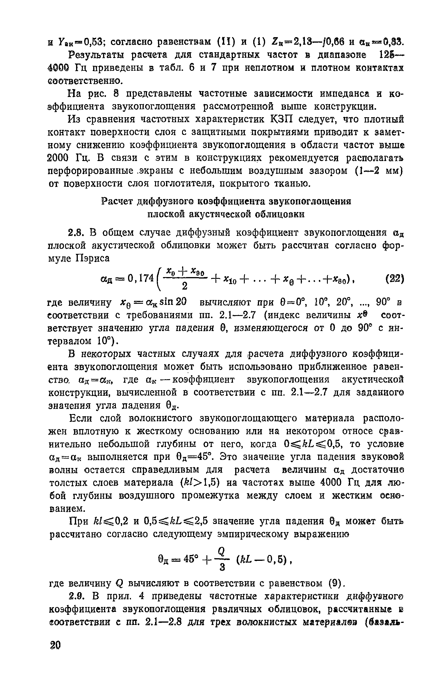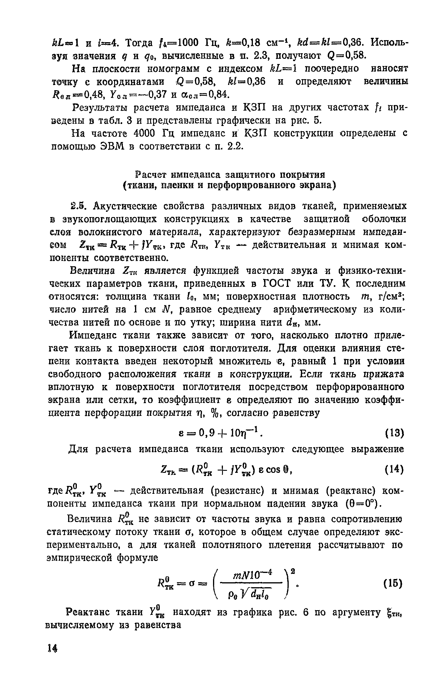 | Оглавление: | Предисловие 1. Акустические характеристики звукопоглощающих покрытий . 2. Расчет и проектирование звукопоглощающих конструкций. Расчет импеданса слоя звукопоглощающего материала конечной толщины Расчет импеданса защитного покрытия (ткани, пленки, перфорированного экрана) Расчет диффузного коэффициента звукопоглощения плоской акустической облицовки 3. Требования к акустическим характеристикам звукопоглощающих конструкций. Выбор оптимальных параметров, обеспечивающих заданный коэффициент звукопоглощения 4. Условия равноценной замены звукопоглощающих материалов и защитных конструкций Приложение 1. Номограммы для определения структурных характеристик пористых и волокнистых звукопоглощающих материалов Приложение 2. Программа расчета импеданса и коэффициента звукопоглощения слоя материала без защитного покрытия Приложение 3. Номограммы для определения импеданса и коэффициента звукопоглощения слоя волокнистого материала, расположенного на относе от жесткого основания Приложение 4. Частотные зависимости диффузного коэффициента звукопоглощения различных акустических облицовок |