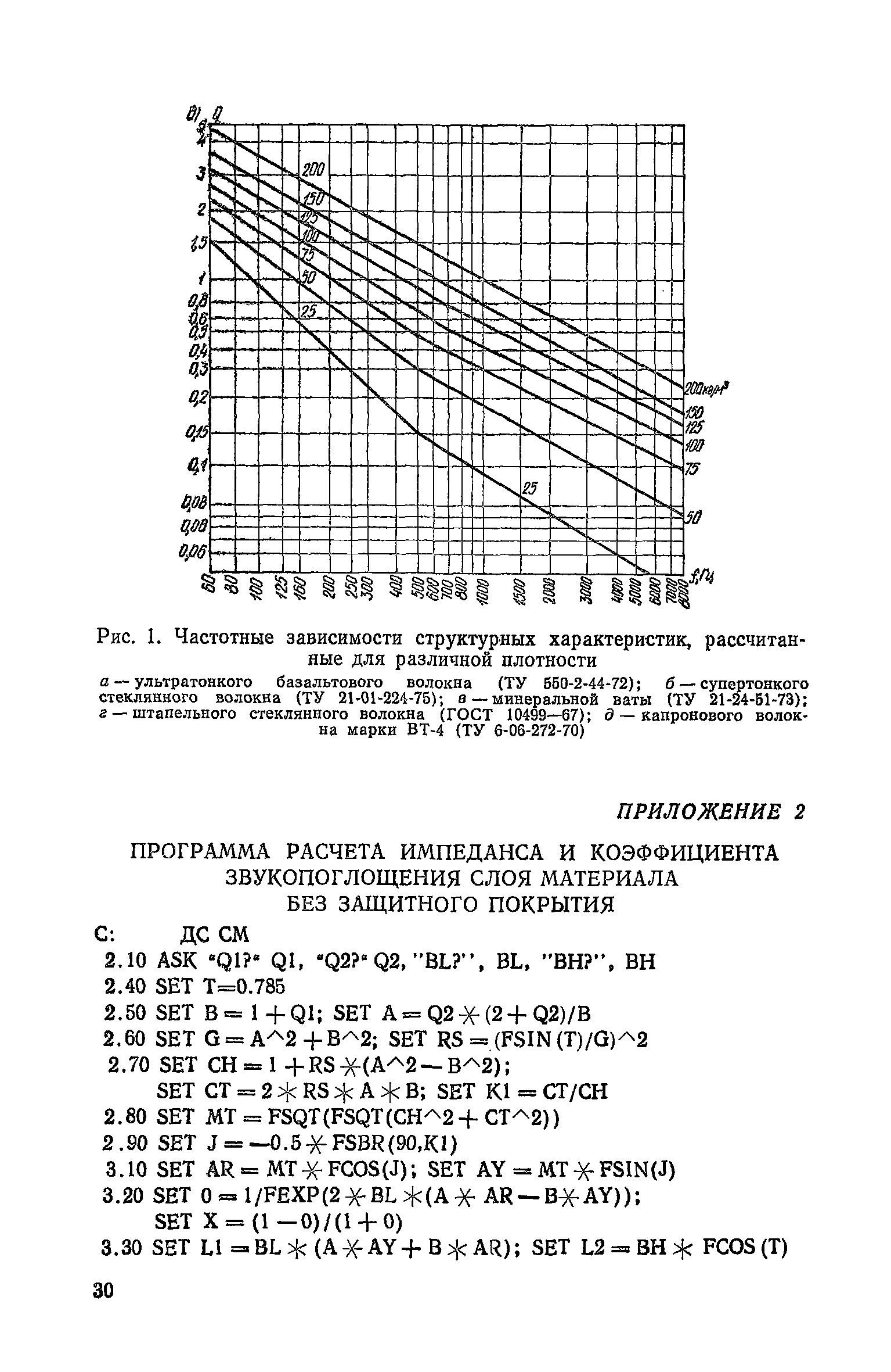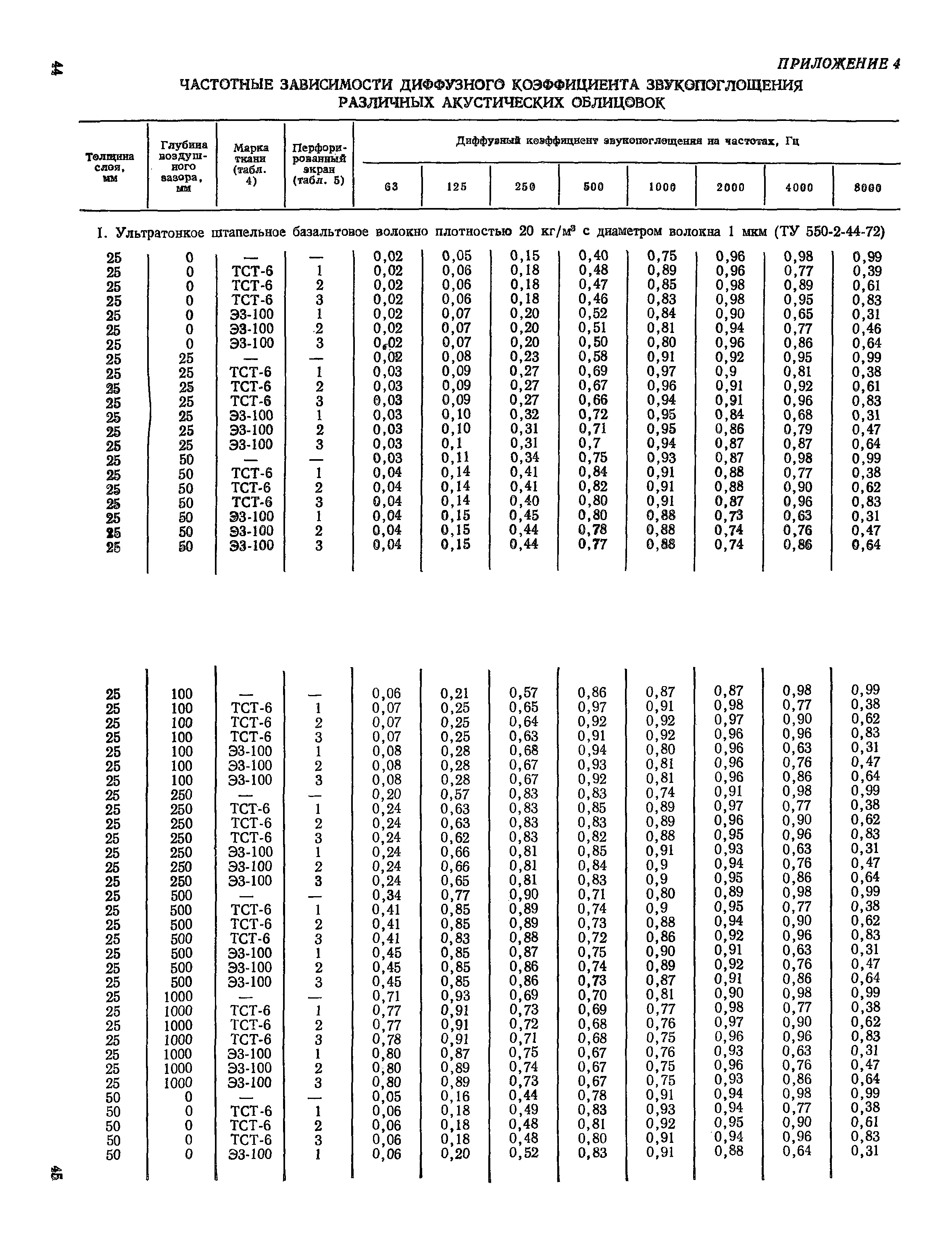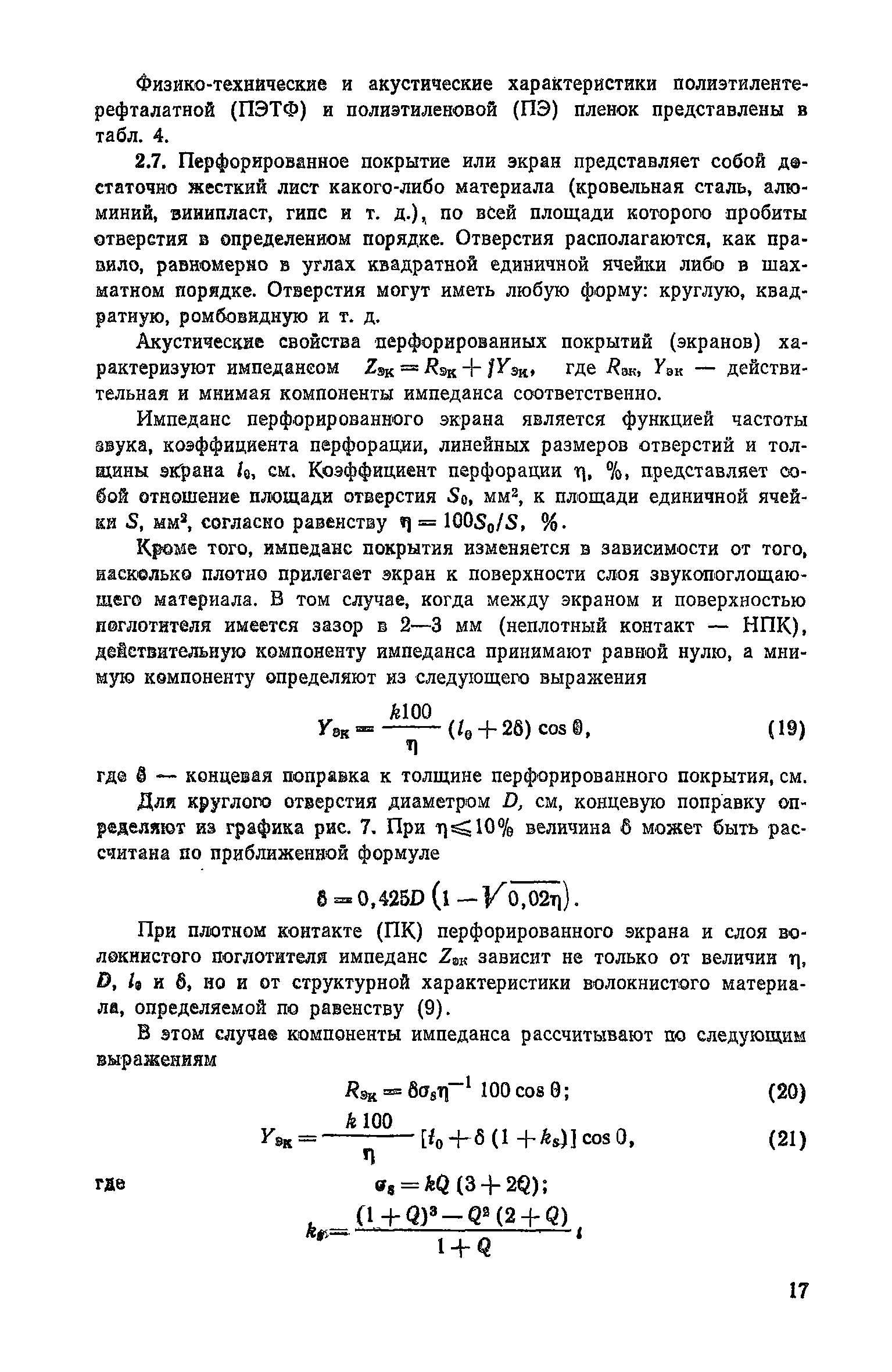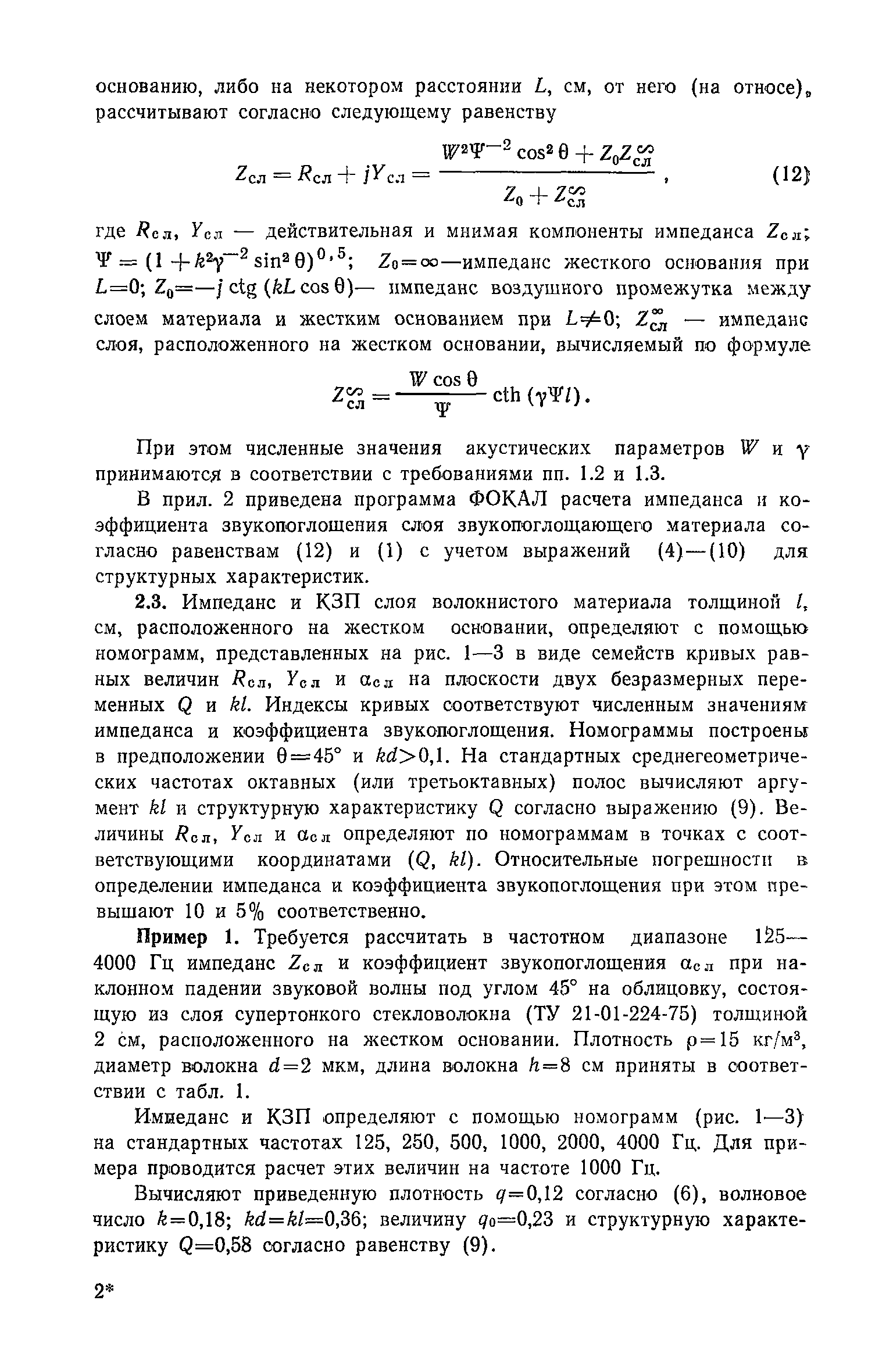 | Оглавление: | Предисловие 1. Акустические характеристики звукопоглощающих покрытий . 2. Расчет и проектирование звукопоглощающих конструкций. Расчет импеданса слоя звукопоглощающего материала конечной толщины Расчет импеданса защитного покрытия (ткани, пленки, перфорированного экрана) Расчет диффузного коэффициента звукопоглощения плоской акустической облицовки 3. Требования к акустическим характеристикам звукопоглощающих конструкций. Выбор оптимальных параметров, обеспечивающих заданный коэффициент звукопоглощения 4. Условия равноценной замены звукопоглощающих материалов и защитных конструкций Приложение 1. Номограммы для определения структурных характеристик пористых и волокнистых звукопоглощающих материалов Приложение 2. Программа расчета импеданса и коэффициента звукопоглощения слоя материала без защитного покрытия Приложение 3. Номограммы для определения импеданса и коэффициента звукопоглощения слоя волокнистого материала, расположенного на относе от жесткого основания Приложение 4. Частотные зависимости диффузного коэффициента звукопоглощения различных акустических облицовок |