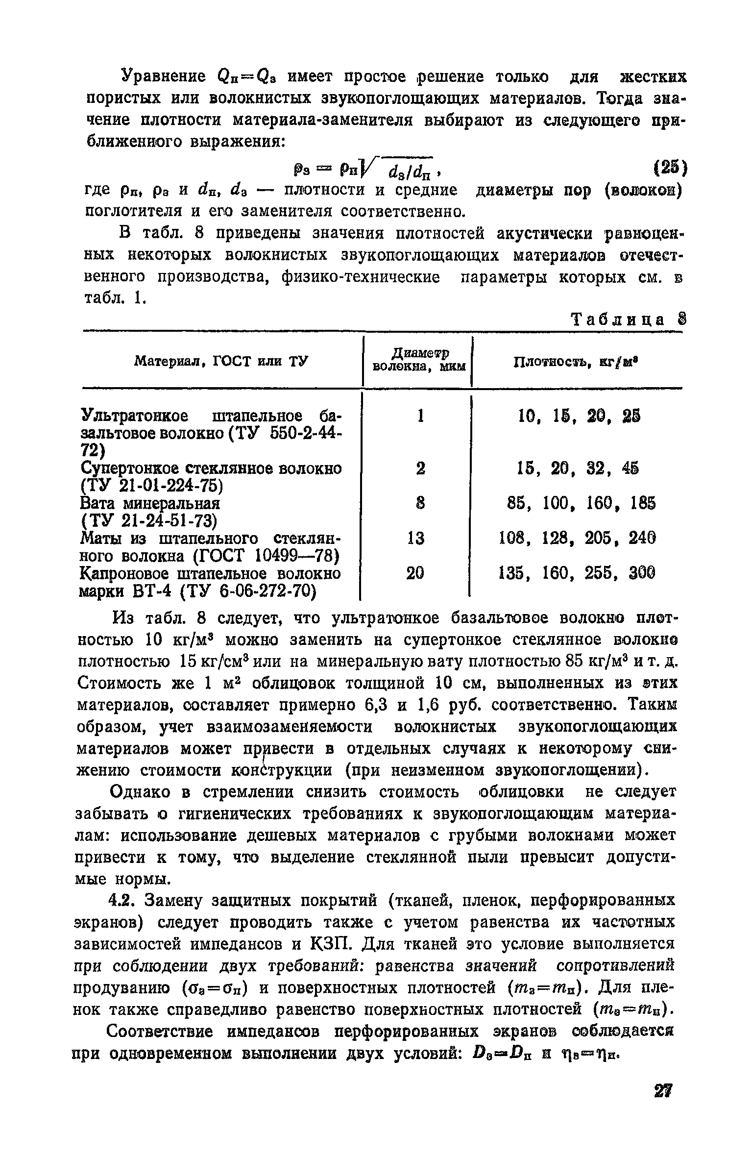 | Область применения: | В документе изложены принципы расчета и проектирования плоских звукопоглощающих облицовок, применяемых для снижения уровня шума в производственных помещениях. Приведен метод расчета частной зависимости коэффициента звукопоглощения слоя волокнистого звукопоглощающего материала в сочетании с защитными покрытиями (тканью, пленкой, перфорированным экраном); даны номограммы для определения импеданса всех компонентов облицовки по их физическим характеристикам. Для инженеров-акустиков и проектировщиков, занимающихся расчетом и проектированием звукопоглощающих конструкций. |
