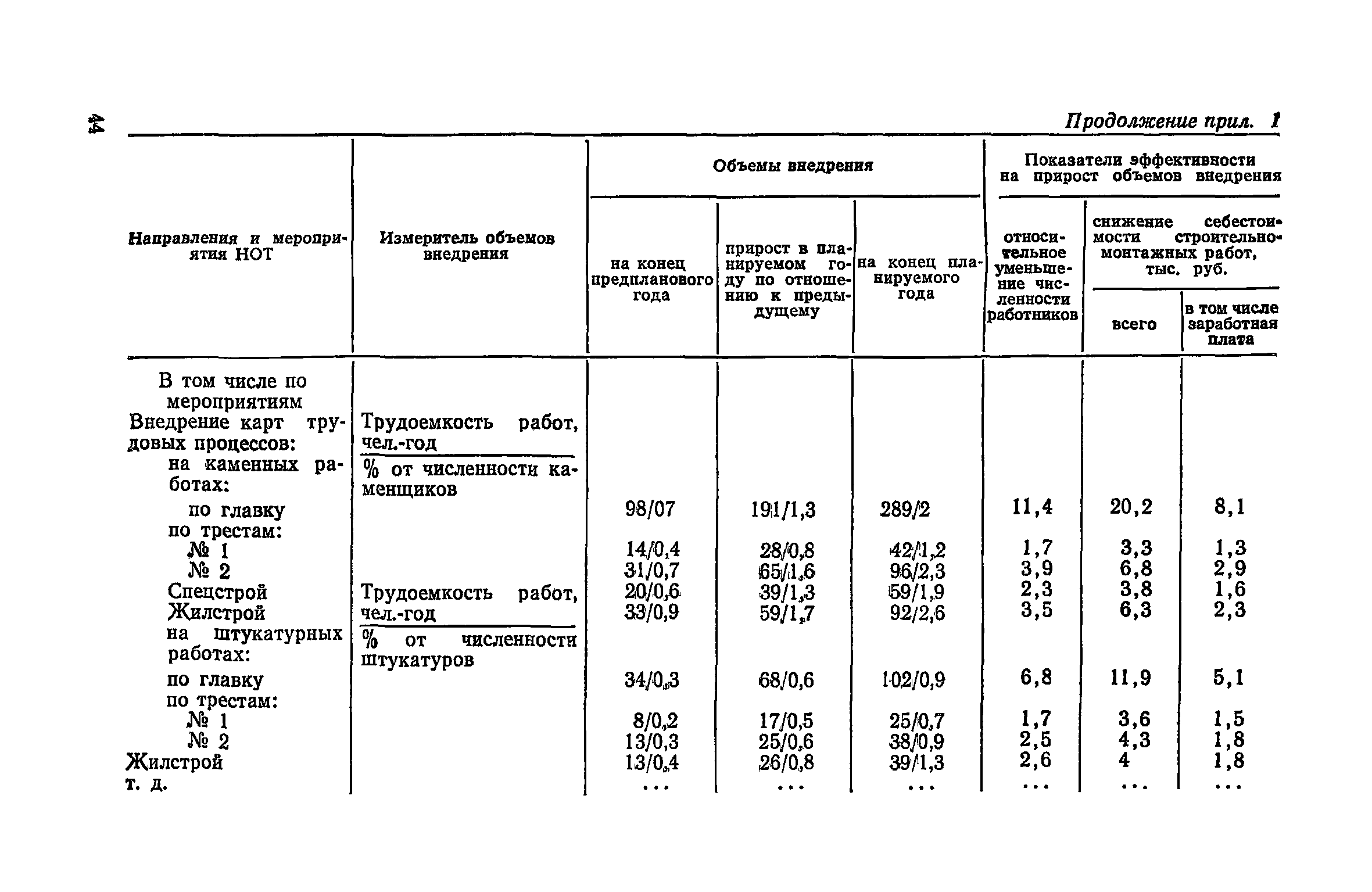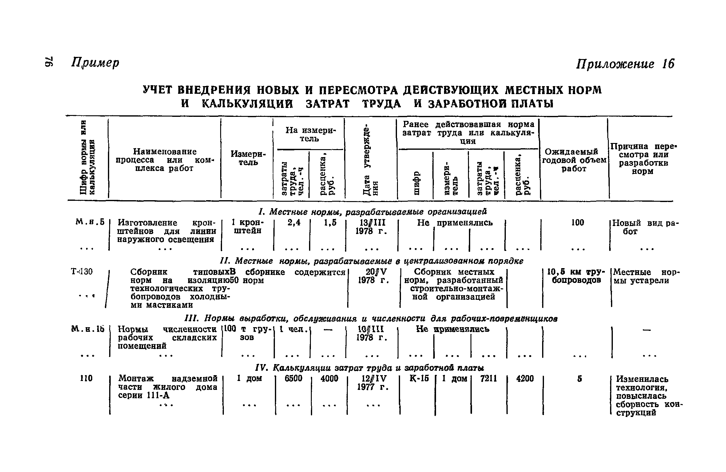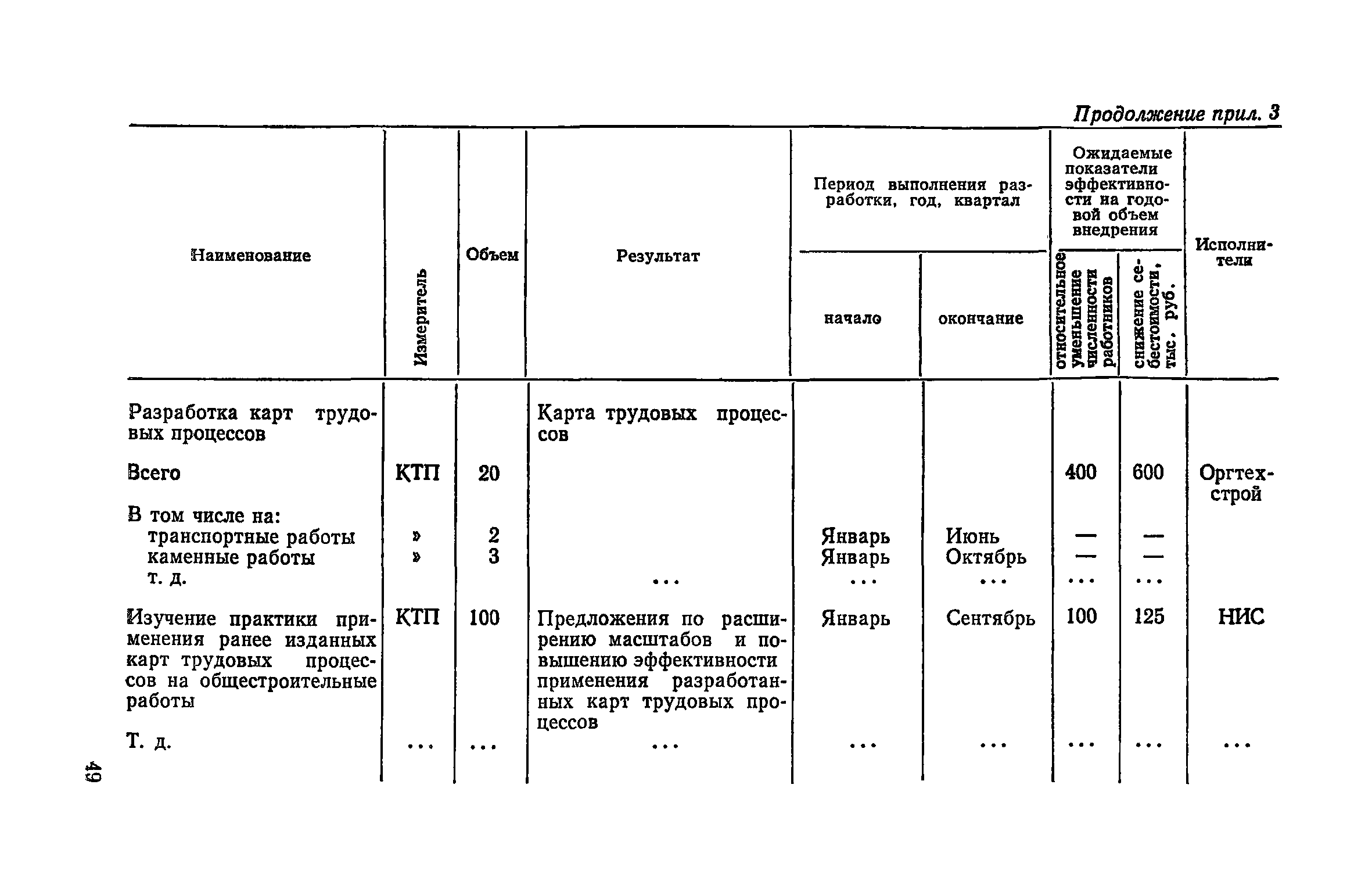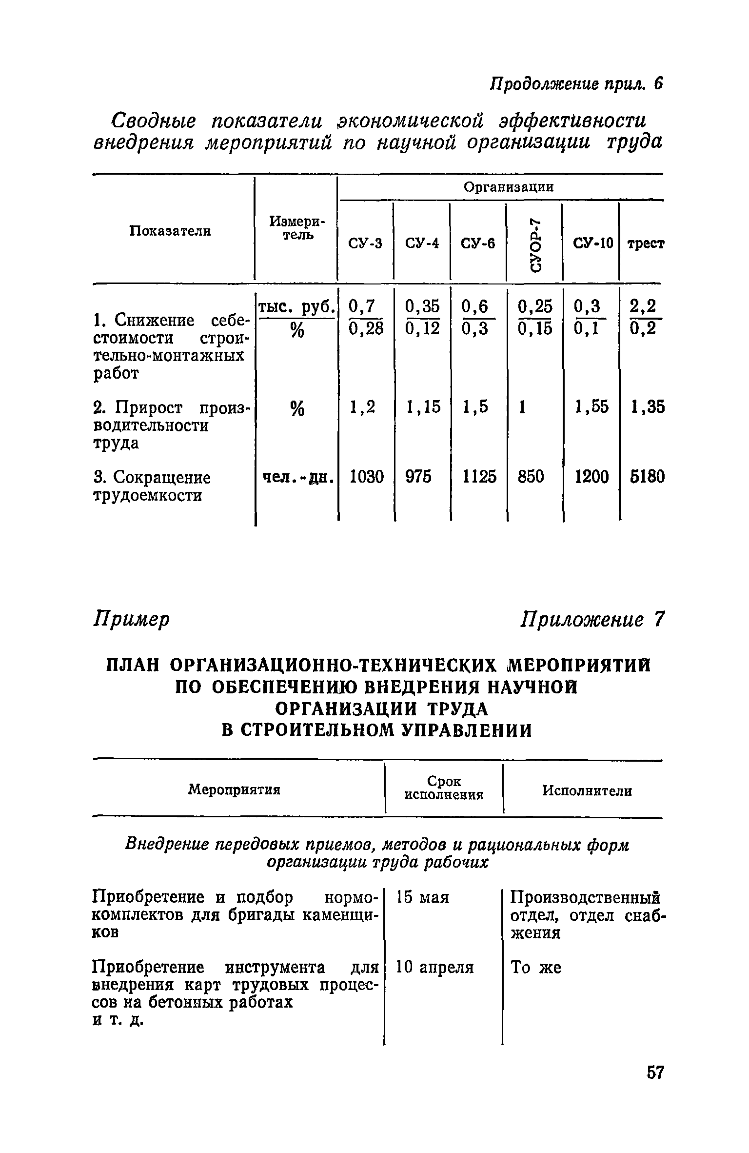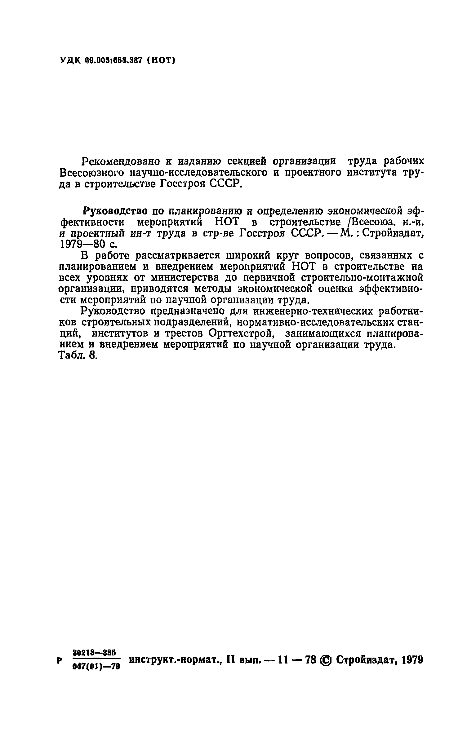 Руководство по планированию и определению экономической эффективности мероприятий НОТ в строительстве| Статус: | справочные материалы, мп, тпр | | Название рус.: | Руководство по планированию и определению экономической эффективности мероприятий НОТ в строительстве | | Дата добавления в базу: | 01.10.2014 | | Дата актуализации: | 01.01.2021 | | Область применения: | Руководство предназначено для инженерно-технических работников строительных подразделений, нормативно-исследовательских станций, институтов и трестов Оргтехстрой, занимающихся планированием и внедрением мероприятий по научной организации труда. | | Оглавление: | Введение 1. Общие положения 2. Виды и содержание планов НОТ 3. Основные этапы разработки планов НОТ 4. Обязанности структурных подразделений и должностных лиц по планированию и внедрению НОТ 5. Определение экономической эффективности мероприятий НОТ 6. Разработка контрольных заданий по внедрению мероприятий НОТ 7. Разработка проектов планов по научной организации труда 8. Разработка планов внедрения мероприятий по научной организации труда 9. Внедрение, учет и отчетность мероприятий НОТ в строительно-монтажных организациях 10. Материальное стимулирование внедрения мероприятий Приложение 1. План внедрения важнейших заданий по научной организации труда в строительно-монтажных организациях Главного управления строительства Приложение 2. План материально-технического обеспечения внедрения мероприятий НОТ в строительно-монтажных организациях Главного Управления строительства Приложение 3. План перспективных научно-исследовательских, нормативных и проектных работ по научной организации труда в Главном управлении строительства Приложение 4. План проведения школ передового опыта в строительно-монтажных организациях Главного управления строительства Приложение 5. План внедрения мероприятий по научной организации труда в строительно-монтажном управлении Приложение 6. План внедрения мероприятий по научной организации труда в тресте Приложение 7. План организационно-технических мероприятий по обеспечению внедрения научной организации труда в строительно-монтажном управлении Приложение 8. План повышения квалификации и обучения рабочих передовым методам труда в строительно-монтажном управлении Приложение 9. Расчет ожидаемого повышения производительности труда за счет внедрения законченных научно-исследовательских, проектных и нормативных разработок в строительно-монтажных организациях министерства Приложение 10. Расчет ожидаемого повышения производительности труда в результате выделения материально-технических средств для внедрения мероприятий НОТ .... Приложение 11. Расчет ожидаемого повышения производительности труда за счет расширения объемов и повышения эффективности внедрения мероприятий НОТ в строительно-монтажных организациях министерства Приложение 12. Перечень научно-исследовательских, нормативных и проектных разработок, рекомендуемых к внедрению в строительно-монтажных организациях министерства Приложение 13. Показатели количественной оценки уровня организации труда в бригадах Приложение 14. Акт о внедрении мероприятий по научной организации труда (НОТ) Приложение 15. Ведомость учета работы бригады штукатуров Приложение 16. Учет внедрения новых и пересмотра действующих местных норм