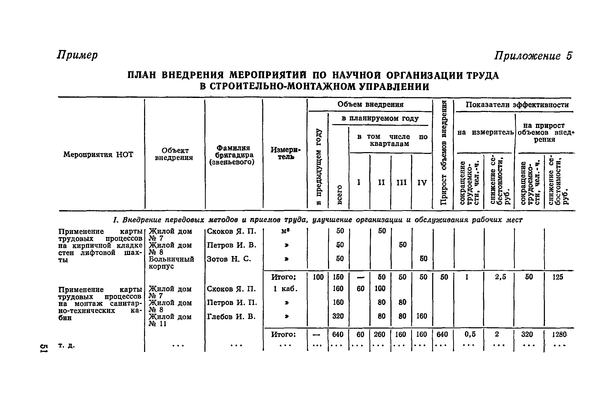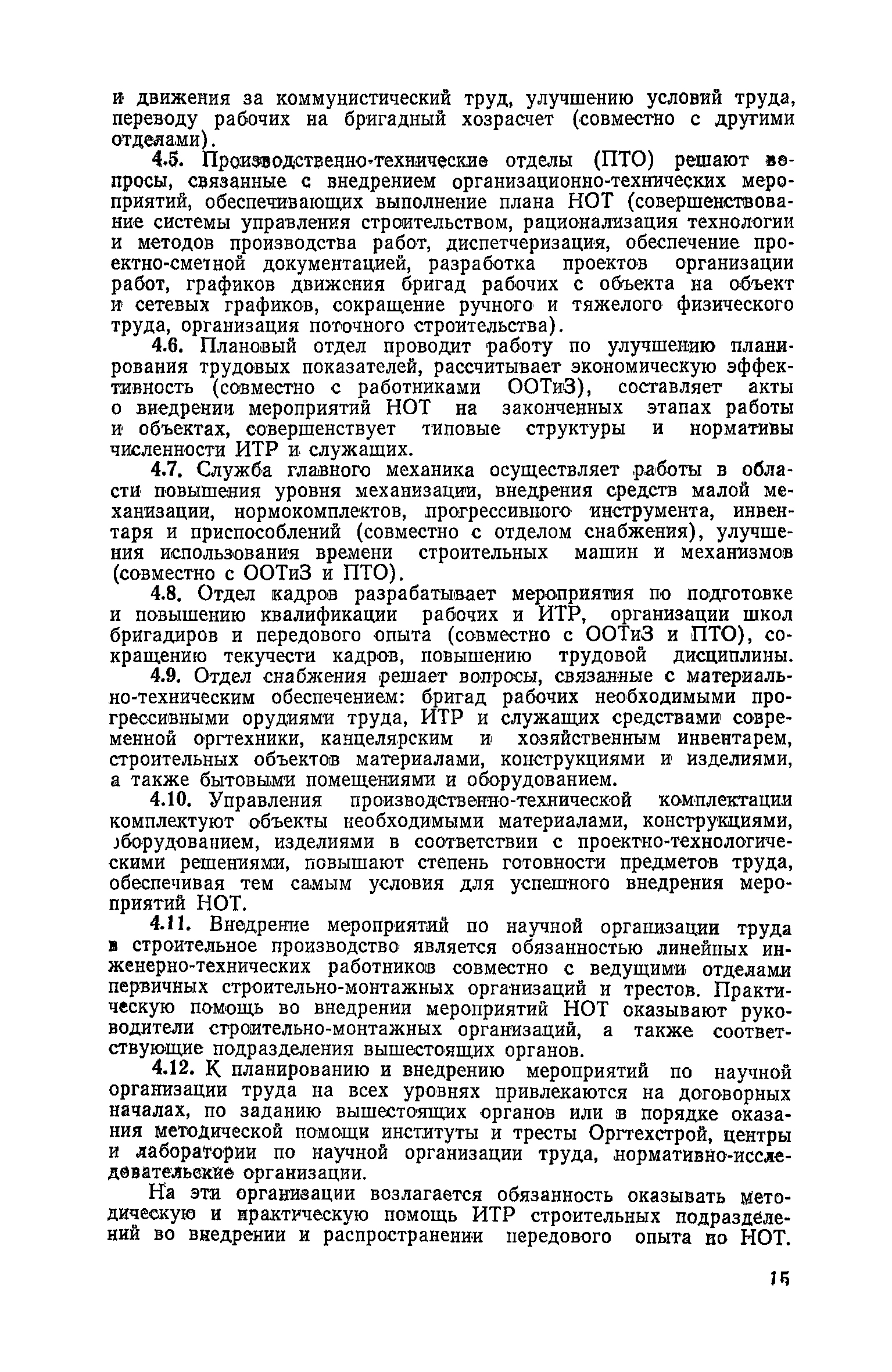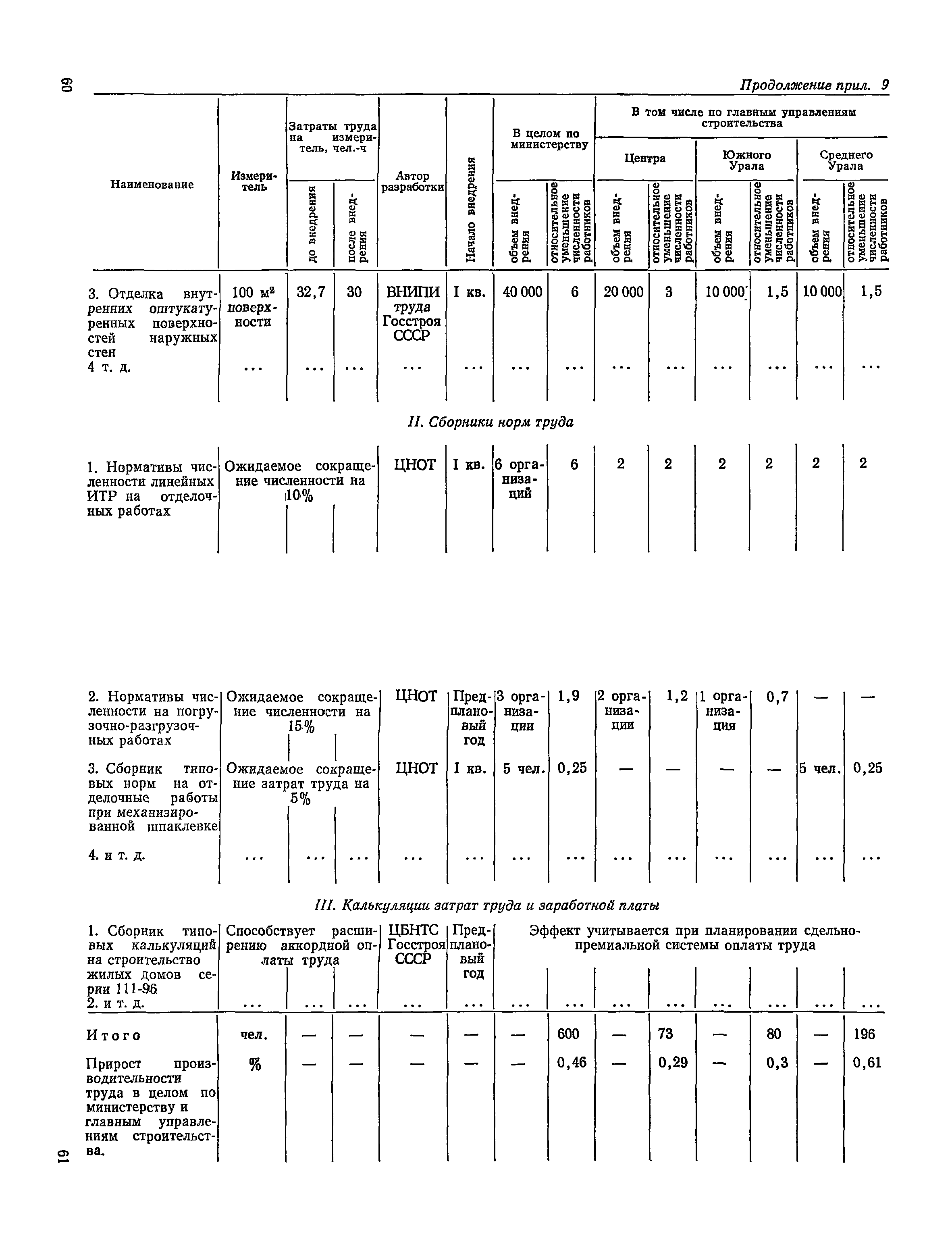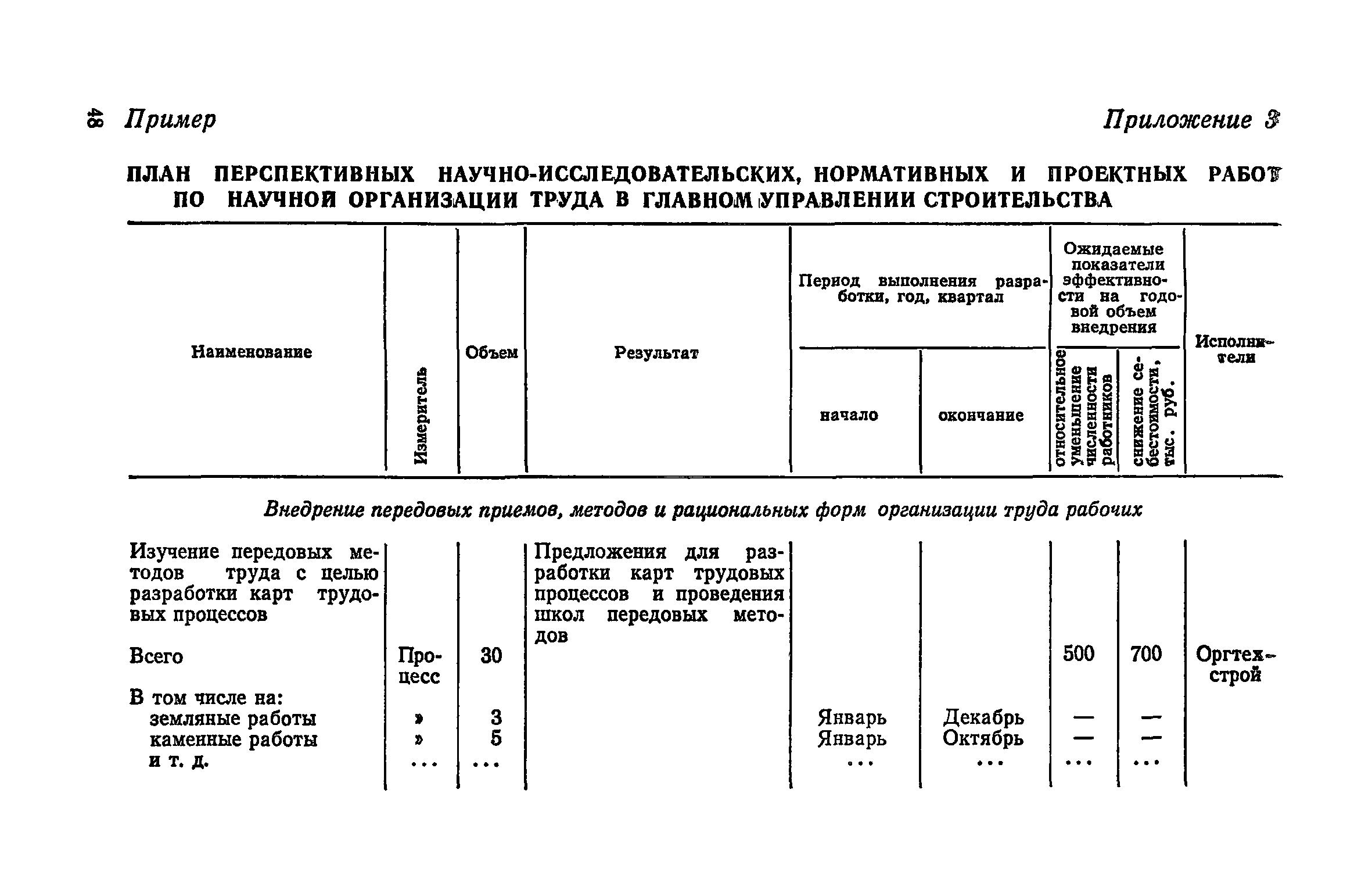 Руководство по планированию и определению экономической эффективности мероприятий НОТ в строительстве| Статус: | справочные материалы, мп, тпр | | Название рус.: | Руководство по планированию и определению экономической эффективности мероприятий НОТ в строительстве | | Дата добавления в базу: | 01.10.2014 | | Дата актуализации: | 01.01.2021 | | Область применения: | Руководство предназначено для инженерно-технических работников строительных подразделений, нормативно-исследовательских станций, институтов и трестов Оргтехстрой, занимающихся планированием и внедрением мероприятий по научной организации труда. | | Оглавление: | Введение 1. Общие положения 2. Виды и содержание планов НОТ 3. Основные этапы разработки планов НОТ 4. Обязанности структурных подразделений и должностных лиц по планированию и внедрению НОТ 5. Определение экономической эффективности мероприятий НОТ 6. Разработка контрольных заданий по внедрению мероприятий НОТ 7. Разработка проектов планов по научной организации труда 8. Разработка планов внедрения мероприятий по научной организации труда 9. Внедрение, учет и отчетность мероприятий НОТ в строительно-монтажных организациях 10. Материальное стимулирование внедрения мероприятий Приложение 1. План внедрения важнейших заданий по научной организации труда в строительно-монтажных организациях Главного управления строительства Приложение 2. План материально-технического обеспечения внедрения мероприятий НОТ в строительно-монтажных организациях Главного Управления строительства Приложение 3. План перспективных научно-исследовательских, нормативных и проектных работ по научной организации труда в Главном управлении строительства Приложение 4. План проведения школ передового опыта в строительно-монтажных организациях Главного управления строительства Приложение 5. План внедрения мероприятий по научной организации труда в строительно-монтажном управлении Приложение 6. План внедрения мероприятий по научной организации труда в тресте Приложение 7. План организационно-технических мероприятий по обеспечению внедрения научной организации труда в строительно-монтажном управлении Приложение 8. План повышения квалификации и обучения рабочих передовым методам труда в строительно-монтажном управлении Приложение 9. Расчет ожидаемого повышения производительности труда за счет внедрения законченных научно-исследовательских, проектных и нормативных разработок в строительно-монтажных организациях министерства Приложение 10. Расчет ожидаемого повышения производительности труда в результате выделения материально-технических средств для внедрения мероприятий НОТ .... Приложение 11. Расчет ожидаемого повышения производительности труда за счет расширения объемов и повышения эффективности внедрения мероприятий НОТ в строительно-монтажных организациях министерства Приложение 12. Перечень научно-исследовательских, нормативных и проектных разработок, рекомендуемых к внедрению в строительно-монтажных организациях министерства Приложение 13. Показатели количественной оценки уровня организации труда в бригадах Приложение 14. Акт о внедрении мероприятий по научной организации труда (НОТ) Приложение 15. Ведомость учета работы бригады штукатуров Приложение 16. Учет внедрения новых и пересмотра действующих местных норм