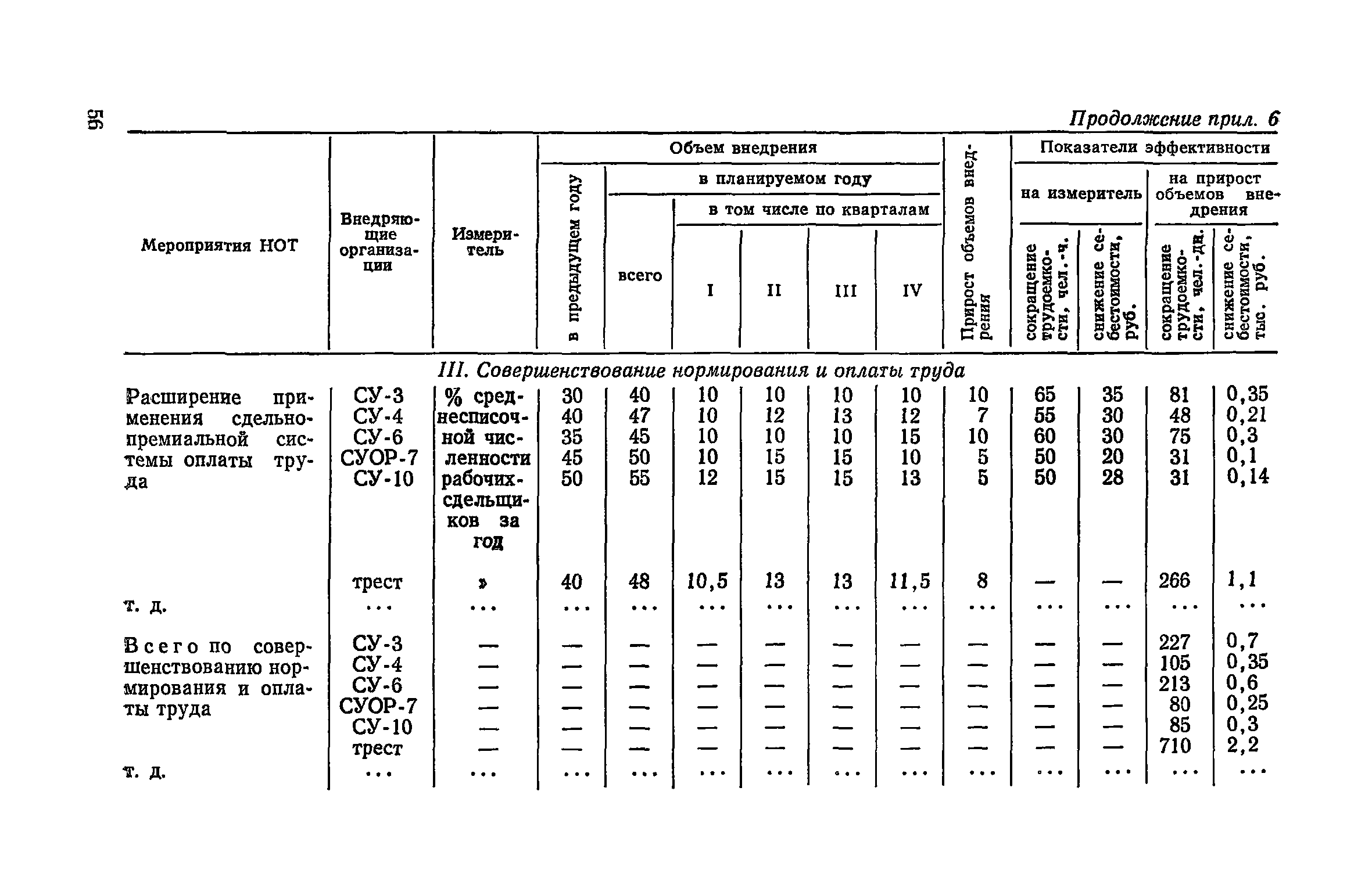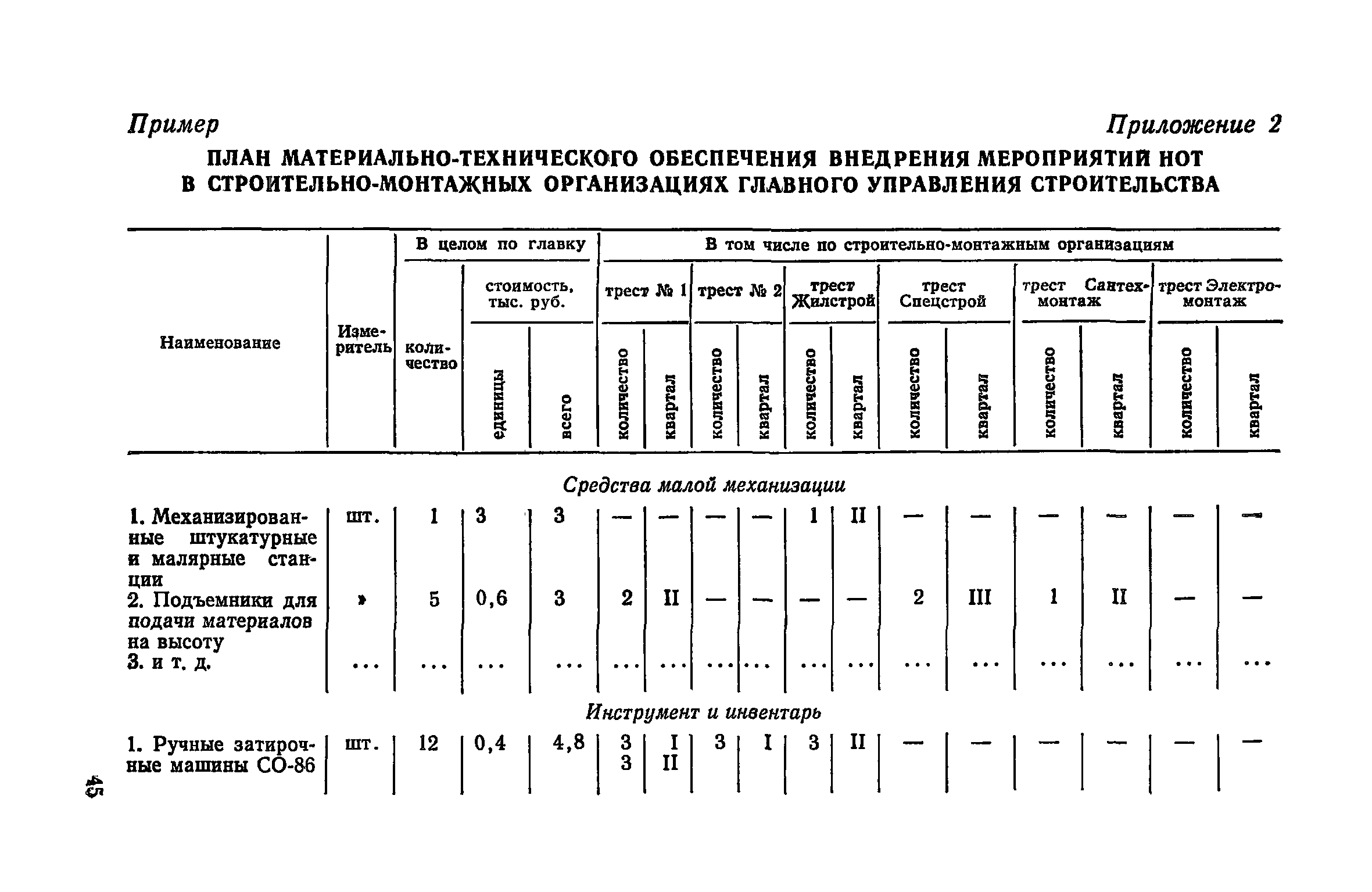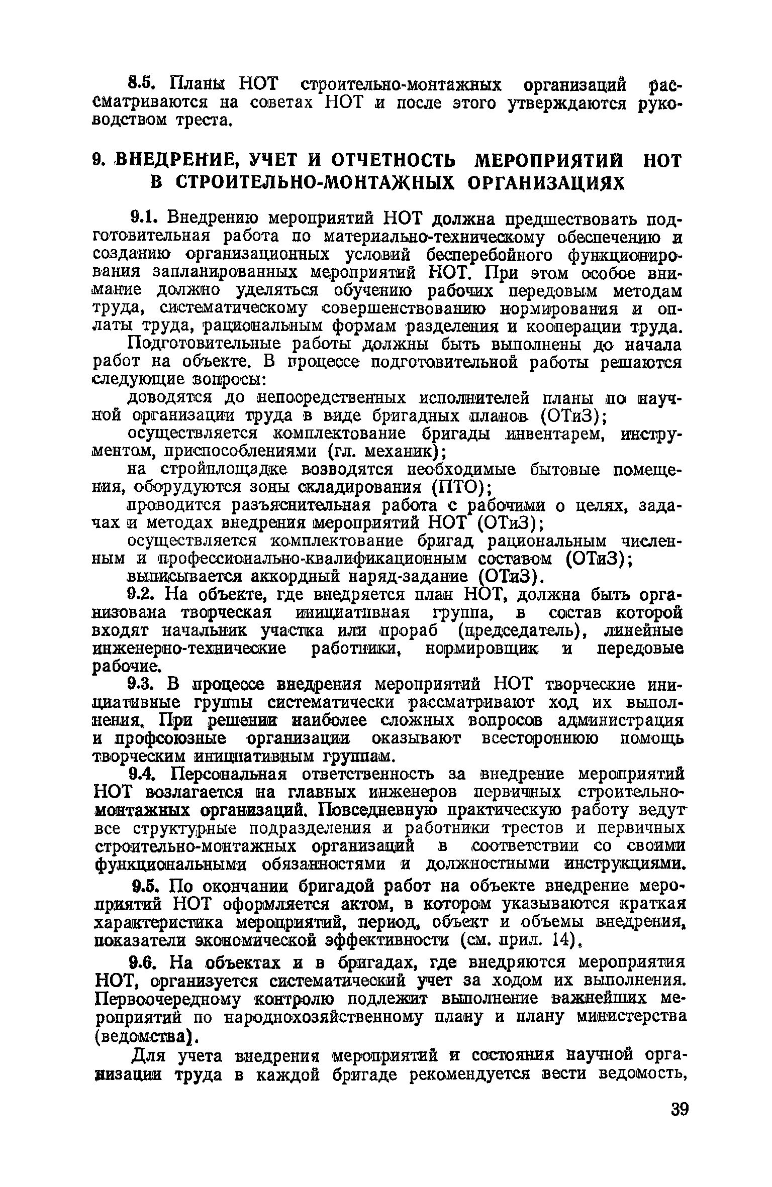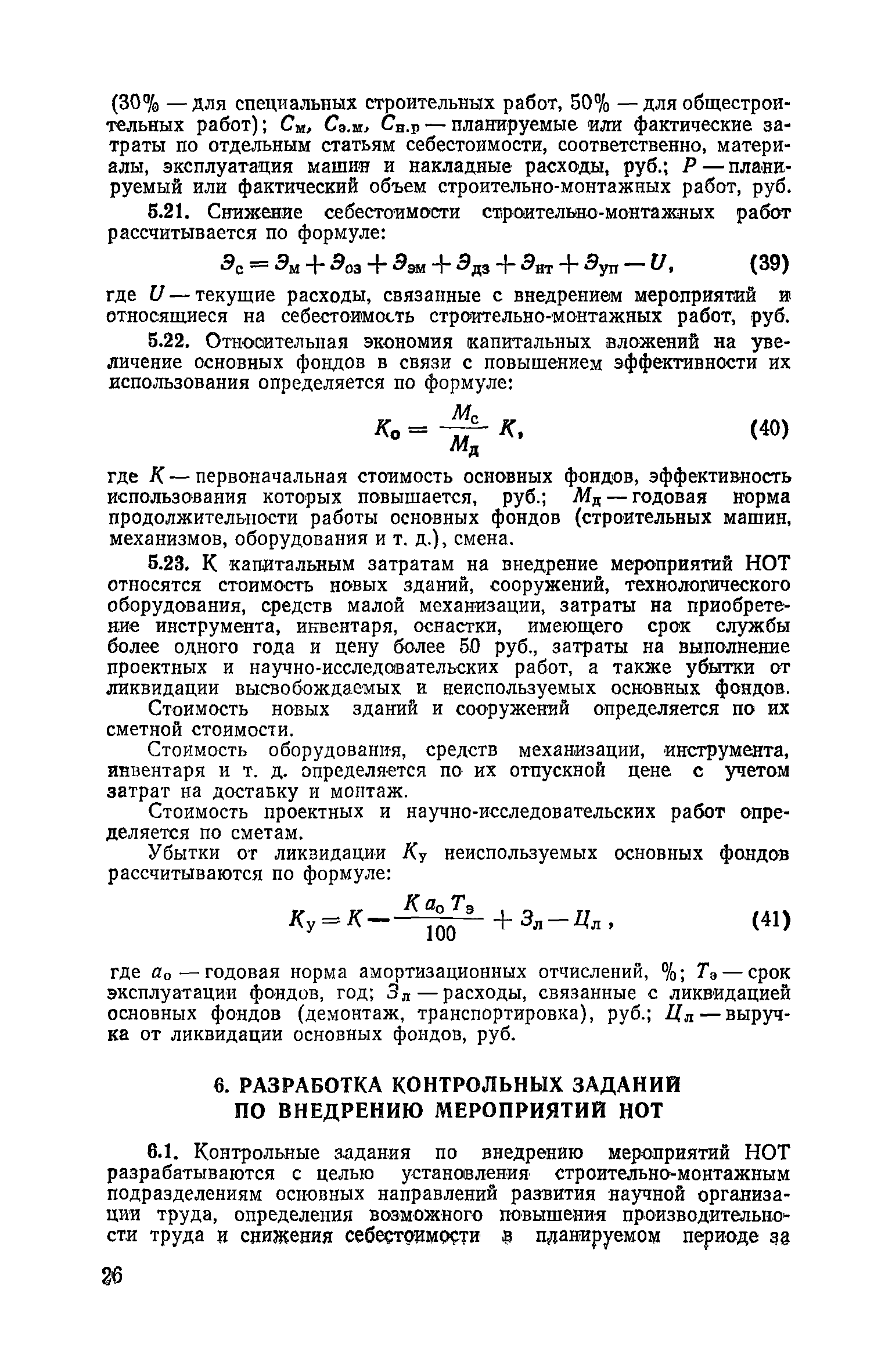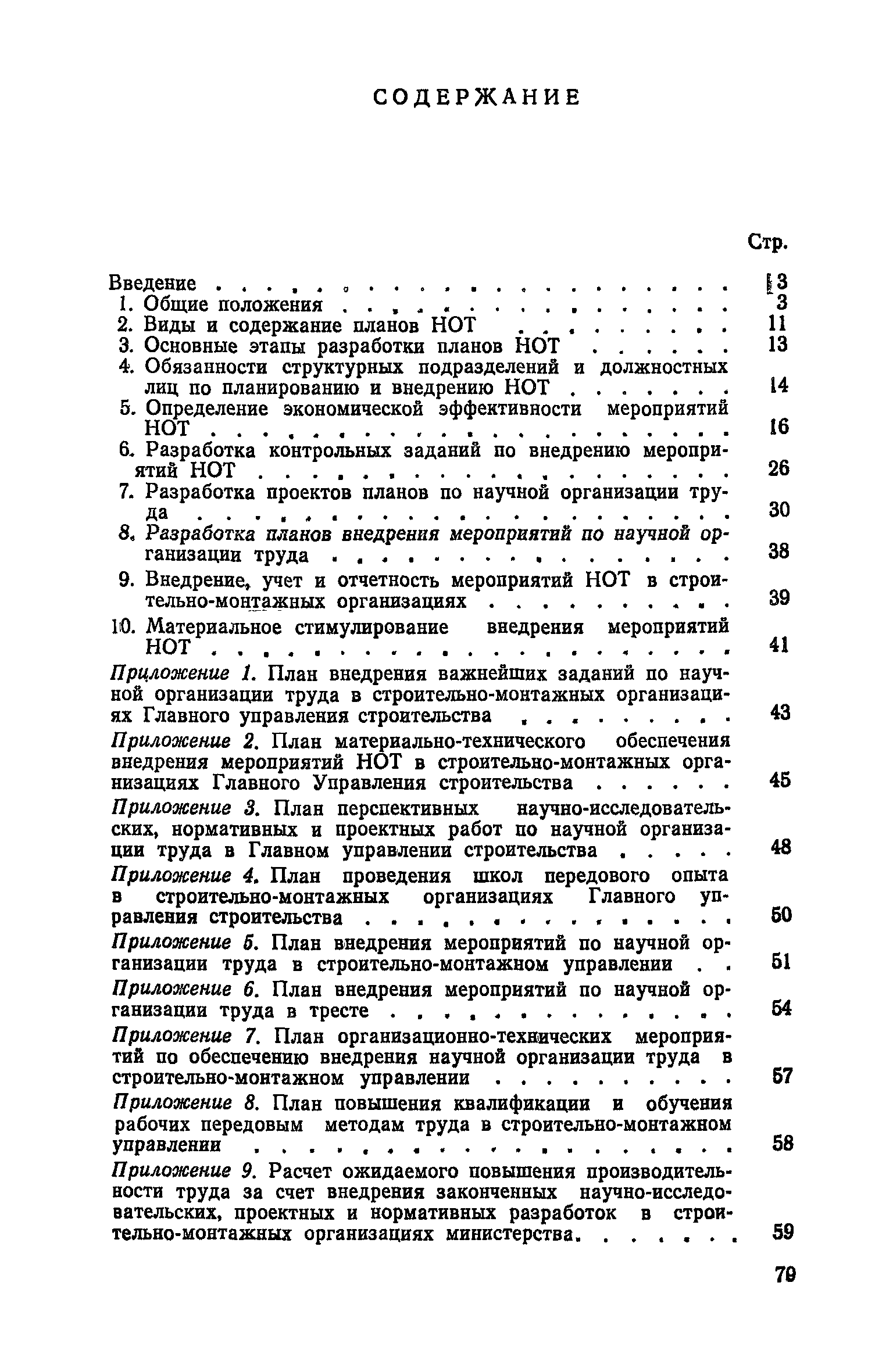 Руководство по планированию и определению экономической эффективности мероприятий НОТ в строительстве| Статус: | справочные материалы, мп, тпр | | Название рус.: | Руководство по планированию и определению экономической эффективности мероприятий НОТ в строительстве | | Дата добавления в базу: | 01.10.2014 | | Дата актуализации: | 01.01.2021 | | Область применения: | Руководство предназначено для инженерно-технических работников строительных подразделений, нормативно-исследовательских станций, институтов и трестов Оргтехстрой, занимающихся планированием и внедрением мероприятий по научной организации труда. | | Оглавление: | Введение 1. Общие положения 2. Виды и содержание планов НОТ 3. Основные этапы разработки планов НОТ 4. Обязанности структурных подразделений и должностных лиц по планированию и внедрению НОТ 5. Определение экономической эффективности мероприятий НОТ 6. Разработка контрольных заданий по внедрению мероприятий НОТ 7. Разработка проектов планов по научной организации труда 8. Разработка планов внедрения мероприятий по научной организации труда 9. Внедрение, учет и отчетность мероприятий НОТ в строительно-монтажных организациях 10. Материальное стимулирование внедрения мероприятий Приложение 1. План внедрения важнейших заданий по научной организации труда в строительно-монтажных организациях Главного управления строительства Приложение 2. План материально-технического обеспечения внедрения мероприятий НОТ в строительно-монтажных организациях Главного Управления строительства Приложение 3. План перспективных научно-исследовательских, нормативных и проектных работ по научной организации труда в Главном управлении строительства Приложение 4. План проведения школ передового опыта в строительно-монтажных организациях Главного управления строительства Приложение 5. План внедрения мероприятий по научной организации труда в строительно-монтажном управлении Приложение 6. План внедрения мероприятий по научной организации труда в тресте Приложение 7. План организационно-технических мероприятий по обеспечению внедрения научной организации труда в строительно-монтажном управлении Приложение 8. План повышения квалификации и обучения рабочих передовым методам труда в строительно-монтажном управлении Приложение 9. Расчет ожидаемого повышения производительности труда за счет внедрения законченных научно-исследовательских, проектных и нормативных разработок в строительно-монтажных организациях министерства Приложение 10. Расчет ожидаемого повышения производительности труда в результате выделения материально-технических средств для внедрения мероприятий НОТ .... Приложение 11. Расчет ожидаемого повышения производительности труда за счет расширения объемов и повышения эффективности внедрения мероприятий НОТ в строительно-монтажных организациях министерства Приложение 12. Перечень научно-исследовательских, нормативных и проектных разработок, рекомендуемых к внедрению в строительно-монтажных организациях министерства Приложение 13. Показатели количественной оценки уровня организации труда в бригадах Приложение 14. Акт о внедрении мероприятий по научной организации труда (НОТ) Приложение 15. Ведомость учета работы бригады штукатуров Приложение 16. Учет внедрения новых и пересмотра действующих местных норм