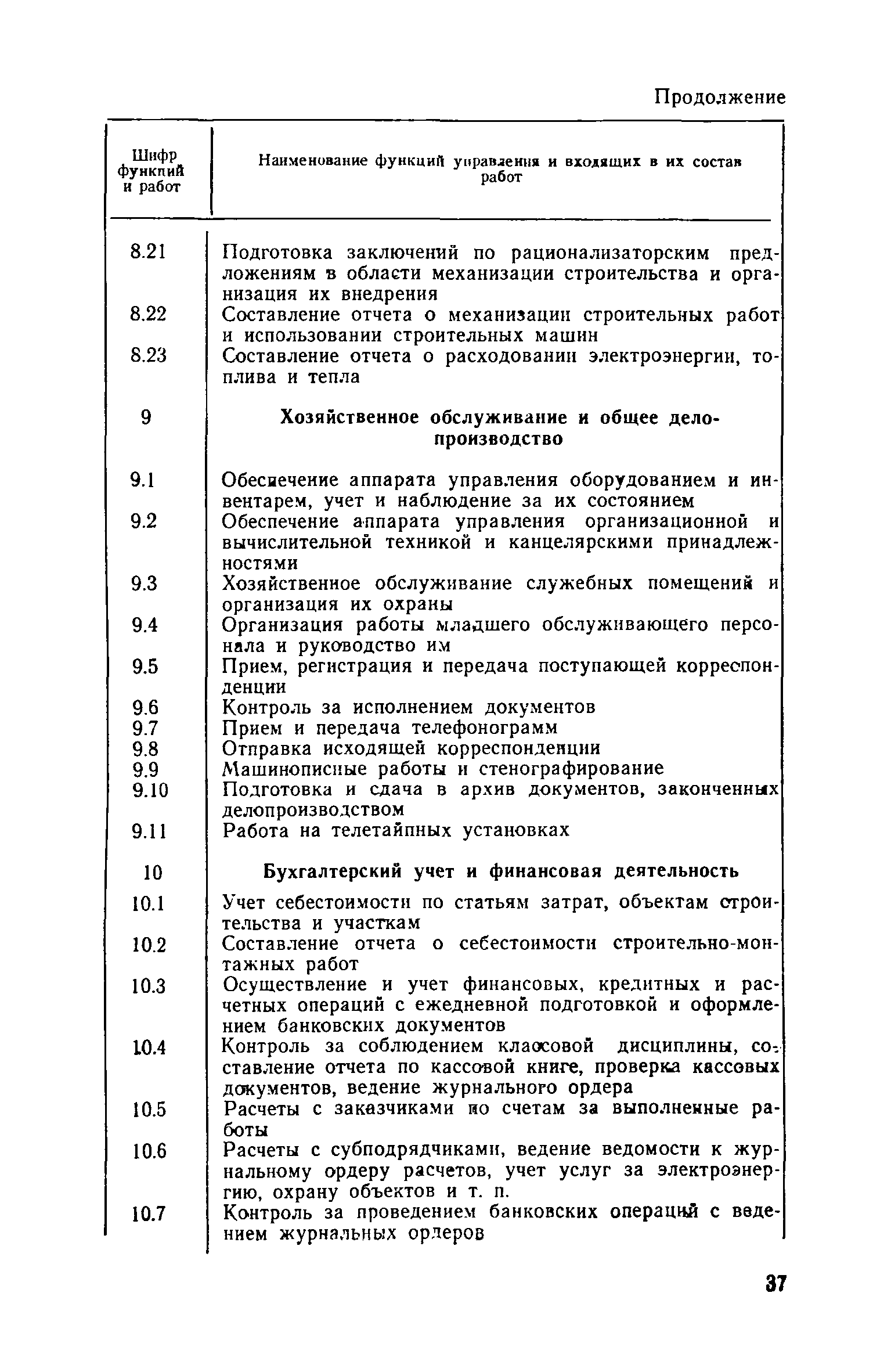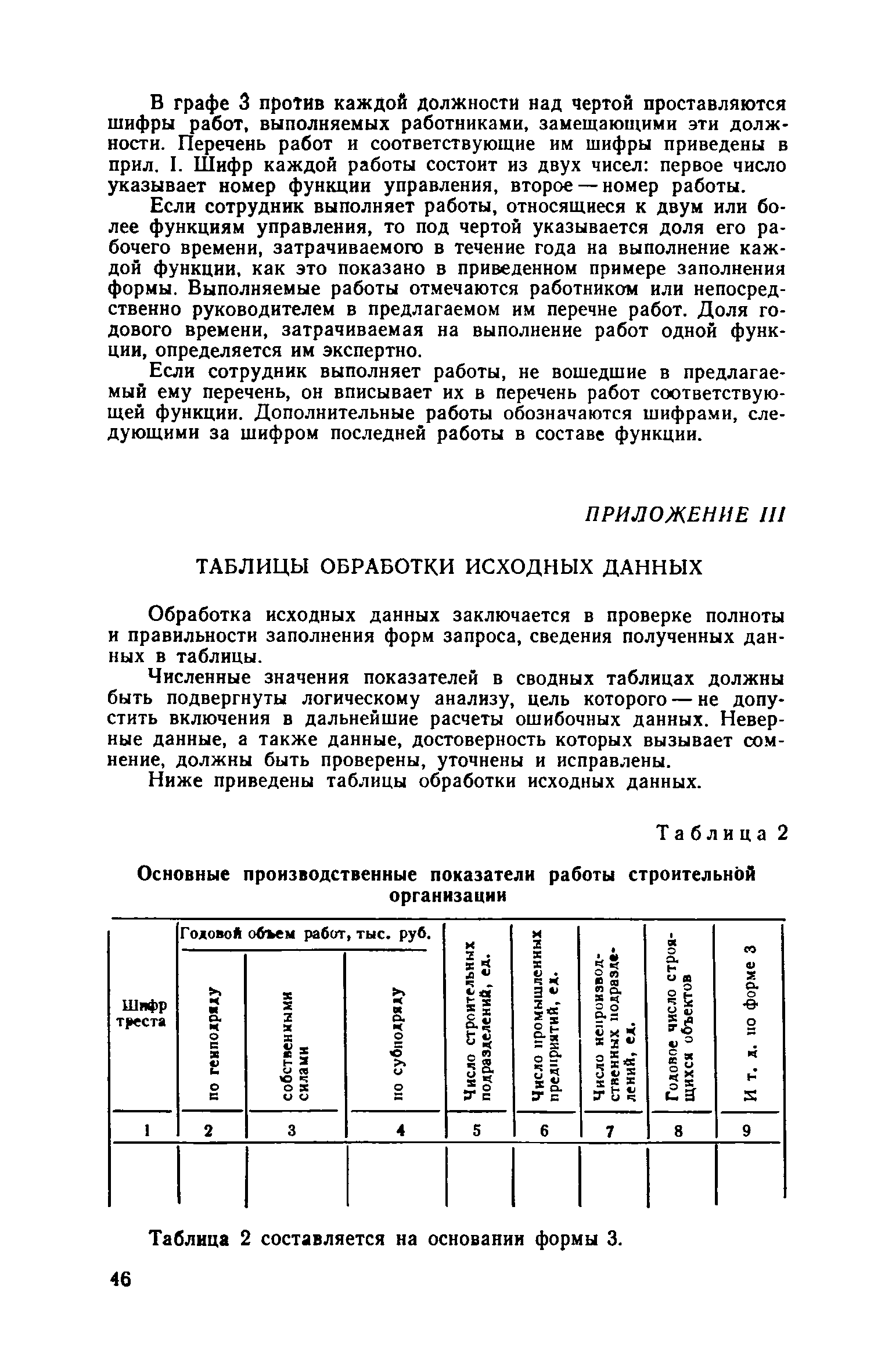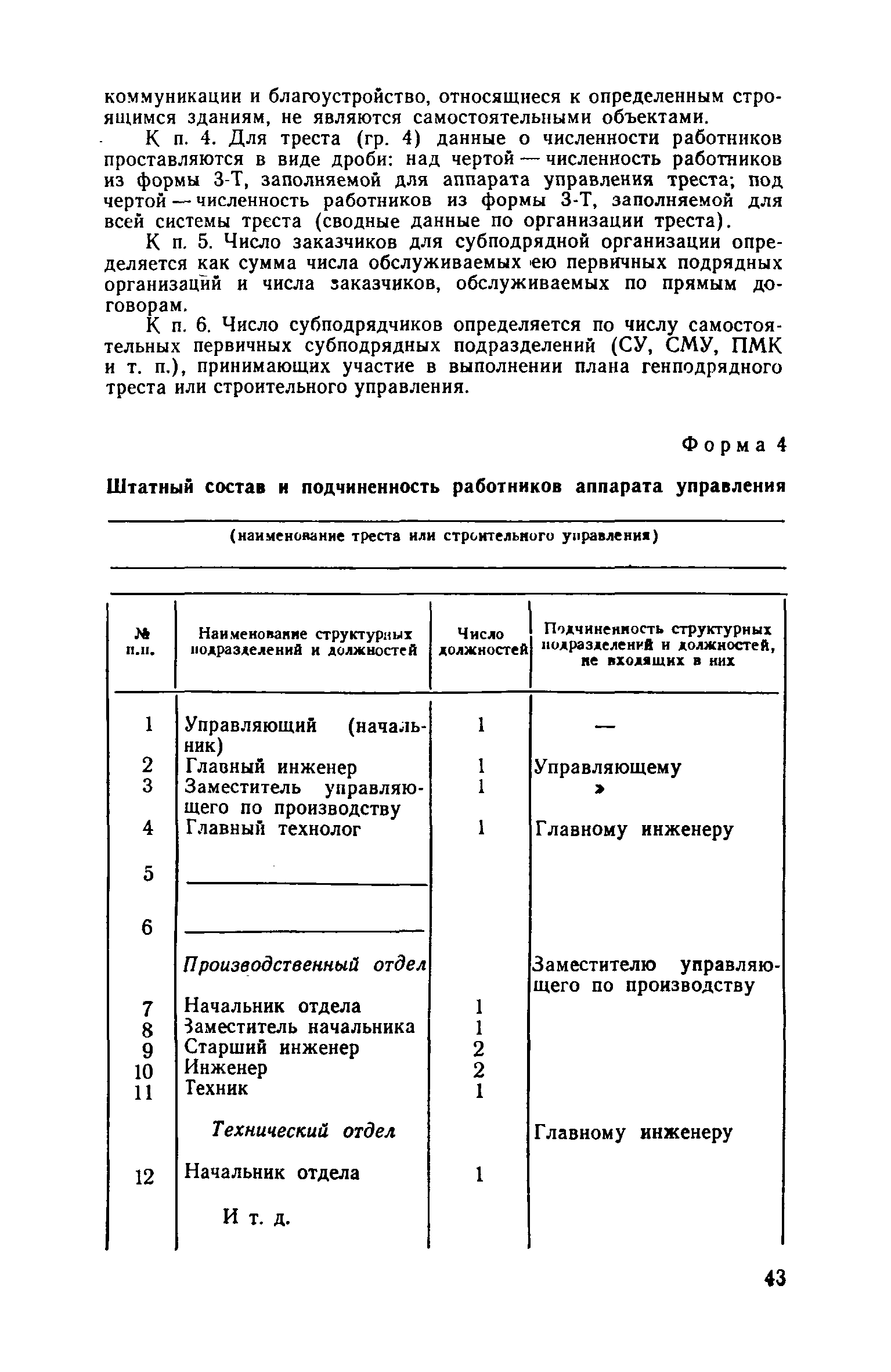 | Оглавление: | Введение 1. Общие положения 2. Определение состава и содержания функций управления 3. Определение факторов, влияющих на численность ИТР и служащих 4. Исходные данные для разработки нормативов численности, их сбор и обработка 5. Получение нормативных формул и их интерпретация 6. Оптимизация численности ИТР и служащих 7. Построение таблиц нормативов 8. Распределение нормативной численности работников между уровнями управления 9. Построение структурных схем аппарата управления 10. Формирование структурных подразделений аппарата управления 11. Опытная проверка проекта нормативов численности ИТР и служащих Приложение I. Перечень функций управления н входящих в их состав работ аппарата треста и СУ Приложение II. Формы запроса исходных данных и обследования работы аппарата управления Приложение III. Таблицы обработки исходных данных |