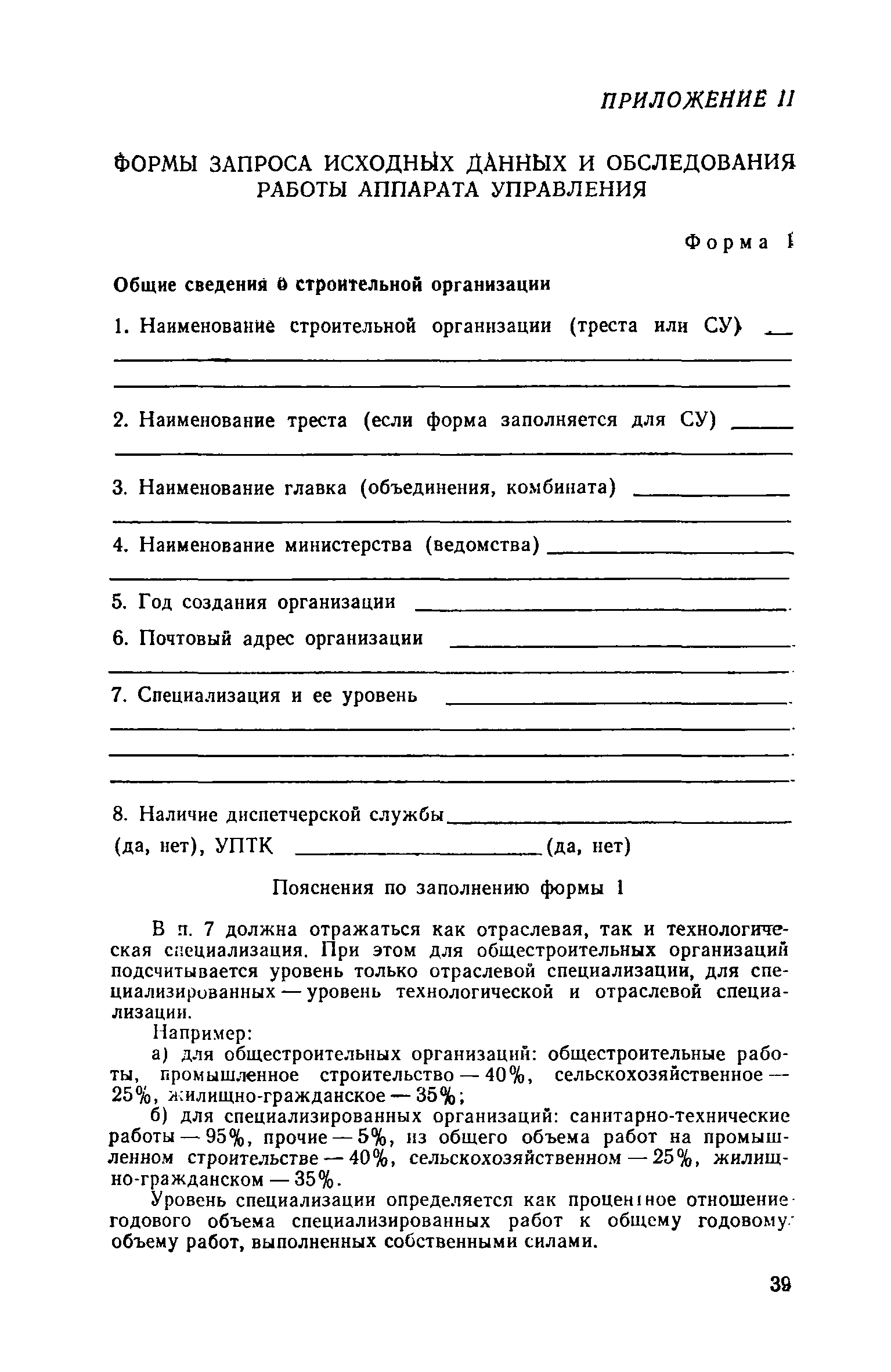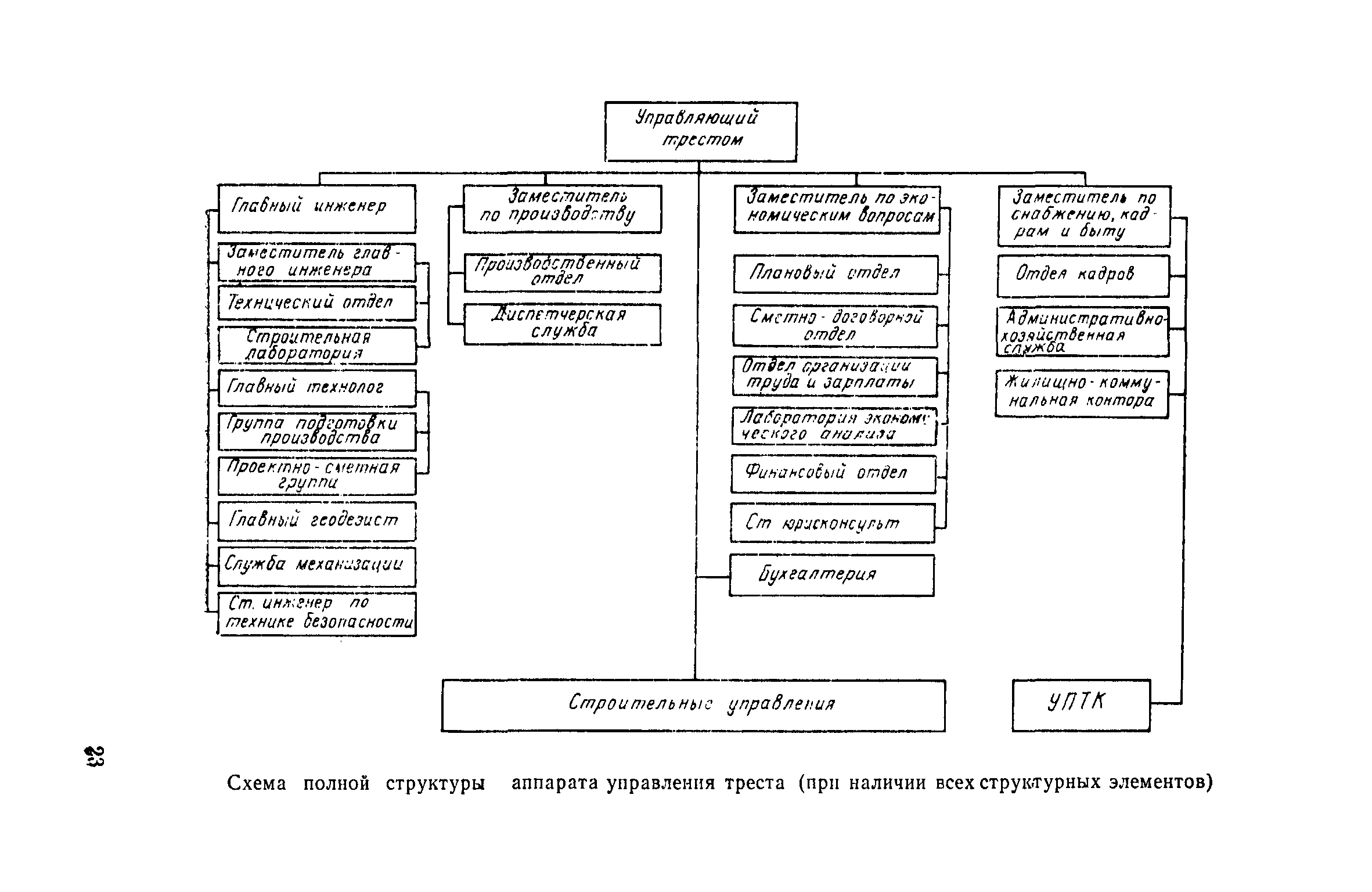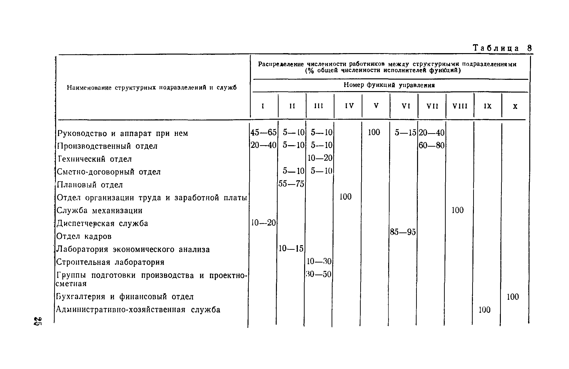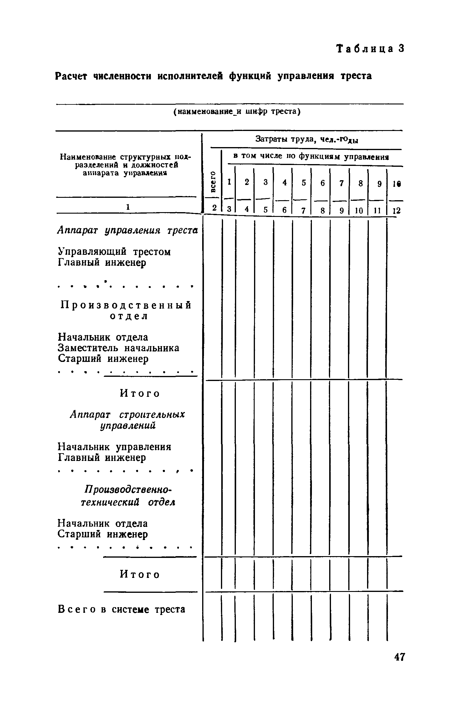| Оглавление: | Введение 1. Общие положения 2. Определение состава и содержания функций управления 3. Определение факторов, влияющих на численность ИТР и служащих 4. Исходные данные для разработки нормативов численности, их сбор и обработка 5. Получение нормативных формул и их интерпретация 6. Оптимизация численности ИТР и служащих 7. Построение таблиц нормативов 8. Распределение нормативной численности работников между уровнями управления 9. Построение структурных схем аппарата управления 10. Формирование структурных подразделений аппарата управления 11. Опытная проверка проекта нормативов численности ИТР и служащих Приложение I. Перечень функций управления н входящих в их состав работ аппарата треста и СУ Приложение II. Формы запроса исходных данных и обследования работы аппарата управления Приложение III. Таблицы обработки исходных данных |