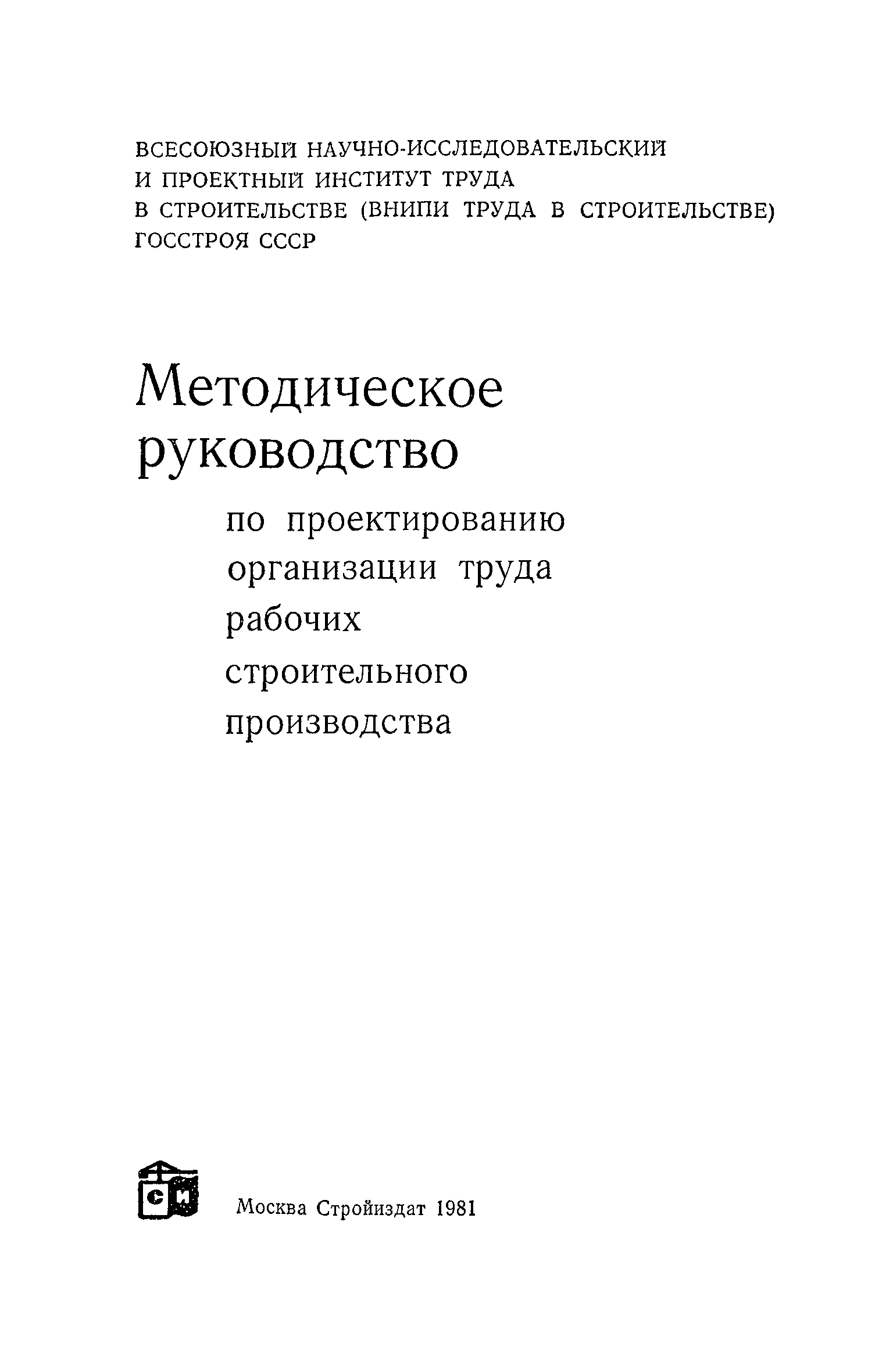 | Название рус.: | Методическое руководство по проектированию организации труда рабочих строительного производства |