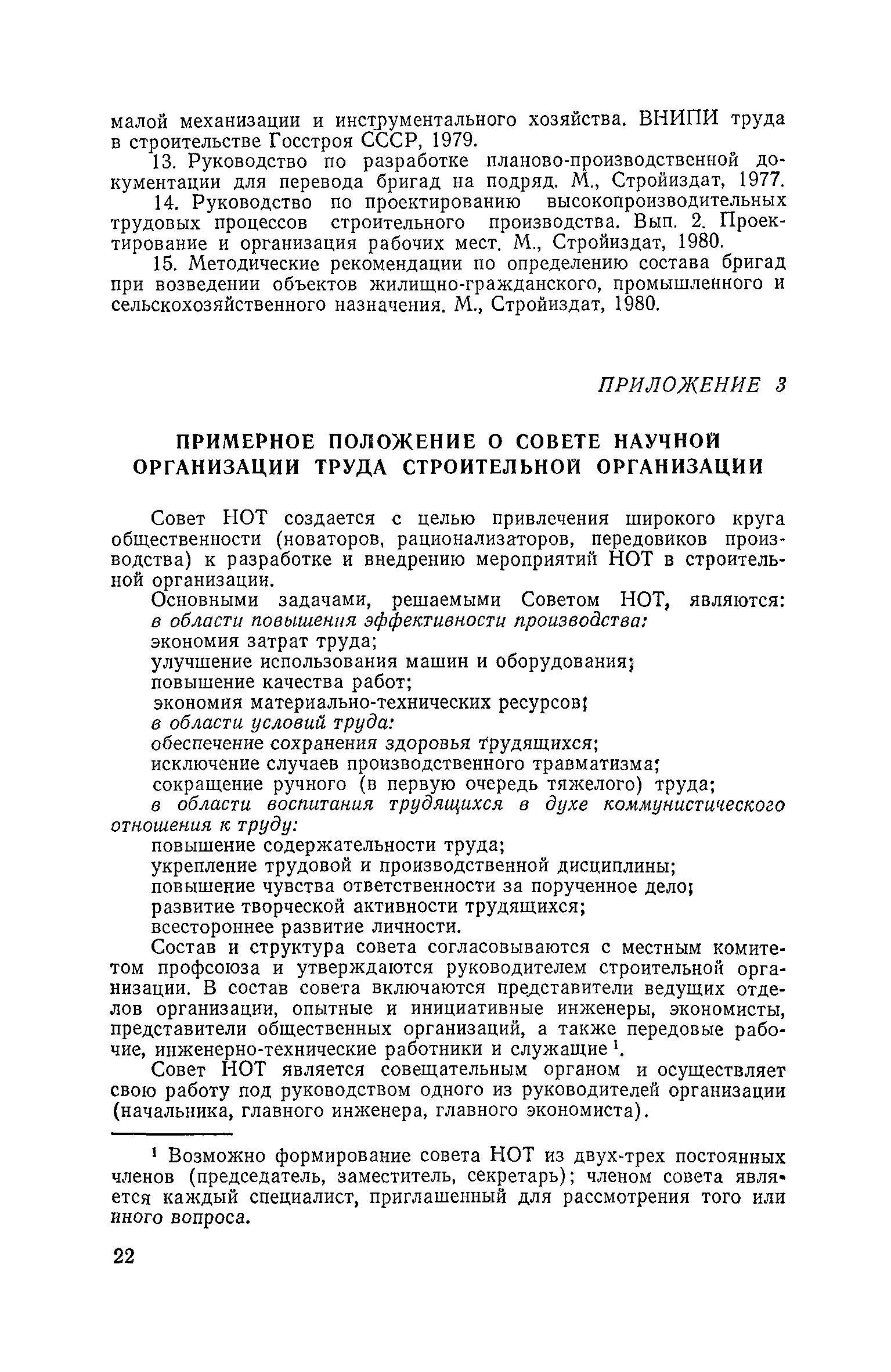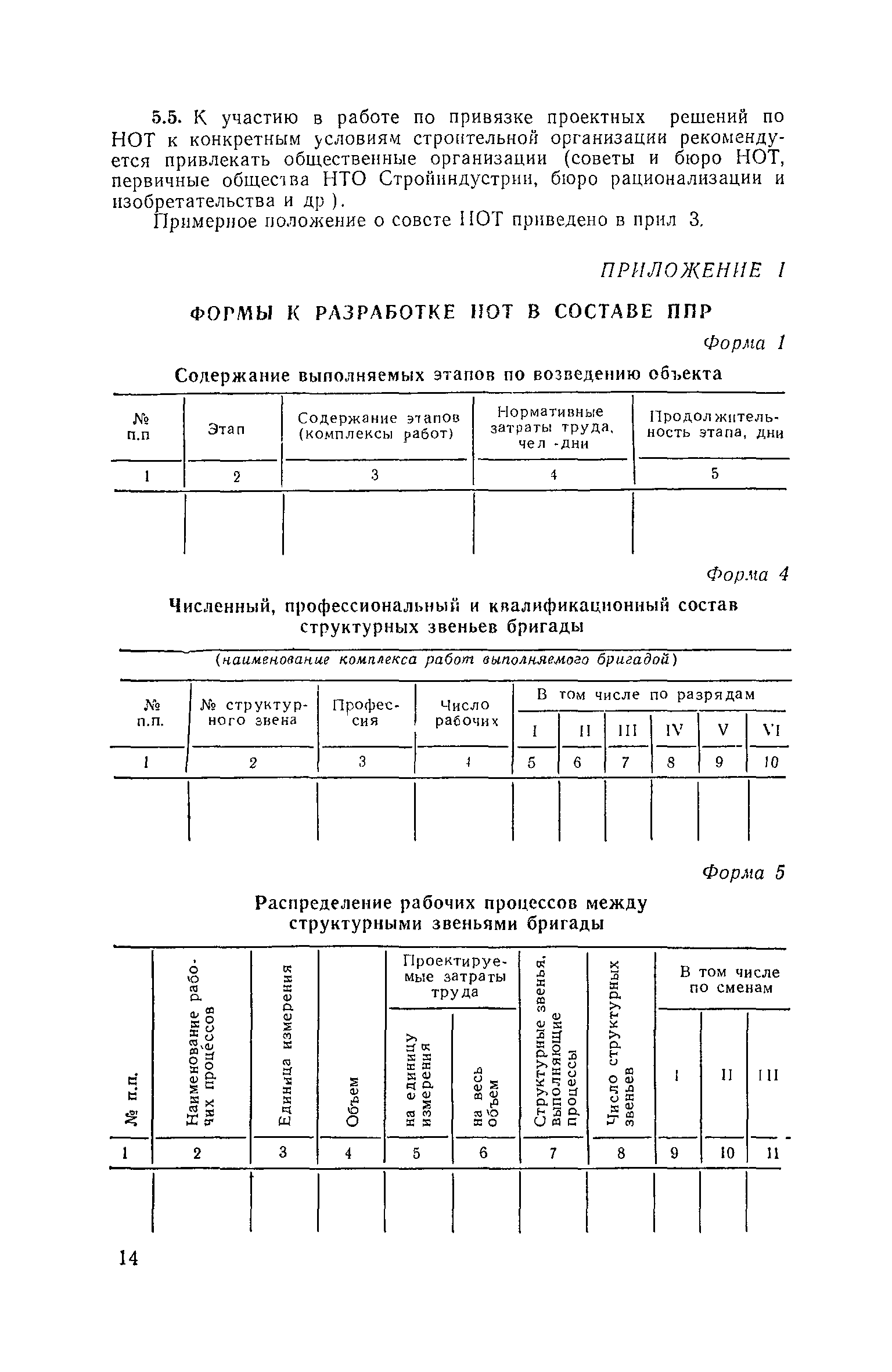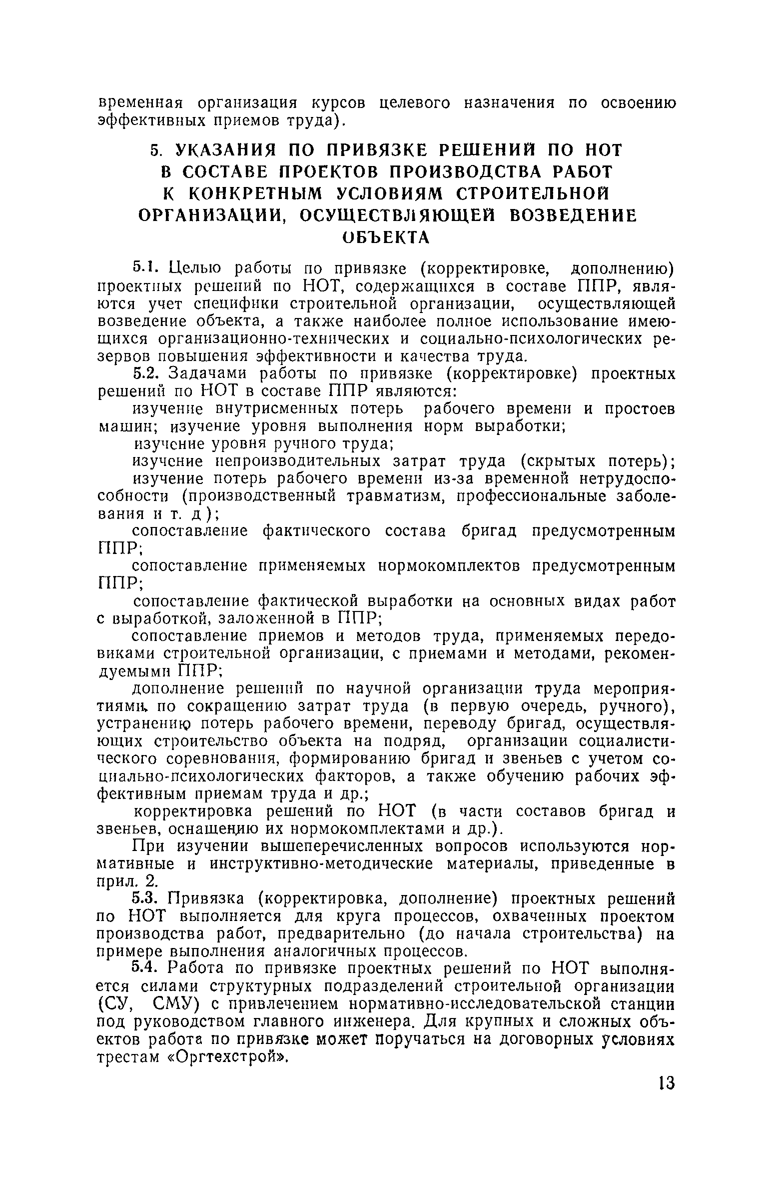 | Оглавление: | Предисловие 1, Общие положения 2. Разработка решений по рациональному разделению и кооперации труда 3. Разработка решений по рациональному оснащению, обслуживанию и планировке рабочих мест 4. Разработка решений по обеспечению применения наиболее эффективных приемов труда в процессе реализации ППР 5. Указания по привязке решений по НОТ в составе проектов производства работ к конкретным условиям строительной организации, осуществляющей возведение объекта Приложение 1. Формы к разработке НОТ в составе ППР . Приложение 2. Перечень нормативных и инструктивно-методических материалов, рекомендуемых для использования при разработке решений по научной организации труда в составе ППР и последующей их привязке Приложение 3. Примерное положение о совете научной организации труда строительной организации |