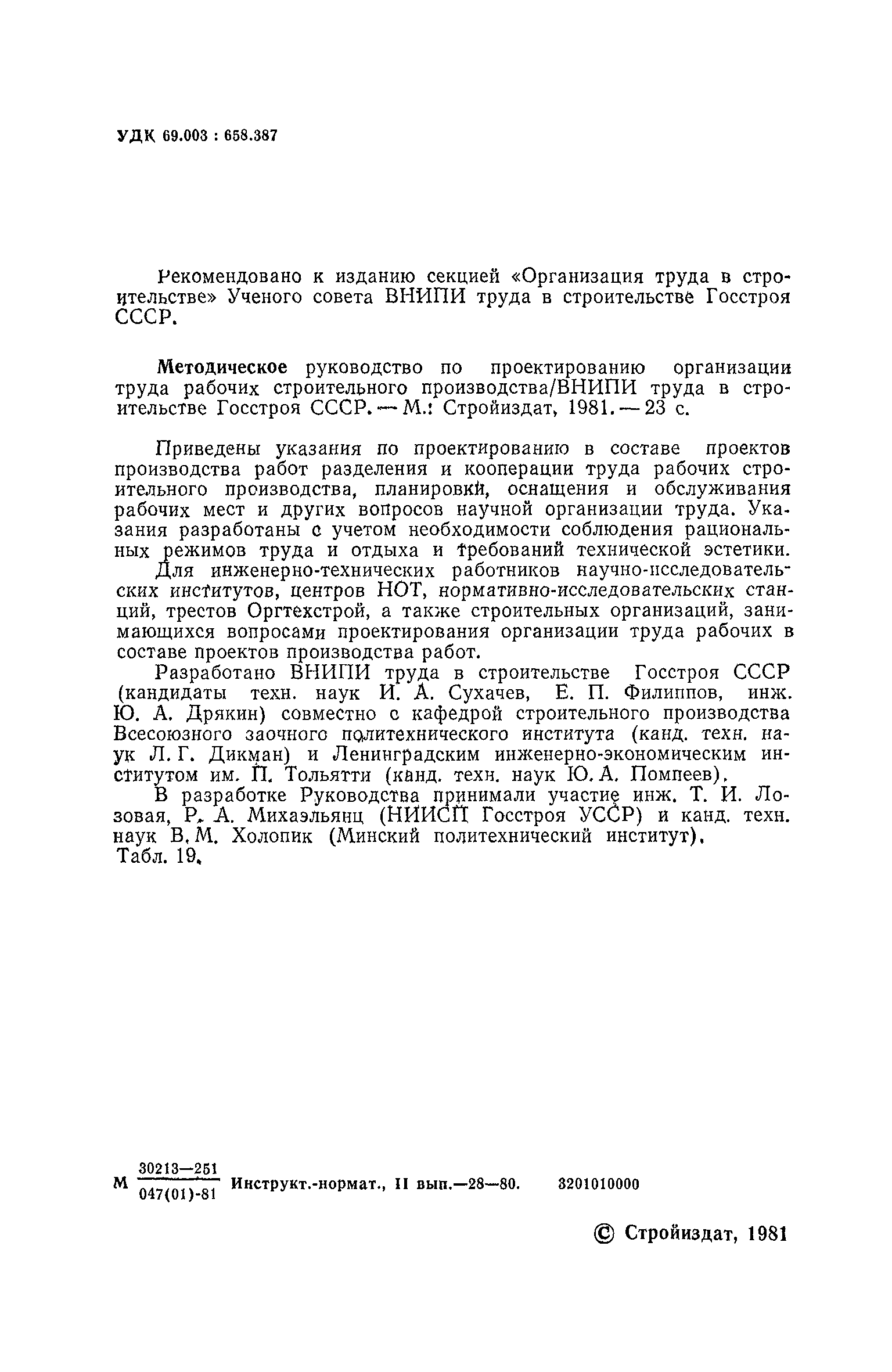 | Разработан: | НИИСП Госстроя УССР ВНИПИ труда в строительстве Госстроя СССР Минский политехнический институт |