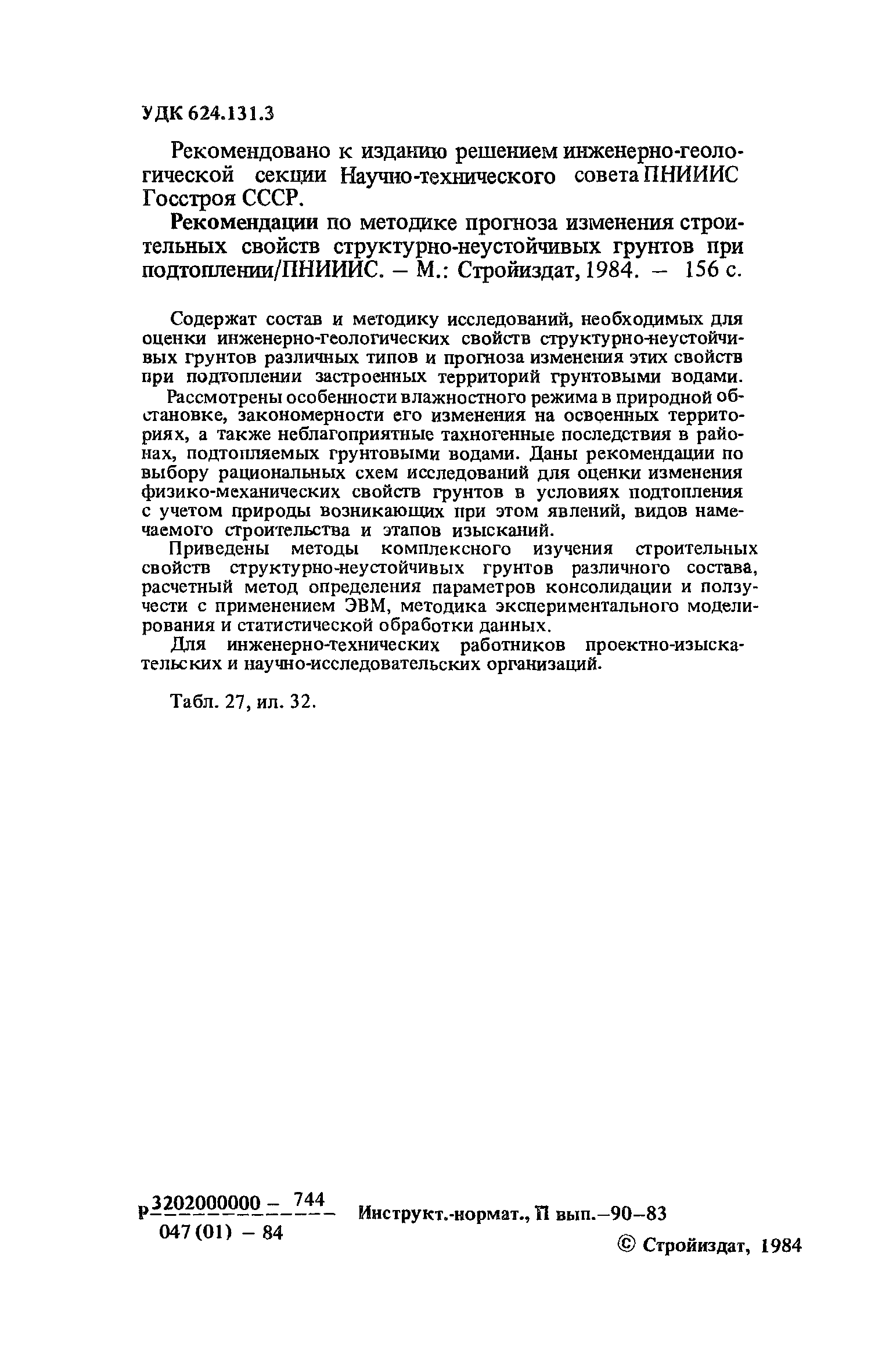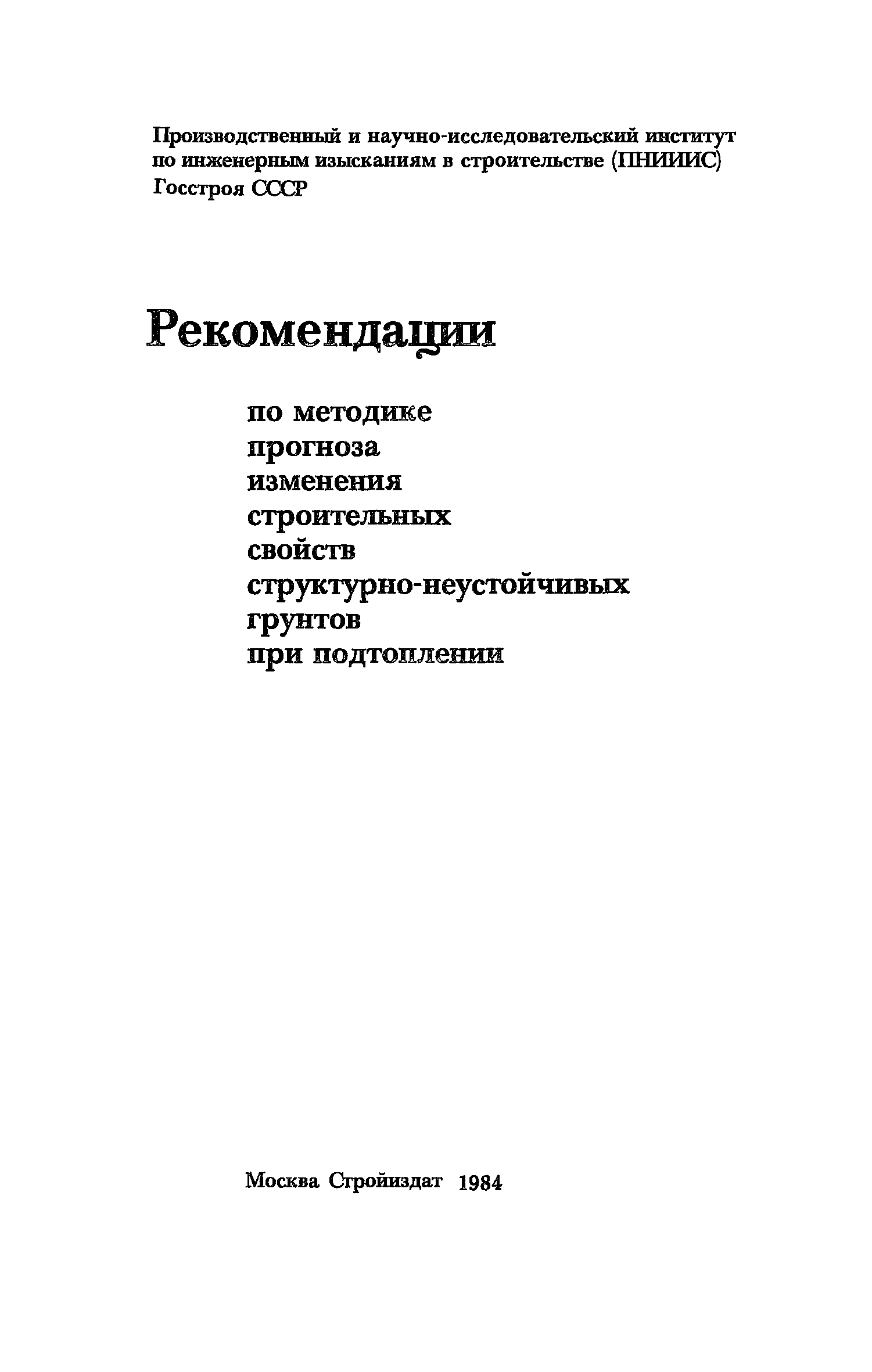 | Название рус.: | Рекомендации по методике прогноза изменения строительных свойств структурно-неустойчивых грунтов при подтоплении |