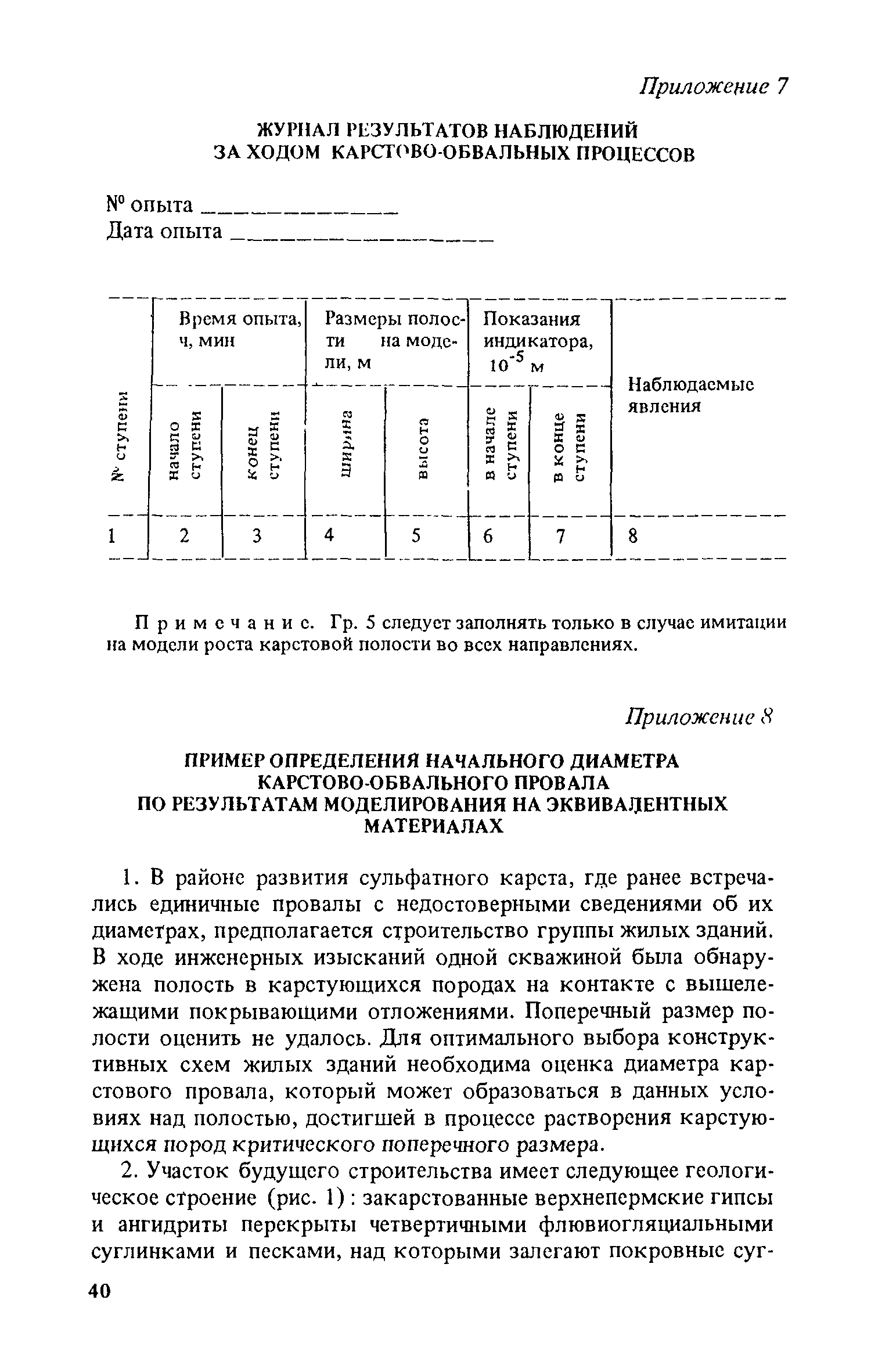 Рекомендации по лабораторному физическому моделированию карстовых процессов| Статус: | справочные материалы, мп, тпр | | Название рус.: | Рекомендации по лабораторному физическому моделированию карстовых процессов | | Дата добавления в базу: | 01.10.2014 | | Дата актуализации: | 01.01.2021 | | Область применения: | В документе рассмотрены основные принципы, методика и технология лабораторного физического моделирования карстовых процессов. Дано описание конструкций экспериментальных установок и приемов работы с ними, рассмотрены природные условия, которые могут воспроизводиться с их помощью, указаны основные критерии подобия, которые должны соблюдаться при моделировании. Приведены примеры решения некоторых задач, связанных с оценкой карстоопасности на основе лабораторного физического моделирования карстовых процессов. Для инженерно-технических работников проектных, изыскательских и научно-исследовательских организаций. | | Оглавление: | Введение 1. Общие положения 2. Основные принципы лабораторного физического моделирования карстовых процессов Моделирование процессов растворения карстующихся пород Моделирование карстово-обвальных процессов Моделирование карстово-суффозионных процессов 3. Экспериментальное оборудование Оборудование для лабораторного изучения скорости растворения карстующихся пород Оборудование для моделирования карстово-обвальных процессов методом эквивалентных материалов Оборудование для лоткового моделирования карстово-суффозионных процессов 4. Методика лабораторного физического моделирования карстовых процессов Методика лабораторного химико-кинетического моделирования процессов растворения карстующихся пород Методика моделирования карстово-обвальных процессов на эквивалентных материалах Методика моделирования карстово-суффозионных процессов на установке системы В.П. Хоменко Приложение 1. Основные буквенные обозначения Приложение 2. Журнал исходных данных для моделирования процессов растворения карстующихся пород Приложение 3. Журнал результатов наблюдений за ходом растворения карстующихся пород Приложение 4. Пример оценки скорости роста карстовой полости по результатам химико-кинетического моделирования процессов растворения карстующихся пород Приложение 5. Журнал результатов пробных определений свойств эквивалентного материала Приложение 6. Журнал исходных данных для моделирования карстово-обвальных процессов Приложение 7. Журнал результатов наблюдений за ходом карстово-обвальных процессов Приложение 8. Пример определения начального диаметра карстово-обвального провала по результатам моделирования на эквивалентных материалах Приложение 9. Журнал результатов определения коэффициента фильтрации материала модели Приложение 10. Журнал исходных данных для моделирования карстово-суффозионных процессов Приложение 11. Журнал результатов наблюдений за ходом карстово-суффозионных процессов Приложение 12. Пример определения величины критического снижения пьезометрического напора трещинно-карстовых вод по результатам моделирования на установке системы В.П. Хоменко | | Разработан: | ПНИИИС Госстроя СССР (PNIIS, Gosstroy (USSR) )