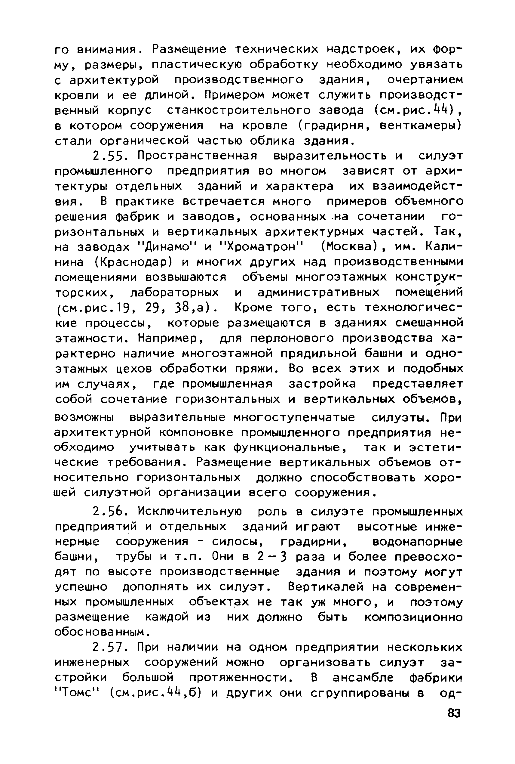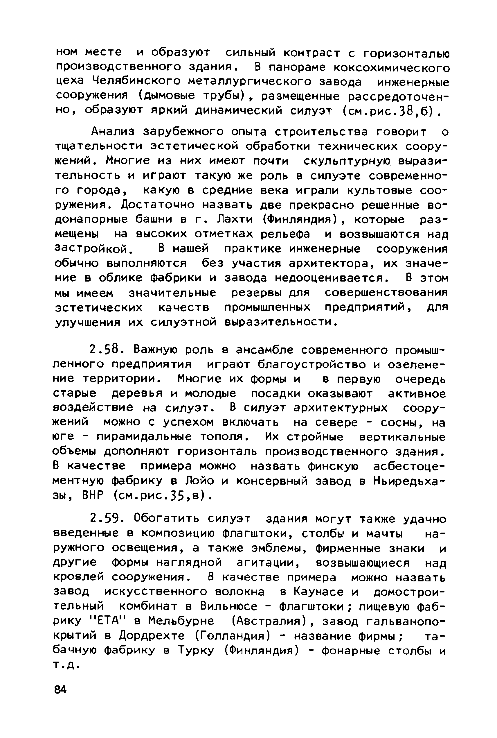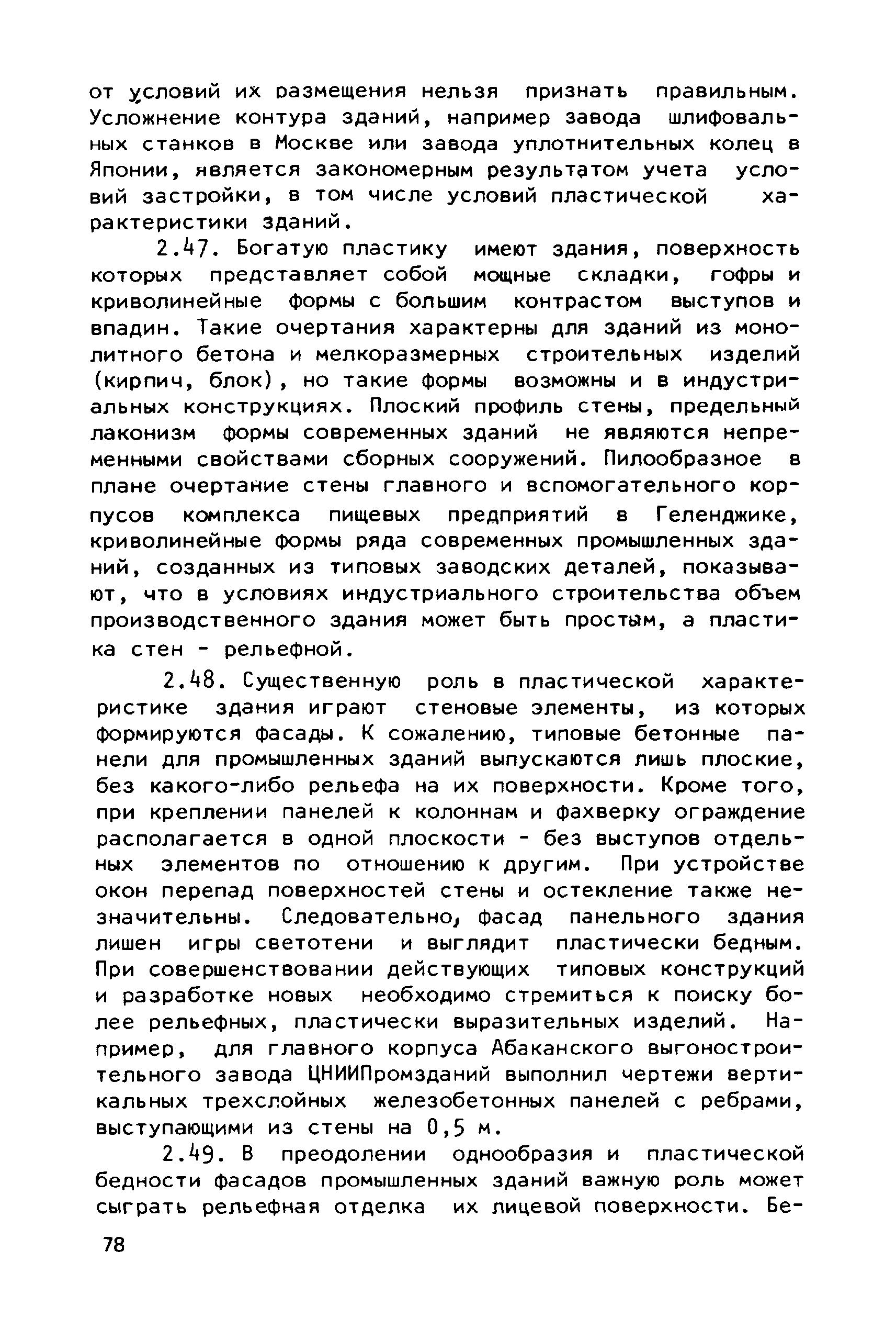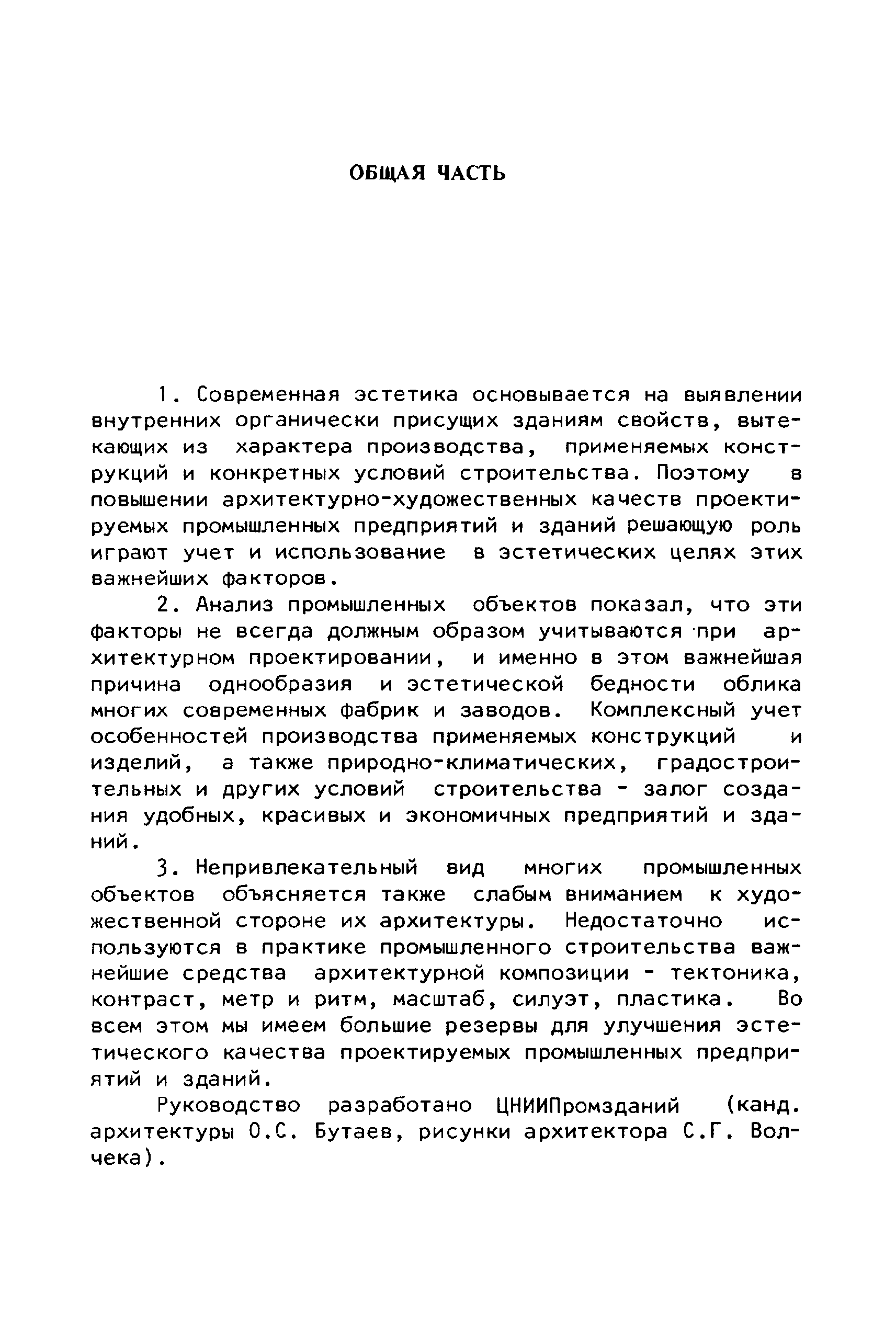 Руководство по совершенствованию эстетических качеств промышленных предприятий| Статус: | справочные материалы, мп, тпр | | Название рус.: | Руководство по совершенствованию эстетических качеств промышленных предприятий | | Дата добавления в базу: | 01.10.2014 | | Дата актуализации: | 01.01.2021 | | Область применения: | В документе рассмотрены пути достижения своеобразия и художественной выразительности промышленных предприятий и зданий; на лучших примерах из современной практики даны приемы выявления специфики производства, климатических, градостроительных и ситуационных особенностей района строительства. Приведены эффективные приемы совершенствования эстетических качеств промышленных предприятий и зданий с помощью элементов и средств архитектурной композиции — художественного контраста, ритма. архитектурного масштаба, пластики, силуэта и пр. Для архитекторов-проектировщиков и студентов архитектурно-строительных вузов. | | Оглавление: | Общая часть Раздел 1. Использование факторов, определяющих архитектурную композицию промышленных предприятий А. Функциональное назначение предприятий и зданий Б. Индустриальные конструкции и материалы В. Градостроительные условия Г. Природный ландшафт участка Д. Климатические особенности местности Раздел 2. Использование элементов и средств архитектурной композиции А. Выявление тектоники зданий Б. Применение художественного контраста В. Использование метроритмических закономерностей Г. Создание выразительного масштаба сооружений Д. Приемы обогащения пластики фасадов Е. Формирование силуэта застройки | | Разработан: | ЦНИИпромзданий