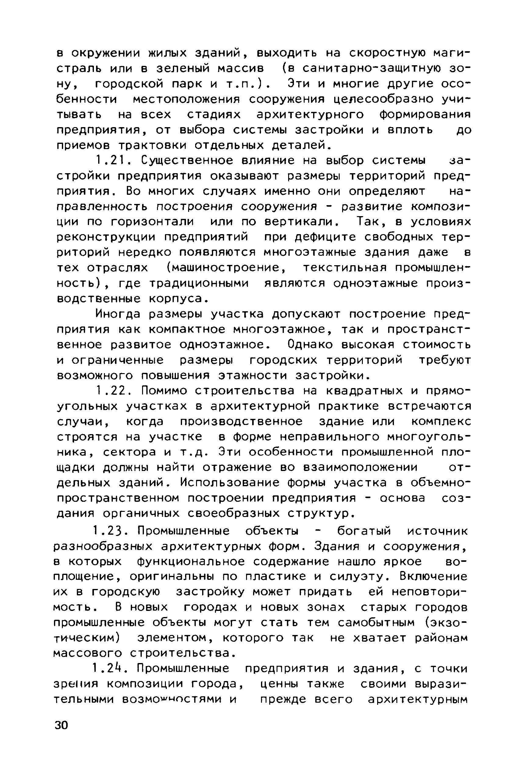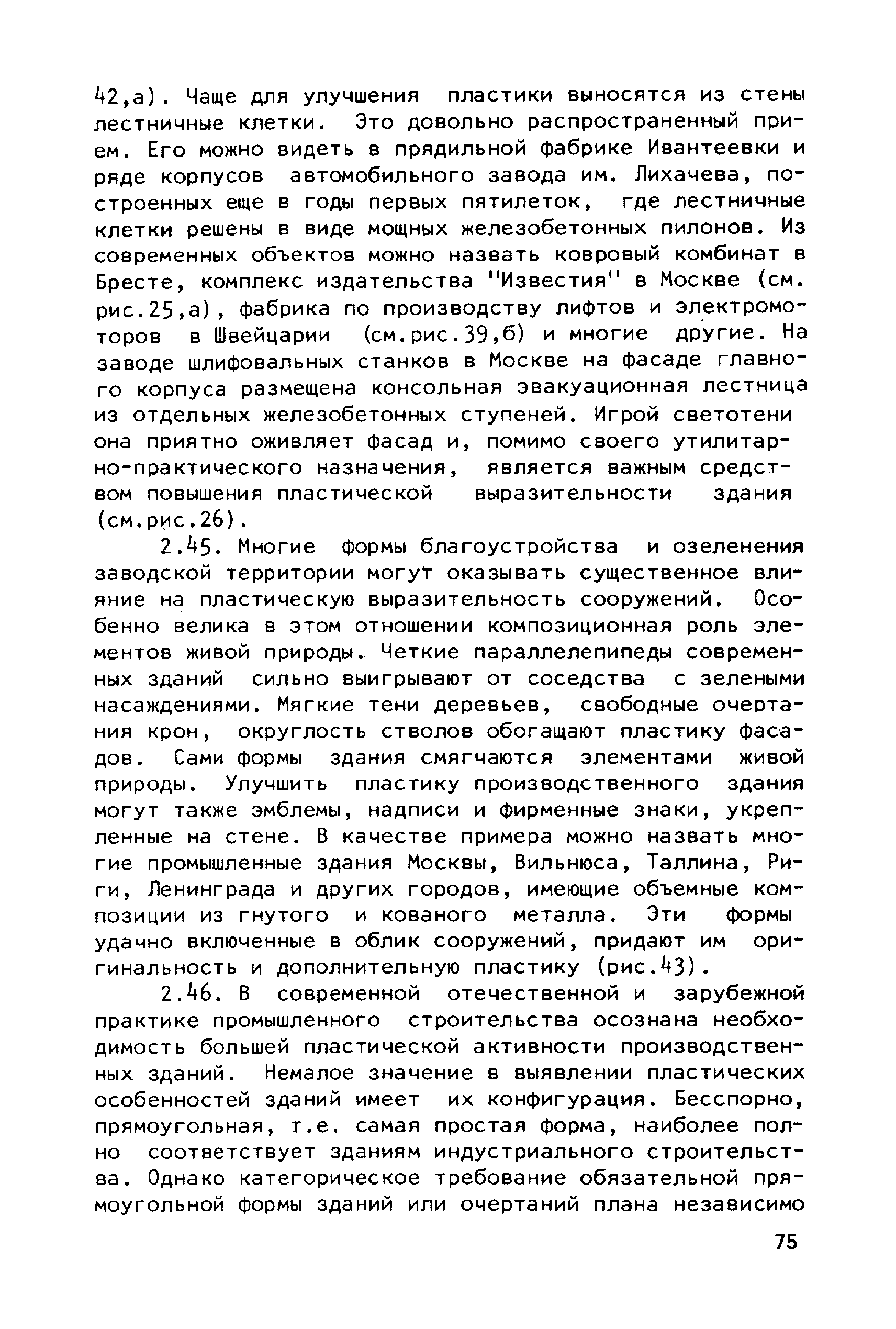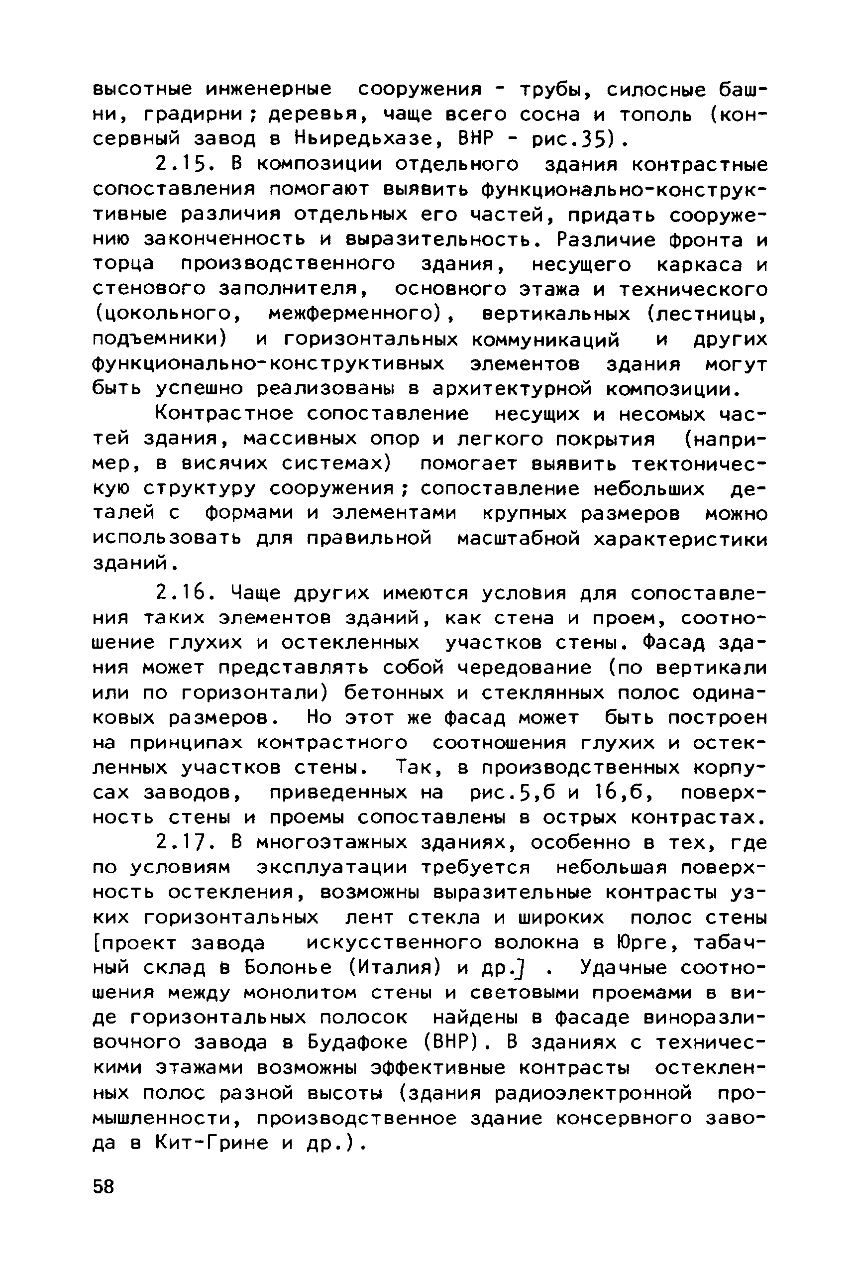 Руководство по совершенствованию эстетических качеств промышленных предприятий| Статус: | справочные материалы, мп, тпр | | Название рус.: | Руководство по совершенствованию эстетических качеств промышленных предприятий | | Дата добавления в базу: | 01.10.2014 | | Дата актуализации: | 01.01.2021 | | Область применения: | В документе рассмотрены пути достижения своеобразия и художественной выразительности промышленных предприятий и зданий; на лучших примерах из современной практики даны приемы выявления специфики производства, климатических, градостроительных и ситуационных особенностей района строительства. Приведены эффективные приемы совершенствования эстетических качеств промышленных предприятий и зданий с помощью элементов и средств архитектурной композиции — художественного контраста, ритма. архитектурного масштаба, пластики, силуэта и пр. Для архитекторов-проектировщиков и студентов архитектурно-строительных вузов. | | Оглавление: | Общая часть Раздел 1. Использование факторов, определяющих архитектурную композицию промышленных предприятий А. Функциональное назначение предприятий и зданий Б. Индустриальные конструкции и материалы В. Градостроительные условия Г. Природный ландшафт участка Д. Климатические особенности местности Раздел 2. Использование элементов и средств архитектурной композиции А. Выявление тектоники зданий Б. Применение художественного контраста В. Использование метроритмических закономерностей Г. Создание выразительного масштаба сооружений Д. Приемы обогащения пластики фасадов Е. Формирование силуэта застройки | | Разработан: | ЦНИИпромзданий