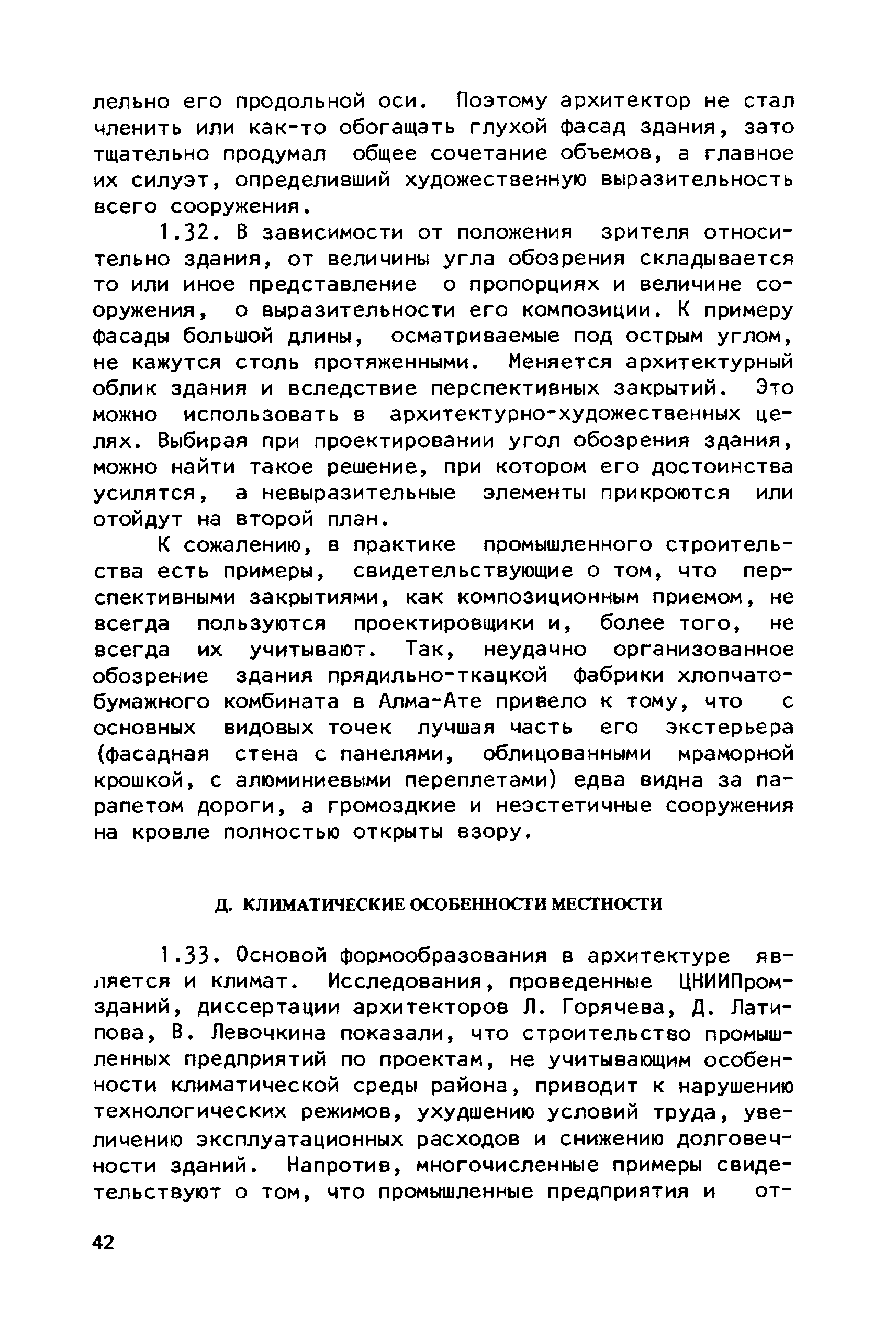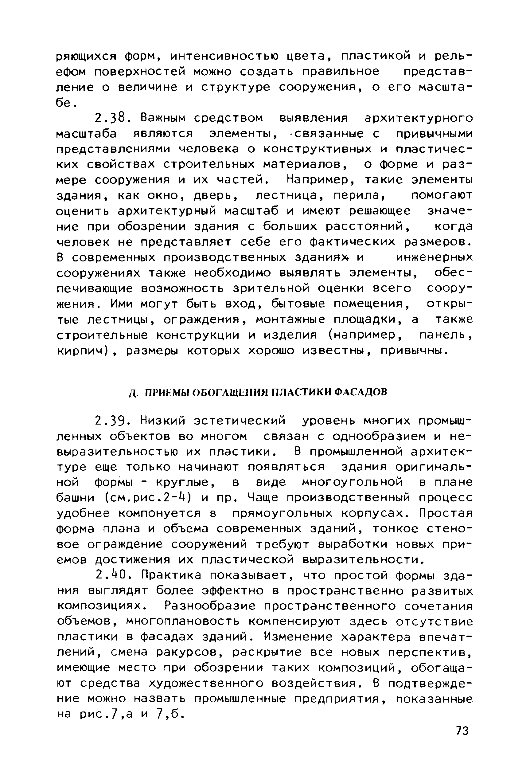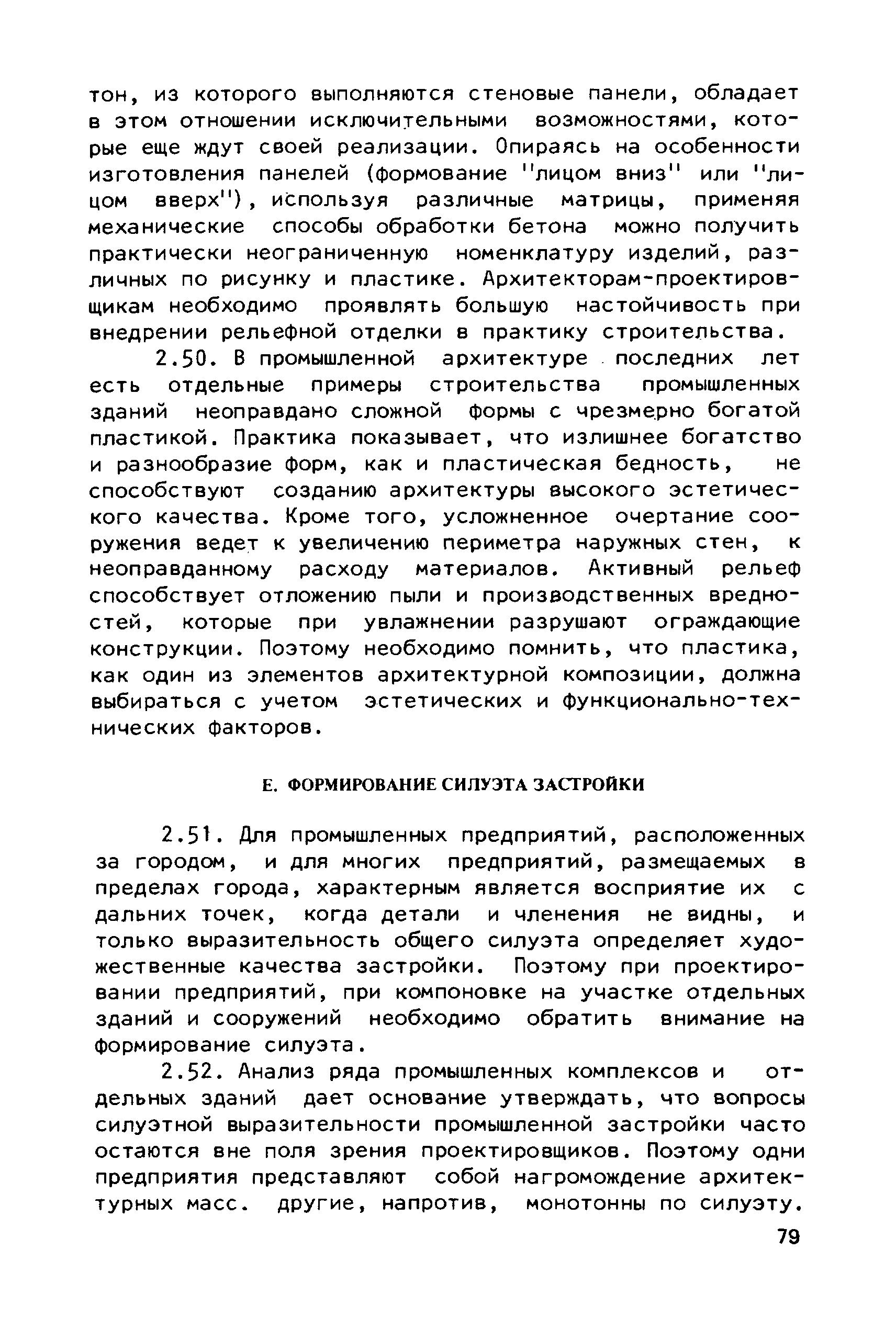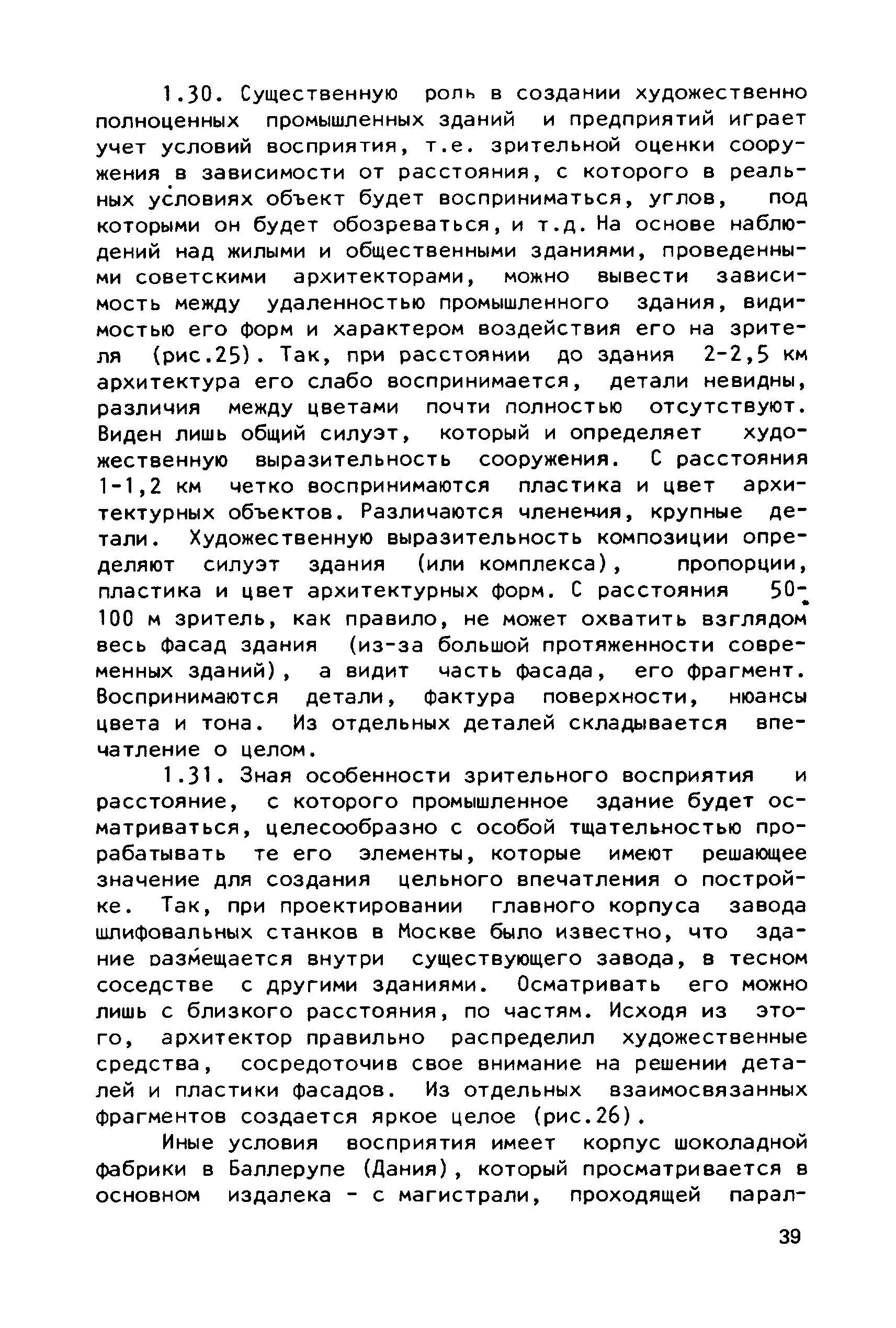 Руководство по совершенствованию эстетических качеств промышленных предприятий| Статус: | справочные материалы, мп, тпр | | Название рус.: | Руководство по совершенствованию эстетических качеств промышленных предприятий | | Дата добавления в базу: | 01.10.2014 | | Дата актуализации: | 01.01.2021 | | Область применения: | В документе рассмотрены пути достижения своеобразия и художественной выразительности промышленных предприятий и зданий; на лучших примерах из современной практики даны приемы выявления специфики производства, климатических, градостроительных и ситуационных особенностей района строительства. Приведены эффективные приемы совершенствования эстетических качеств промышленных предприятий и зданий с помощью элементов и средств архитектурной композиции — художественного контраста, ритма. архитектурного масштаба, пластики, силуэта и пр. Для архитекторов-проектировщиков и студентов архитектурно-строительных вузов. | | Оглавление: | Общая часть Раздел 1. Использование факторов, определяющих архитектурную композицию промышленных предприятий А. Функциональное назначение предприятий и зданий Б. Индустриальные конструкции и материалы В. Градостроительные условия Г. Природный ландшафт участка Д. Климатические особенности местности Раздел 2. Использование элементов и средств архитектурной композиции А. Выявление тектоники зданий Б. Применение художественного контраста В. Использование метроритмических закономерностей Г. Создание выразительного масштаба сооружений Д. Приемы обогащения пластики фасадов Е. Формирование силуэта застройки | | Разработан: | ЦНИИпромзданий