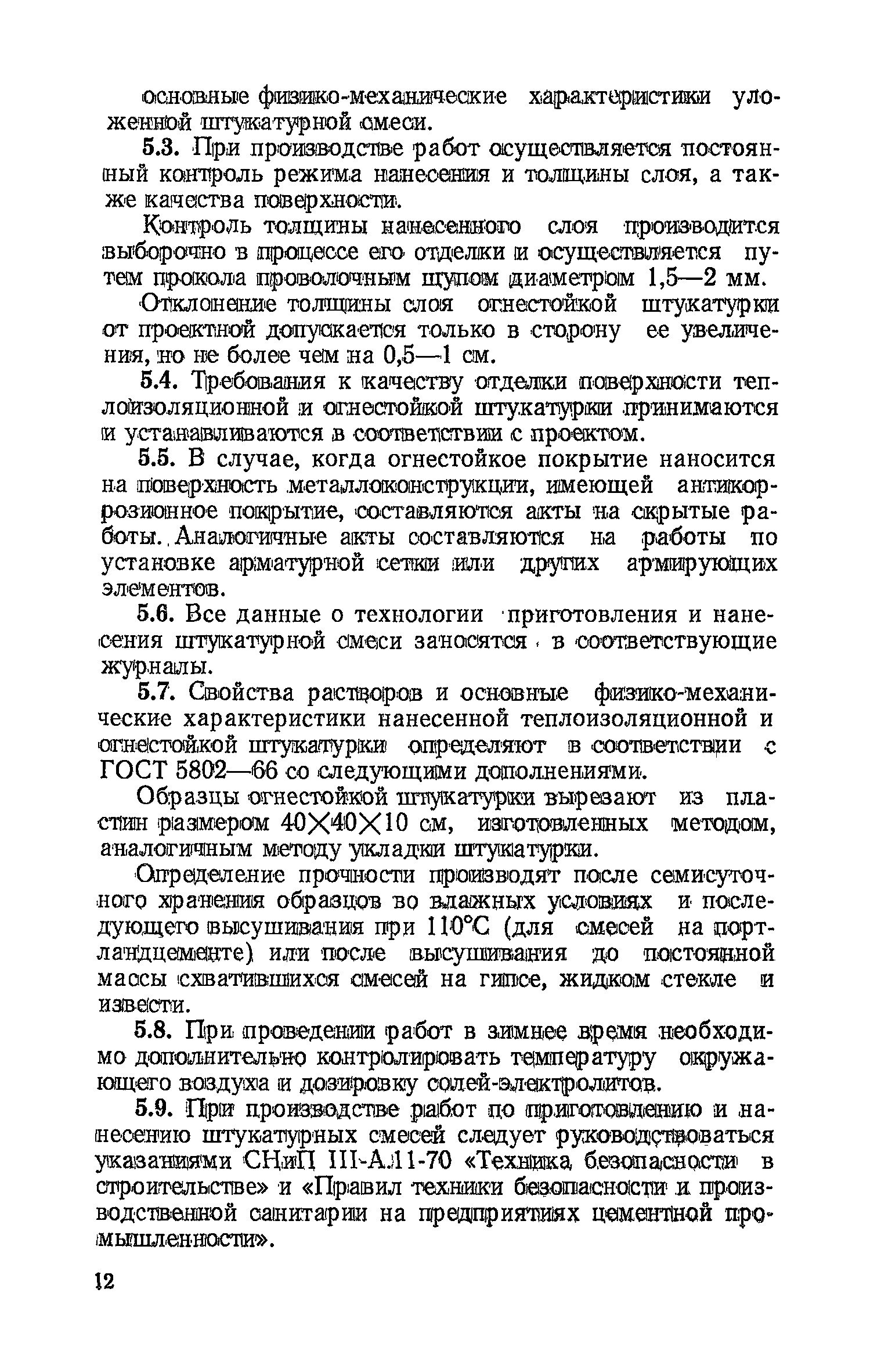 | Оглавление: | 1. Общие положения 2. Требования к исходным материалам 3. Приготовление штукатурных смесей 4. Выполнение теплоизоляционного и огнестойкого штукатурного слоя 5. Контроль качества и техника безопасности Приложение. Приготовление гранулированной минеральной ваты |