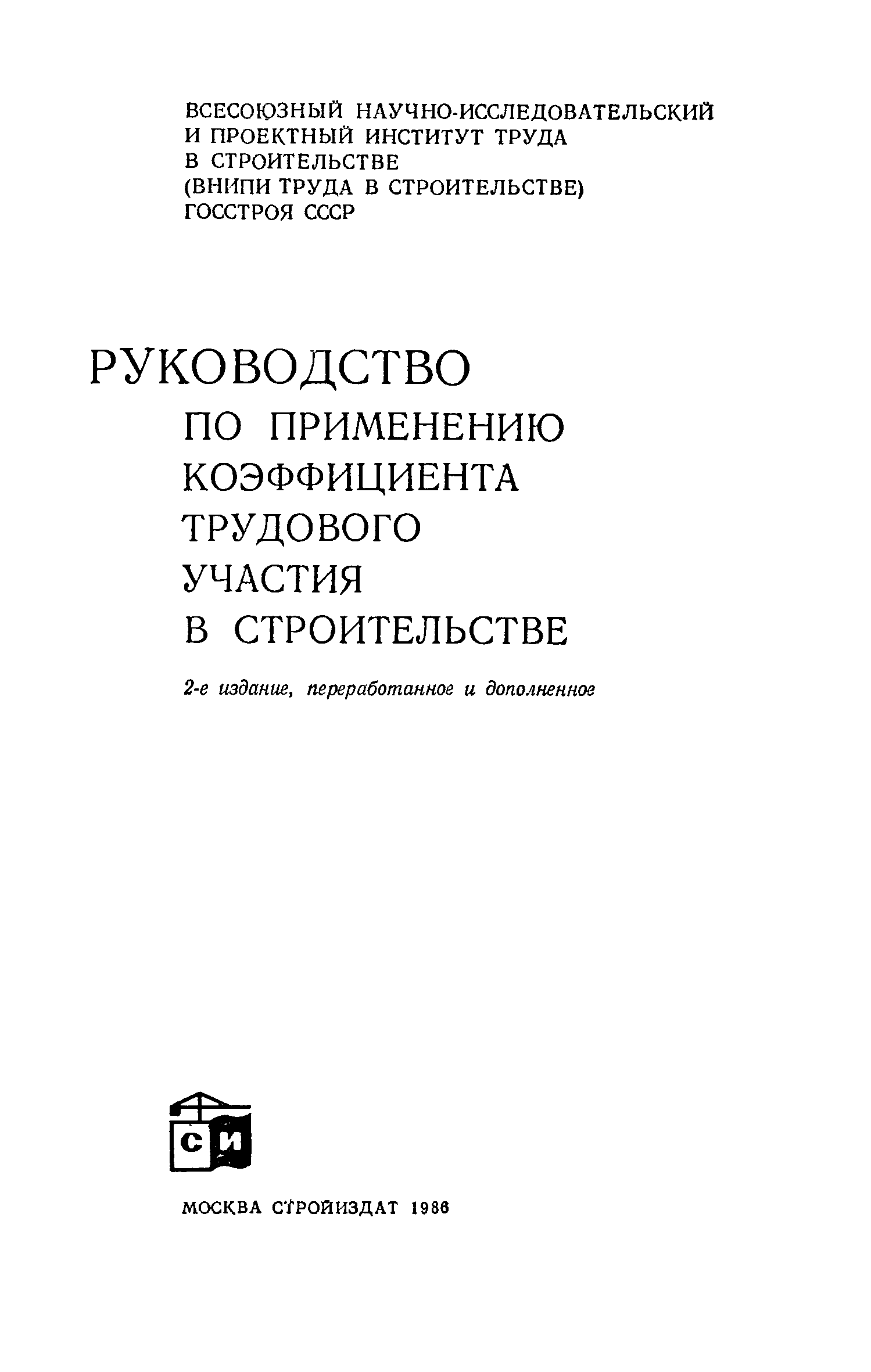 | Название рус.: | Руководство по применению коэффициента трудового участия в строительстве |