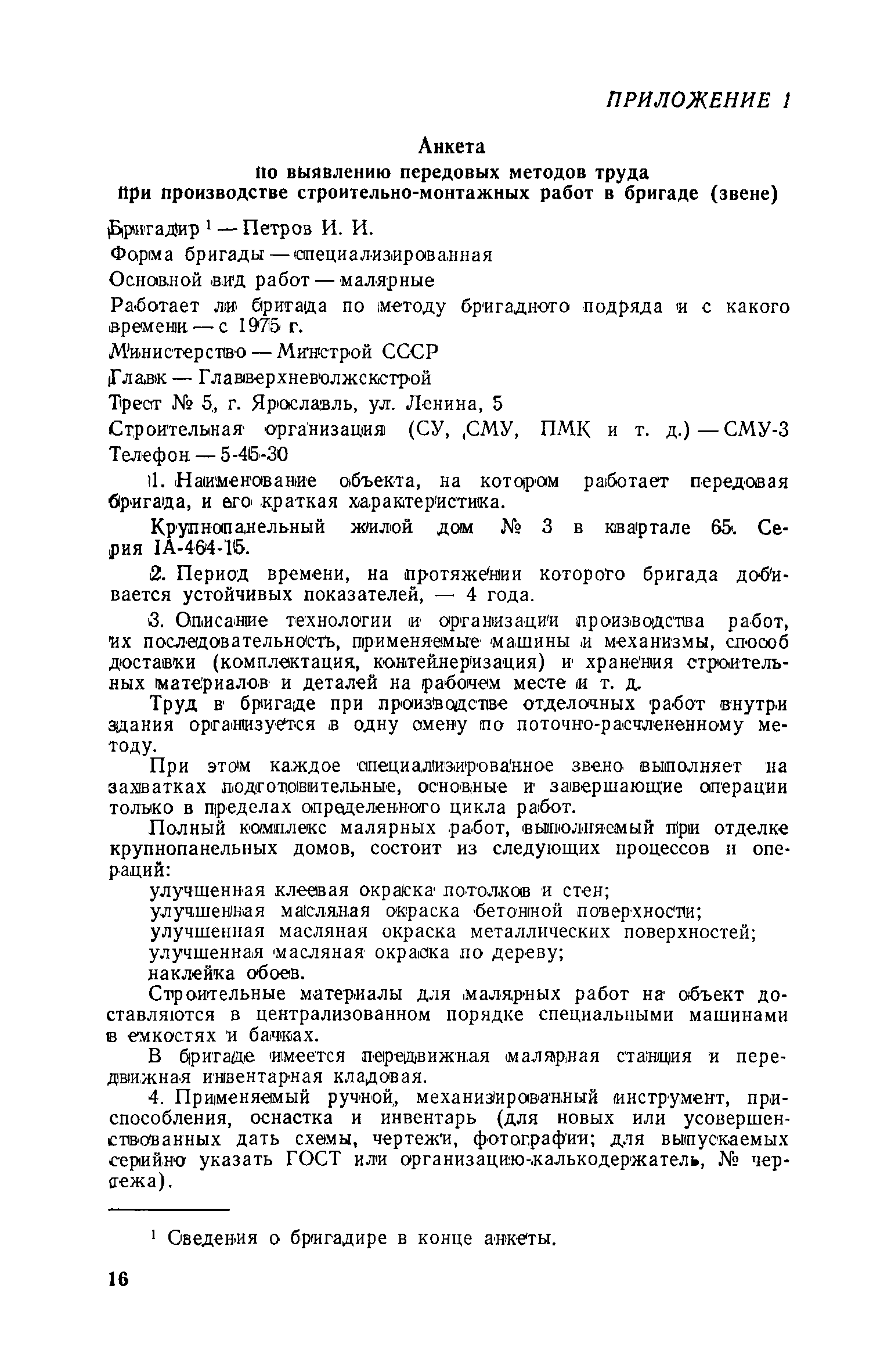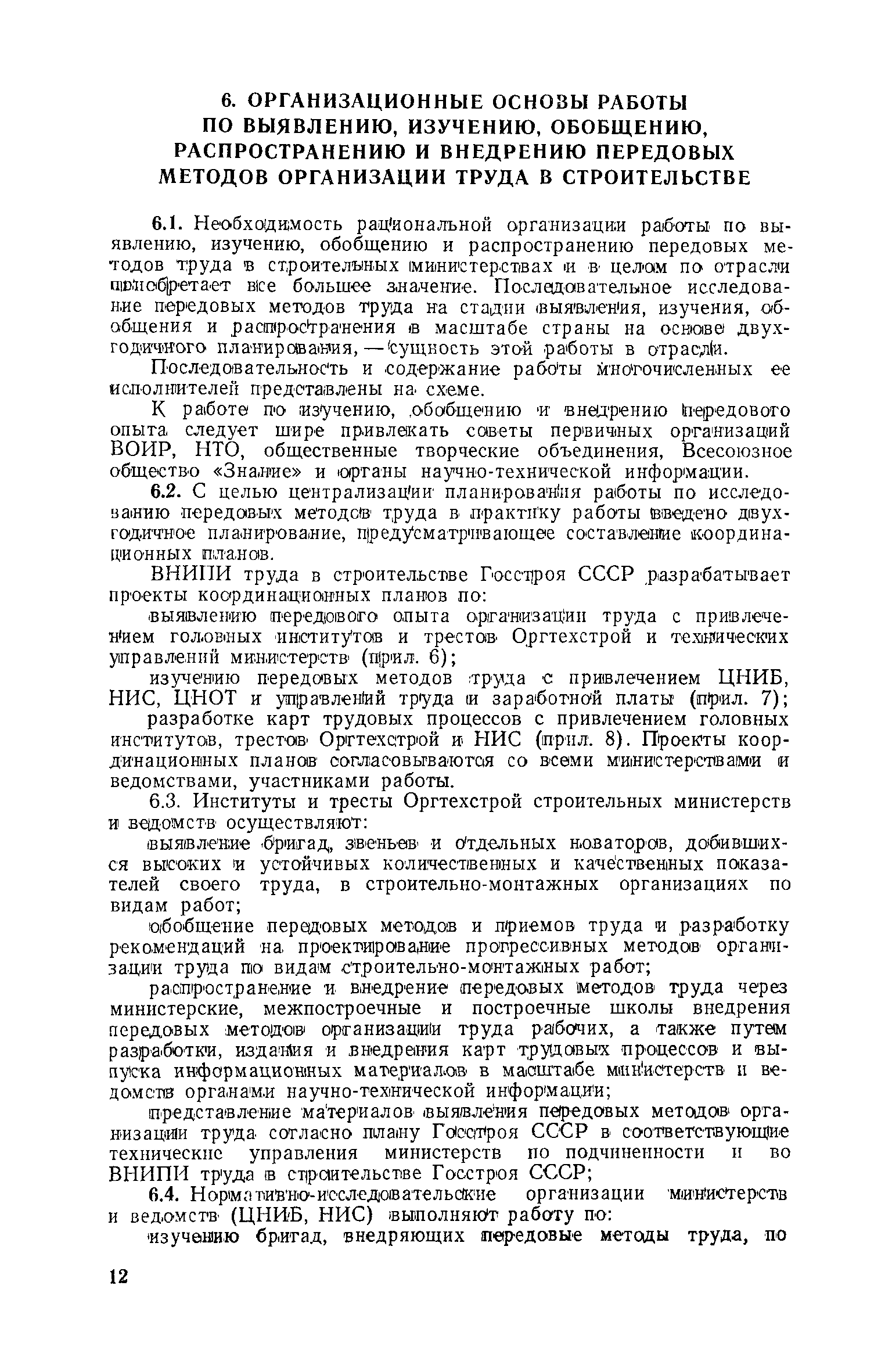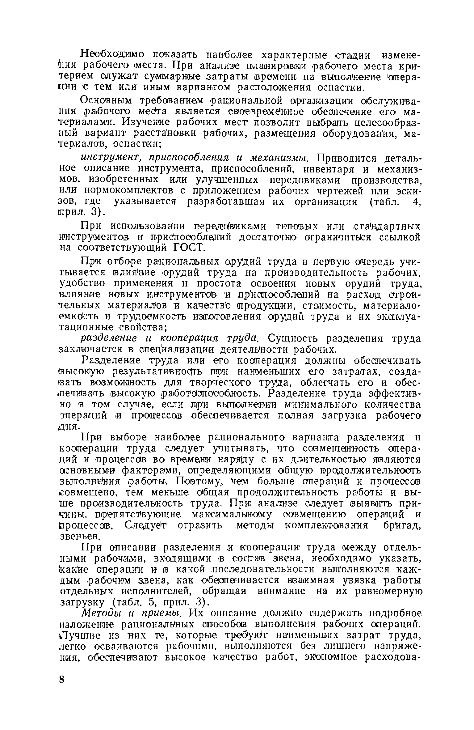 Рекомендации по выявлению, изучению, обобщению и распространению передовых методов организации труда в строительстве| Статус: | справочные материалы, мп, тпр | | Название рус.: | Рекомендации по выявлению, изучению, обобщению и распространению передовых методов организации труда в строительстве | | Дата добавления в базу: | 01.10.2014 | | Дата актуализации: | 01.01.2021 | | Область применения: | Документ содержит основные положения о проведении исследований по выявлению, изучению, обобщению и распространению передового опыта в строительных бригадах и звеньях и направлен на совершенствование организации трудовых процессов строительного производства. Предназначен для работников институтов и трестов Оргтехстрой, нормативно-исследовательских станций, центров НОТ, научно-исследовательских институтов и других организаций, занимающихся вопросами изучения, обобщения и распространения передовых методов труда в строительном производстве. | | Оглавление: | Введение 1. Общие положения 2. Выявление передовых методов организации труда 3. Изучение передовых методов и приемов труда 4. Обобщение передовых методов организации труда 5. Распространение передовых методов организации труда 6. Организационные основы работы по выявлению, изучению, обобщению, распространению и внедрению передовых методов организации труда в строительстве Приложение 1. Анкета по выявлению передовых методов труда при производстве строительно-монтажных работ в бригаде (звене) Приложение 2. План изучения передового опыта Приложение 3. Примеры заполнения таблиц по изучению передовых методов организации труда (табл. 1- 8) Приложение 4. Учетная карточка передового опыта Приложение 5. План проведения Всесоюзных школ внедрения передового опыта организации труда в строительстве Приложение 6. Координационный план по выявлению передового опыта организации труда бригад в строительстве организациями строительных министерств и ведомств на 1979-1980 гг. Приложение 7. Координационный план по изучению передового опыта организации труда бригад в строительстве организациями строительных министерств и ведомств на 1979-1980 гг. Приложение 8. Координационный план по разработке карт трудовых процессов строительного производства институтами, трестами Оргтехстрой (Оргстрой) и ППС строительных министерств и ведомств на 1979-1980 гг. | | Разработан: | ВНИПИ труда в строительстве Госстроя СССР