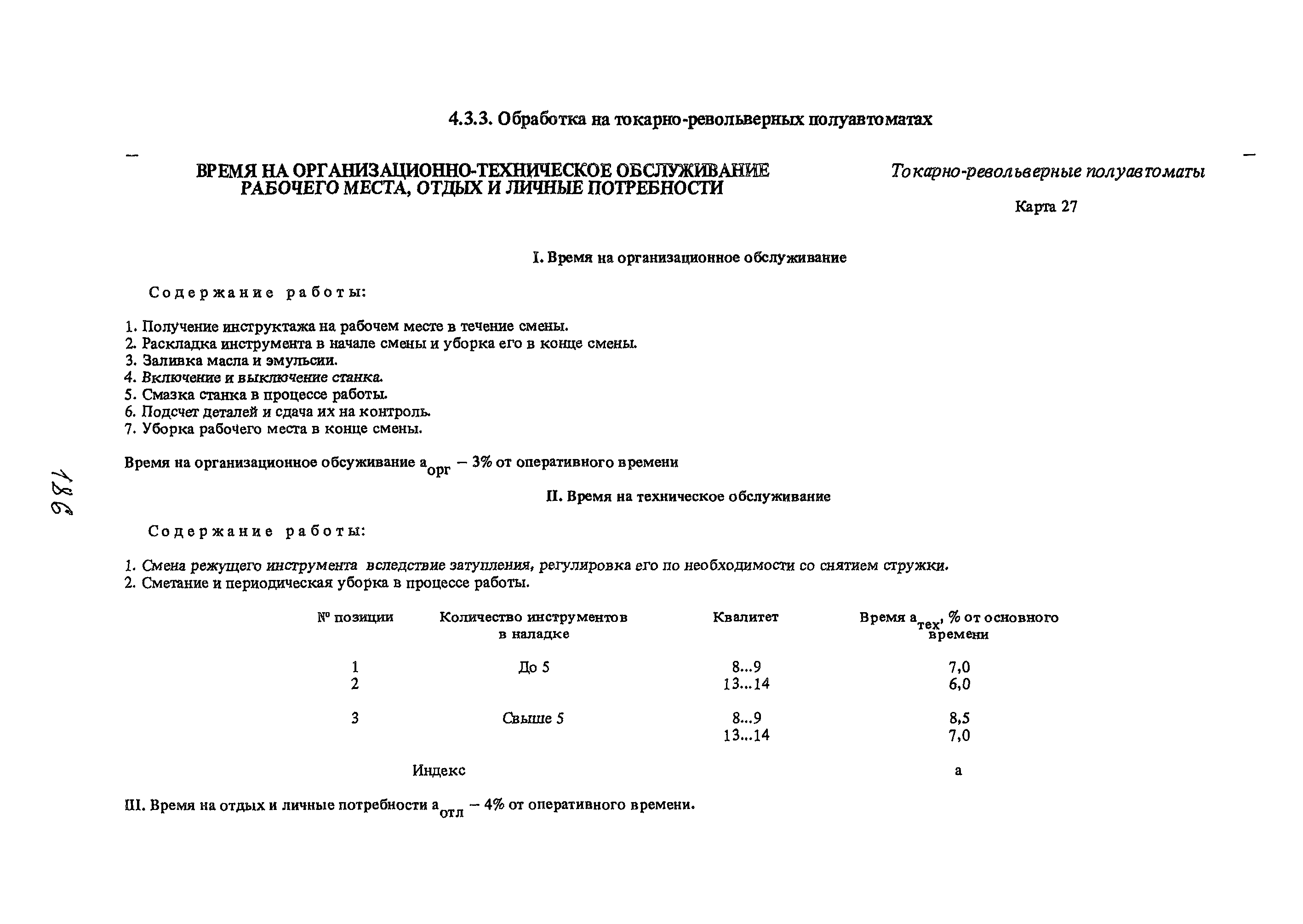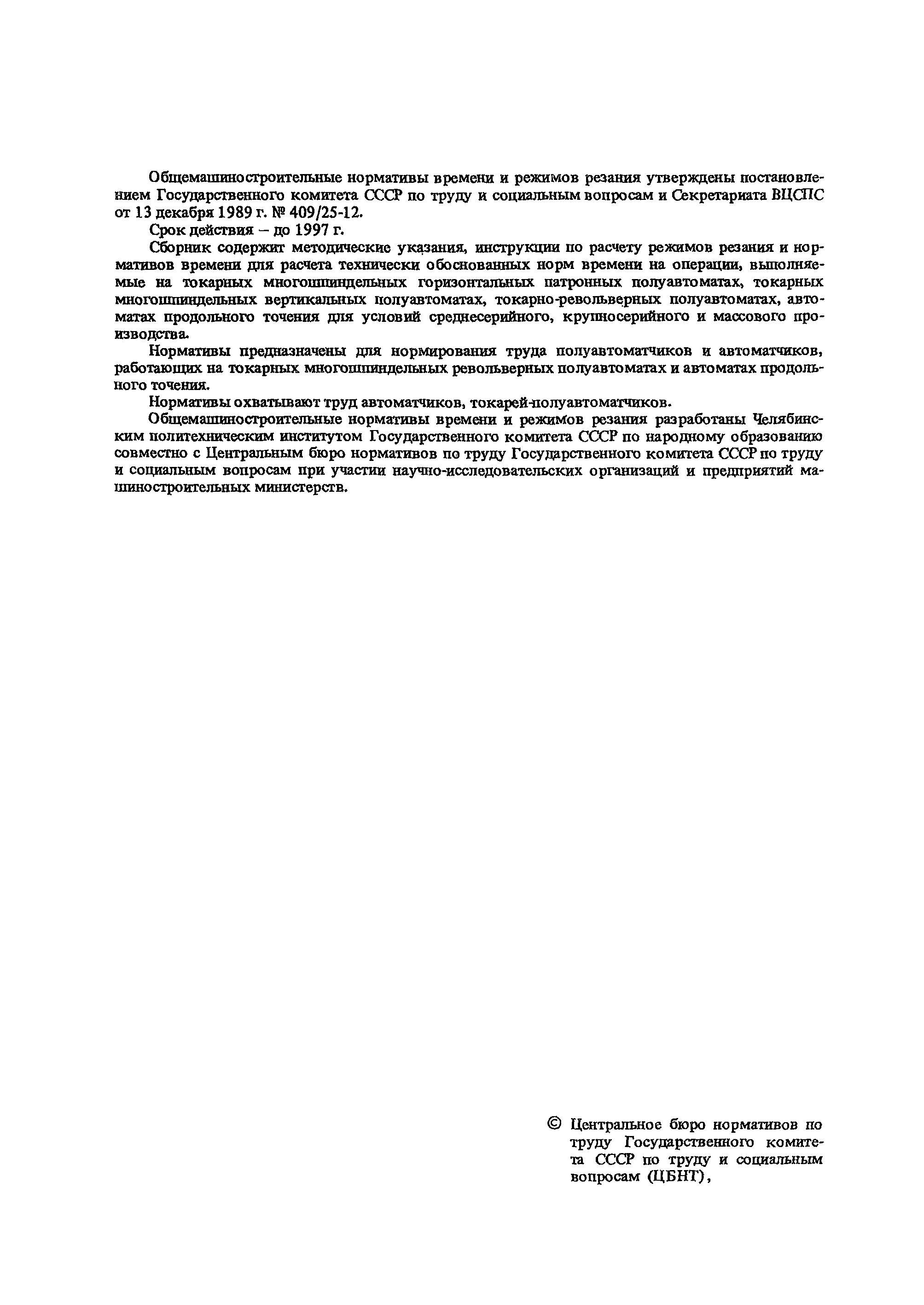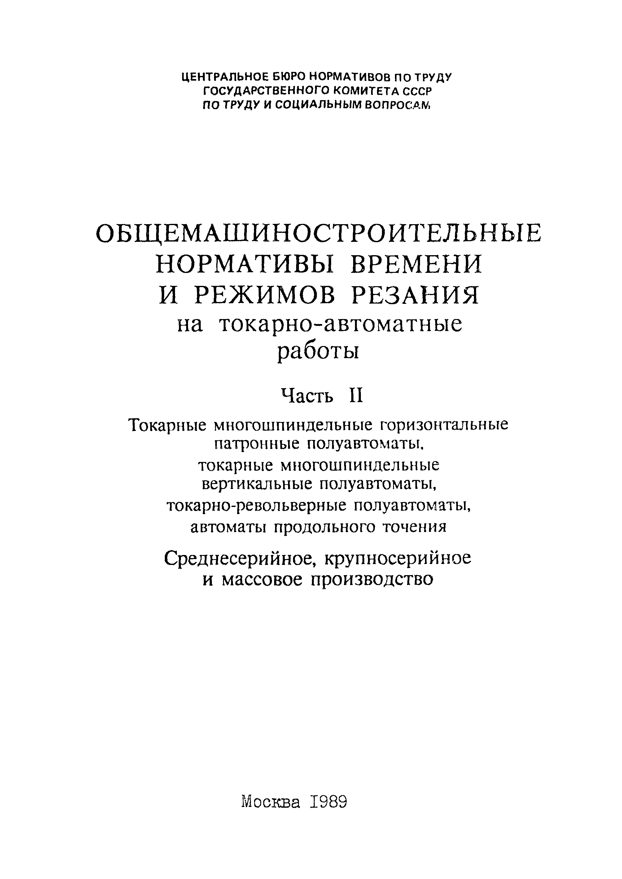 | Название рус.: | Общемашиностроительные нормативы времени и режимов резания на токарно-автоматные работы. Часть II. Токарные многошпиндельные горизонтальные патронные полуавтоматы, токарные многошпиндельные вертикальные полуавтоматы, токарно-револьверные полуавтоматы, автоматы продольного точения. Среднесерийное, крупносерийное и массовое производство |