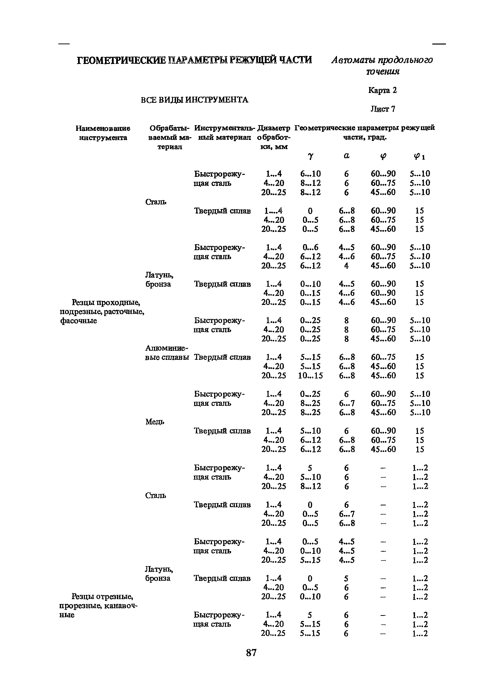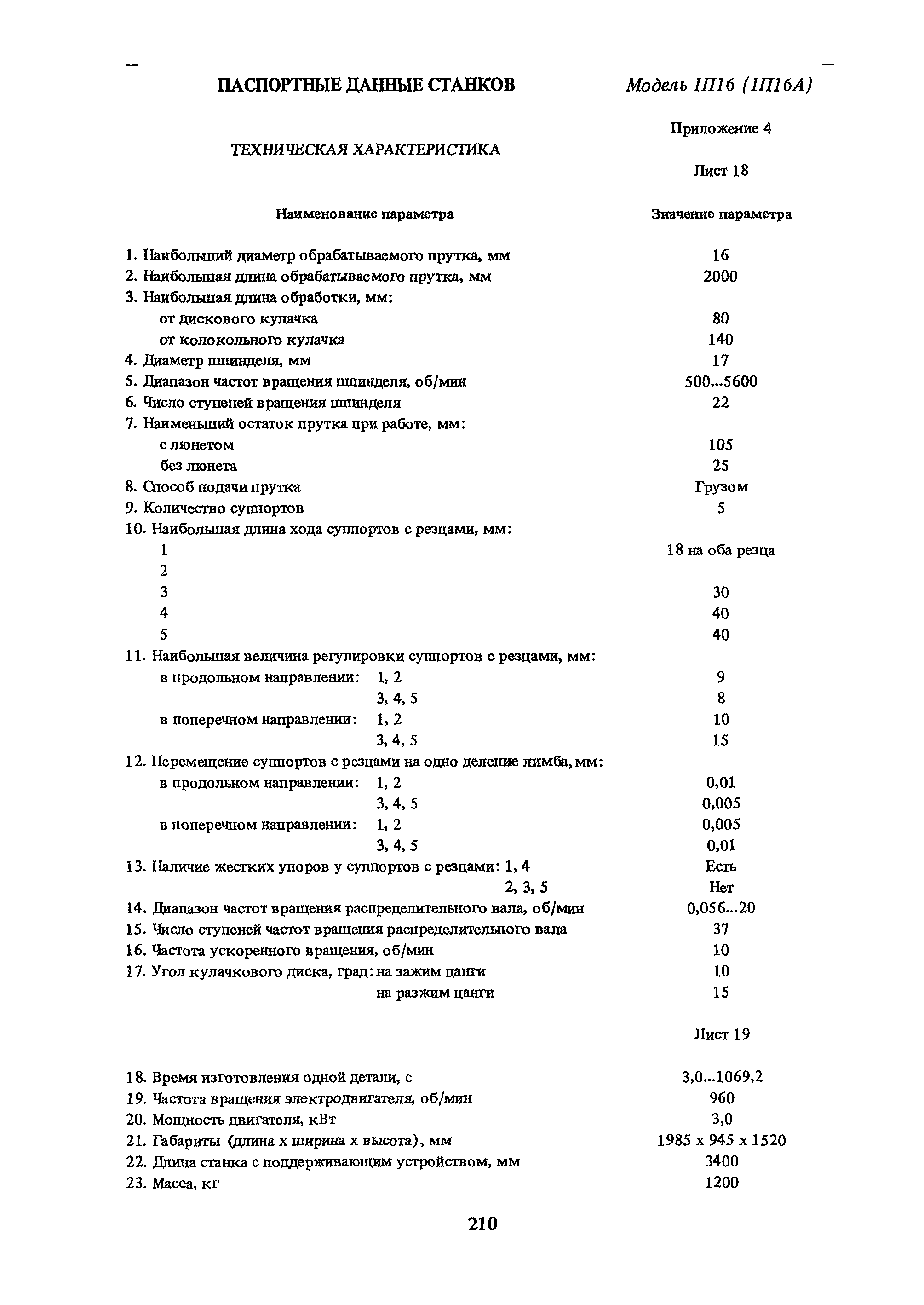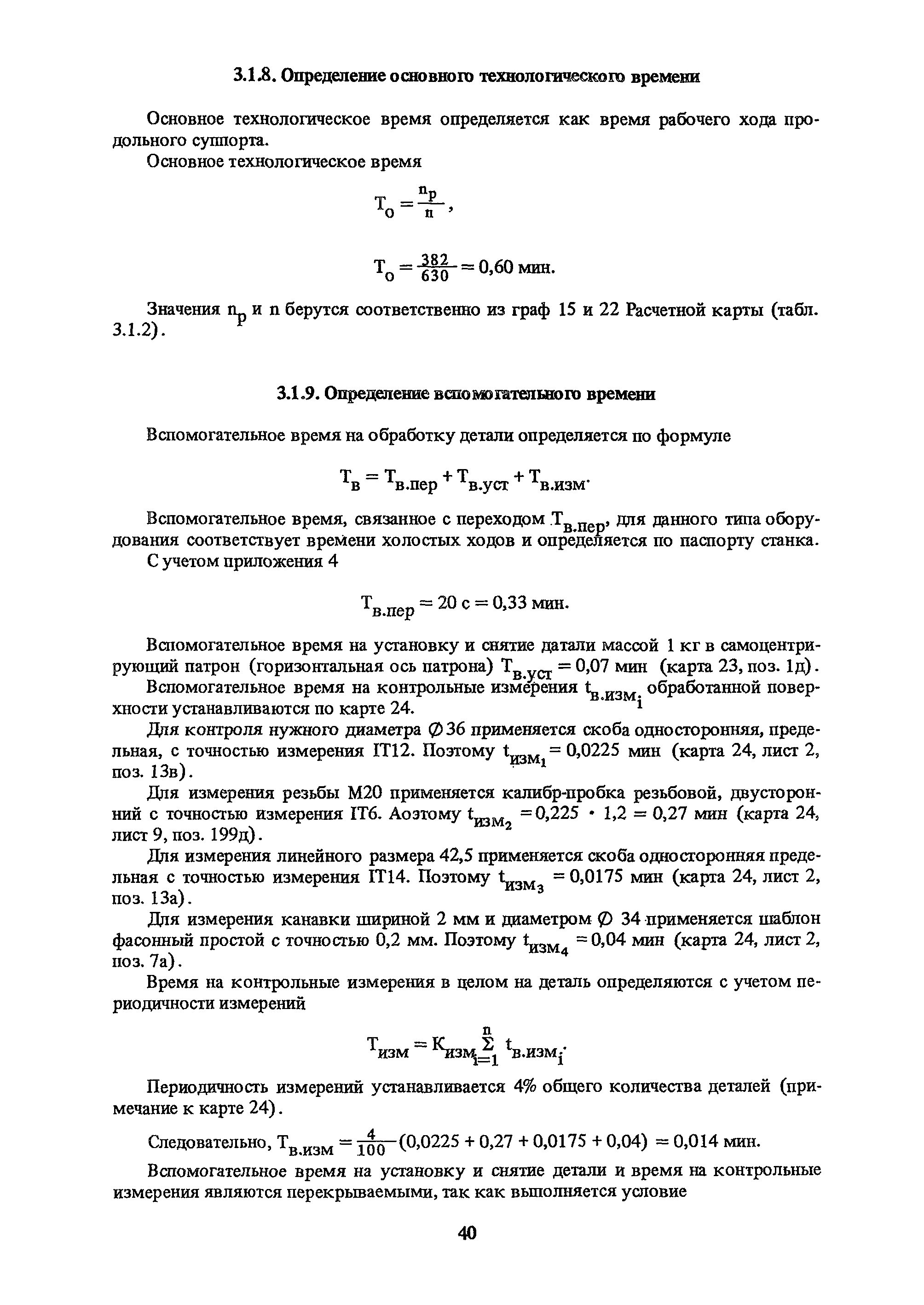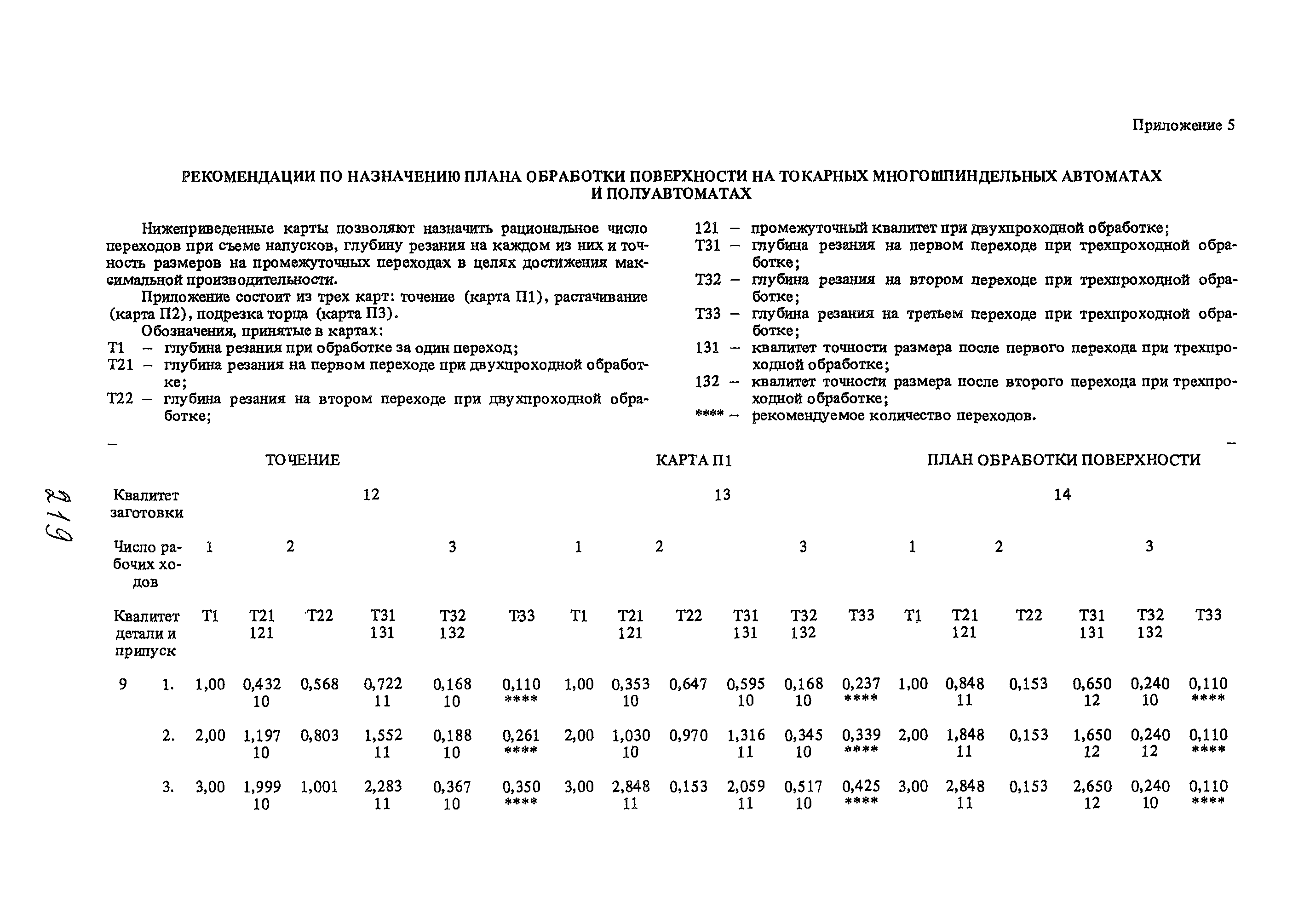 | Оглавление: | Условные обозначения 1. Общая часть 1.1. Назначение и структура нормативов 1.2. Общие технологические условия 1.3. Нормативы режимов резания 1.4. Нормативы времени 2. Методические указания 2.1. Инструкция по расчету режимов резания и нормы времени дня токарных многошпиндельных горизонтальных патронных полуавтоматов 2.2. Инструкция по расчету режимов резания и нормы времени дня токарных многошпиндельных вертикальных полуавтоматов 2.3. Инструкция по расчету режимов резания и нормы времени дня токарно-револьверных полуавтоматов 2.4. Инструкция по расчету режимов резания, нормы времени дня автоматов продольного точения 3. Примеры расчета режимов резания и норм времени 3.1. Пример расчета режимов резания и нормы времени при обработке детали на токарном многошпиндельном горизонтальном патронном полуавтомате 3.2. Пример расчета режимов резания и норм времени при обработке детали на токарном многошпиндельном вертикальном полуавтомате 3.3. Пример расчета режимов резания и норм времени при обработке детали на токарно-револьверном полуавтомате 3.4. Пример расчета режимов резания и норм времени при обработке детали на автомате продольного точения 4. Нормативная часть 4.1. Общие технологические условия 4.2. Нормативы режимов резания 4.3. Нормативы времени Приложение 1. Величина подвода, врезания и перебега инструментов Приложение 2. Определение длины рабочего хода для автоматов продольного точения. Приложение 3. Расчет ожидаемой стойкости инструментов Приложение 4. Паспортные данные станков Листы 1 - 6. Модель 1Б240П-6К Листы 7 - 12. Модель 1283 Листы 13 - 17. Модель 1М425 Листы 18 - 27. Модель 1П16 (1П16А) х Приложение 5. Рекомендация по назначению плана обработки поверхности на токарных многошпиндельных автоматах и полуавтоматах |