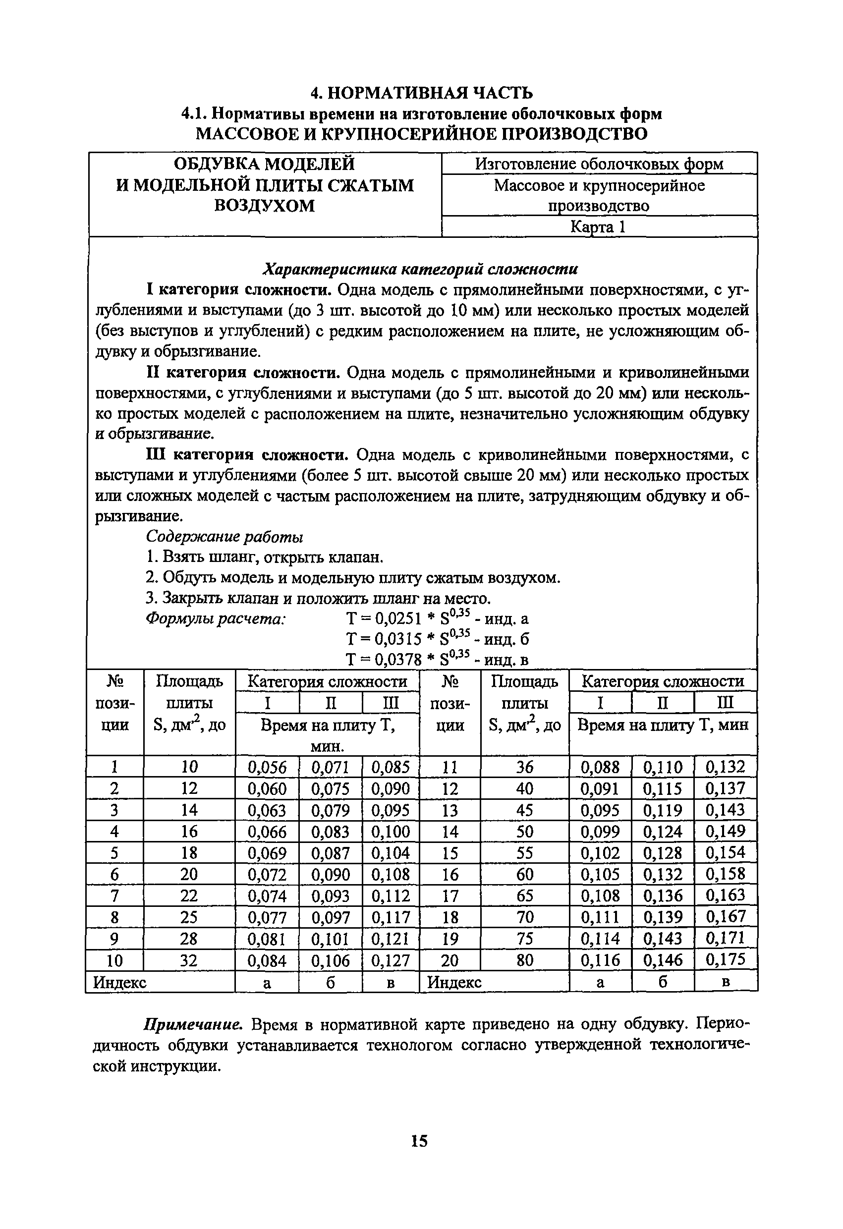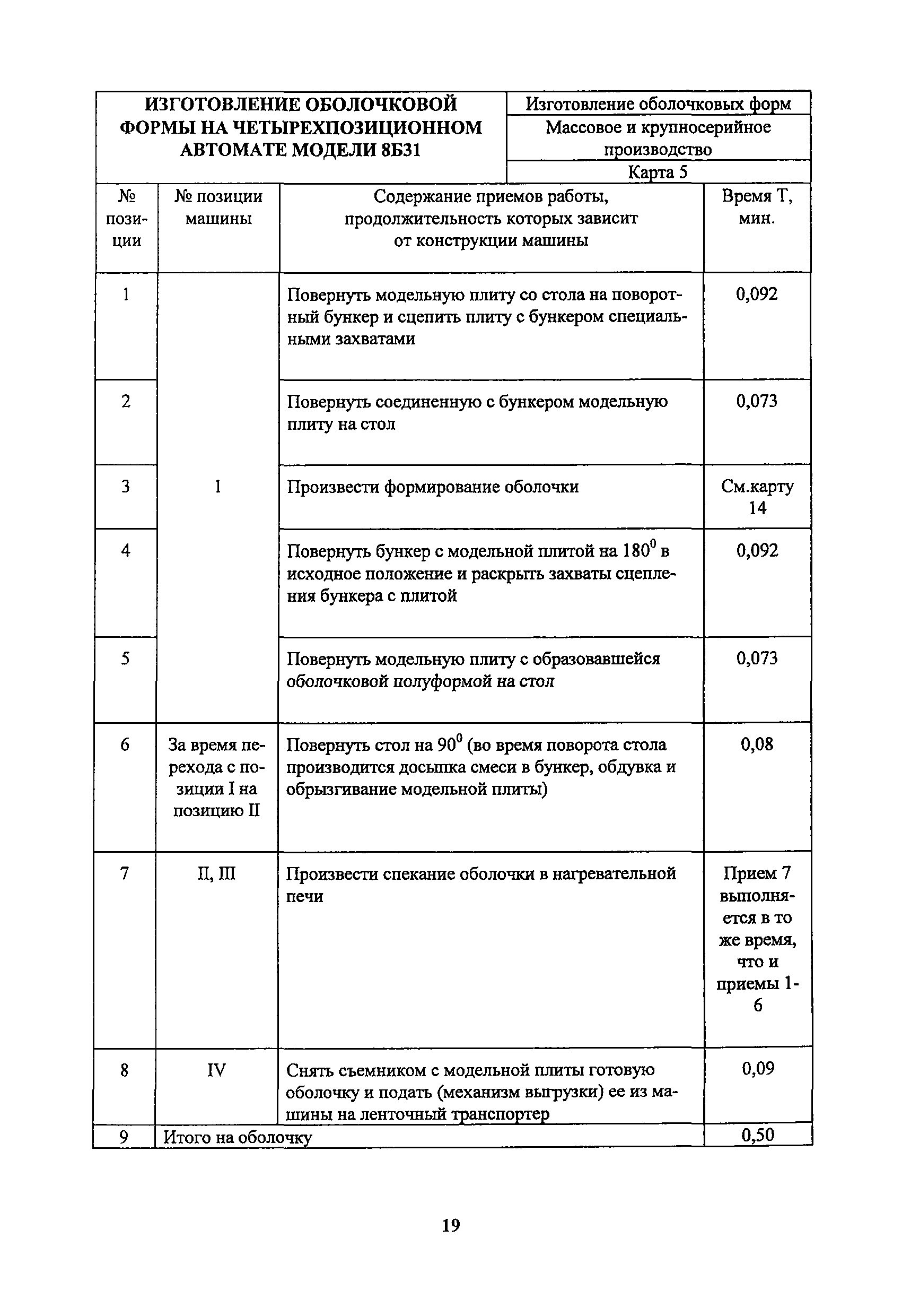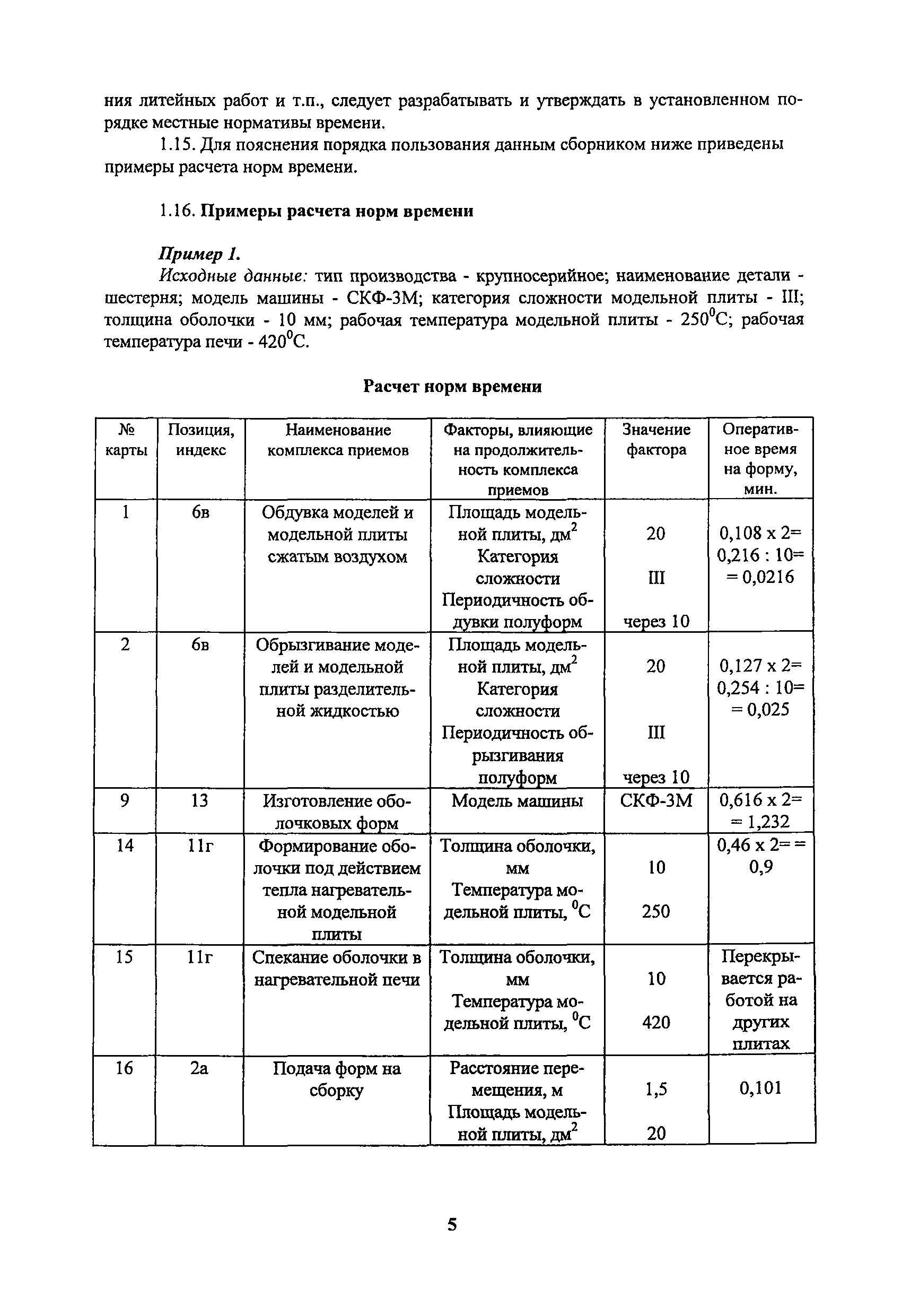 | Область применения: | Межотраслевые нормативы времени предназначены для расчета технически обоснованных норм времени на работы, выполняемые при изготовлении оболочковых форм и стержней в литейных цехах промышленных предприятий, работающих в условиях массового, крупносерийного и среднесерийного производства. При разработке нормативов времени использованы: действующие машиностроительные и отраслевые нормативы времени; хронометражные наблюдения, фотографии рабочего дня; результаты анализа организации труда на рабочих местах и мероприятия по ее совершенствованию; технические характеристики технологического оборудования, применяемого при выполнении вышеуказанных работ; технические расчеты; справочная и методическая литература. |