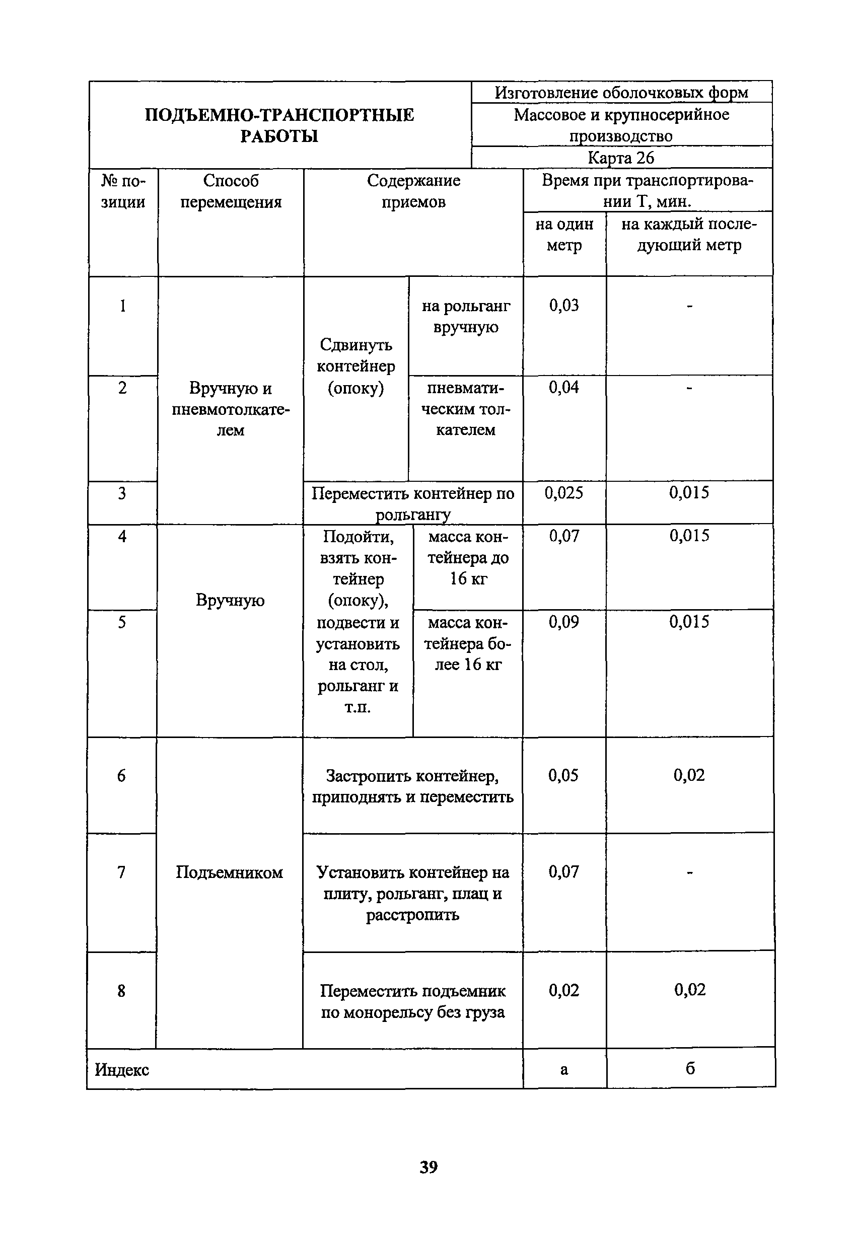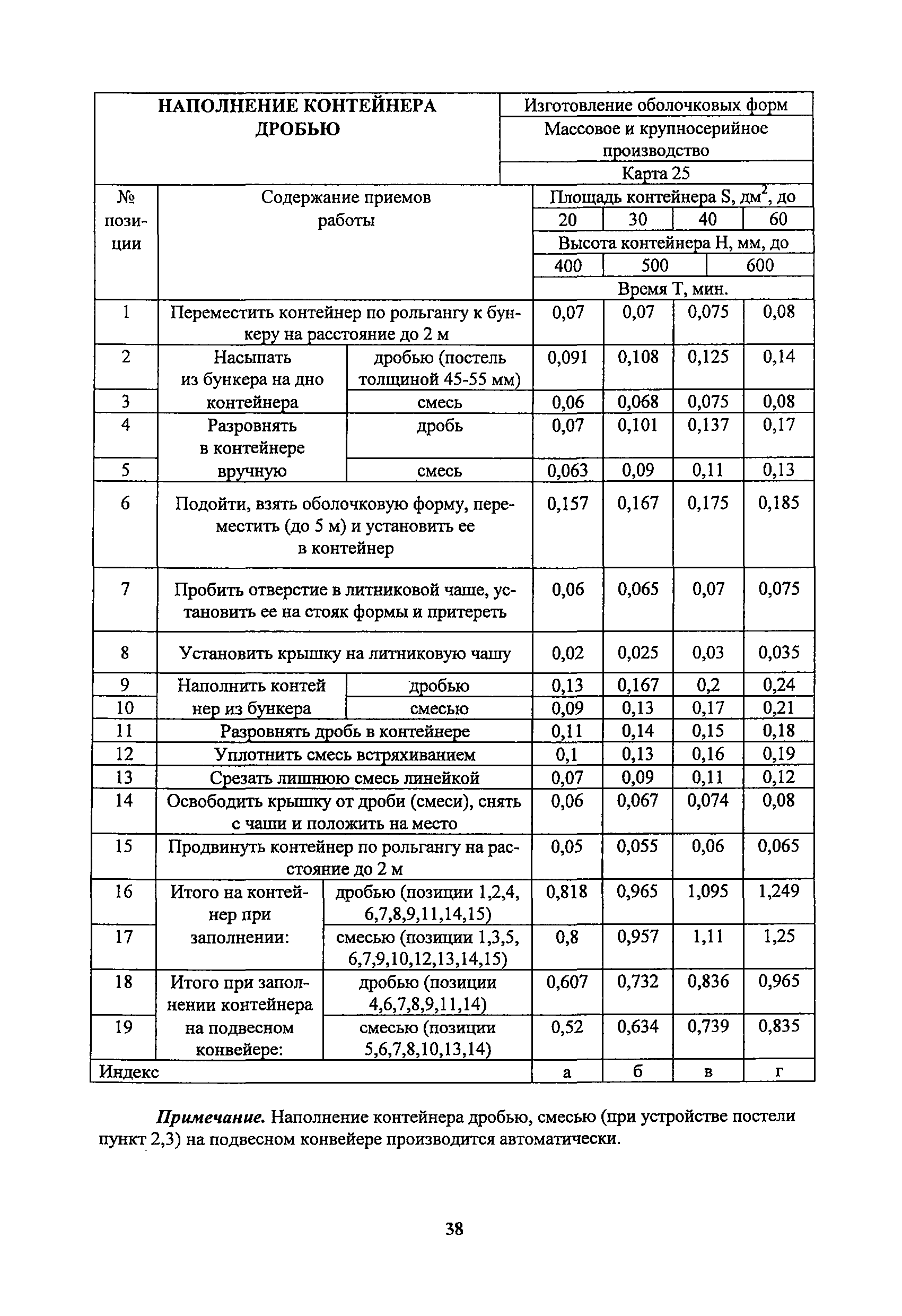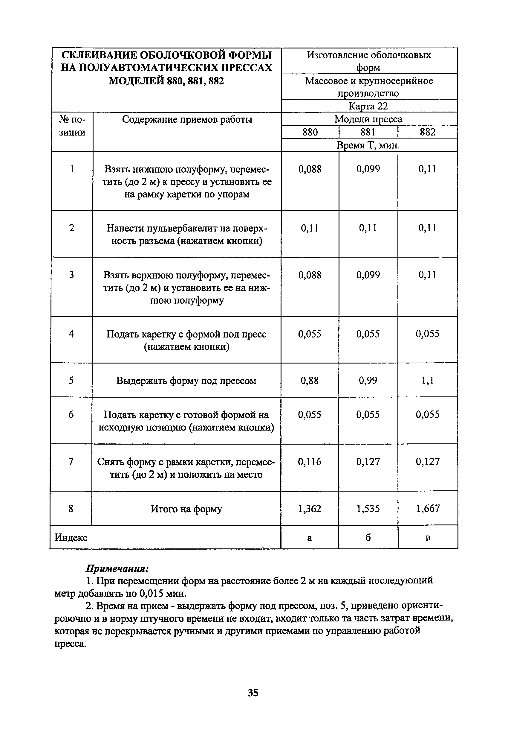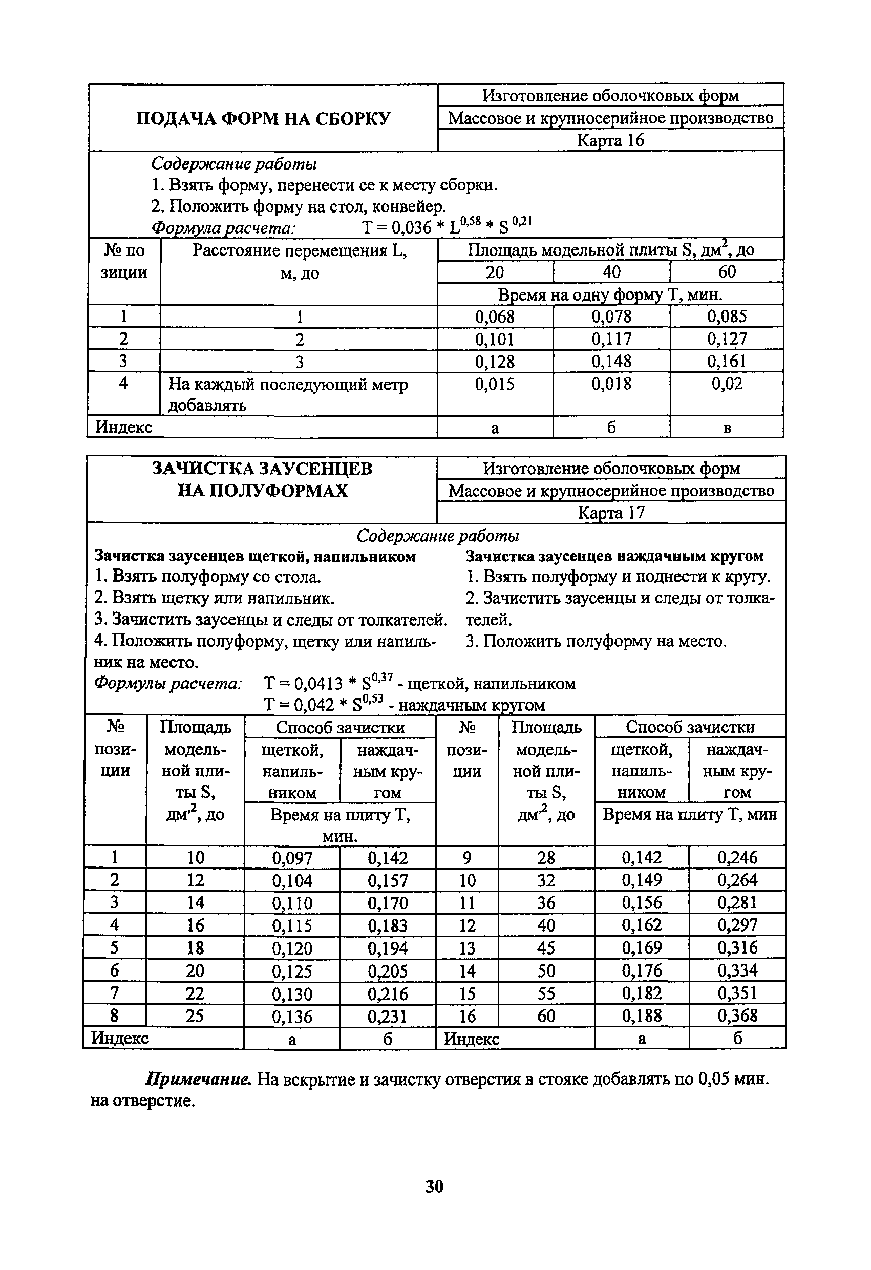 | Область применения: | Межотраслевые нормативы времени предназначены для расчета технически обоснованных норм времени на работы, выполняемые при изготовлении оболочковых форм и стержней в литейных цехах промышленных предприятий, работающих в условиях массового, крупносерийного и среднесерийного производства. При разработке нормативов времени использованы: действующие машиностроительные и отраслевые нормативы времени; хронометражные наблюдения, фотографии рабочего дня; результаты анализа организации труда на рабочих местах и мероприятия по ее совершенствованию; технические характеристики технологического оборудования, применяемого при выполнении вышеуказанных работ; технические расчеты; справочная и методическая литература. |