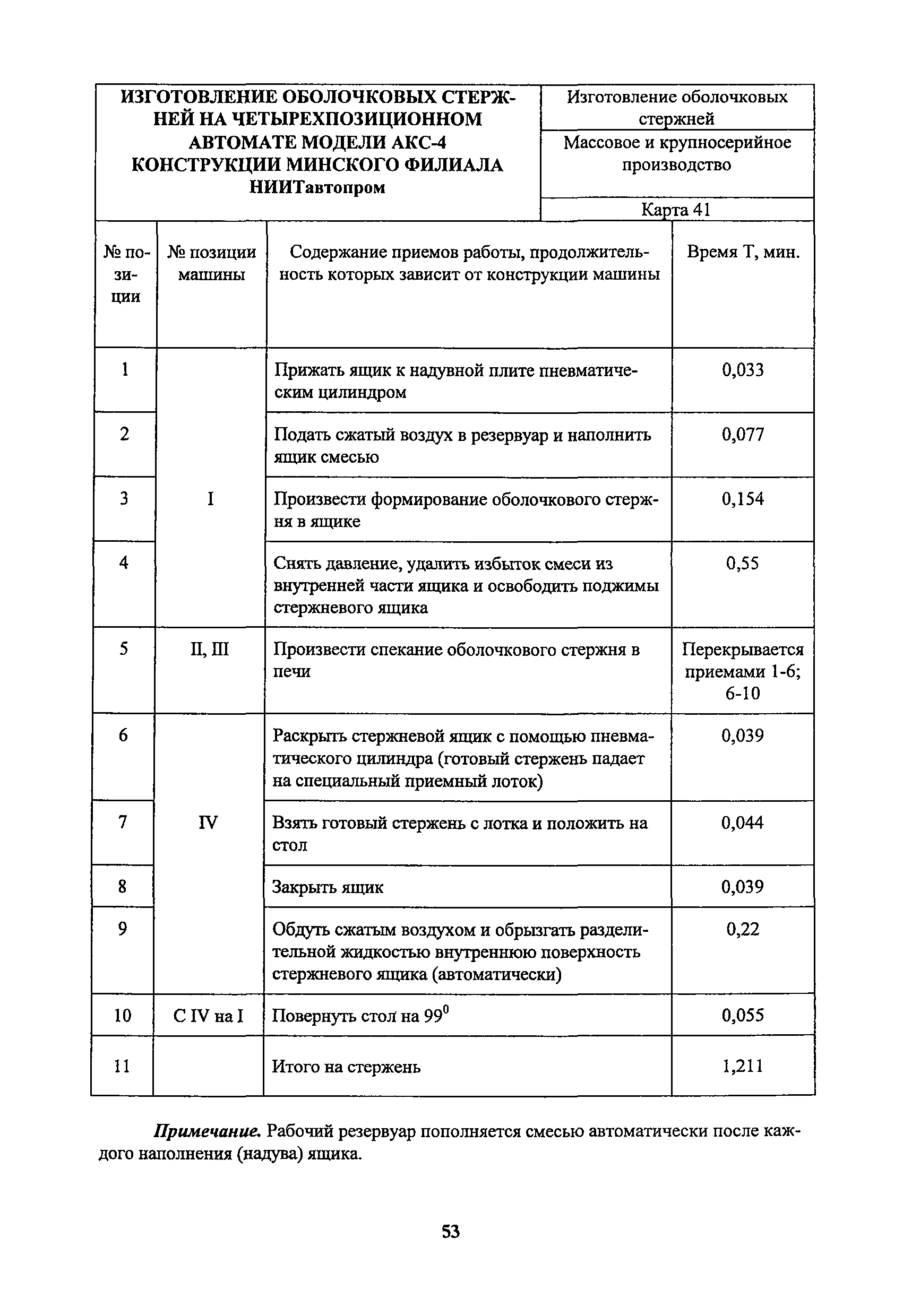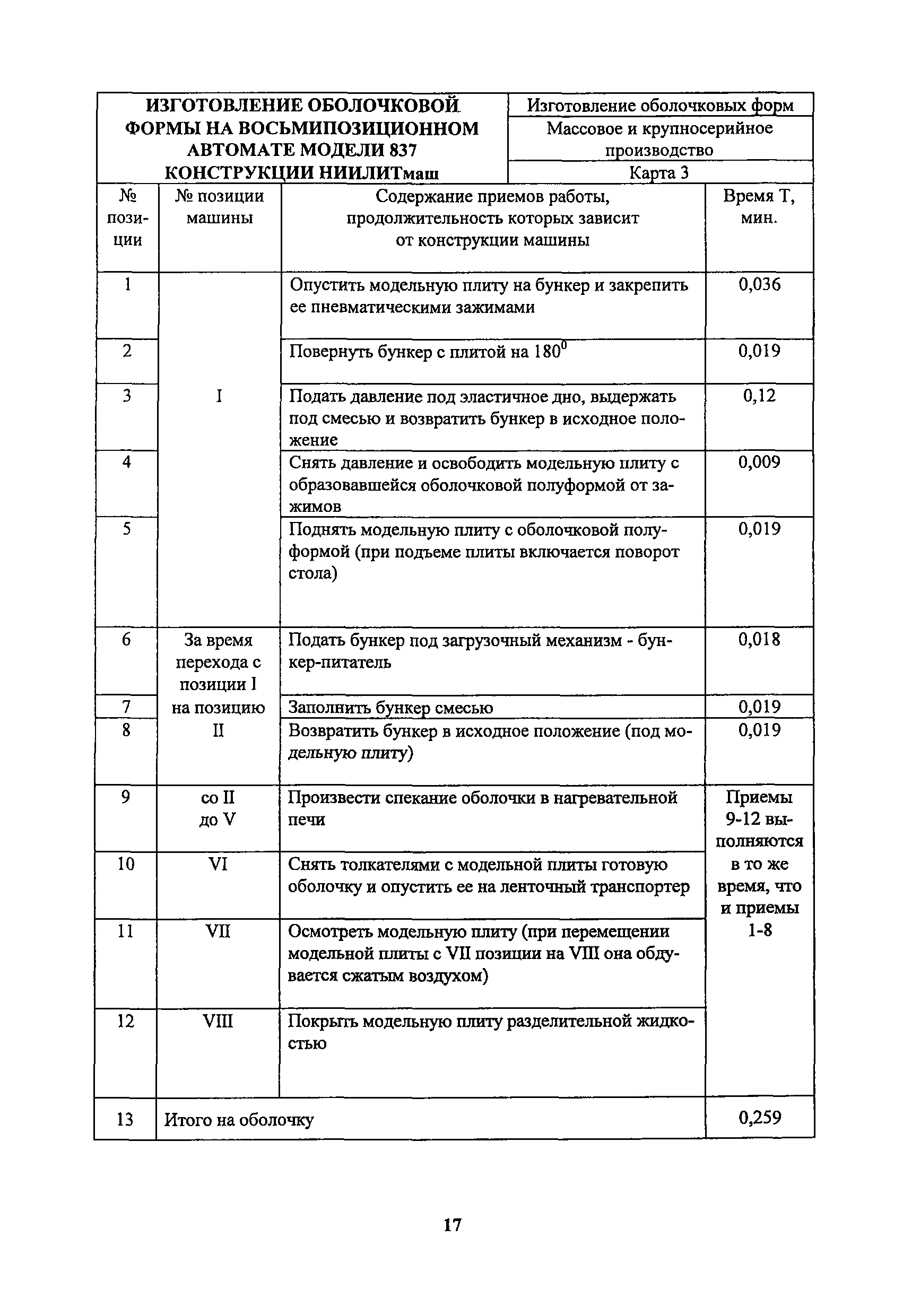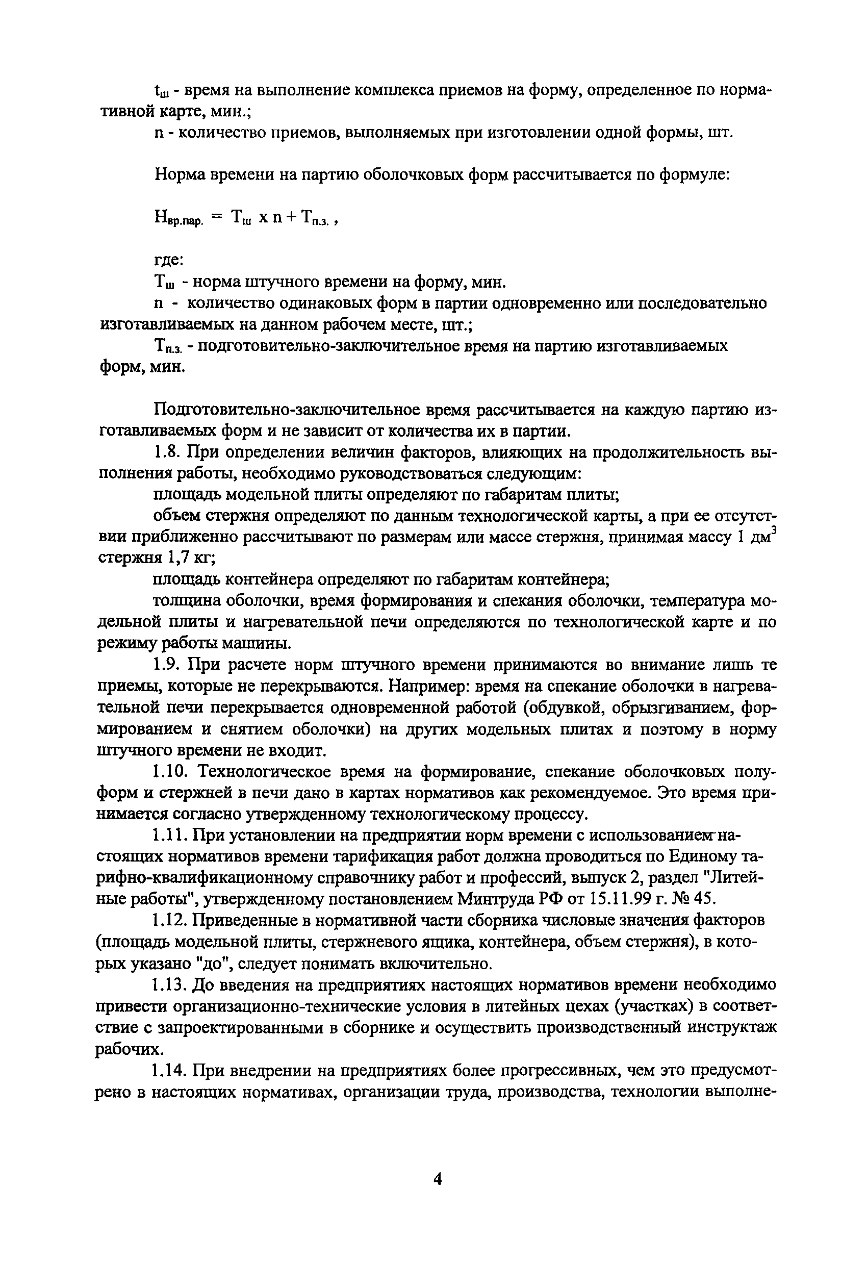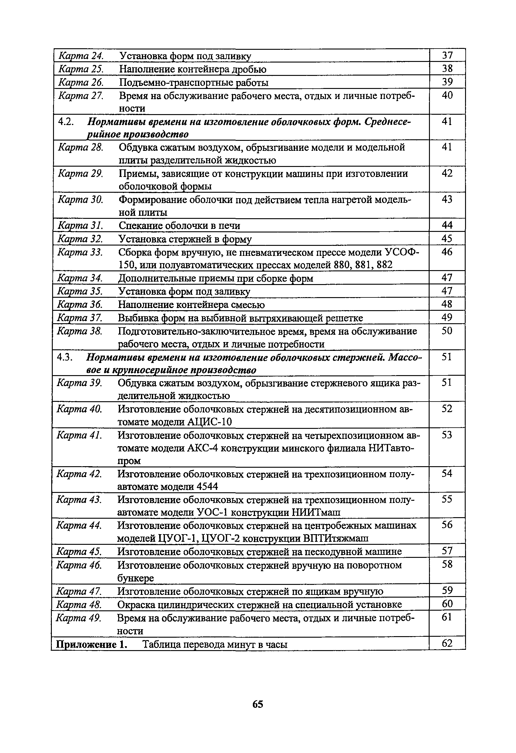 | Название рус.: | Межотраслевые нормативы времени на изготовление оболочковых форм и стержней |