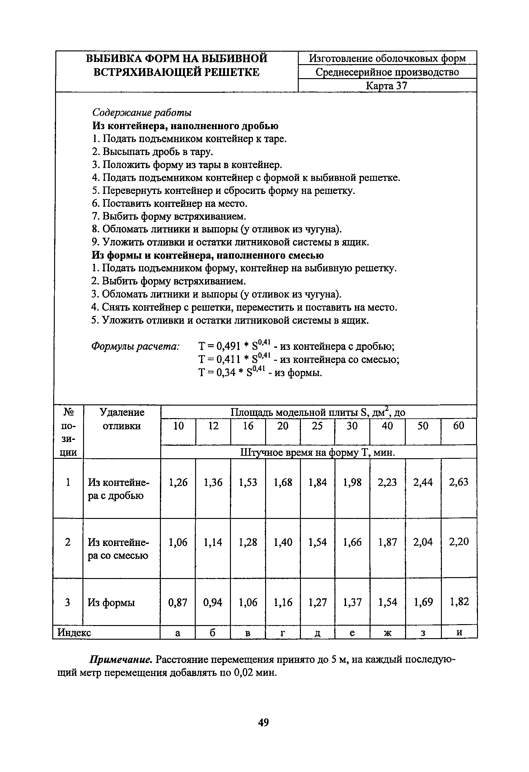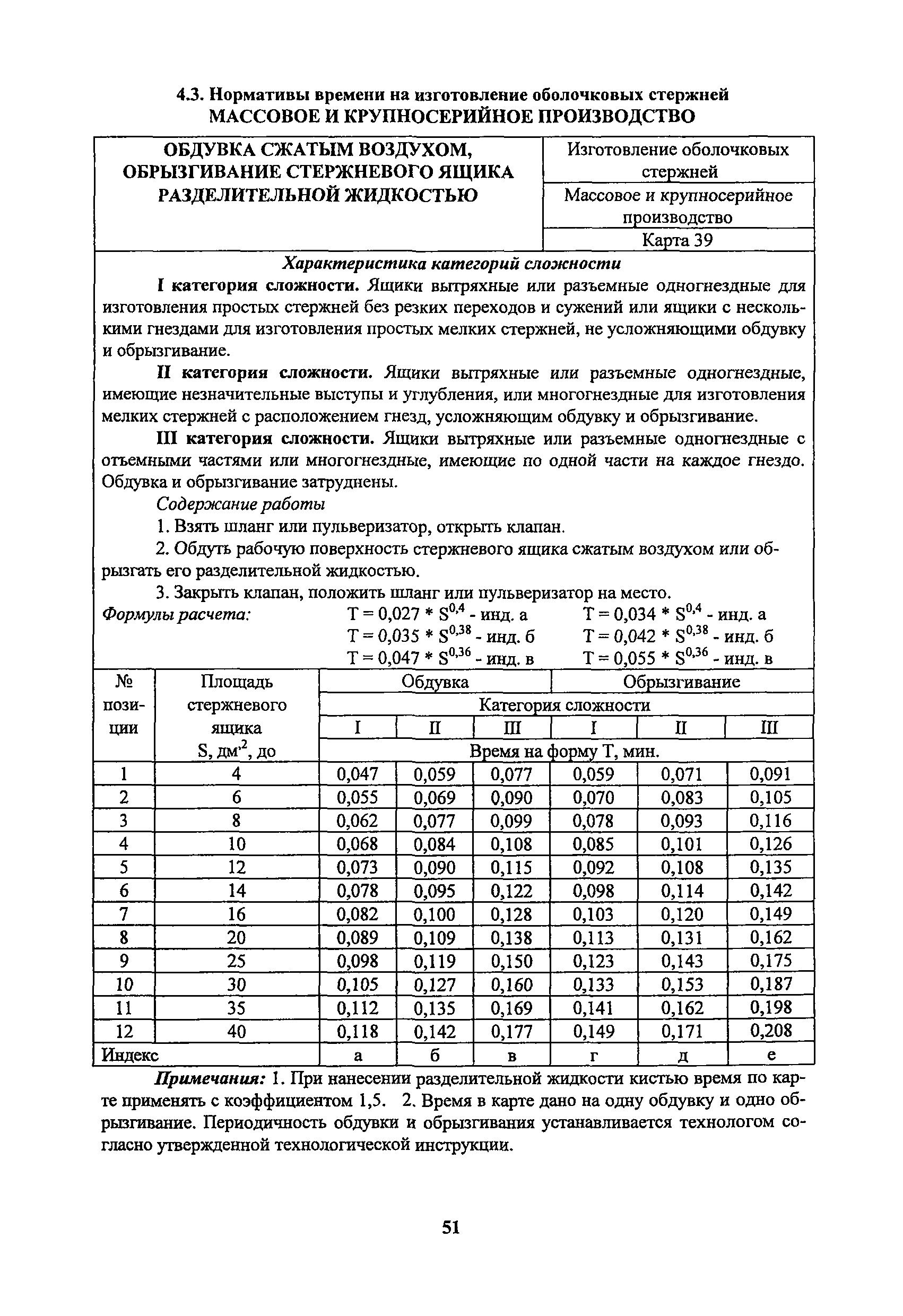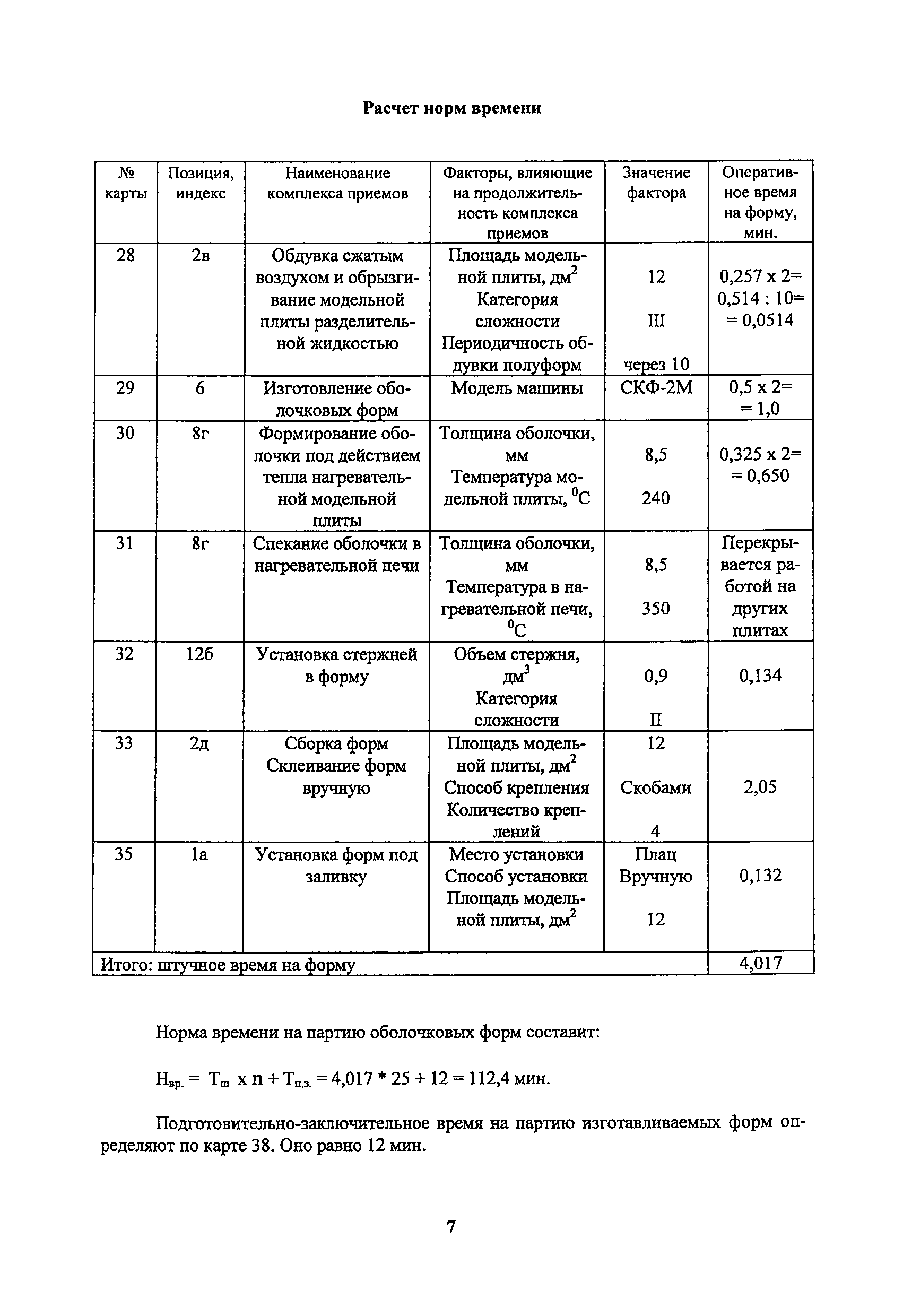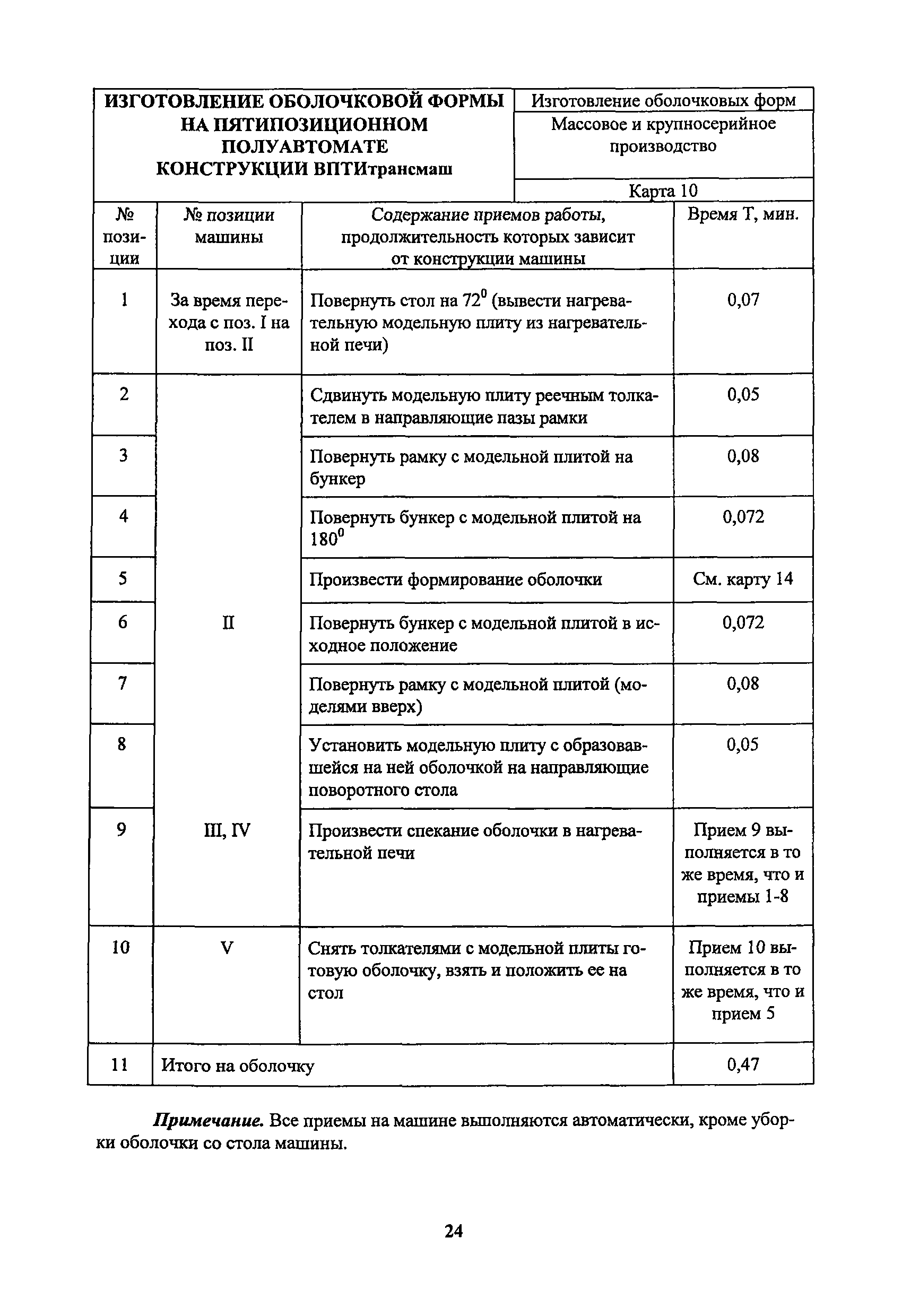 | Оглавление: | 1. Общая часть 2. Характеристика применяемого оборудования 3. Организация труда 4. Нормативная часть 4.1 Нормативы времени на изготовление оболочковых форм. Массовое и крупносерийное производство 4.2 Нормативы времени на изготовление оболочковых форм. Среднесерийное производство 4.3 Нормативы времени на изготовление оболочковых стержней. Массовое и крупносерийное производство Приложение 1. Таблица перевода минут в часы |