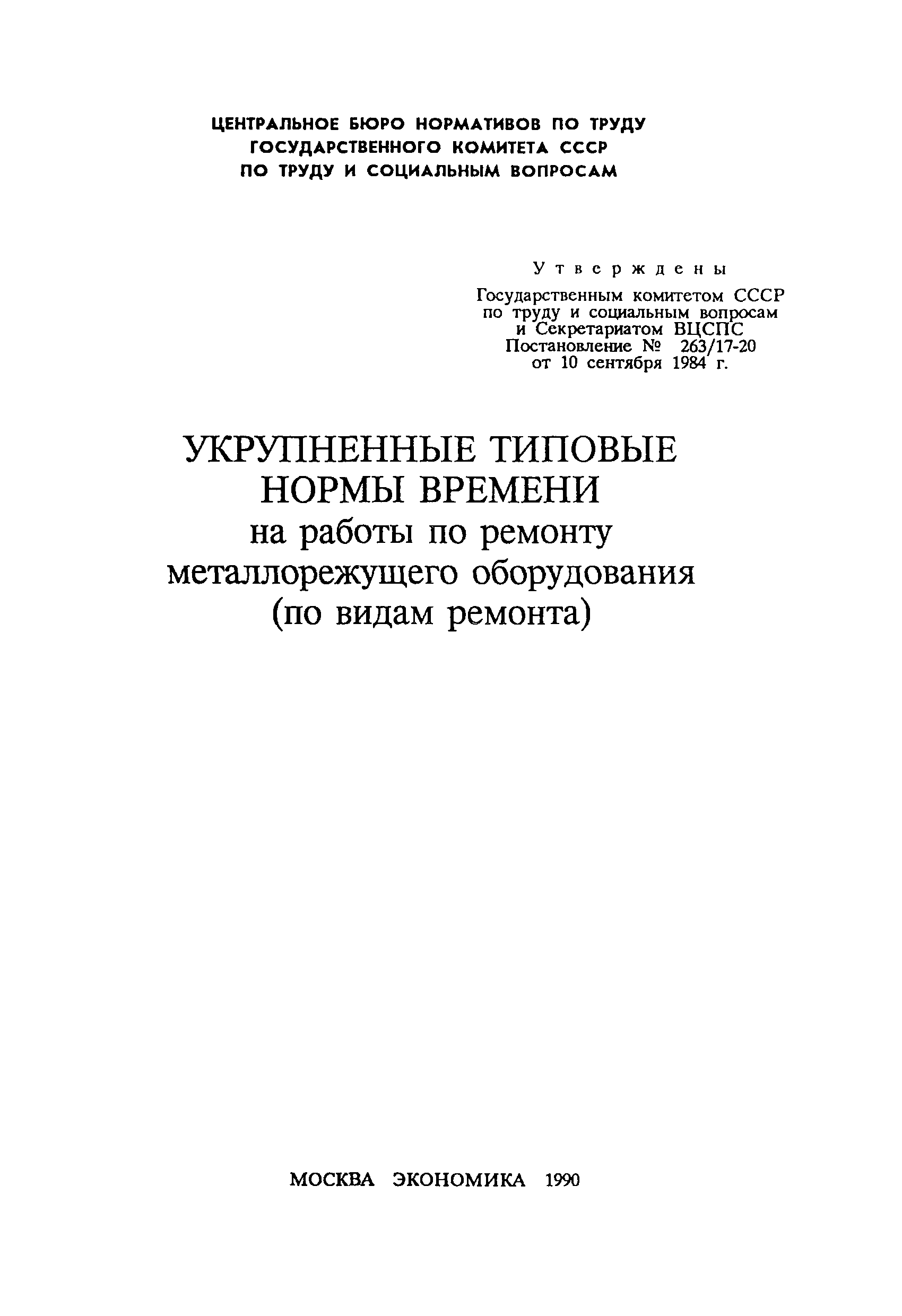 | Утверждён: | 10.09.1984 Государственный комитет СССР по труду и социальным вопросам (263) 10.09.1984 Секретариат ВЦСПС (17-20)