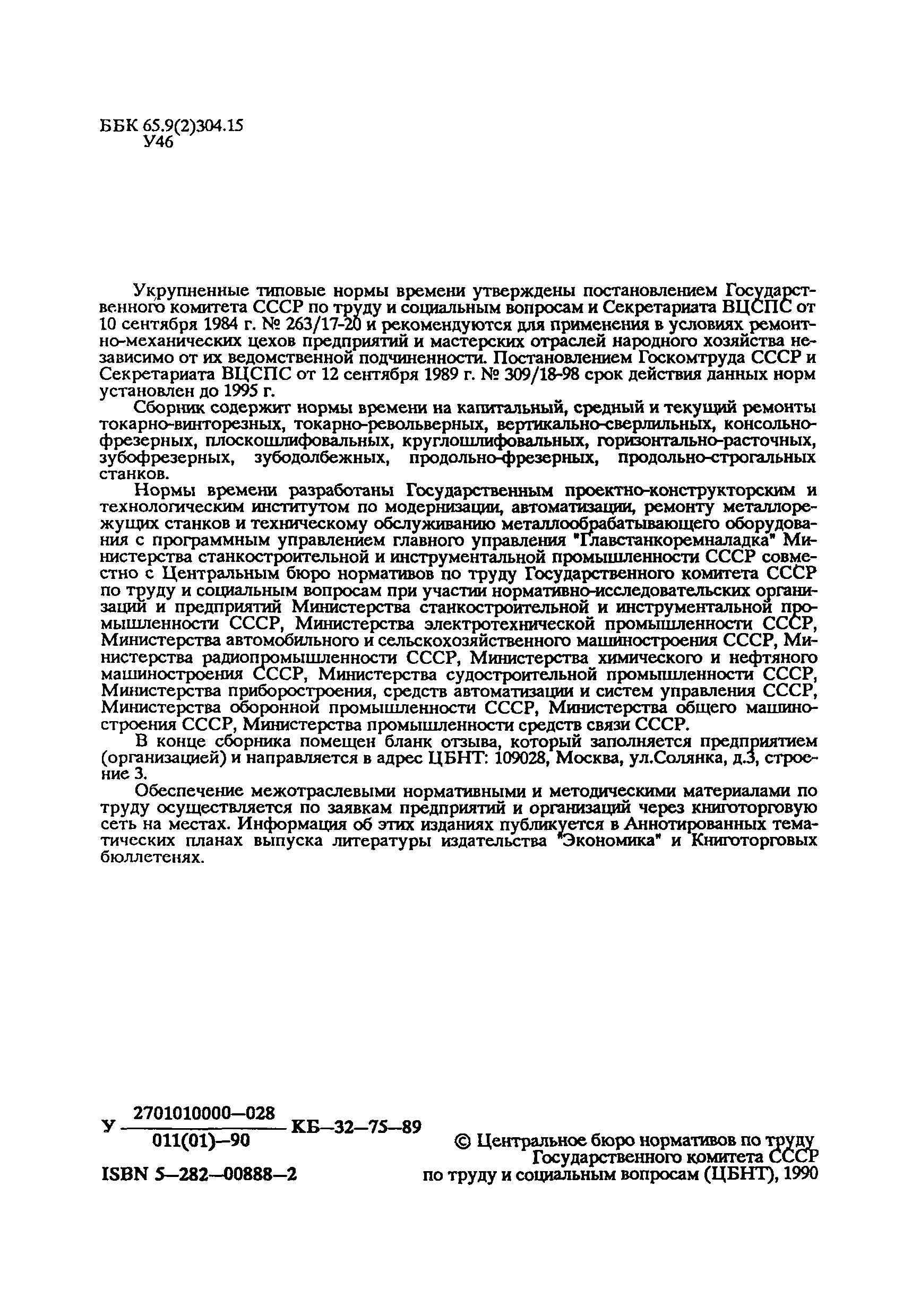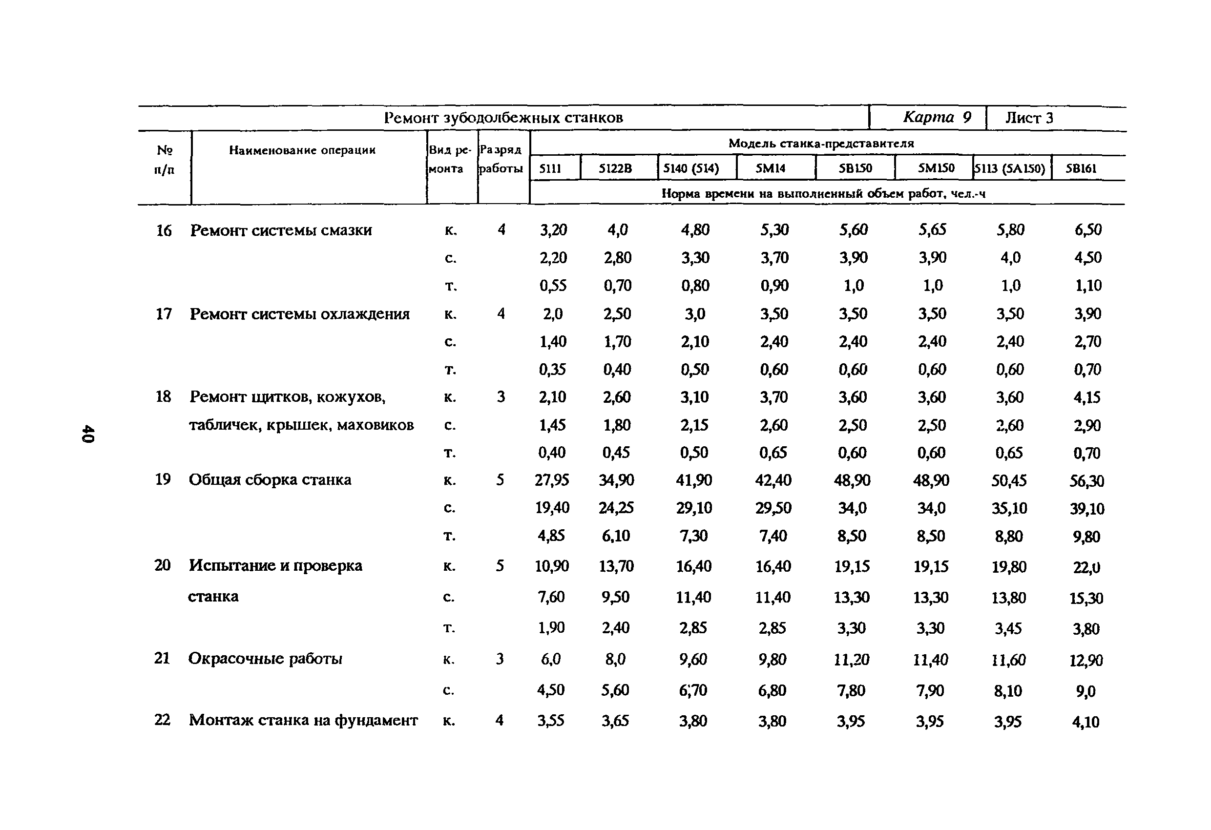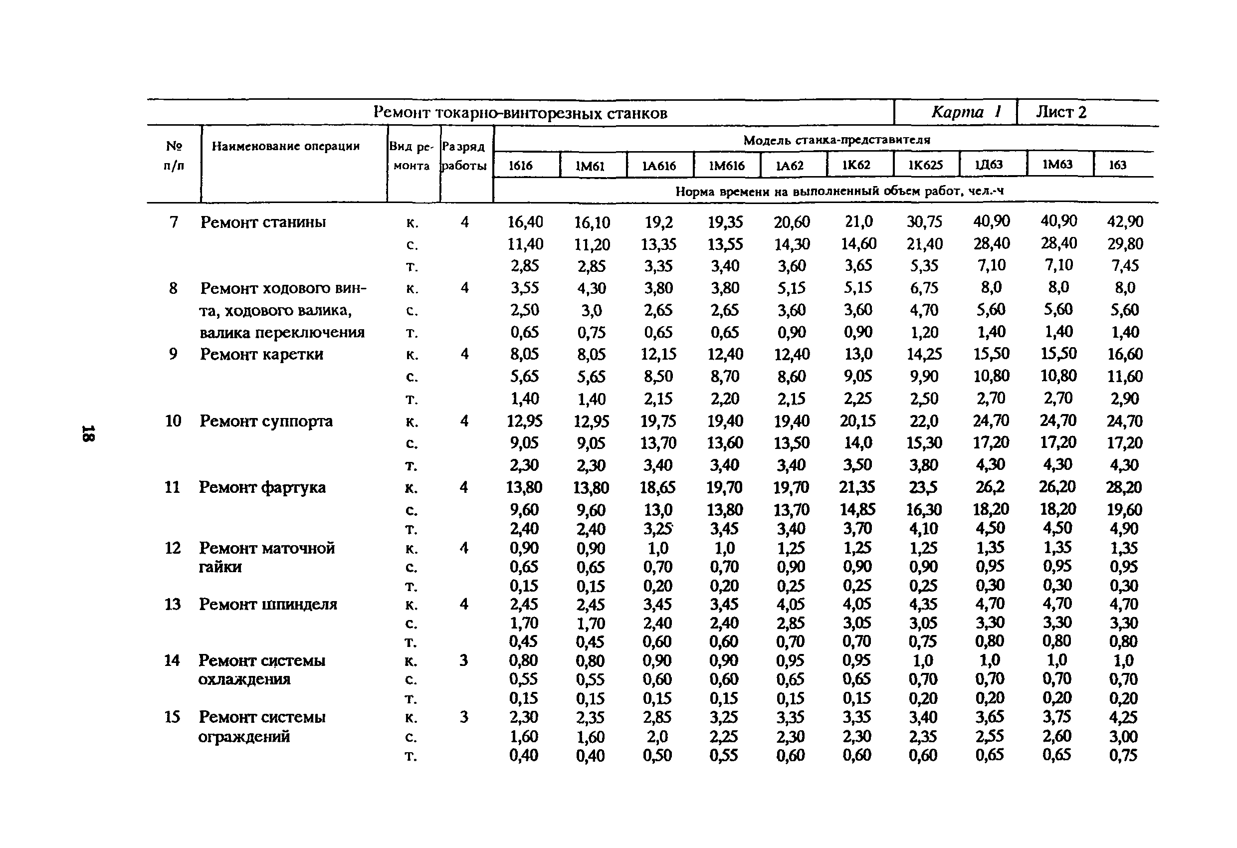 | Название рус.: | Укрупненные типовые нормы времени на работы по ремонту металлорежущего оборудования (по видам ремонта) |