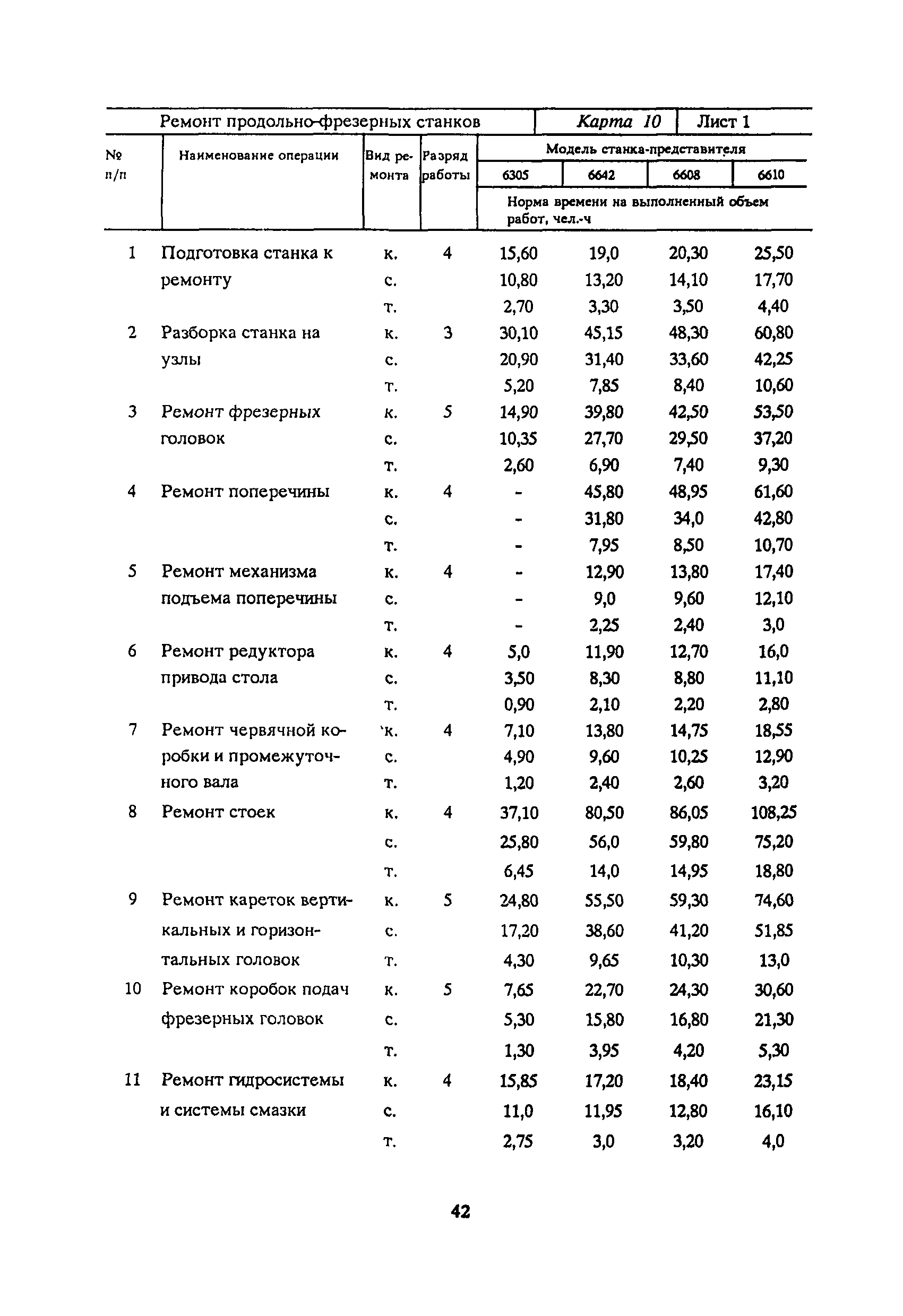 | Оглавление: | 1. Общая часть 2. Организация труда 3. Характеристика применяемого оборудования, приспособлений и инструмента 4. Нормативная часть Карта 1. Ремонт токарно-винторезных станков Карта 2. Ремонт токарно-револьверных станков Карта 3. Ремонт вертикально-сверлильных станков Карта 4. Ремонт консольно-фрезерных станков Карта 5. Ремонт плоскошлифовальных станков Карта 6. Ремонт круглошлифовальных станков Карта 7. Ремонт горизонтально-расточных станков Карта 8. Ремонт зубофрезерных станков Карта 9. Ремонт зубодолбежных станков Карта 10. Ремонт продольно-фрезерных станков Карта 11. Ремонт продольно-строгальных станков |
