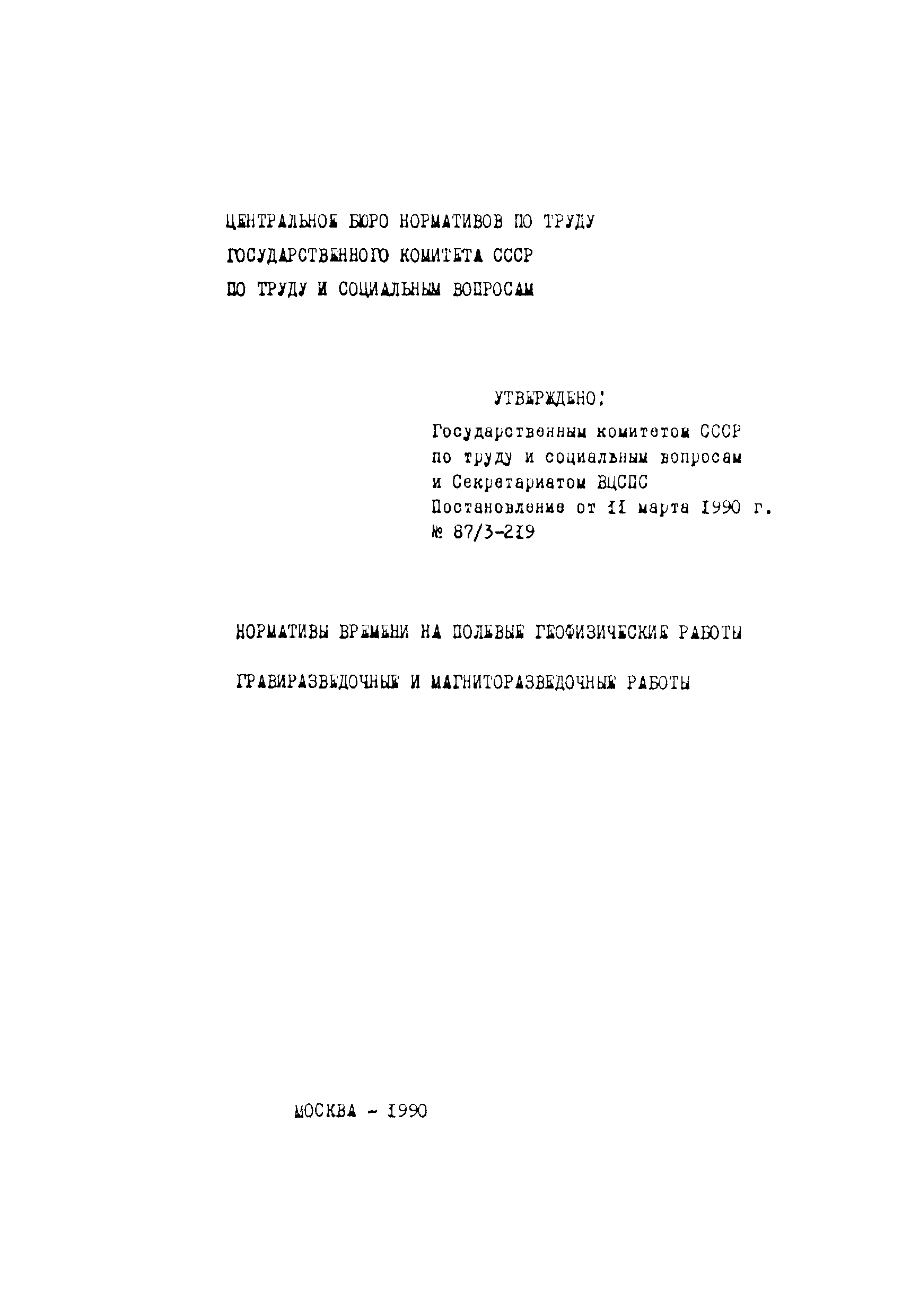 | Утверждён: | 11.03.1990 Государственный комитет СССР по труду и социальным вопросам (87) 11.03.1990 Секретариат ВЦСПС (3-219)