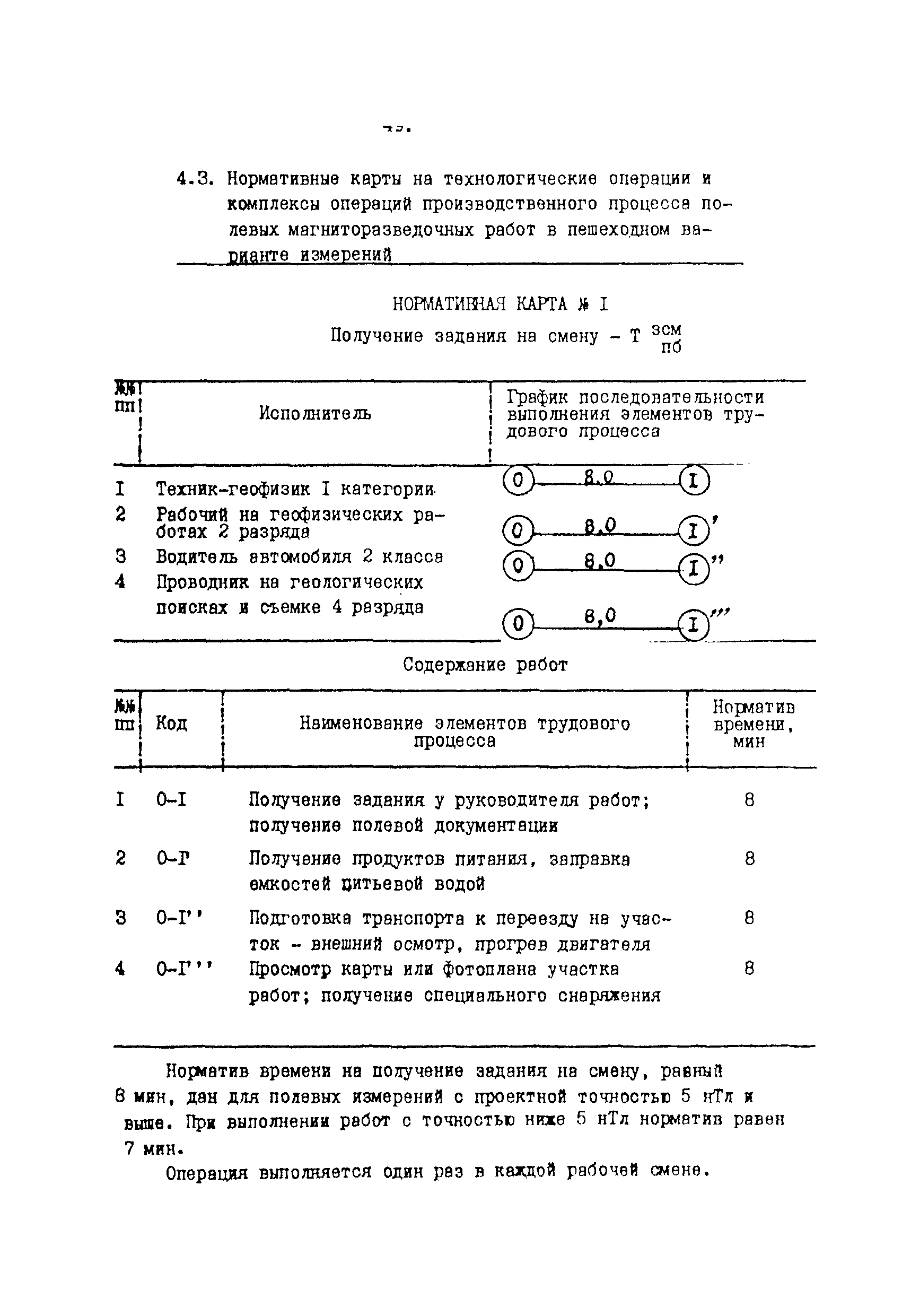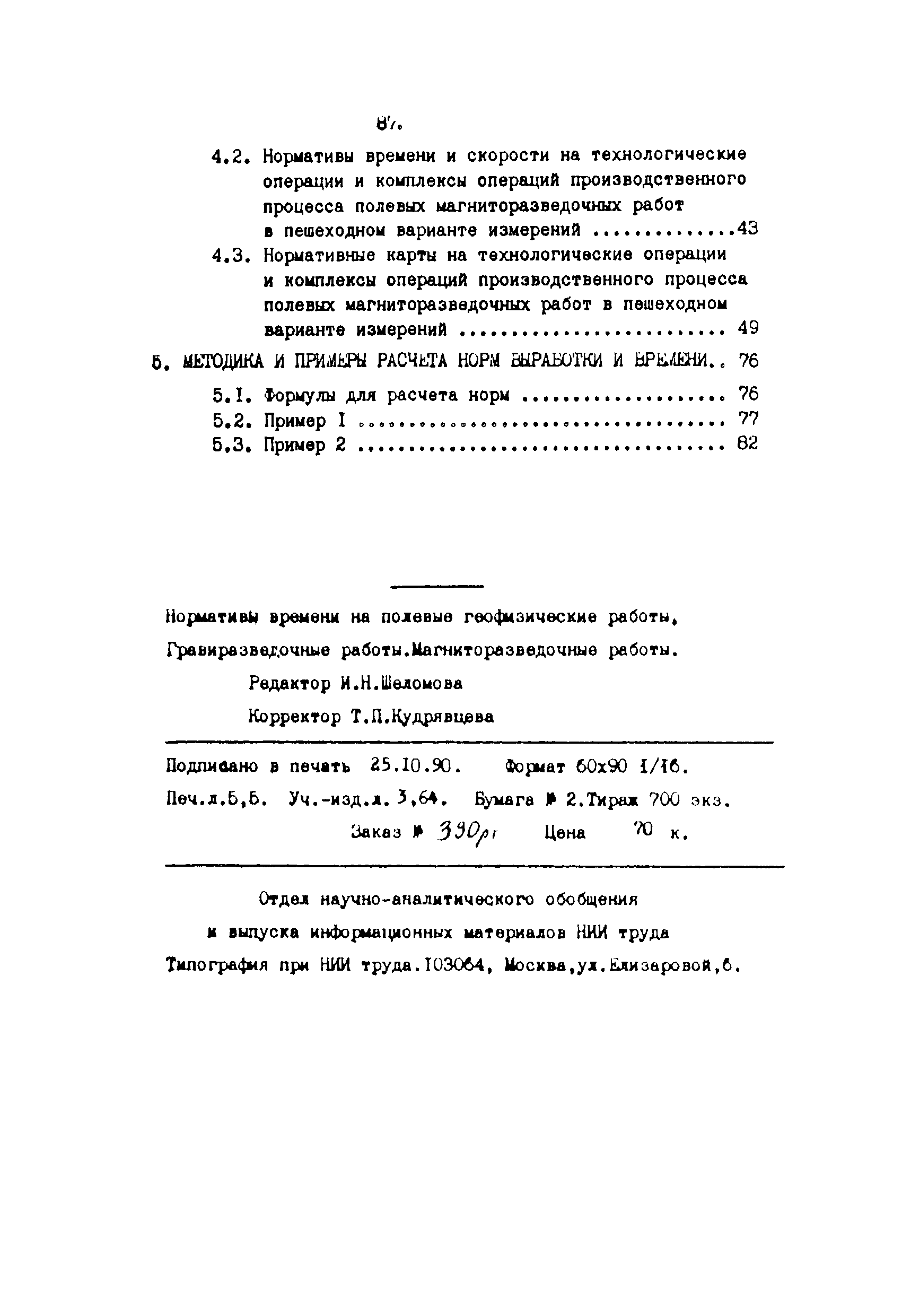 | Оглавление: | Гравиразведочные работы 1. Общая часть 1.1 Назначение сборника и характеристика условий работ 1.2 Характеристика применяемой аппаратуры, технология работ 1.3 Организация труда 2. Нормативная часть 2.1 Нормативы времени и скорости на технологические операции и комплексы операций производственного процесса полевых гравиразведочных работ 2.2 Нормативные карты 3. Методика расчета норм выработки и времени 3.1 Определение затрат оперативного времени 3.2 Порядок расчета 4. Примеры расчета норм выработки и времени для конкретных производственных процессов полевых гравиразведочных работ Магниторазведочные работы 1. Общая часть 2. Технические характеристики магнитометров 3. Организация труда 4. Нормативная часть 4.1 Содержание работ 4.2 Нормативы времени и скорости на технологические операции и комплексы операций производственного процесса полевых магниторазведочных работ 4.3 Нормативные карты на технологические операции и комплексы операций производственного процесса полевых магниторазведочных работ в пешеходном варианте измерений 5. Методика и примеры расчета норм выработки и времени 5.1 Формулы для расчета норм 5.2 Пример 1 5.3 Пример 2 |