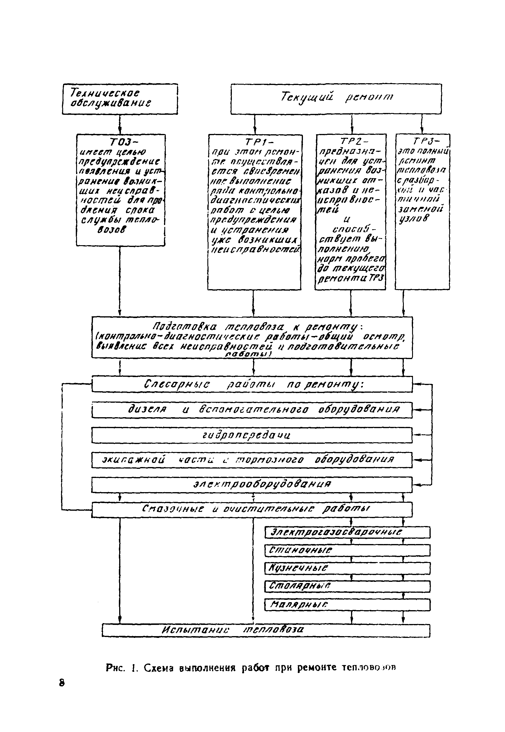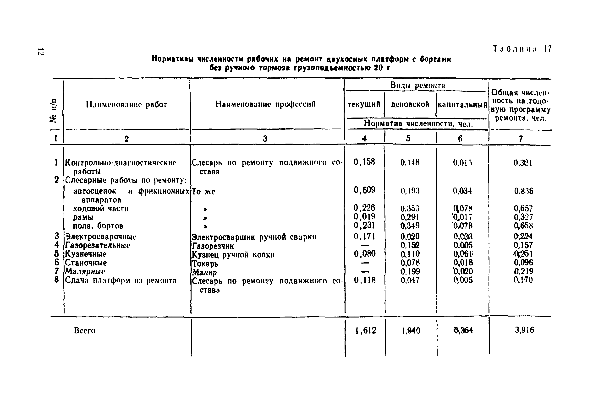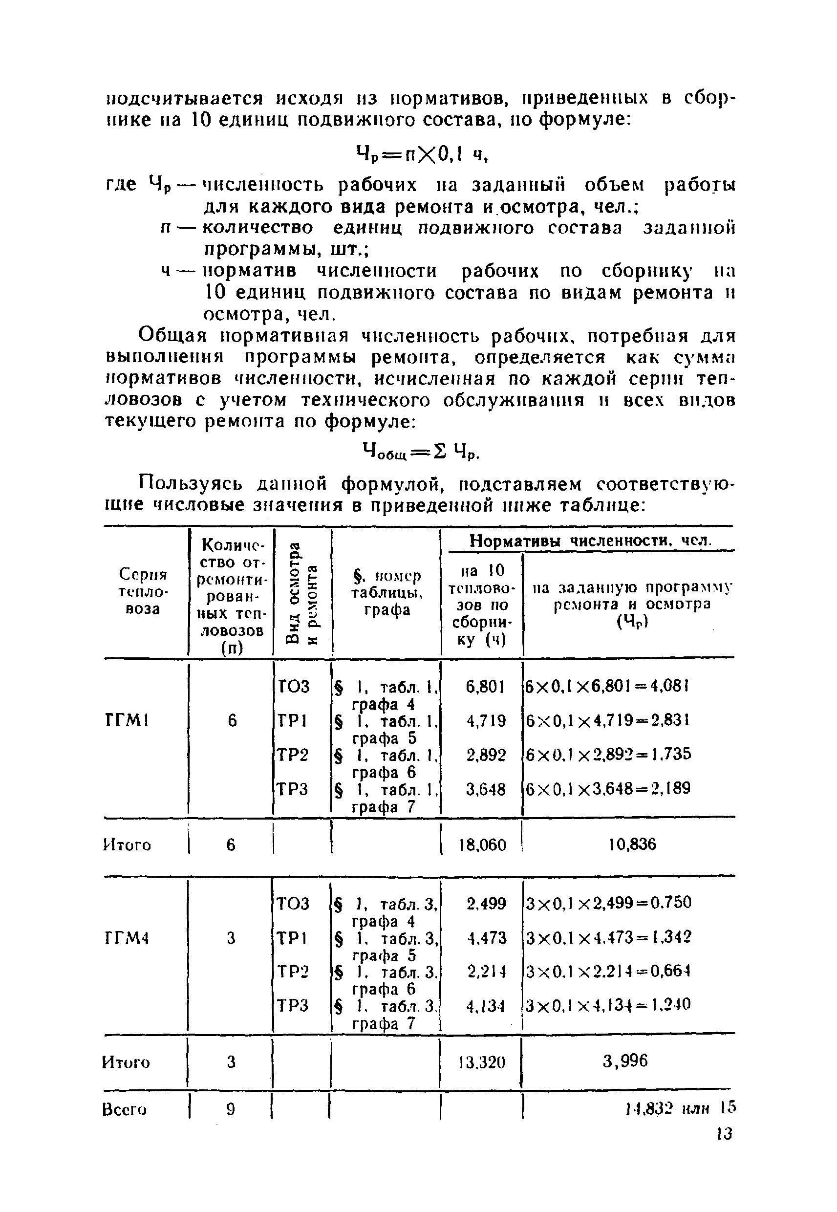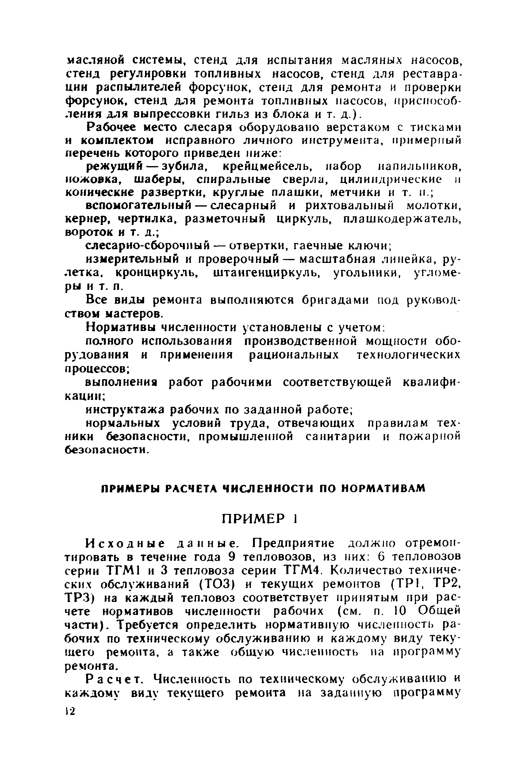 | Оглавление: | Общая часть Организация труда Примеры расчета численности по нормативам Нормативная часть Раздел 1. Нормативы численности рабочих, занятых ремонтом тепловозов для широкой и узкой колеи Краткое содержание работ, выполняемых при техническом обслуживании и текущем ремонте тепловозов Ремонт тепловозов широкой колеи Ремонт тепловозов узкой колеи Раздел 2. Нормативы численности рабочих, занятых ремонтом вагонов для широкой и узкой колеи Краткое содержание работ, выполняемых при ремонте вагонов Ремонт вагонов широкой колеи Ремонт вагонов узкой колеи Приложение 1. Основные технические характеристики тепловозов широкой и узкой колеи Приложение 2. Основные технические характеристики вагонов без ручного тормоза широкой колеи Приложение 3. Основные технические характеристики вагонов узкой колеи |