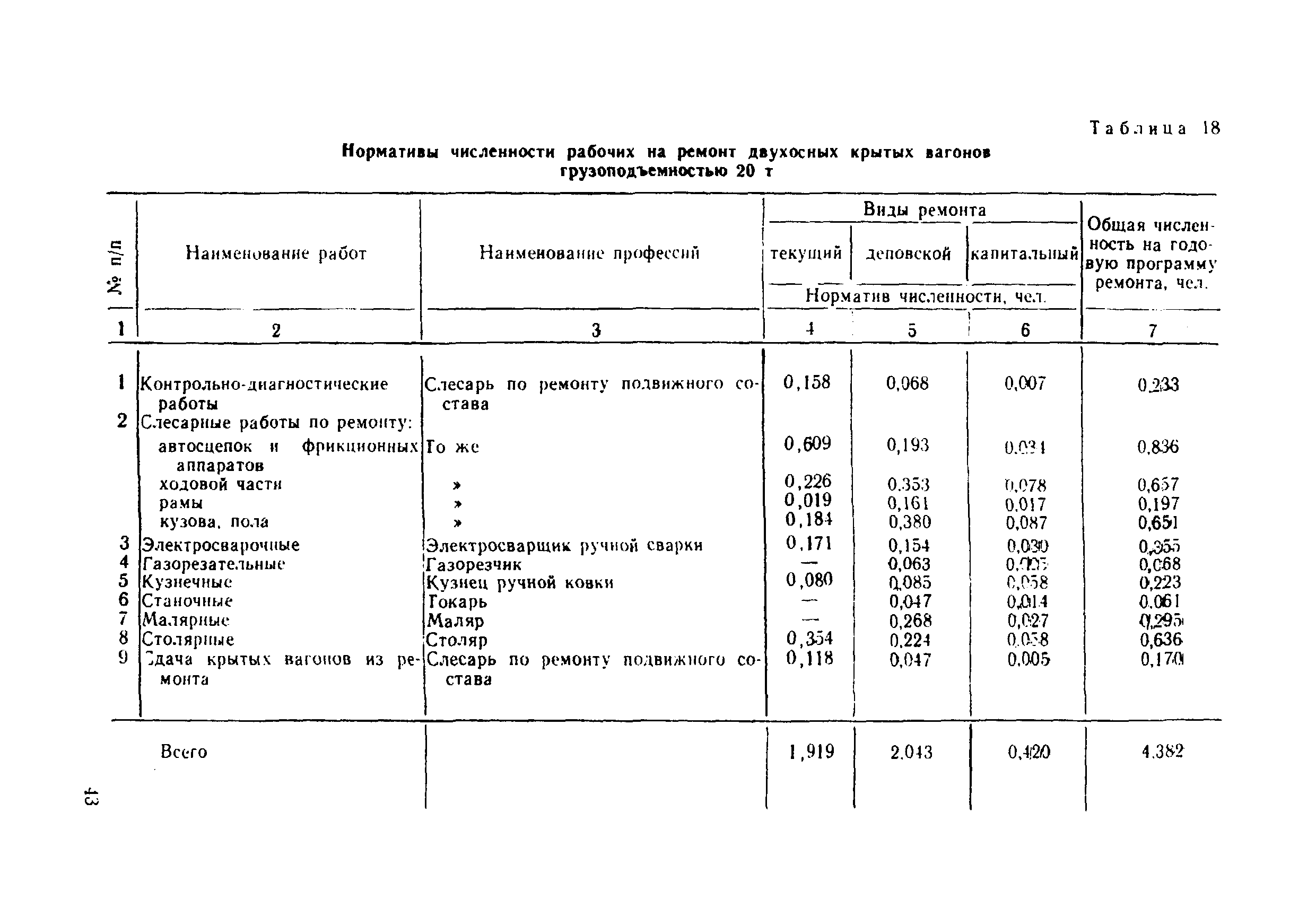 | Заменяет собой: | - «Нормативы численности рабочих, занятых ремонтом подвижного состава предприятий промышленного железнодорожного транспорта» (НИИ труда, 1979 год)