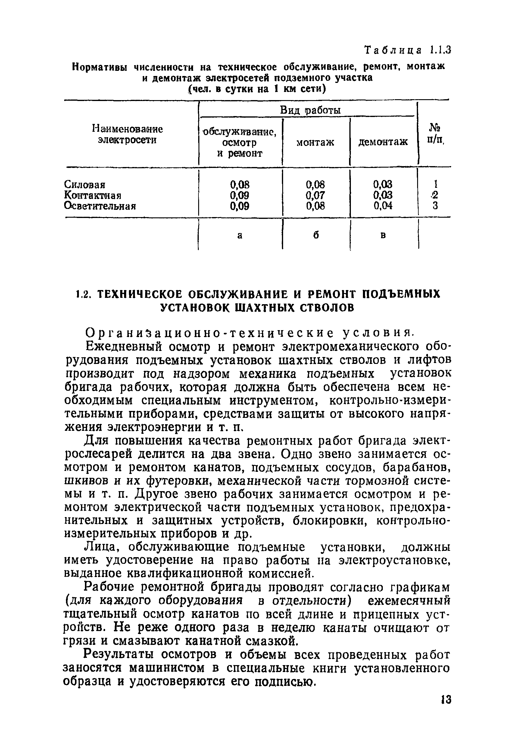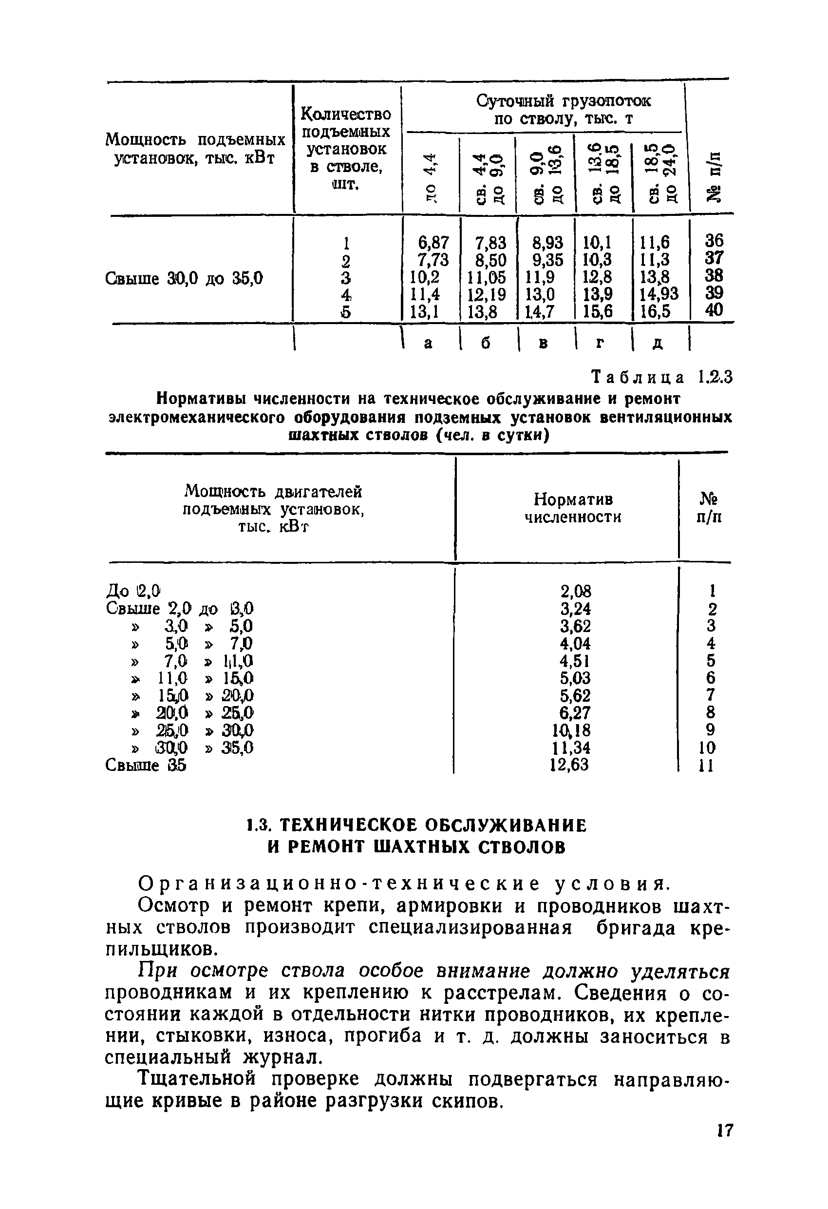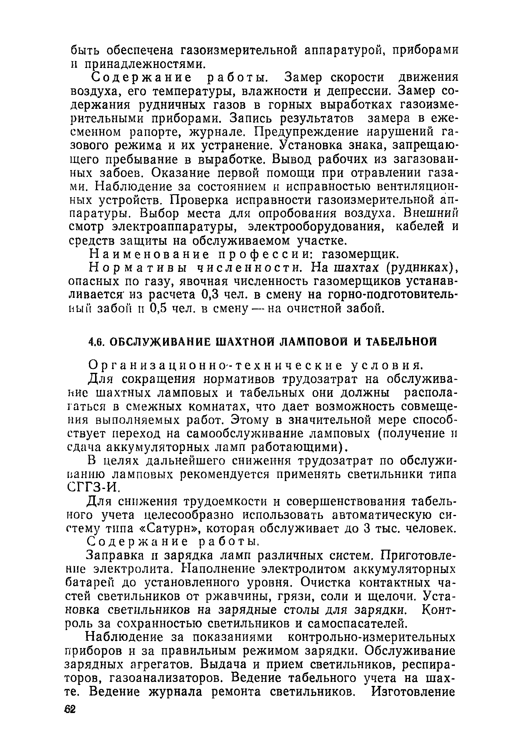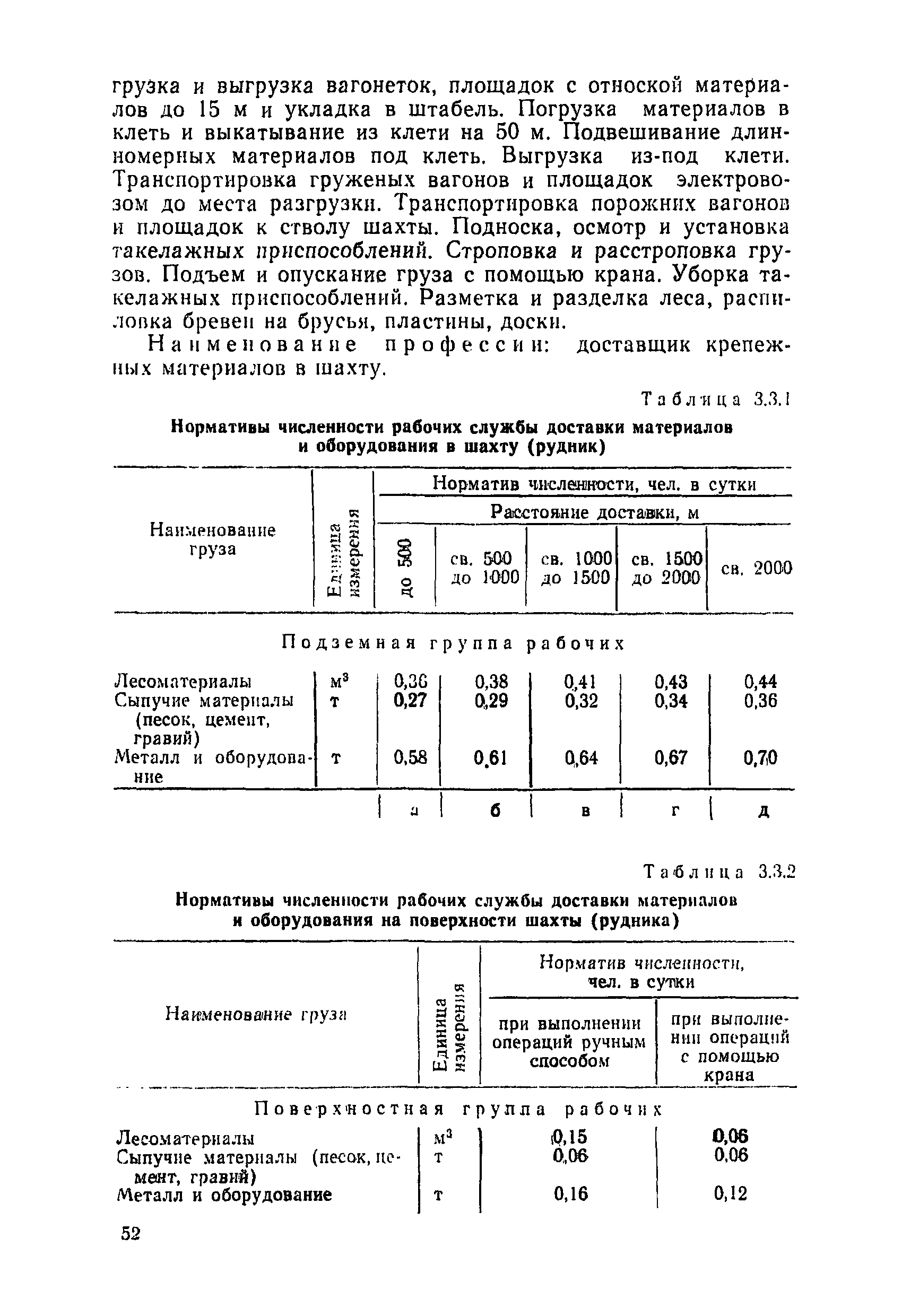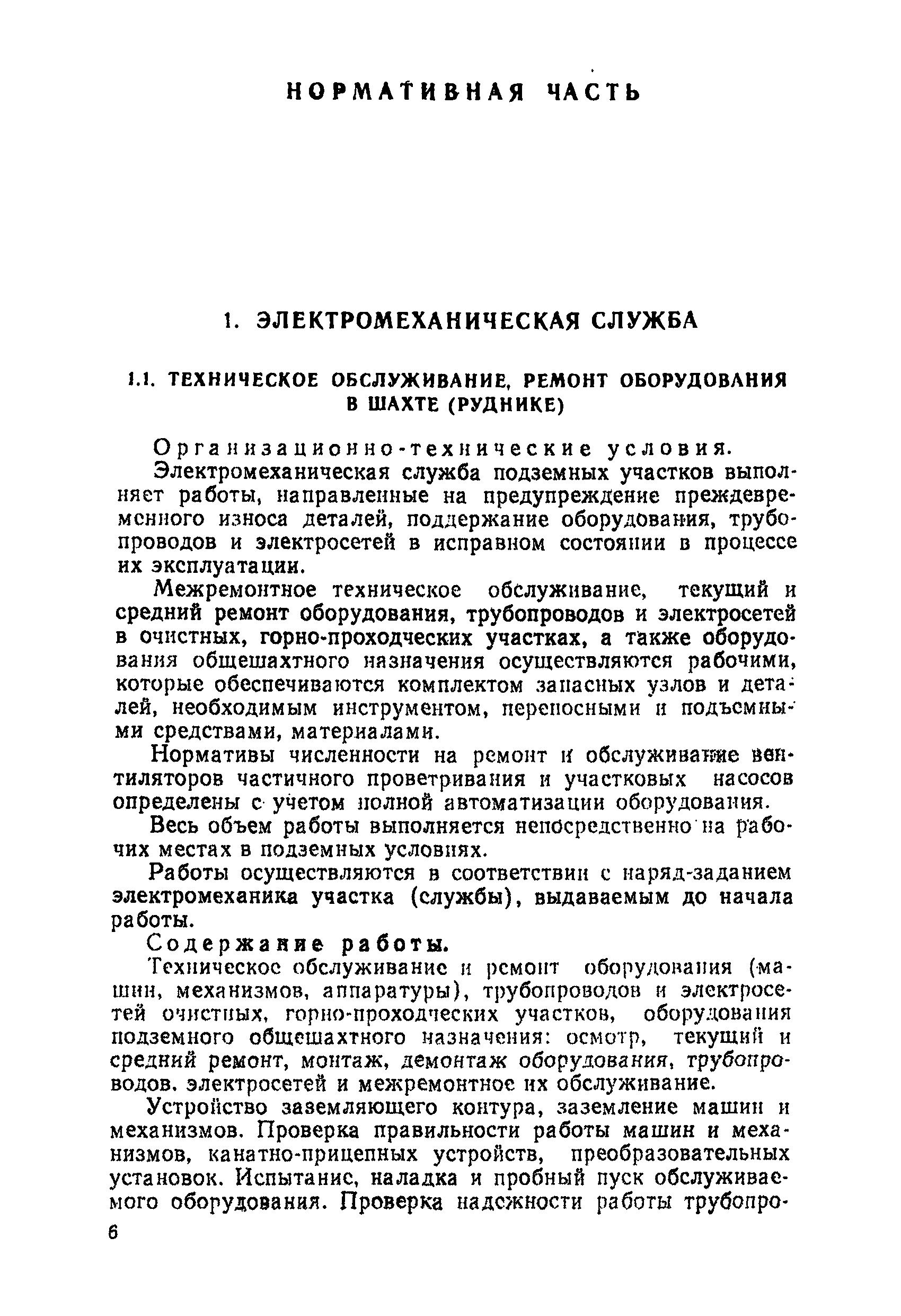Нормативы численности рабочих, занятых обслуживанием и подготовкой производства на подземных горных работах| Статус: | не определен законодательством | | Название рус.: | Нормативы численности рабочих, занятых обслуживанием и подготовкой производства на подземных горных работах | | Дата добавления в базу: | 01.10.2014 | | Дата актуализации: | 01.01.2021 | | Область применения: | В сборнике содержатся нормативы численности на техническое внутрисменное обслуживание, плановый профилактический осмотр и текущий ремонт участкового и общешахтного оборудования. Нормативы сборника предназначены для определения численности рабочих, занятых обслуживанием и подготовкой производства на подземных горных работах, и их расстановки по рабочим местам, а также для составления нормировочных заданий. Настоящими нормативами могут пользоваться плановые и проектные организации. | | Оглавление: | Общая часть Нормативная часть 1. Электромеханическая служба 1.1. Техническое обслуживание, ремонт оборудования в шахте (руднике) 1.2. Техническое обслуживание и ремонт подъемных установок шахтных стволов 1.3. Техническое обслуживание н ремонт шахтных стволов 1.4. Техническое обслуживание и ремонт подъемных установок наклонных шахтных стволов 1.5. Техническое обслуживание и ремонт наклонных шахтных стволов 1.6. Техническое обслуживание и ремонт шахтных электровозов 1.7. Техническое обслуживание и ремонт шахтных вагонов 1.8. Техническое обслуживание и ремонт контактной сети 1.9. Техническое обслуживание и ремонт трубопроводов общешахтного назначения 1,10. Техническое обслуживание и ремонт погрузочных устройств 1.11. Зарядка батарей аккумуляторных электровозов 1.12. Техническое обслуживание и ремонт систем сигнализации, централизации и блокировки (СЦБ) 1.13. Техническое обслуживание и ремонт телефонной, селекторной и высокочастотной связи 1.14. Обслуживание телефонной станции ручной системы 2. Управление машинами и механизмами 2.1. Управление подъемными машинами 2.2. Управление и обслуживание опрокидывателей, толкателей, маневровых лебедок, прием и контроль качества рудной массы в шахте и на поверхности 2.3. Управление питателями и дробилками в шахте 2.4. Обслуживание дозаторных устройств для загрузки скипов 2.5. Управление вентиляторами 2.6. Управление насосами шахтного (рудничного) водоотлива и обслуживание электроподстанций и преобразовательных установок 2.7. Управление компрессорами 2.8. Управление лебедками в шахте и на поверхности 2.9. Управление конвейерами 2.10. Зачистка откаточных выработок погрузочными машинами 2.11. Зачистка горных выработок и разработка выпускных воронок на добыче скреперными лебедками 30ЛС-2С и 17ЛС-2С 2.12. Управление мостовыми кранами 3. Транспортирование грузов и перевозка людей 3.1. Перевозка людей и материалов в шахте 3.2. Доставка взрывчатых материалов на поверхности шахты (рудника) и в шахте (руднике) 3.3. Доставка крепежных материалов (песка, цемента, гравия, лесоматериалов) и оборудования в шахту (рудник) 3.4. Прием и выдача грузов у ствола в шахте и на поверхности 3.5. Обслуживание породных отвалов 3.6. Содержание и ремонт путевого хозяйства 3.7. Содержание и ремонт общешахтных выработок 4. Работы по хозяйственному обслуживанию шахт и рудников, прочие работы 4.1. Выдача и хранение взрывчатых материалов (ВМ) на подземном складе 4.2. Обслуживание инструментальных кл