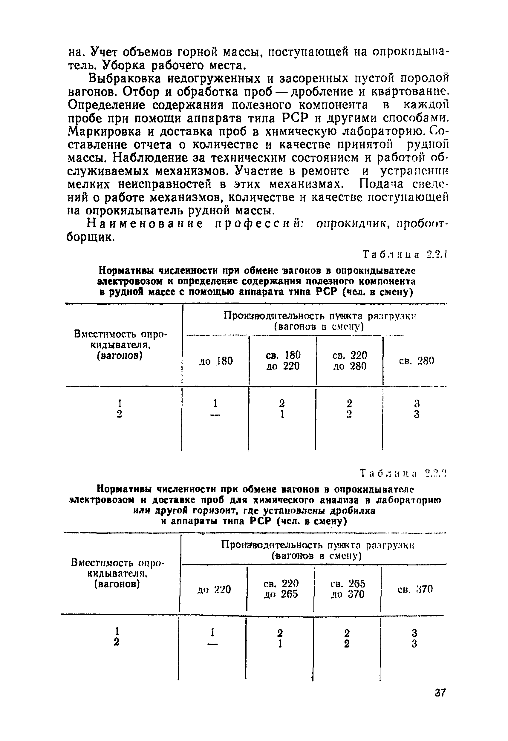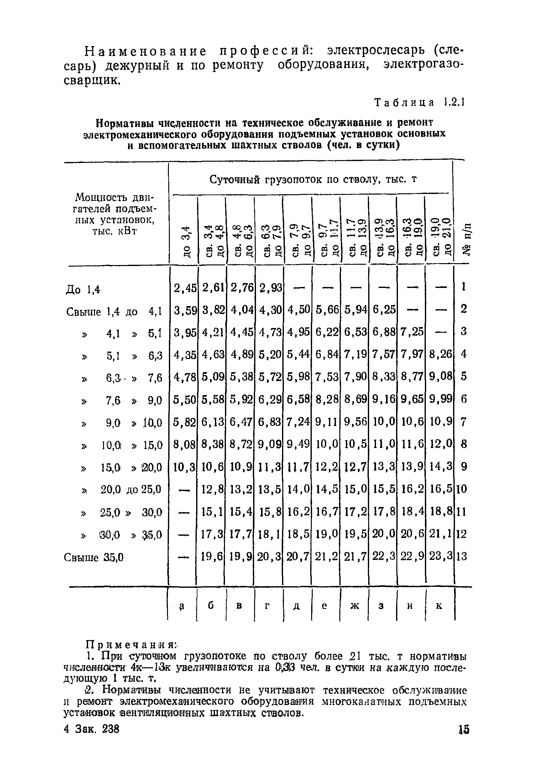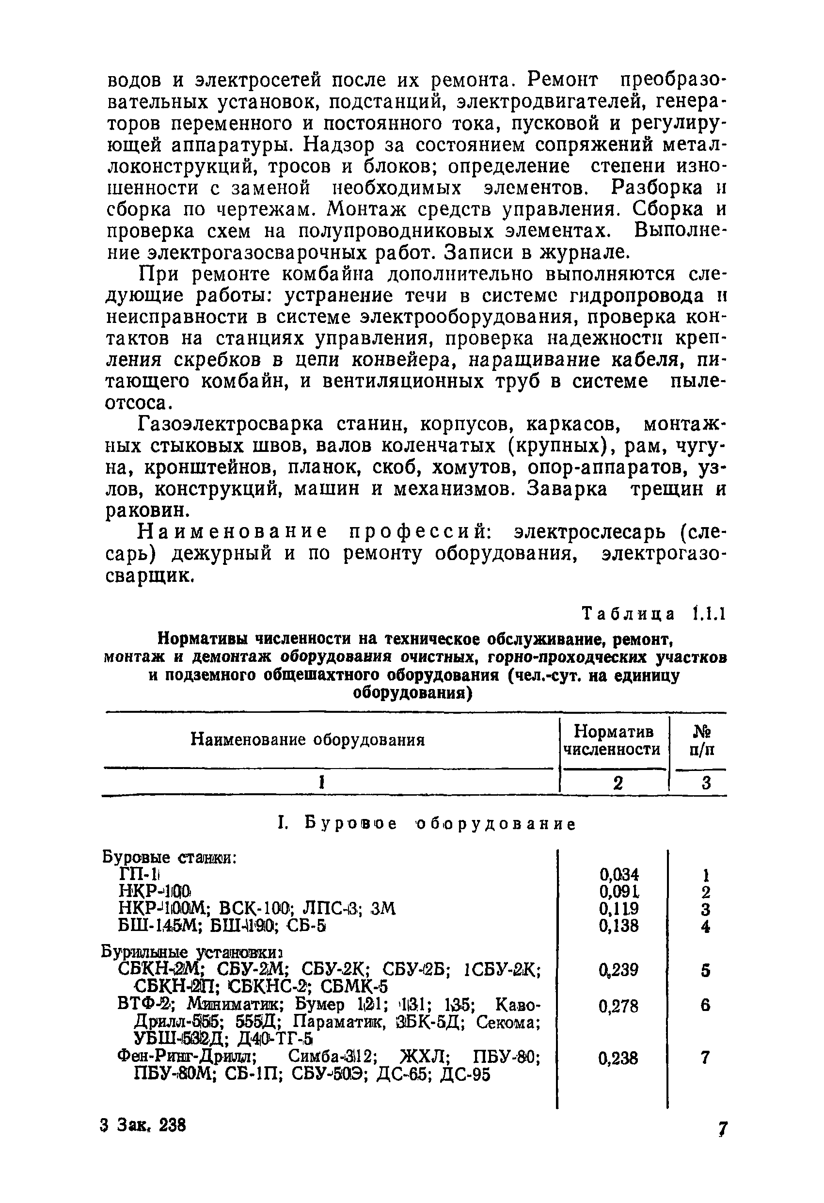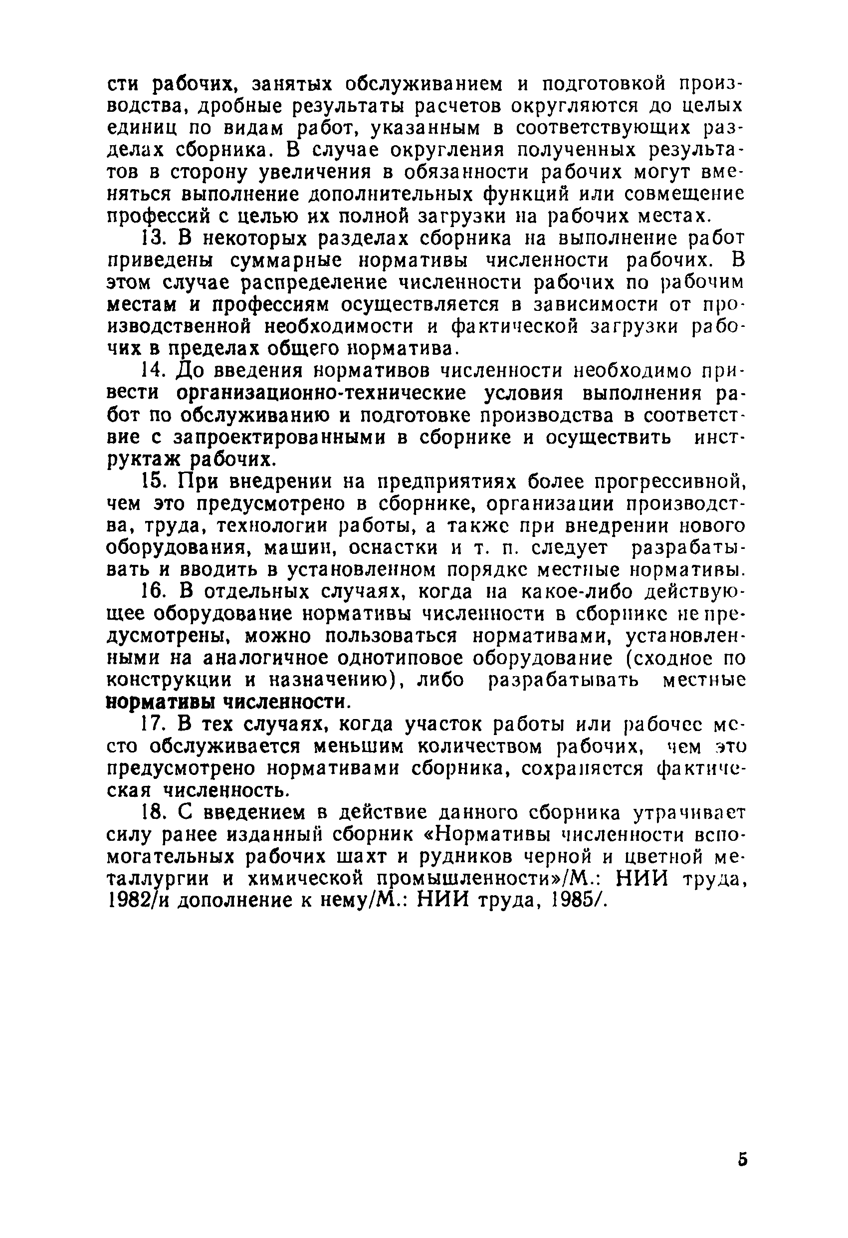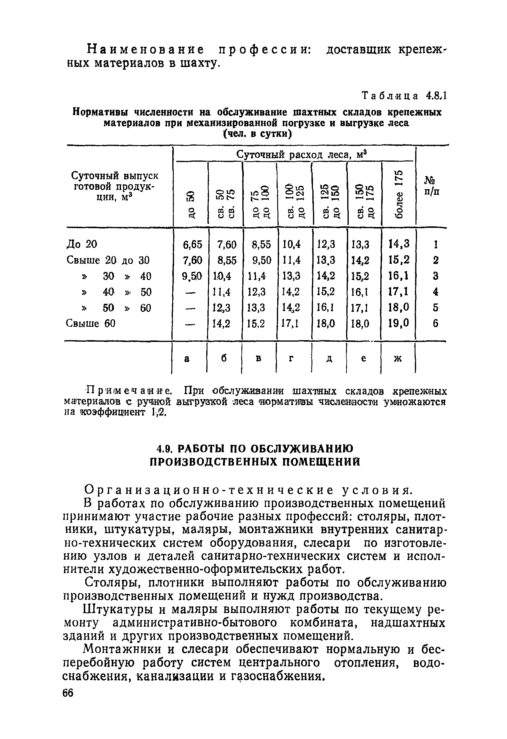 Нормативы численности рабочих, занятых обслуживанием и подготовкой производства на подземных горных работах| Статус: | не определен законодательством | | Название рус.: | Нормативы численности рабочих, занятых обслуживанием и подготовкой производства на подземных горных работах | | Дата добавления в базу: | 01.10.2014 | | Дата актуализации: | 01.01.2021 | | Область применения: | В сборнике содержатся нормативы численности на техническое внутрисменное обслуживание, плановый профилактический осмотр и текущий ремонт участкового и общешахтного оборудования. Нормативы сборника предназначены для определения численности рабочих, занятых обслуживанием и подготовкой производства на подземных горных работах, и их расстановки по рабочим местам, а также для составления нормировочных заданий. Настоящими нормативами могут пользоваться плановые и проектные организации. | | Оглавление: | Общая часть Нормативная часть 1. Электромеханическая служба 1.1. Техническое обслуживание, ремонт оборудования в шахте (руднике) 1.2. Техническое обслуживание и ремонт подъемных установок шахтных стволов 1.3. Техническое обслуживание н ремонт шахтных стволов 1.4. Техническое обслуживание и ремонт подъемных установок наклонных шахтных стволов 1.5. Техническое обслуживание и ремонт наклонных шахтных стволов 1.6. Техническое обслуживание и ремонт шахтных электровозов 1.7. Техническое обслуживание и ремонт шахтных вагонов 1.8. Техническое обслуживание и ремонт контактной сети 1.9. Техническое обслуживание и ремонт трубопроводов общешахтного назначения 1,10. Техническое обслуживание и ремонт погрузочных устройств 1.11. Зарядка батарей аккумуляторных электровозов 1.12. Техническое обслуживание и ремонт систем сигнализации, централизации и блокировки (СЦБ) 1.13. Техническое обслуживание и ремонт телефонной, селекторной и высокочастотной связи 1.14. Обслуживание телефонной станции ручной системы 2. Управление машинами и механизмами 2.1. Управление подъемными машинами 2.2. Управление и обслуживание опрокидывателей, толкателей, маневровых лебедок, прием и контроль качества рудной массы в шахте и на поверхности 2.3. Управление питателями и дробилками в шахте 2.4. Обслуживание дозаторных устройств для загрузки скипов 2.5. Управление вентиляторами 2.6. Управление насосами шахтного (рудничного) водоотлива и обслуживание электроподстанций и преобразовательных установок 2.7. Управление компрессорами 2.8. Управление лебедками в шахте и на поверхности 2.9. Управление конвейерами 2.10. Зачистка откаточных выработок погрузочными машинами 2.11. Зачистка горных выработок и разработка выпускных воронок на добыче скреперными лебедками 30ЛС-2С и 17ЛС-2С 2.12. Управление мостовыми кранами 3. Транспортирование грузов и перевозка людей 3.1. Перевозка людей и материалов в шахте 3.2. Доставка взрывчатых материалов на поверхности шахты (рудника) и в шахте (руднике) 3.3. Доставка крепежных материалов (песка, цемента, гравия, лесоматериалов) и оборудования в шахту (рудник) 3.4. Прием и выдача грузов у ствола в шахте и на поверхности 3.5. Обслуживание породных отвалов 3.6. Содержание и ремонт путевого хозяйства 3.7. Содержание и ремонт общешахтных выработок 4. Работы по хозяйственному обслуживанию шахт и рудников, прочие работы 4.1. Выдача и хранение взрывчатых материалов (ВМ) на подземном складе 4.2. Обслуживание инструментальных кл