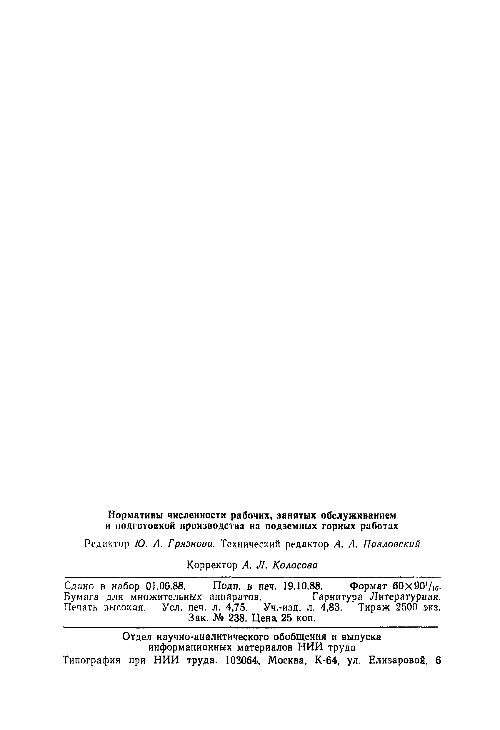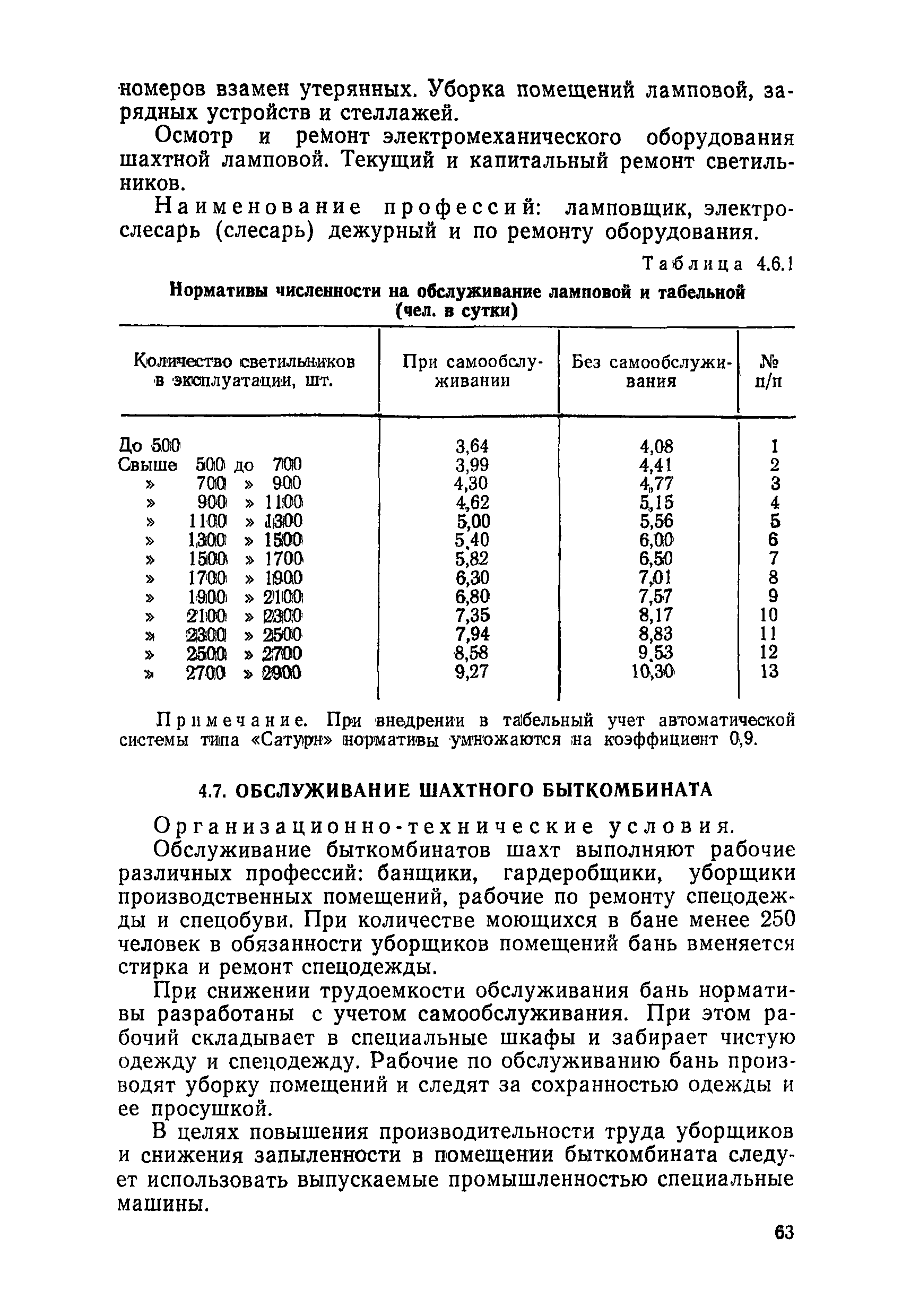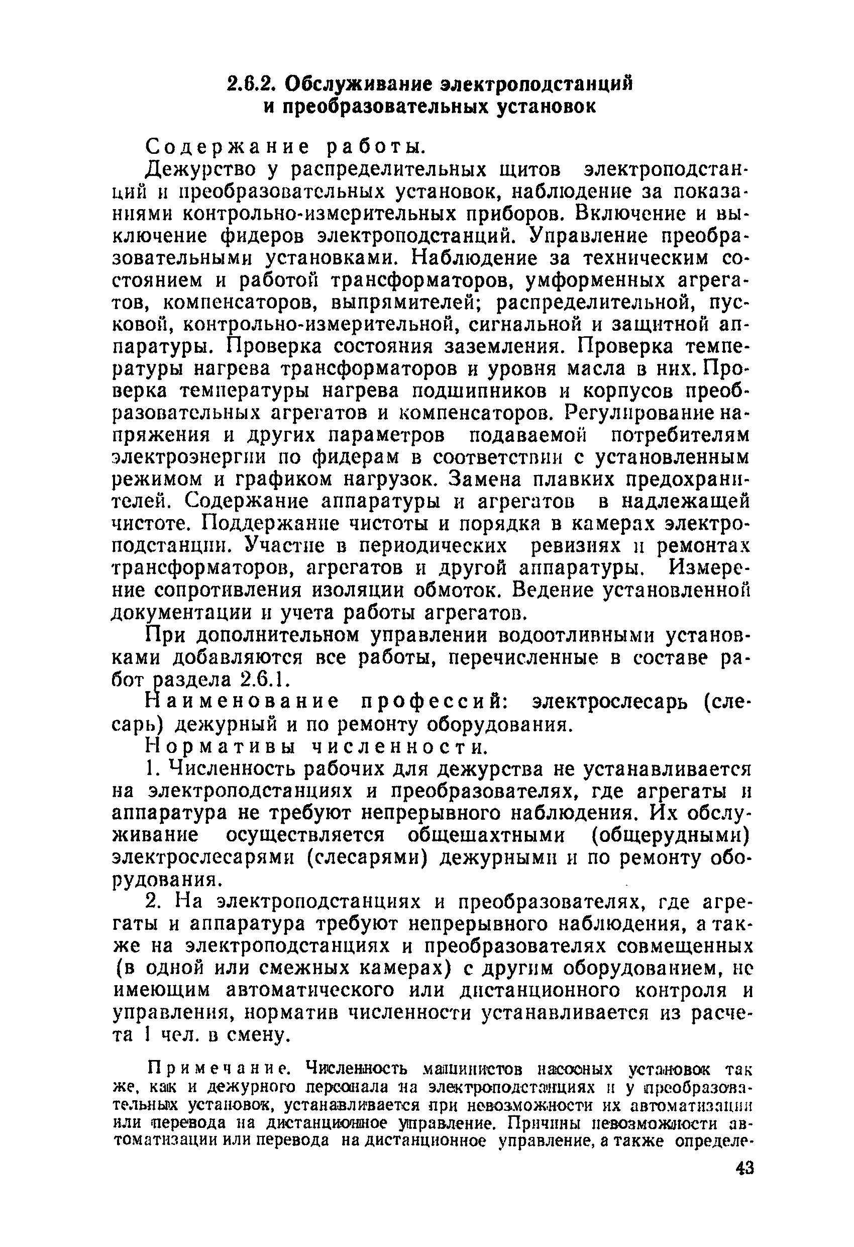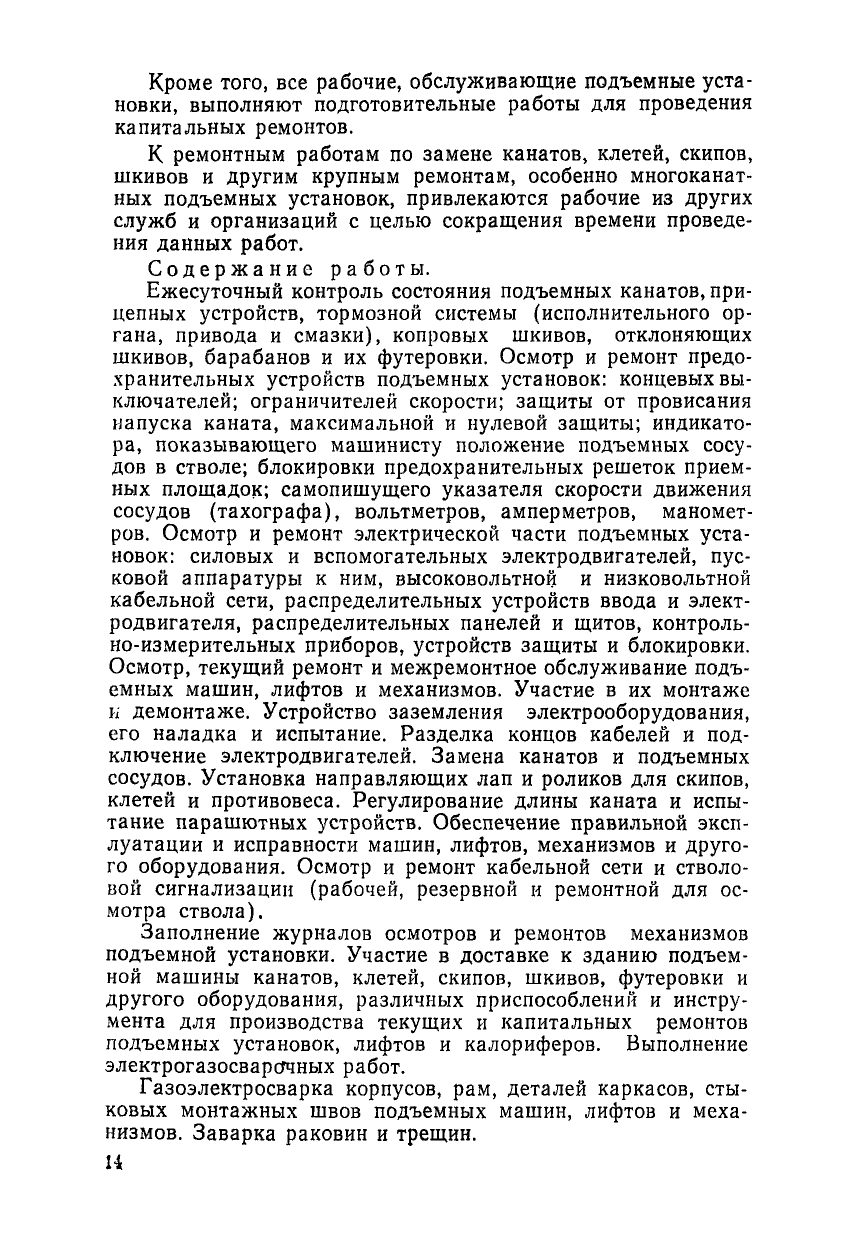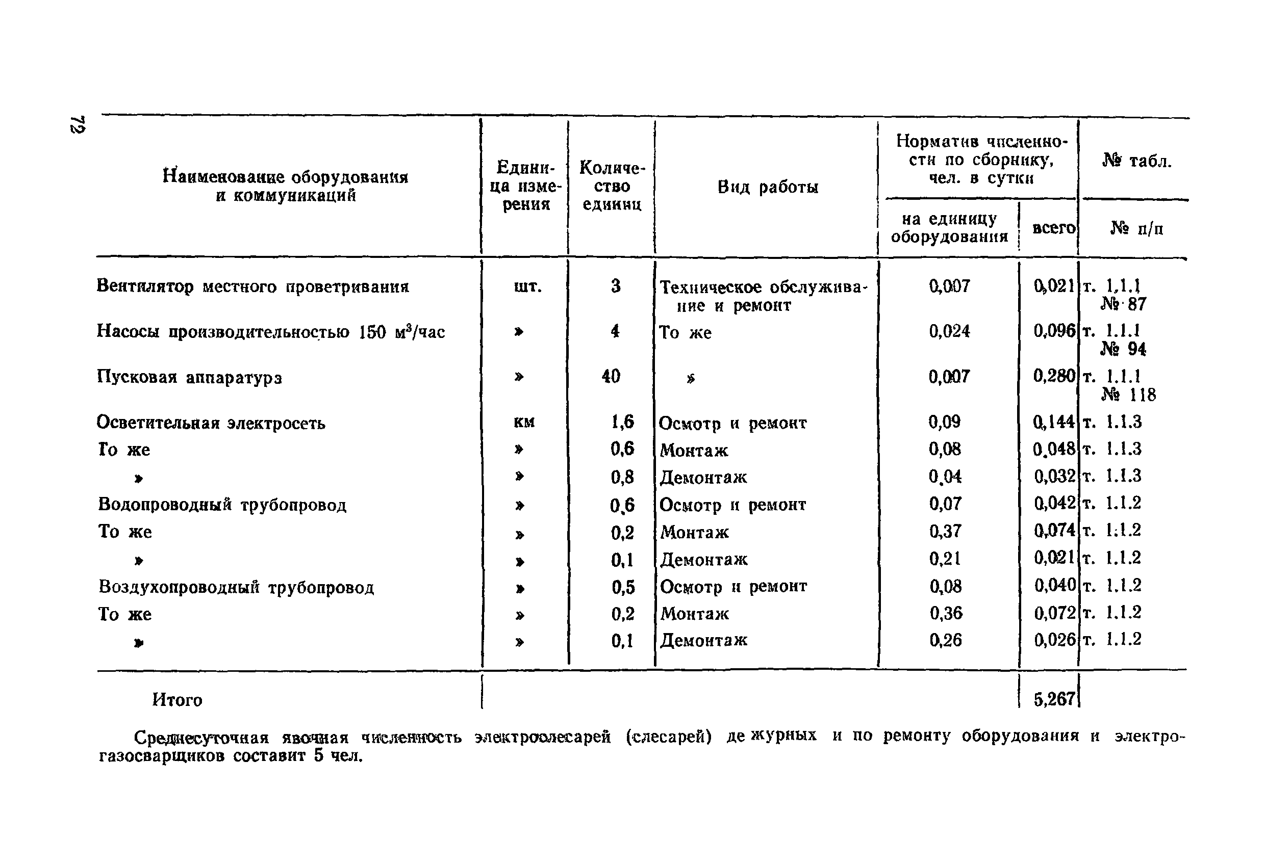Нормативы численности рабочих, занятых обслуживанием и подготовкой производства на подземных горных работах| Статус: | не определен законодательством | | Название рус.: | Нормативы численности рабочих, занятых обслуживанием и подготовкой производства на подземных горных работах | | Дата добавления в базу: | 01.10.2014 | | Дата актуализации: | 01.01.2021 | | Область применения: | В сборнике содержатся нормативы численности на техническое внутрисменное обслуживание, плановый профилактический осмотр и текущий ремонт участкового и общешахтного оборудования. Нормативы сборника предназначены для определения численности рабочих, занятых обслуживанием и подготовкой производства на подземных горных работах, и их расстановки по рабочим местам, а также для составления нормировочных заданий. Настоящими нормативами могут пользоваться плановые и проектные организации. | | Оглавление: | Общая часть Нормативная часть 1. Электромеханическая служба 1.1. Техническое обслуживание, ремонт оборудования в шахте (руднике) 1.2. Техническое обслуживание и ремонт подъемных установок шахтных стволов 1.3. Техническое обслуживание н ремонт шахтных стволов 1.4. Техническое обслуживание и ремонт подъемных установок наклонных шахтных стволов 1.5. Техническое обслуживание и ремонт наклонных шахтных стволов 1.6. Техническое обслуживание и ремонт шахтных электровозов 1.7. Техническое обслуживание и ремонт шахтных вагонов 1.8. Техническое обслуживание и ремонт контактной сети 1.9. Техническое обслуживание и ремонт трубопроводов общешахтного назначения 1,10. Техническое обслуживание и ремонт погрузочных устройств 1.11. Зарядка батарей аккумуляторных электровозов 1.12. Техническое обслуживание и ремонт систем сигнализации, централизации и блокировки (СЦБ) 1.13. Техническое обслуживание и ремонт телефонной, селекторной и высокочастотной связи 1.14. Обслуживание телефонной станции ручной системы 2. Управление машинами и механизмами 2.1. Управление подъемными машинами 2.2. Управление и обслуживание опрокидывателей, толкателей, маневровых лебедок, прием и контроль качества рудной массы в шахте и на поверхности 2.3. Управление питателями и дробилками в шахте 2.4. Обслуживание дозаторных устройств для загрузки скипов 2.5. Управление вентиляторами 2.6. Управление насосами шахтного (рудничного) водоотлива и обслуживание электроподстанций и преобразовательных установок 2.7. Управление компрессорами 2.8. Управление лебедками в шахте и на поверхности 2.9. Управление конвейерами 2.10. Зачистка откаточных выработок погрузочными машинами 2.11. Зачистка горных выработок и разработка выпускных воронок на добыче скреперными лебедками 30ЛС-2С и 17ЛС-2С 2.12. Управление мостовыми кранами 3. Транспортирование грузов и перевозка людей 3.1. Перевозка людей и материалов в шахте 3.2. Доставка взрывчатых материалов на поверхности шахты (рудника) и в шахте (руднике) 3.3. Доставка крепежных материалов (песка, цемента, гравия, лесоматериалов) и оборудования в шахту (рудник) 3.4. Прием и выдача грузов у ствола в шахте и на поверхности 3.5. Обслуживание породных отвалов 3.6. Содержание и ремонт путевого хозяйства 3.7. Содержание и ремонт общешахтных выработок 4. Работы по хозяйственному обслуживанию шахт и рудников, прочие работы 4.1. Выдача и хранение взрывчатых материалов (ВМ) на подземном складе 4.2. Обслуживание инструментальных кл