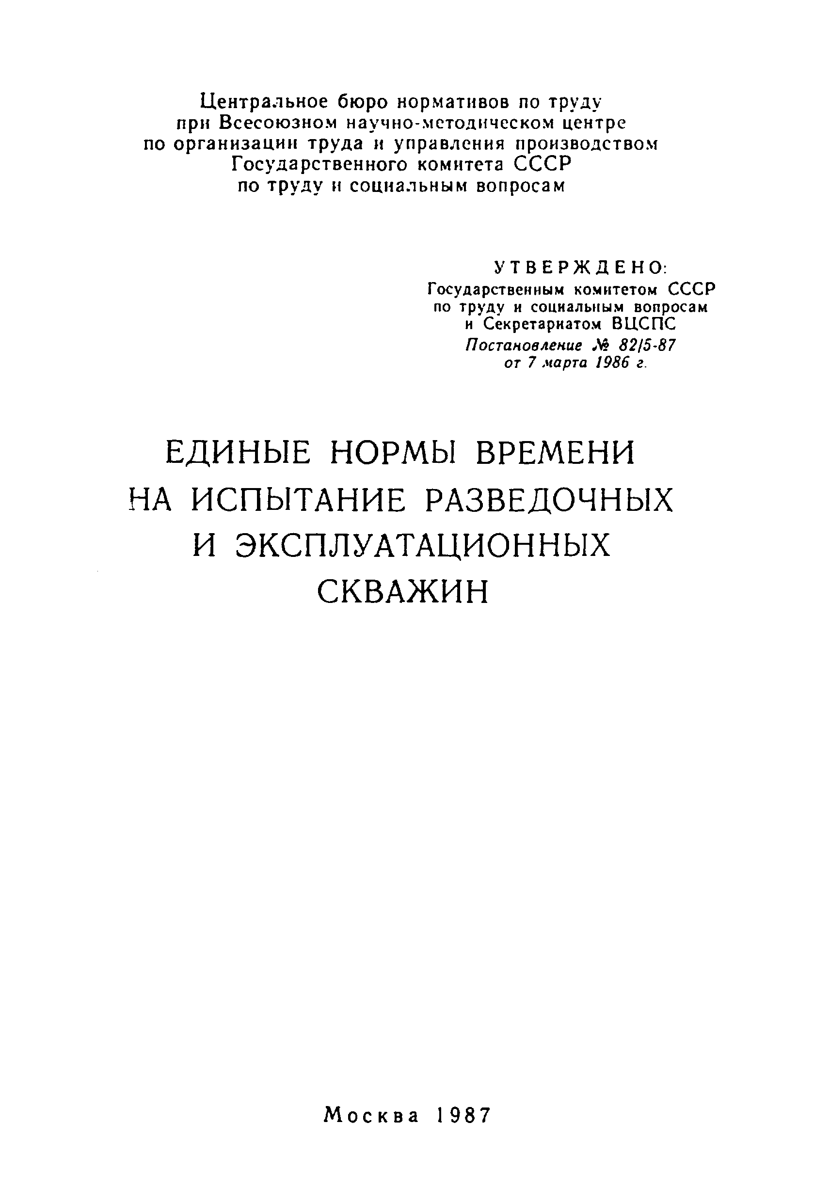 | Название рус.: | Единые нормы времени на испытание разведочных и эксплуатационных скважин |