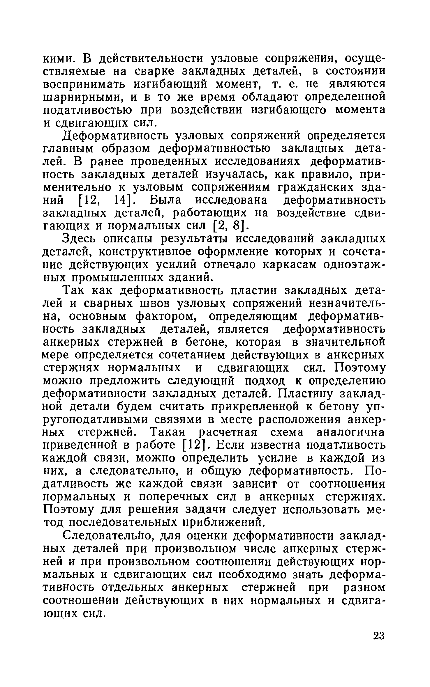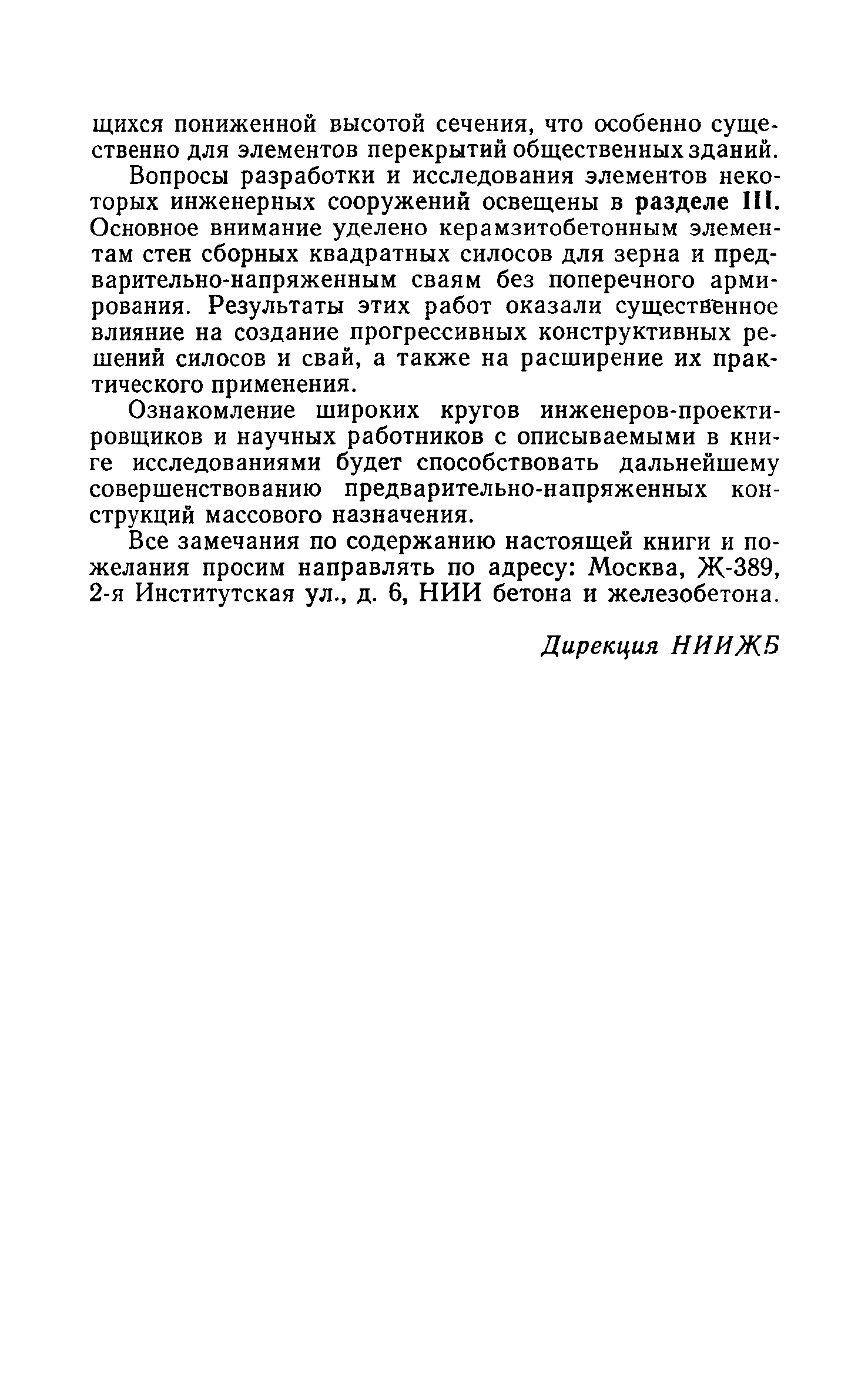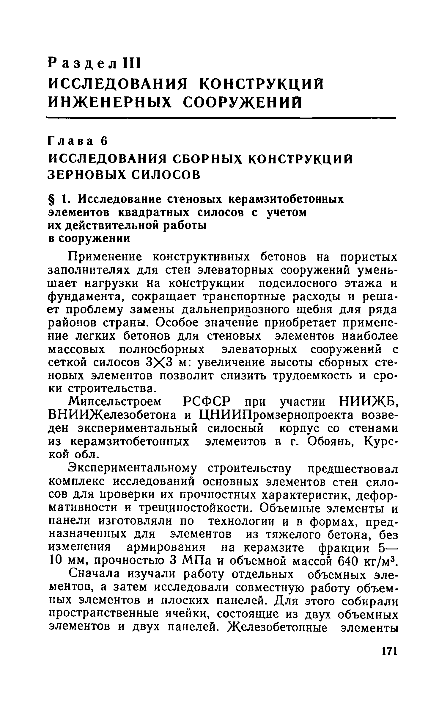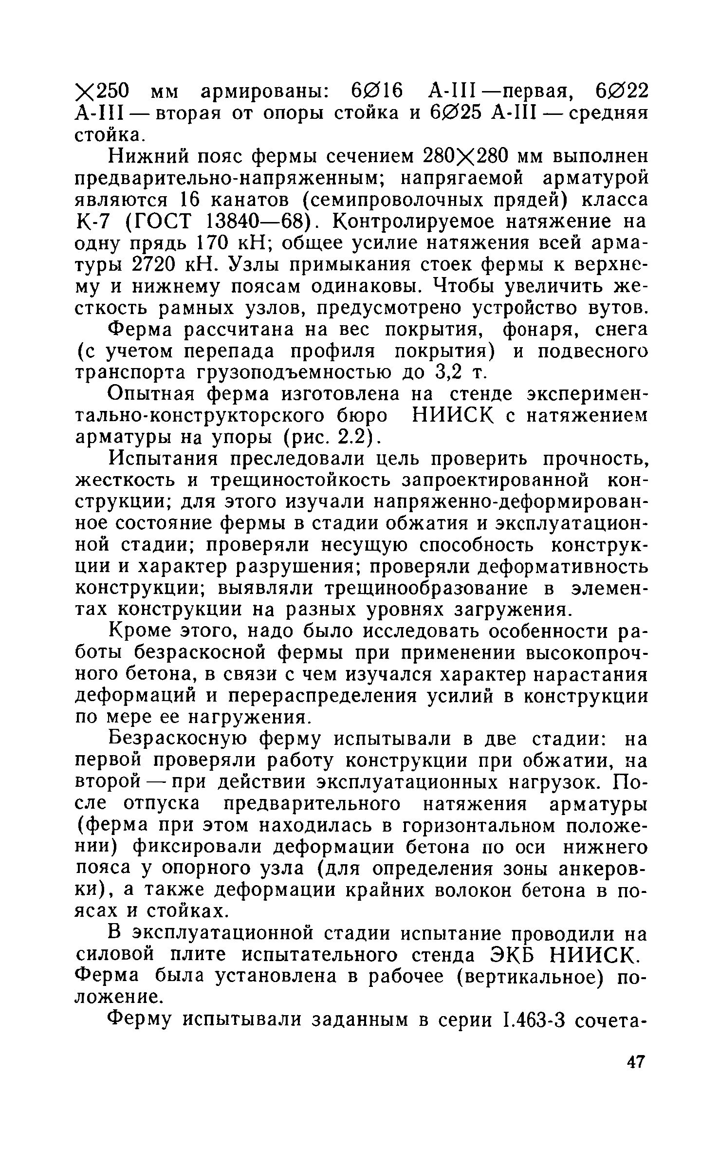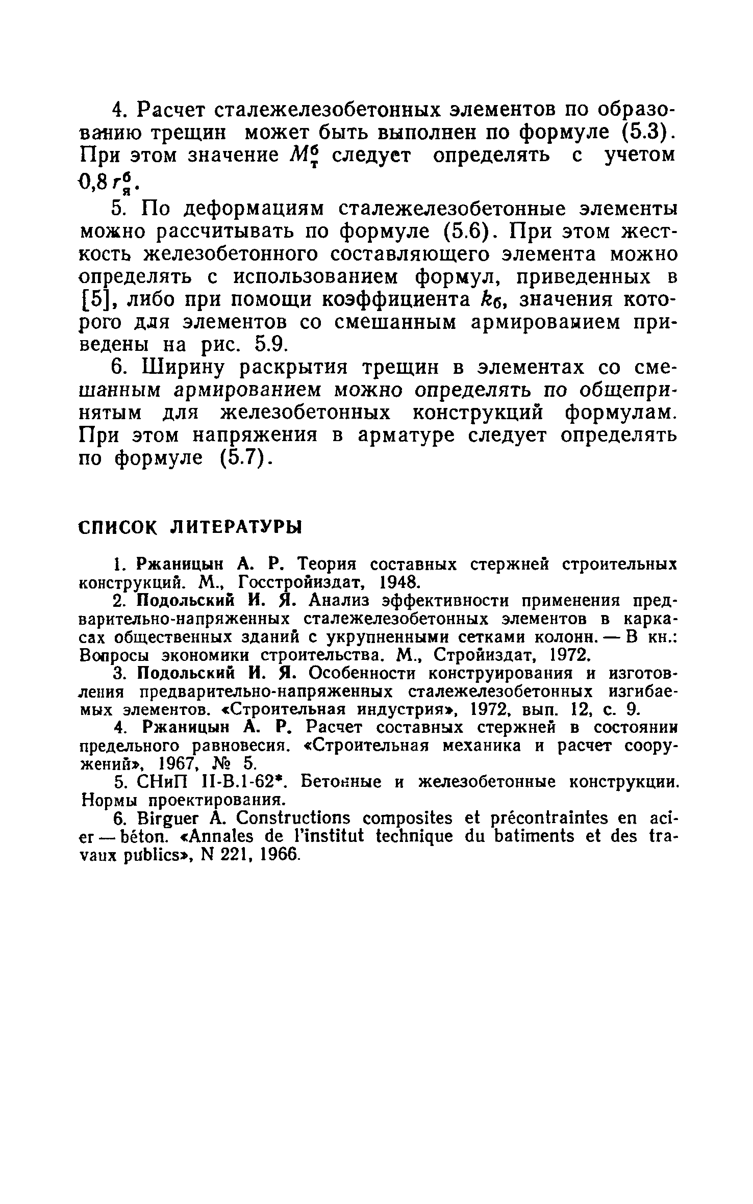 | Оглавление: | Предисловие Раздел I. Исследования предварительно-напряженных конструкций производственных зданий Глава 1. Исследования совместной работы предварительно-напряженных несущих конструкций покрытий производственных зданий § 1. Учет работы плит покрытия при расчете прочности стропильных балок § 2. Исследование плит покрытия с учетом их совместной работы со стропильными конструкциями § 3. Исследование закладных деталей узлов сопряжений сборных конструкций каркасов одноэтажных производственных зданий Список литературы Глава 2. Исследования предварительно-напряженных стропильных ферм § 1. Учет изменчивости свойств материалов и геометрии сечений при расчете статически неопределимых ферм § 2. Исследование плит покрытия с учетом их совместной работы со стропильными конструкциями § 3. Исследование напряженного состояния предварительно-напряженных ферм в доэксплуатационной стадии § 4. Исследование потерь напряжения в предварительно напряжённых элементах с прядевой арматурой из бетона марки 800 (применительно к конструкциям стропильных ферм) § 5. Практический метод определения потерь напряжений в арматуре, возникающих при тепловой обработке предварительно-напряженных изделий стендового изготовления Список литературы Глава 2. Исследования колонн производственных зданий . § 1. Предварительно-напряженные колонны с малыми эксцентриситетами нагруженная для одноэтажных зданий § 2. Исследование работы железобетонных колонн многоэтажных зданий Список литературы Раздел II. Исследования предварительно-напряженных конструкций жилых и общественных зданий Глава 4. Исследование предварительно-напряженных панелей перекрытий § 1. Условия закрытия нормальных трещин в многопустотных панелях с проволочной арматурой § 2. Трещиностойкость многопустотных панелей перекрытий при воздействии монтажных нагрузок Список литературы Глава 5. Исследование предварительно-напряженных сталежелезобетонных изгибаемых элементов для перекрытий общественных зданий Список литературы Раздел III. Исследования конструкций инженерных сооружений Глава 6. Исследования сборных конструкций зерновых силосов § 1. Исследование стеновых керамзитобетонных элементов квадратных силосов с учетом их действительной работы в сооружении Глава 7. Исследование напряженного состояния конструкций с внутренними анкерами различной жесткости при отпуске арматуры Глава 8. Исследование предварительно-напряженных свай без поперечного армирования на внецентренное сжатие Список литературы |