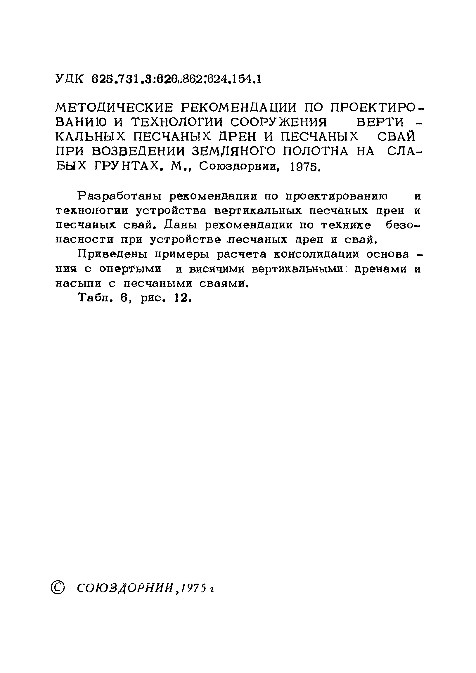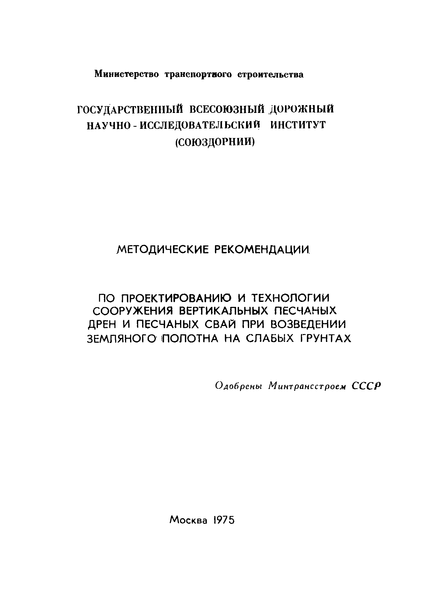 | Название рус.: | Методические рекомендации по проектированию и технологии сооружения вертикальных песчаных дрен и песчаных свай при возведении земляного полотна на слабых грунтах |