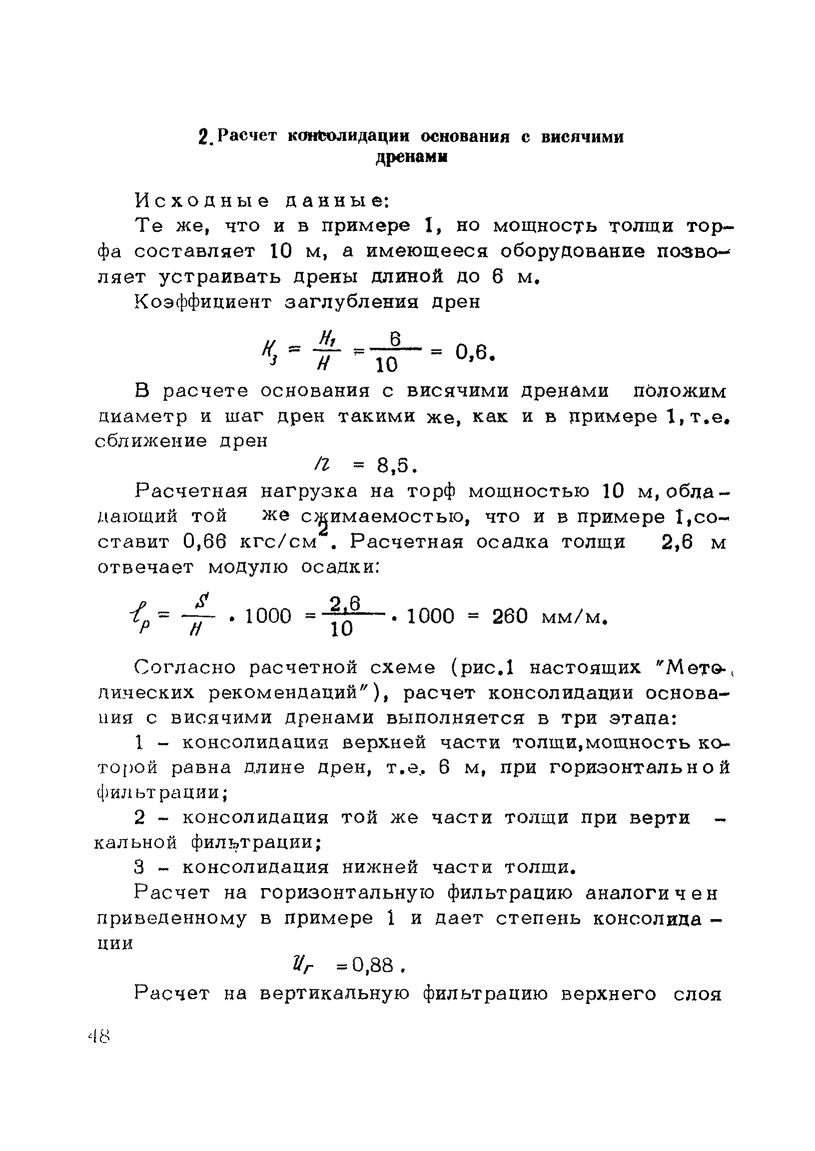 | Область применения: | В документе приведены примеры расчета консолидации основания с опертыми и висячими вертикальными: дренами и насыпи с песчаными сваями. |