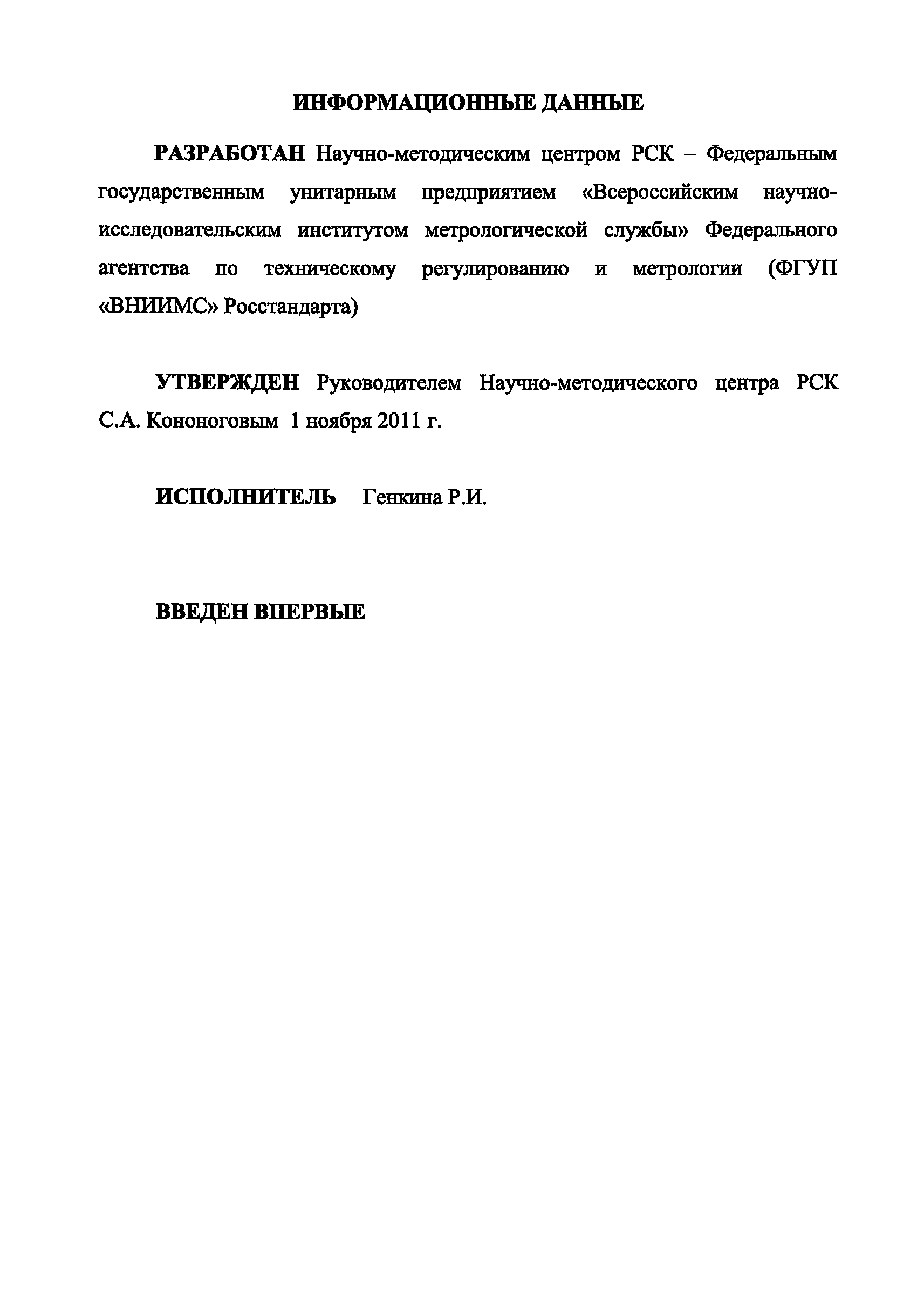 | Утверждён: | 01.11.2011 ФГУП ВНИИМС Росстандарта |