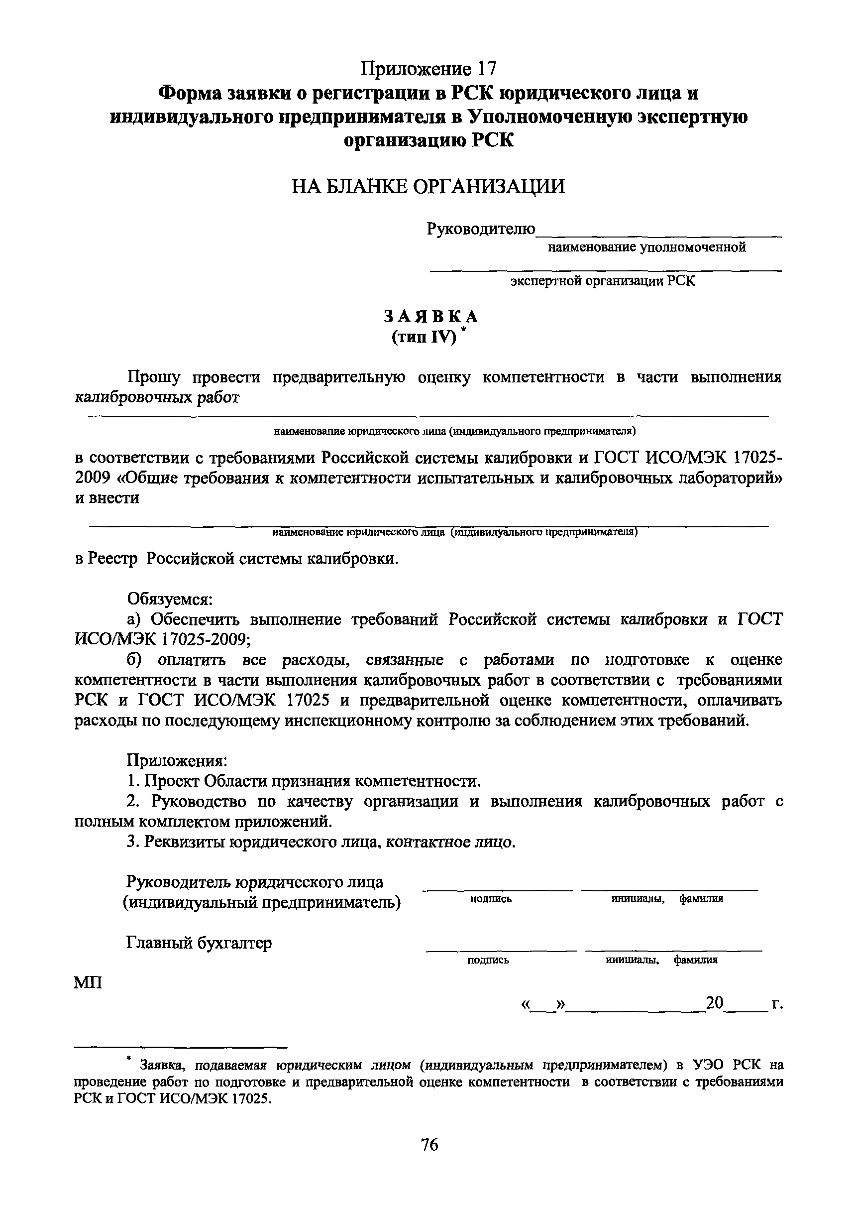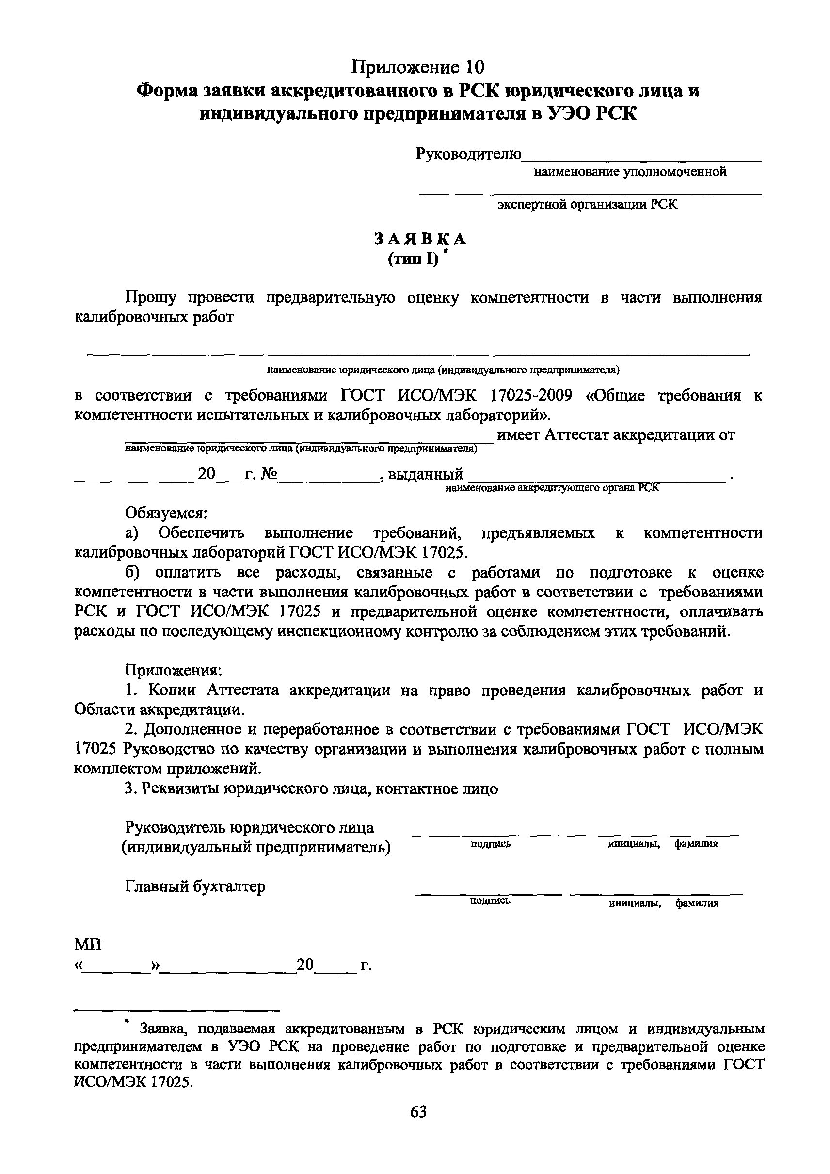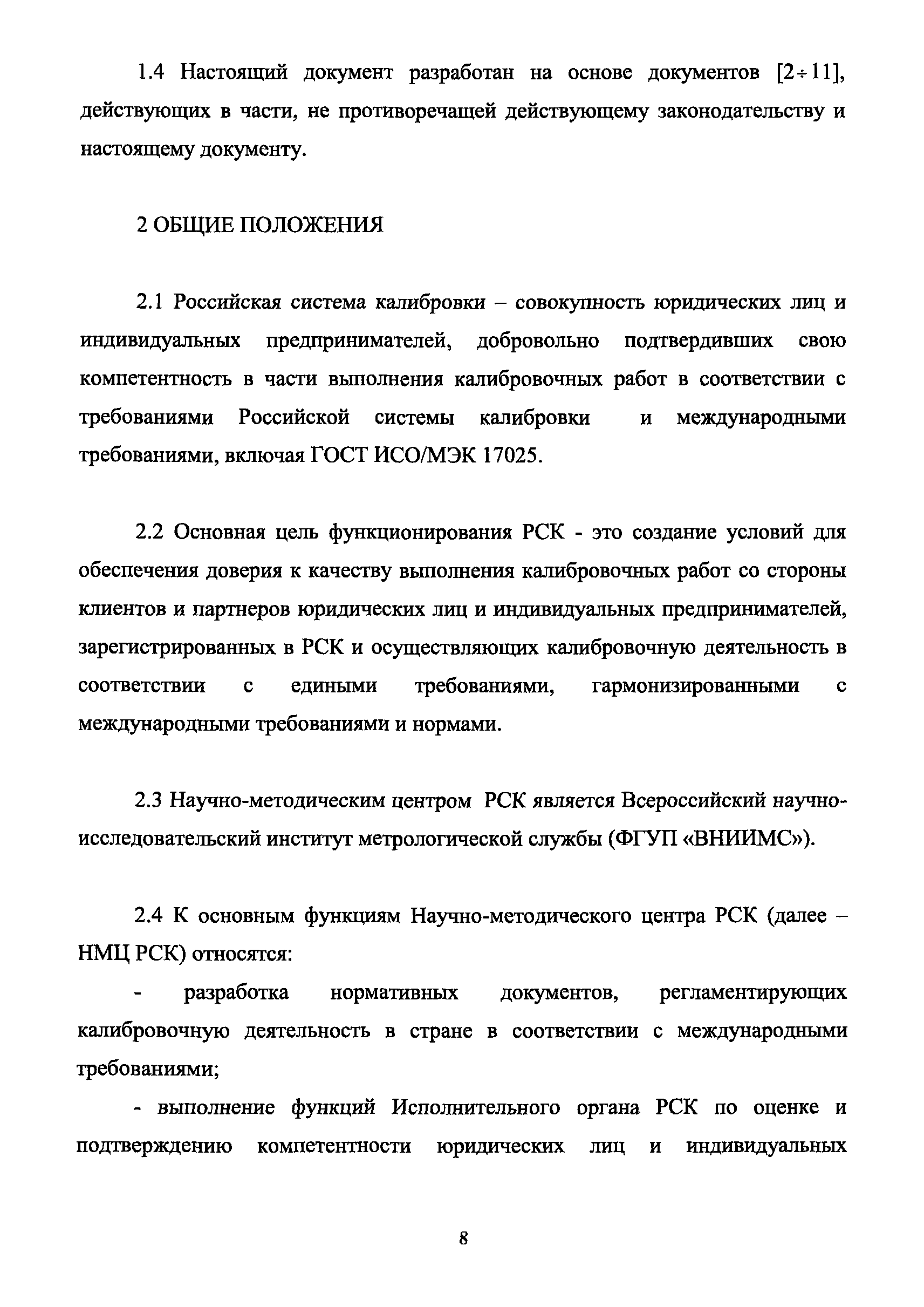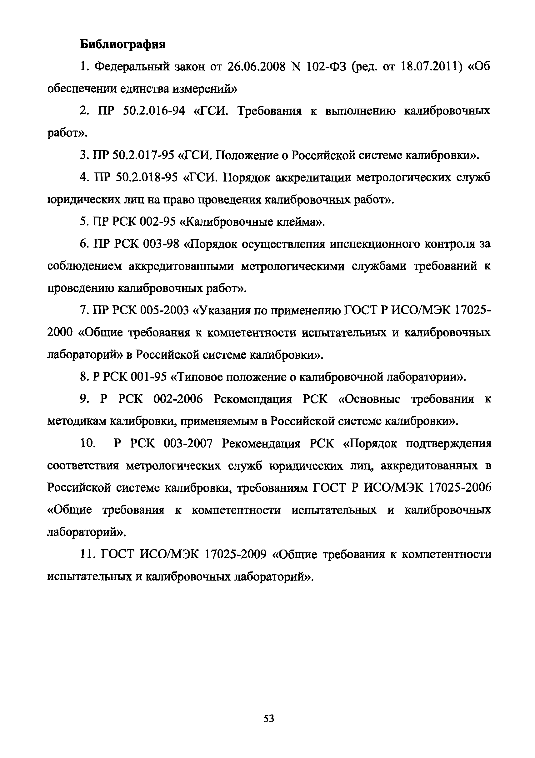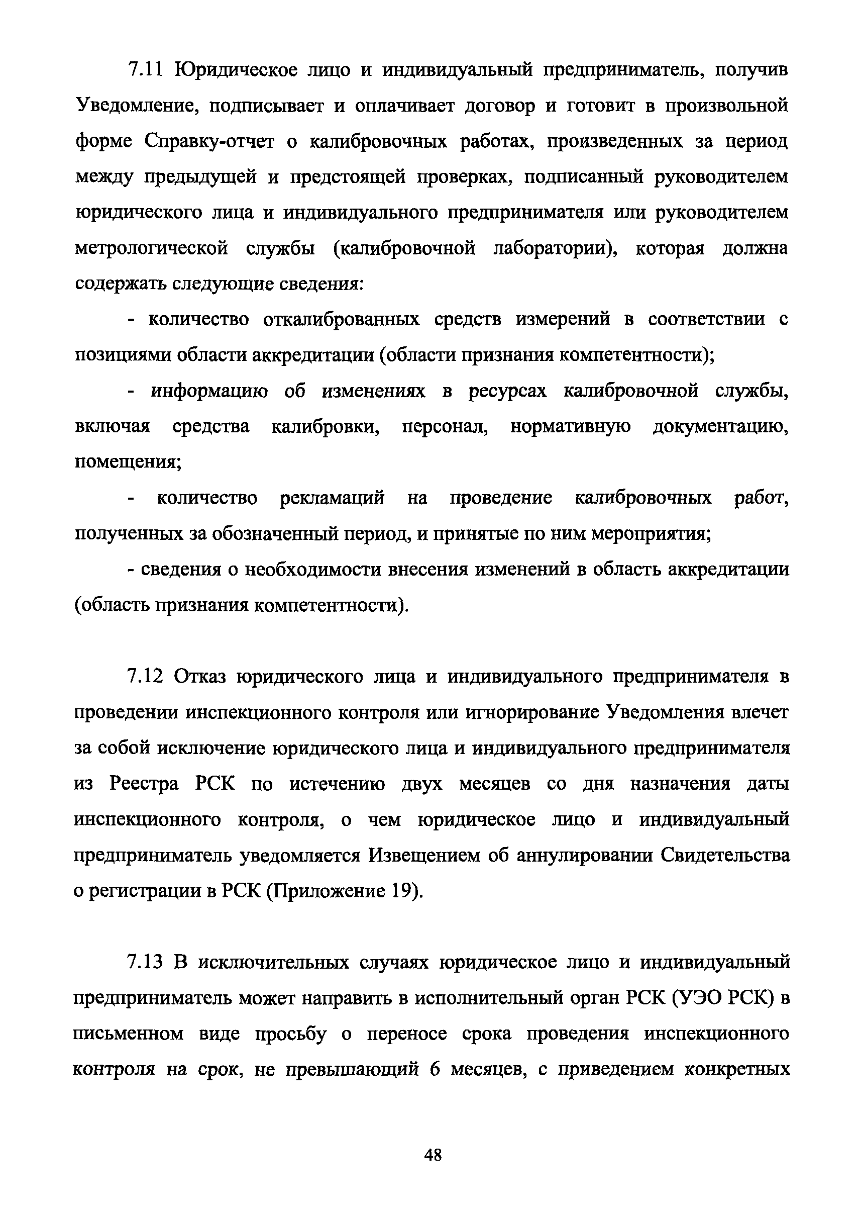| Оглавление: | 1 Введение 2 Общие положения 3 Основные требования к юридическим лицам и индивидуальным предпринимателям, претендующим на подтверждение соответствия требованиям РСК И ГОСТ ИСО/МЭК 17025 4 Построение и содержание "Руководства по качеству организации и выполнения калибровочных работ" 5 Порядок проведения работ по подтверждению соответствия юридических лиц и индивидуальных предпринимателей, аккредитованных в РСК до 1 ноября 2011 г., требованиям ГОСТ ИСО/МЭК 17025 6 Порядок проведения работ по оценке и подтверждению компетентности юридических лиц и индивидуальных предпринимателей в части выполнения калибровочных работ в соответствии с требованиями РСК и ГОСТ ИСО/МЭК 17025 7 Инспекционный контроль за деятельностью юридических лиц и индивидуальных предпринимателей, зарегистрированных в Реестре РСК 8 Порядок регистрации в Российской системе калибровки юридических лиц и индивидуальных предпринимателей, аккредитованных в области обеспечения единства измерений на компетентность в выполнении работ по поверке средств измерений Библиография Приложение 1. Бланк Извещения о регистрации Уполномоченной экспертной организации РСК Приложение 2. Форма приложения к Руководству по качеству: Сведения о калибруемых средствах и средствах калибровки Приложение 3. Форма приложения к Руководству по качеству: Сведения о наличии нормативной и организационно-методической документации Приложение 4. Форма приложения к Руководству по качеству: Сведения о кадровом составе специалистов, выполняющих калибровку средств измерений Приложение 5. Форма приложения к Руководству по качеству: Сведения о состоянии производственных помещений, используемых при калибровке средств измерений Приложение 6. Форма приложения к Руководству по качеству: Журнал регистрации средств измерений, принятых на калибровку Приложение 7. Пример оформления Сертификата о калибровке Приложение 8. Пример оформления эскиза калибровочного клейма Приложение 9. Форма приложения к Руководству по качеству: Журнал контроля за качеством калибровочных работ Приложение 10.Форма заявки аккредитованного в РСК юридического лица и индивидуального предпринимателя в УЭО РСК Приложение 11. Форма заявки аккредитованного в РСК юридического лица и индивидуального предпринимателя в Исполнительный орган РСК Приложение 12. Форма Свидетельства о регистрации в РСК Приложение 13. Форма акта проверки компетентности Приложение 14. Форма извещения УЗО РСК о проведенной предварительной оценке компетентности Приложение 15. Область признания компетентности в части выполнения калибровочных работ Приложение 16. Форма заявки о регистрации в РСК юридического лица и индивидуального предпринимателя в Исполнительный орган РСК Приложение 17. Форма заявки о регистрации в РСК юридического лица и индивидуального предпринимателя в УЭО РСК Приложение 18. Форма Уведомления о проведении инспекционного контроля Приложение 19. Форма Извещения об аннулирования (приостановлении действия). Свидетельства о регистрации в РСК Приложение 20. Форма заявки о регистрации в РСК юридического лица и индивидуального предпринимателя, аккредитованного в области обеспечения единства измерений на компетентность в выполнении работ по поверке средств измерений Приложение 21. Форма Свидетельства о регистрации в РСК юридич