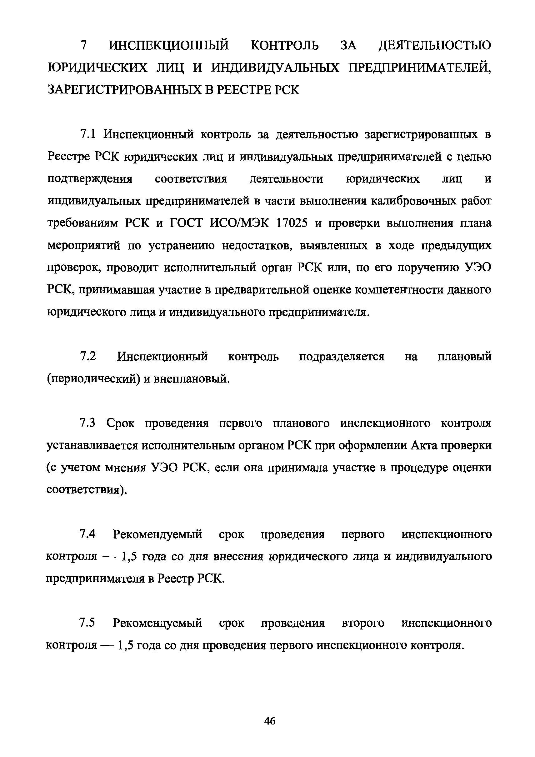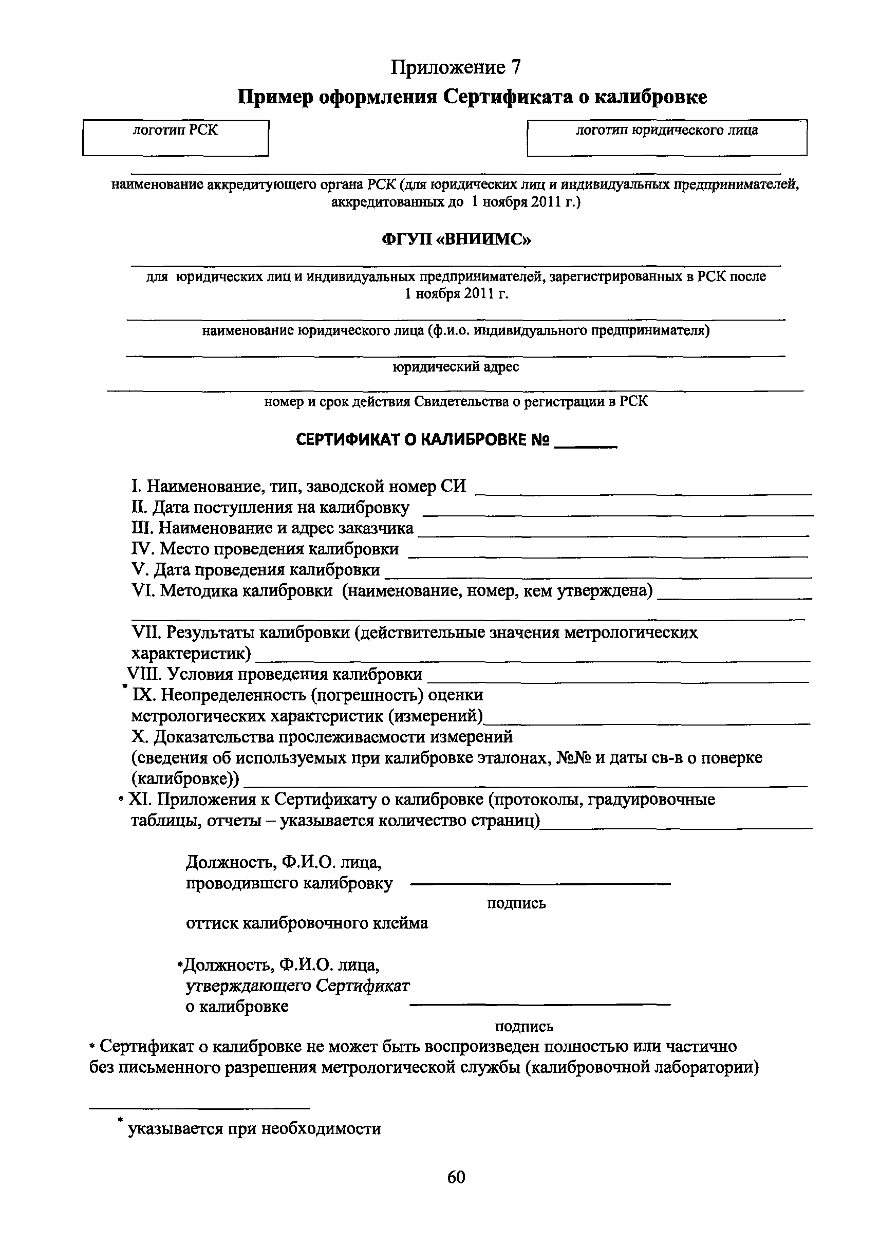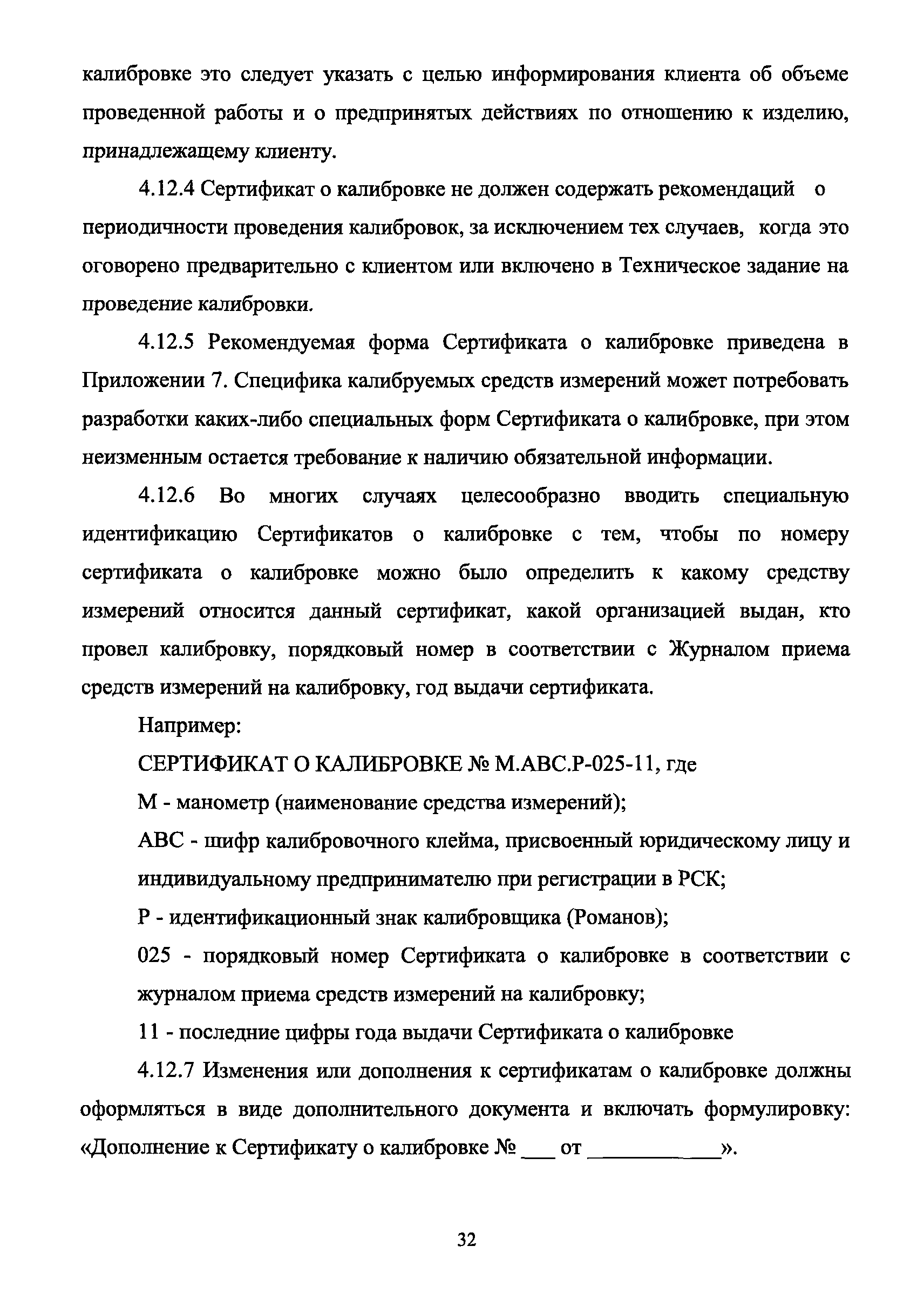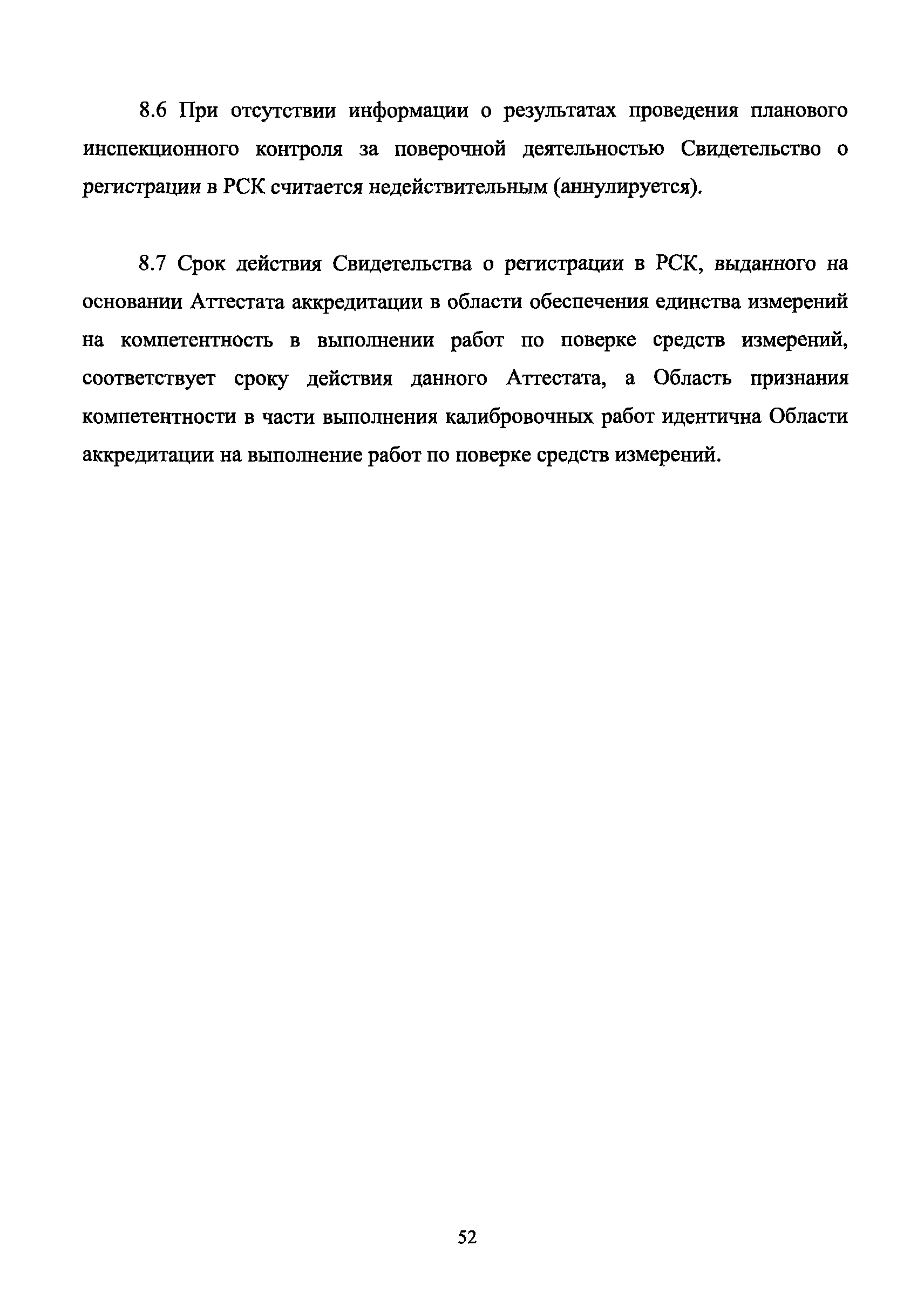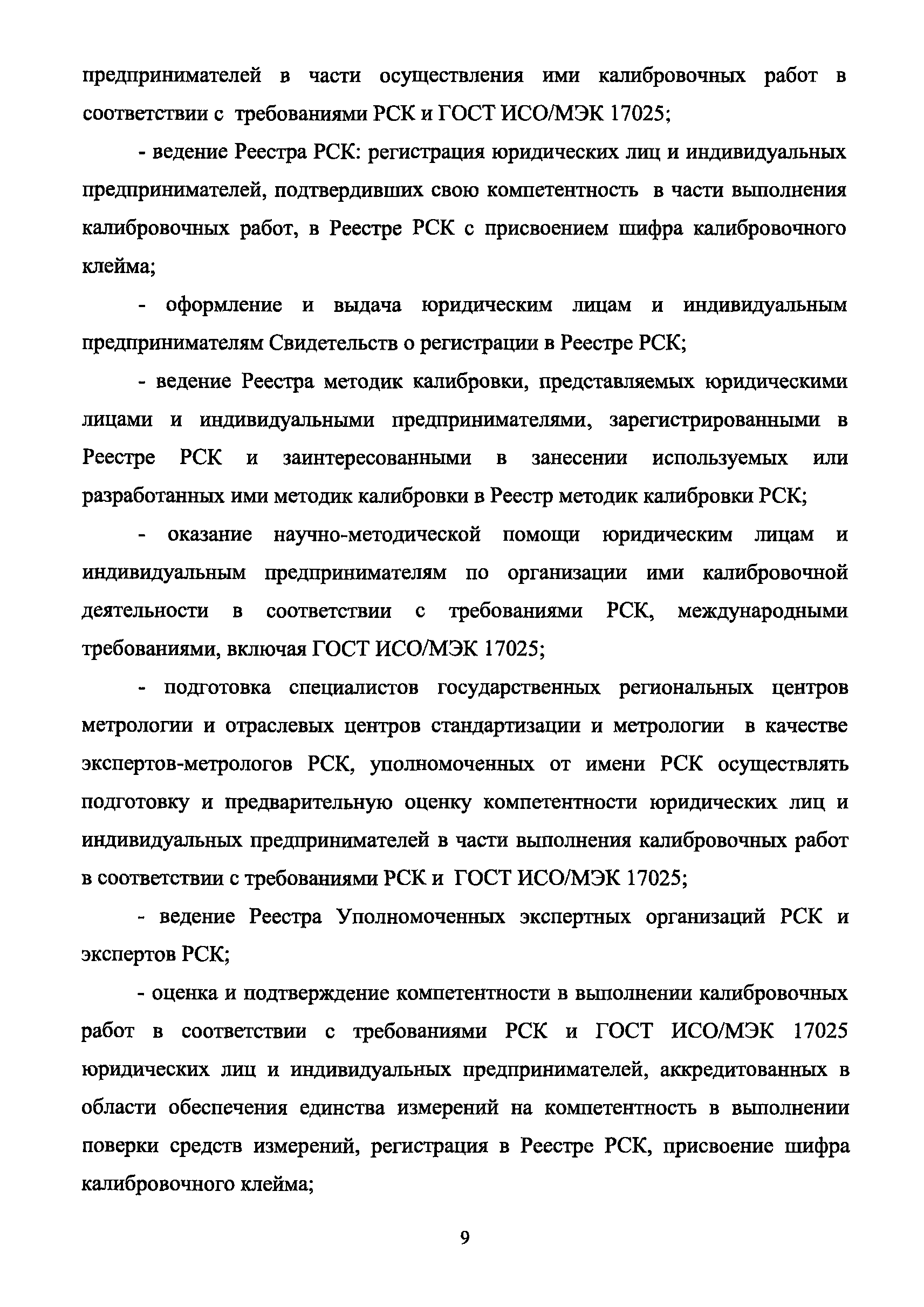 | Оглавление: | 1 Введение 2 Общие положения 3 Основные требования к юридическим лицам и индивидуальным предпринимателям, претендующим на подтверждение соответствия требованиям РСК И ГОСТ ИСО/МЭК 17025 4 Построение и содержание "Руководства по качеству организации и выполнения калибровочных работ" 5 Порядок проведения работ по подтверждению соответствия юридических лиц и индивидуальных предпринимателей, аккредитованных в РСК до 1 ноября 2011 г., требованиям ГОСТ ИСО/МЭК 17025 6 Порядок проведения работ по оценке и подтверждению компетентности юридических лиц и индивидуальных предпринимателей в части выполнения калибровочных работ в соответствии с требованиями РСК и ГОСТ ИСО/МЭК 17025 7 Инспекционный контроль за деятельностью юридических лиц и индивидуальных предпринимателей, зарегистрированных в Реестре РСК 8 Порядок регистрации в Российской системе калибровки юридических лиц и индивидуальных предпринимателей, аккредитованных в области обеспечения единства измерений на компетентность в выполнении работ по поверке средств измерений Библиография Приложение 1. Бланк Извещения о регистрации Уполномоченной экспертной организации РСК Приложение 2. Форма приложения к Руководству по качеству: Сведения о калибруемых средствах и средствах калибровки Приложение 3. Форма приложения к Руководству по качеству: Сведения о наличии нормативной и организационно-методической документации Приложение 4. Форма приложения к Руководству по качеству: Сведения о кадровом составе специалистов, выполняющих калибровку средств измерений Приложение 5. Форма приложения к Руководству по качеству: Сведения о состоянии производственных помещений, используемых при калибровке средств измерений Приложение 6. Форма приложения к Руководству по качеству: Журнал регистрации средств измерений, принятых на калибровку Приложение 7. Пример оформления Сертификата о калибровке Приложение 8. Пример оформления эскиза калибровочного клейма Приложение 9. Форма приложения к Руководству по качеству: Журнал контроля за качеством калибровочных работ Приложение 10.Форма заявки аккредитованного в РСК юридического лица и индивидуального предпринимателя в УЭО РСК Приложение 11. Форма заявки аккредитованного в РСК юридического лица и индивидуального предпринимателя в Исполнительный орган РСК Приложение 12. Форма Свидетельства о регистрации в РСК Приложение 13. Форма акта проверки компетентности Приложение 14. Форма извещения УЗО РСК о проведенной предварительной оценке компетентности Приложение 15. Область признания компетентности в части выполнения калибровочных работ Приложение 16. Форма заявки о регистрации в РСК юридического лица и индивидуального предпринимателя в Исполнительный орган РСК Приложение 17. Форма заявки о регистрации в РСК юридического лица и индивидуального предпринимателя в УЭО РСК Приложение 18. Форма Уведомления о проведении инспекционного контроля Приложение 19. Форма Извещения об аннулирования (приостановлении действия). Свидетельства о регистрации в РСК Приложение 20. Форма заявки о регистрации в РСК юридического лица и индивидуального предпринимателя, аккредитованного в области обеспечения единства измерений на компетентность в выполнении работ по поверке средств измерений Приложение 21. Форма Свидетельства о регистрации в РСК юридич
