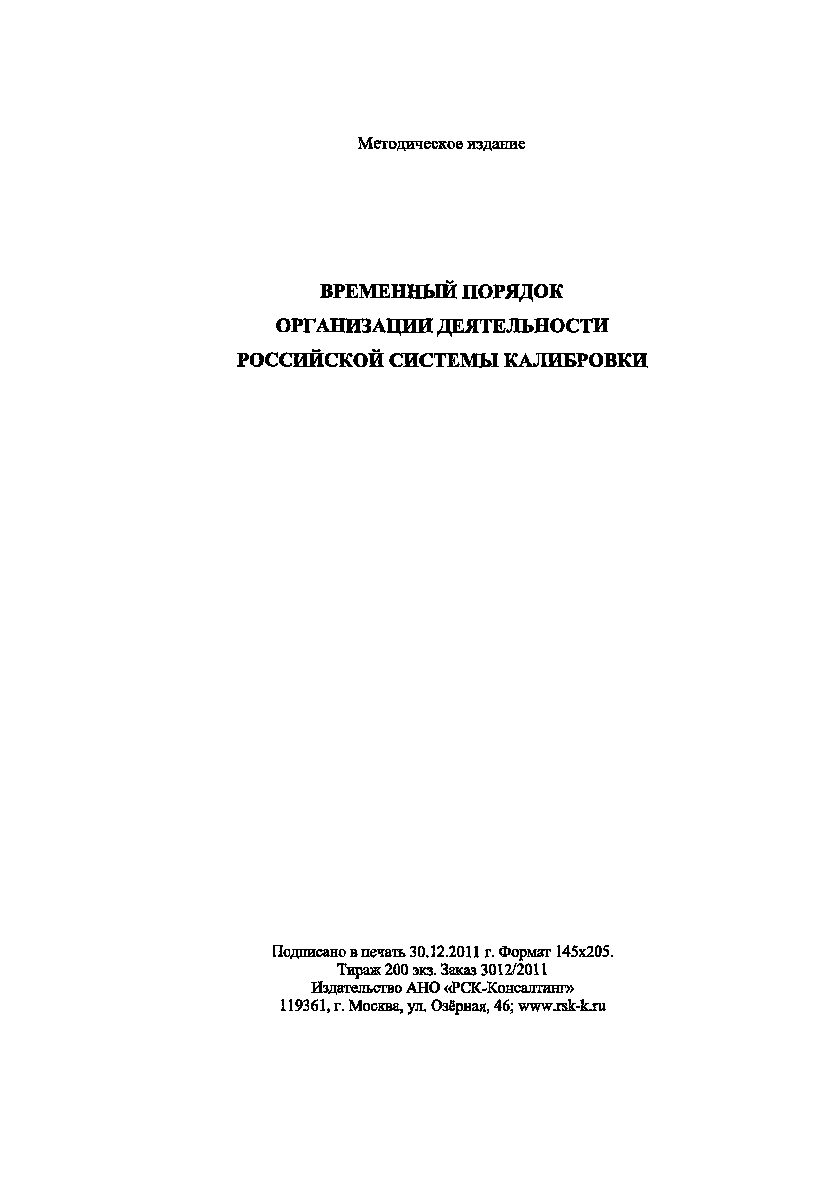 | Название рус.: | Временный порядок организации деятельности Российской системы калибровки |