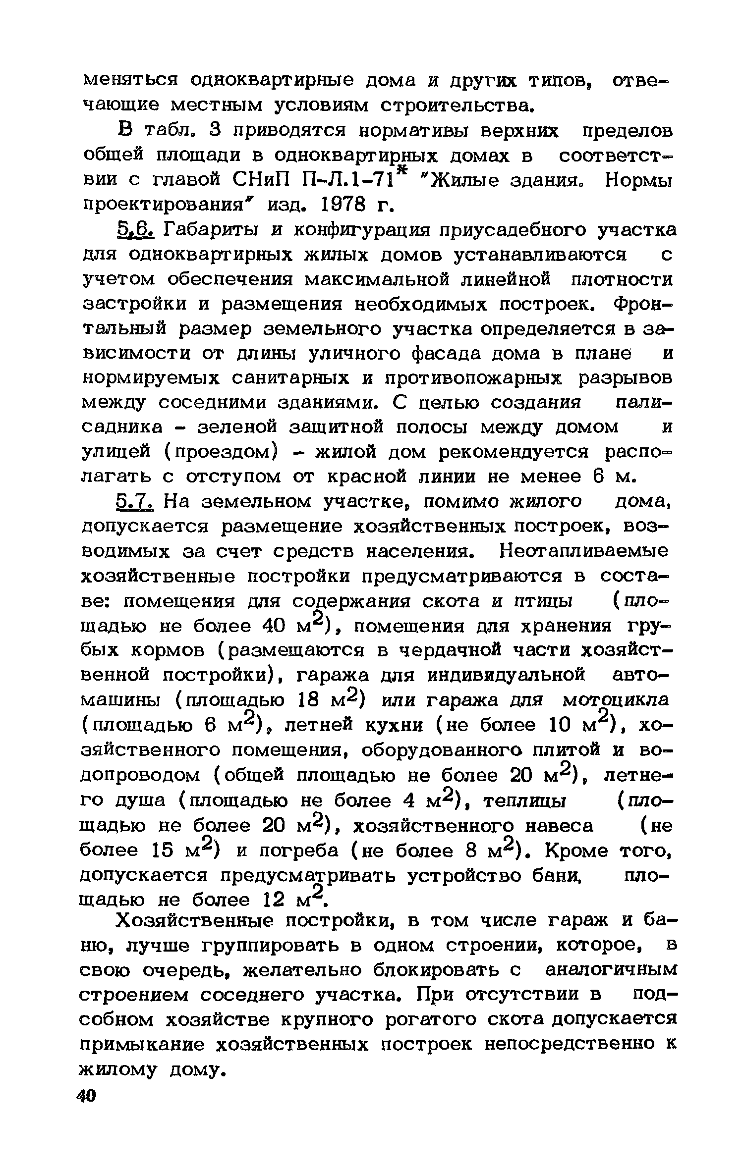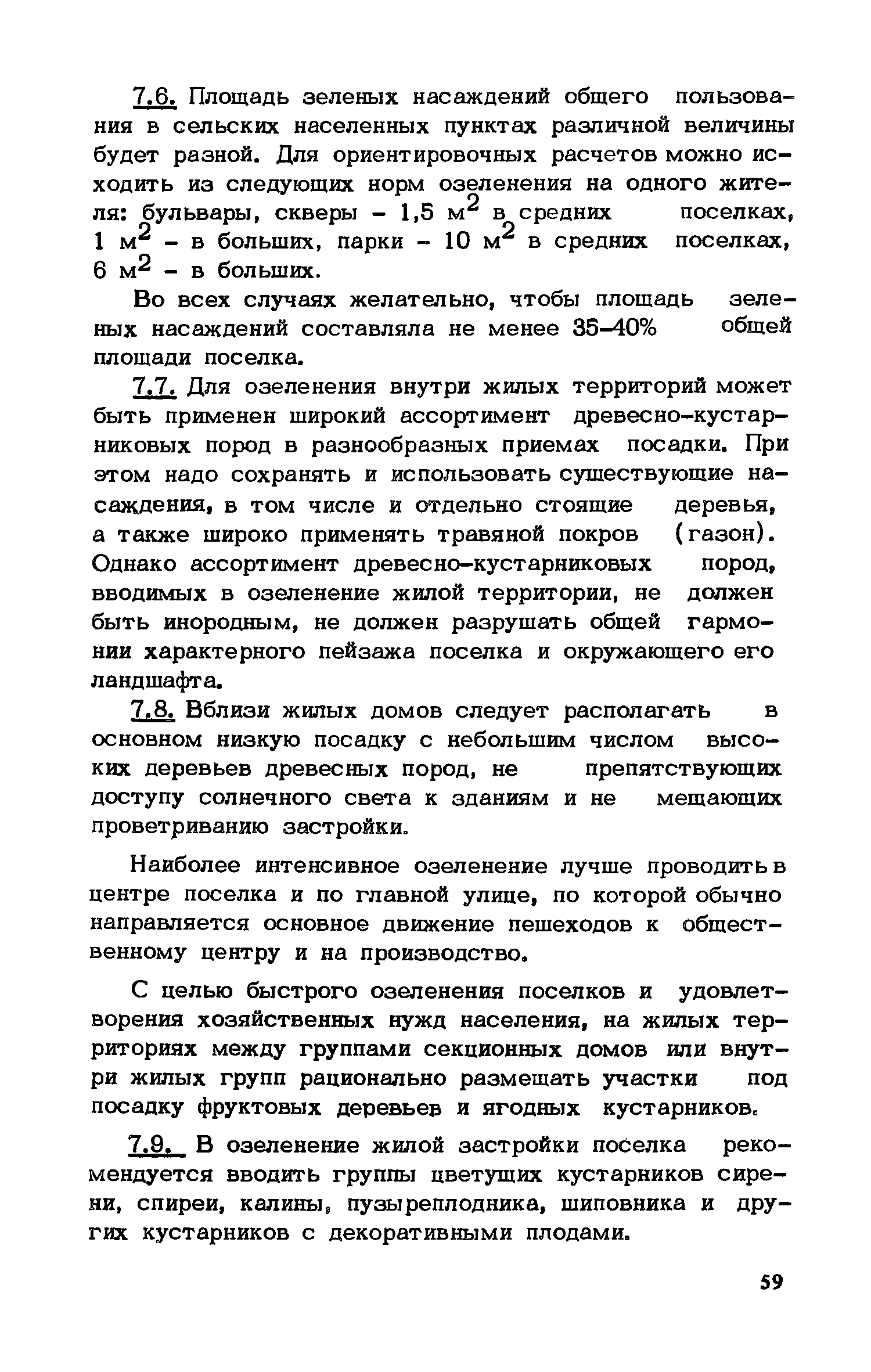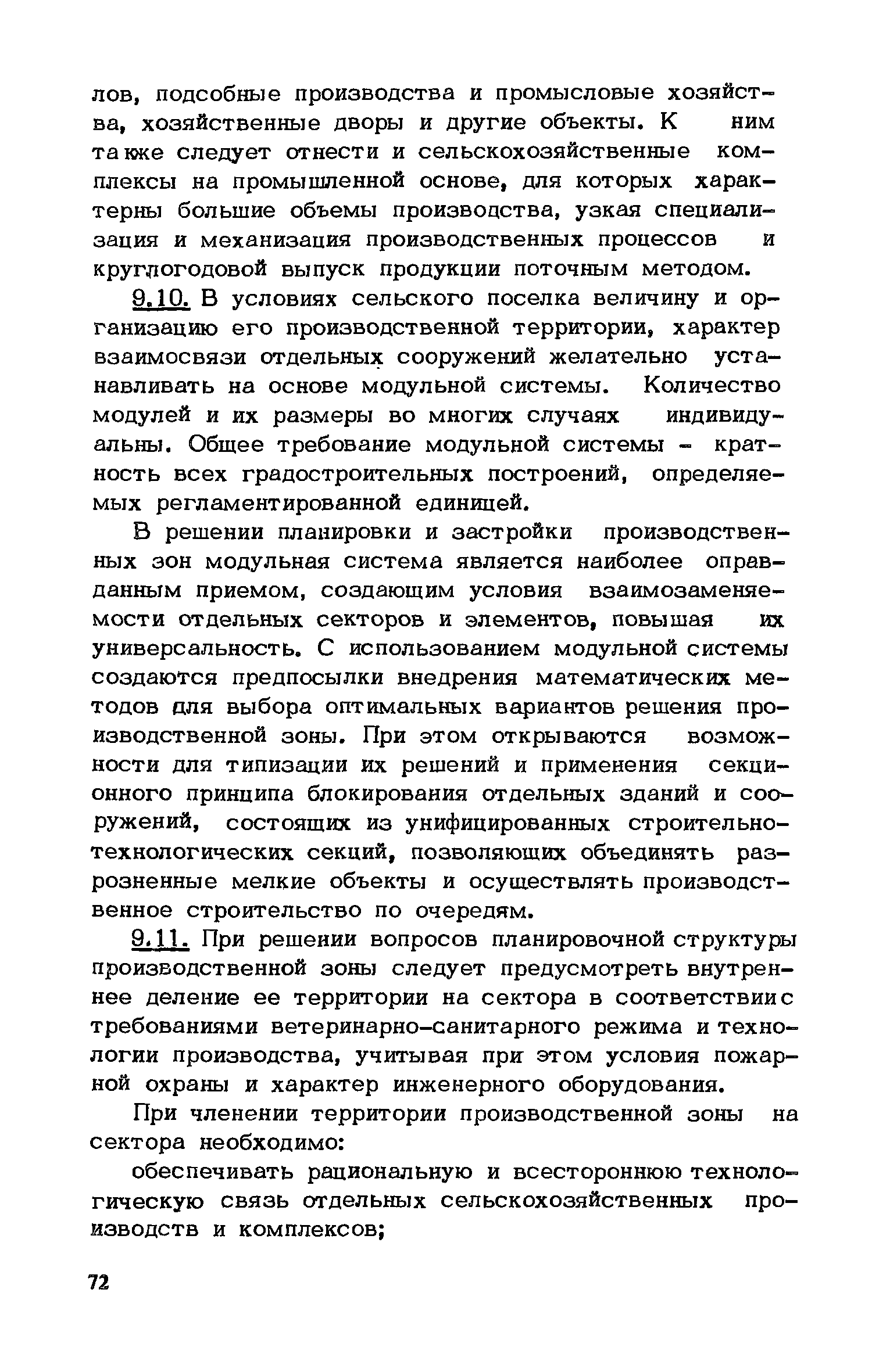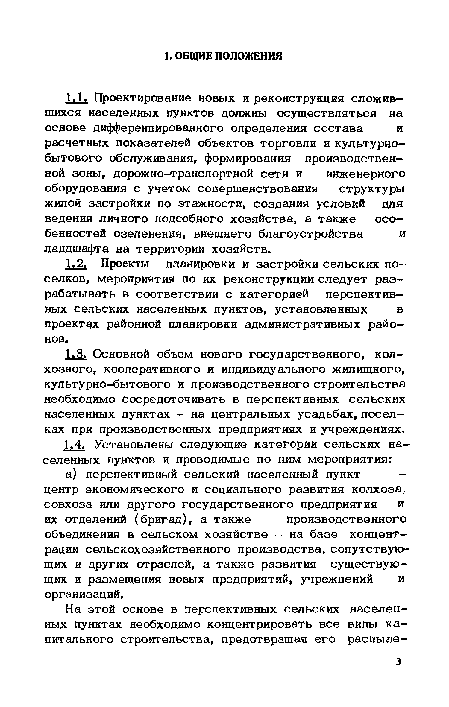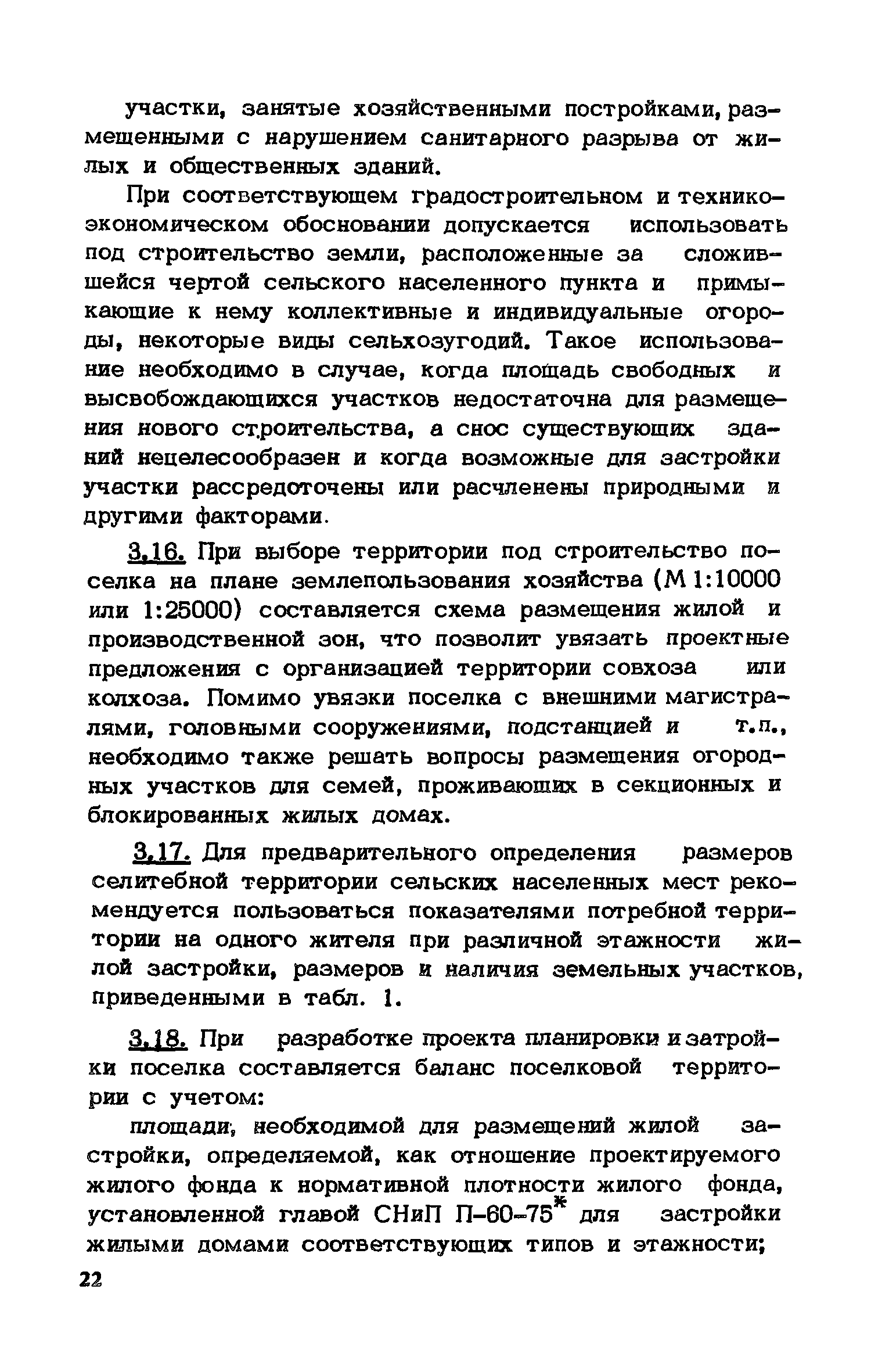 | Оглавление: | 1. Общие положения 2. Развитие сельских поселков Перспективные сельские населенные пункты Сселение мелких сельских населенных пунктов Сельские поселки рекреационного типа Технико-экономическое обоснование проектов планировки и застройки поселков 3. Общая организация территории сельского поселка Использование природно-ландшафтных факторов при организации поселка Охрана окружающей среды Выбор территории для строительства поселка Функциональное зонирование территории поселка Размещение первой очереди строительства поселка Использование исторических памятников в композиции сельских поселков 4. Планировка селитебной территории сельского поселка Архитектурно-планировочная организация поселка Планировка в условиях реконструкции поселка Определение объемов жилищного строительства 5. Застройка селитебной территории сельского поселка Жилая застройка Застройка усадебными домами Застройка блокированными домами Застройка секционными жилыми домами Размещение участков и хозяйственных построек при домах различных типов Организация личного подсобного хозяйства 6. Общественный центр поселка Размещение и застройка центра 7. Внешнее благоустройство и озеленение сельского поселка Размещение зеленых насаждений общего пользования Озеленение санитарно-защитной зоны Малые архитектурные формы 8. Инженерное оборудование сельских поселков Водоснабжение, канализация, теплоснабжение, газоснабжение, электроснабжение 9. Производственная зона сельского поселка Размещение и организация производственных зон Состав производственной зоны Формирование территории животноводческих комплексов Приложение 1. Определение стоимостного показателя по проекту поселка Приложение 2. Определение расчетной численности рекреантов при проектирования поселков рекреационного типа Приложение 3. Расстояния между жилыми зданиями в застройке различной этажности Приложение 4. Размеры земельных участков школ в зависимости от числа учащихся Приложение 5. Расстояния от жилых и общественных зданий до наземных гаражей с различным числом автомобилей Приложение 6. Соотношения площадей элементов селитебной территории поселка при различной жилой застройки Приложение 7. Плотность жилого фонда селитебной территории сельского населенного пункта при различных типах жилых домов Приложение 8. Минимальные санитарно-гигиенические разрывы для хозяйственных построек и сооружений различного назначения Приложение 9. Допустимые продольные уклоны дорог, улиц и проездов в поселках Приложение 10. Размеры спортивных сооружений Приложение 11. Санитарно-гигиенические требования к очистке территории сельского населенного пункта |