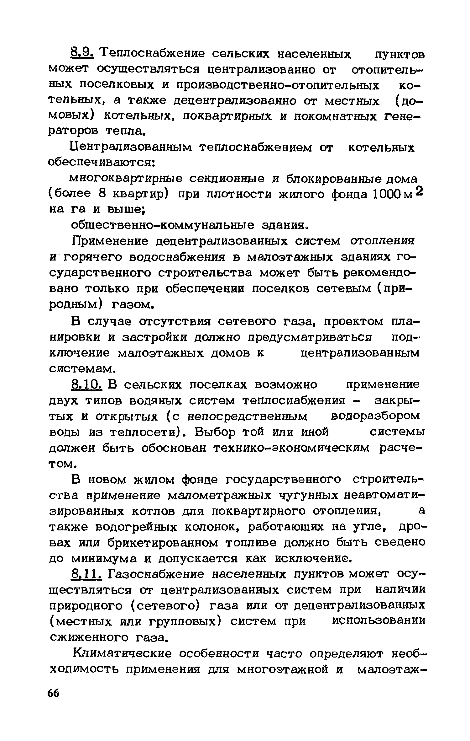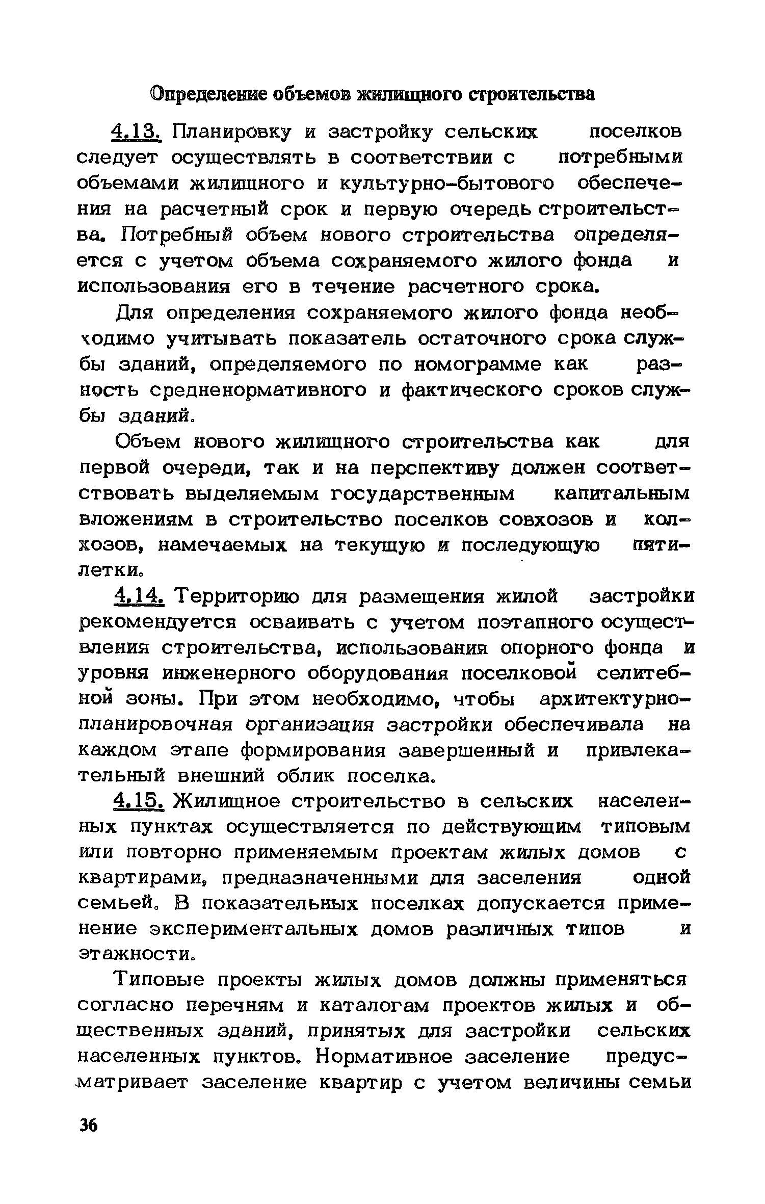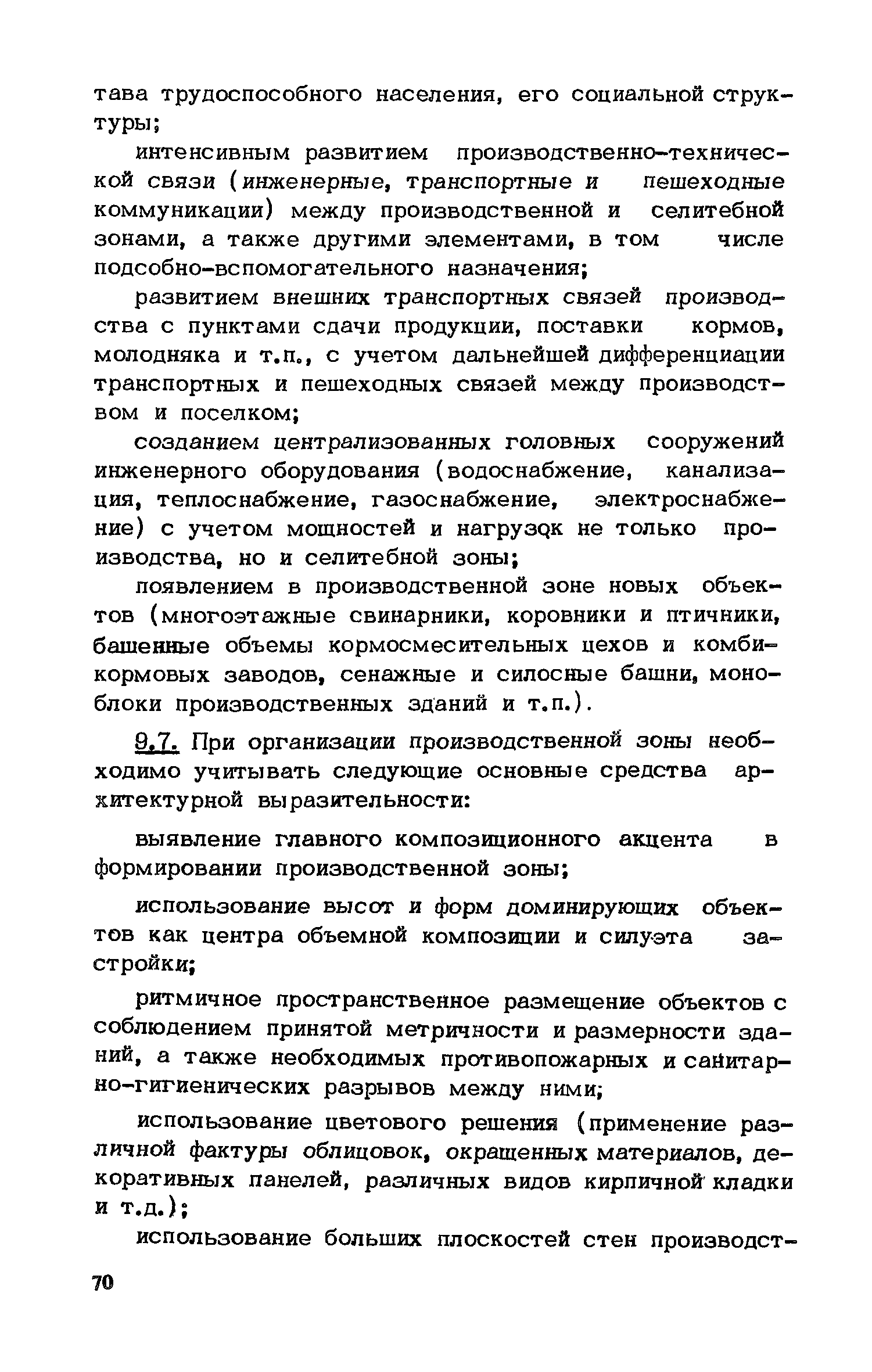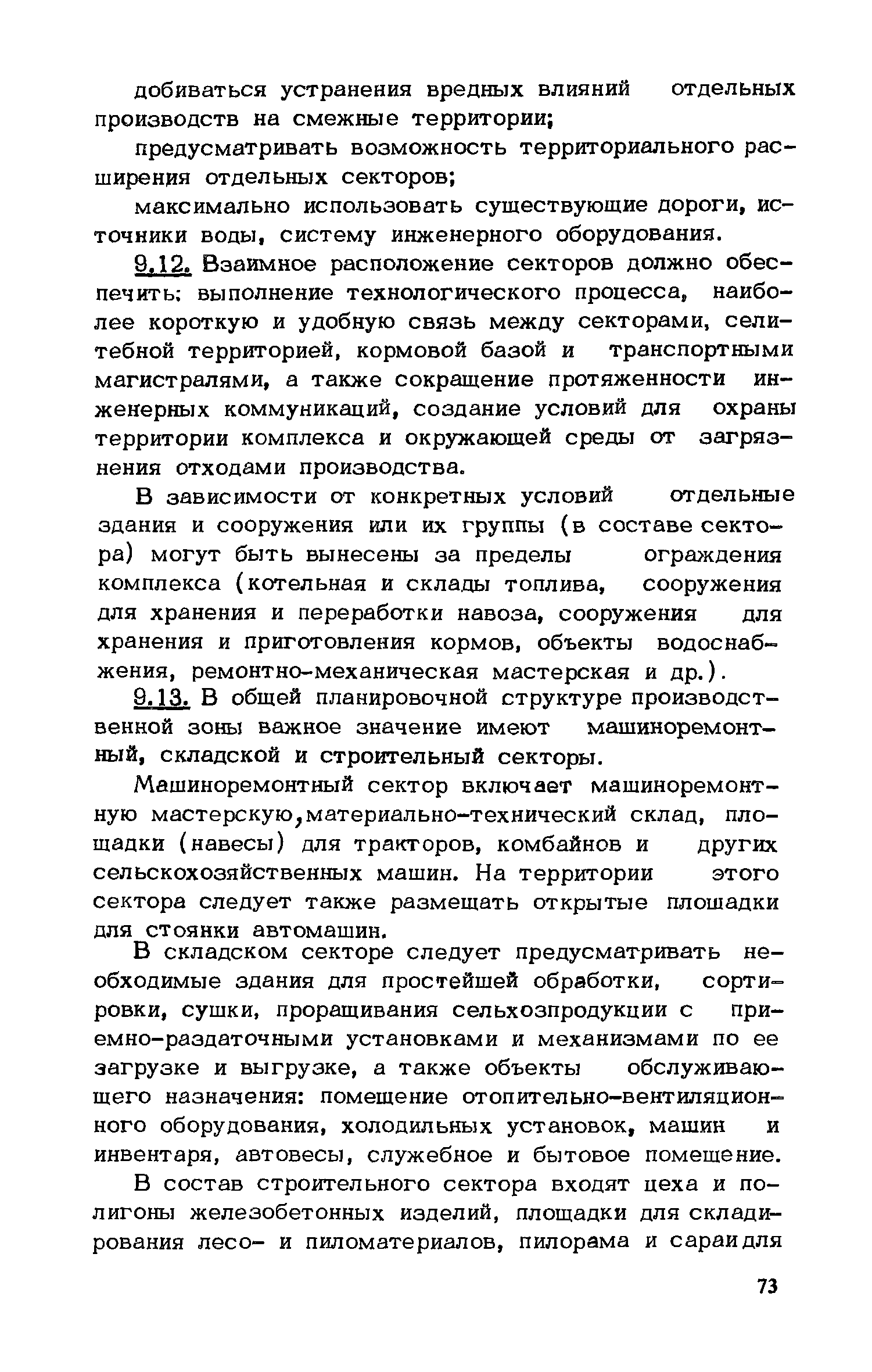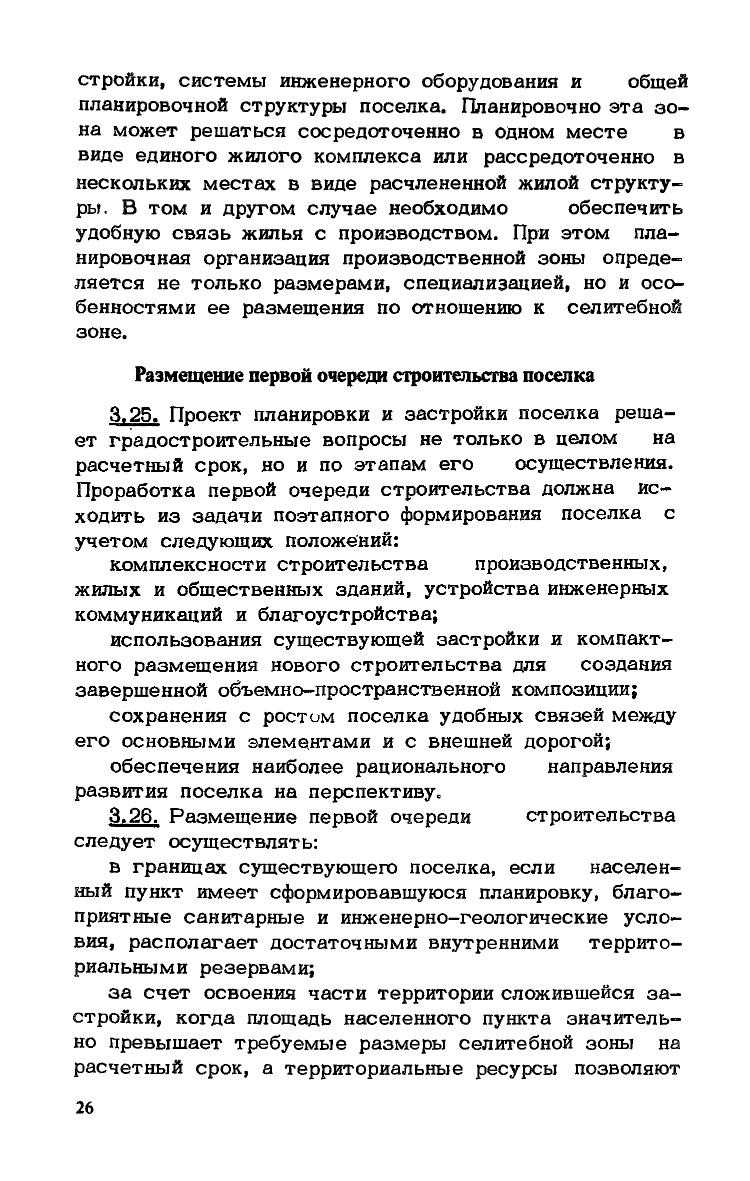 | Оглавление: | 1. Общие положения 2. Развитие сельских поселков Перспективные сельские населенные пункты Сселение мелких сельских населенных пунктов Сельские поселки рекреационного типа Технико-экономическое обоснование проектов планировки и застройки поселков 3. Общая организация территории сельского поселка Использование природно-ландшафтных факторов при организации поселка Охрана окружающей среды Выбор территории для строительства поселка Функциональное зонирование территории поселка Размещение первой очереди строительства поселка Использование исторических памятников в композиции сельских поселков 4. Планировка селитебной территории сельского поселка Архитектурно-планировочная организация поселка Планировка в условиях реконструкции поселка Определение объемов жилищного строительства 5. Застройка селитебной территории сельского поселка Жилая застройка Застройка усадебными домами Застройка блокированными домами Застройка секционными жилыми домами Размещение участков и хозяйственных построек при домах различных типов Организация личного подсобного хозяйства 6. Общественный центр поселка Размещение и застройка центра 7. Внешнее благоустройство и озеленение сельского поселка Размещение зеленых насаждений общего пользования Озеленение санитарно-защитной зоны Малые архитектурные формы 8. Инженерное оборудование сельских поселков Водоснабжение, канализация, теплоснабжение, газоснабжение, электроснабжение 9. Производственная зона сельского поселка Размещение и организация производственных зон Состав производственной зоны Формирование территории животноводческих комплексов Приложение 1. Определение стоимостного показателя по проекту поселка Приложение 2. Определение расчетной численности рекреантов при проектирования поселков рекреационного типа Приложение 3. Расстояния между жилыми зданиями в застройке различной этажности Приложение 4. Размеры земельных участков школ в зависимости от числа учащихся Приложение 5. Расстояния от жилых и общественных зданий до наземных гаражей с различным числом автомобилей Приложение 6. Соотношения площадей элементов селитебной территории поселка при различной жилой застройки Приложение 7. Плотность жилого фонда селитебной территории сельского населенного пункта при различных типах жилых домов Приложение 8. Минимальные санитарно-гигиенические разрывы для хозяйственных построек и сооружений различного назначения Приложение 9. Допустимые продольные уклоны дорог, улиц и проездов в поселках Приложение 10. Размеры спортивных сооружений Приложение 11. Санитарно-гигиенические требования к очистке территории сельского населенного пункта |